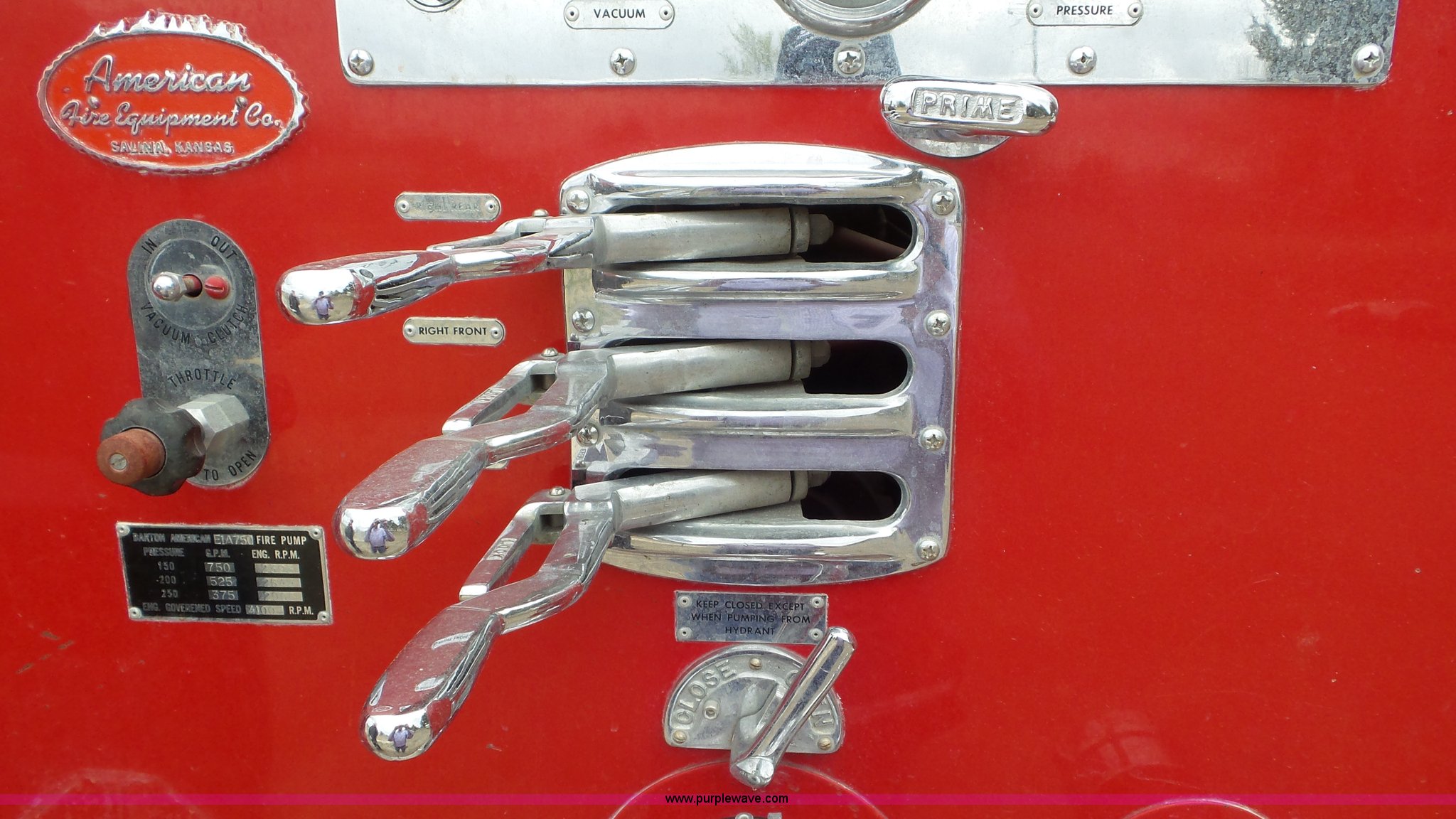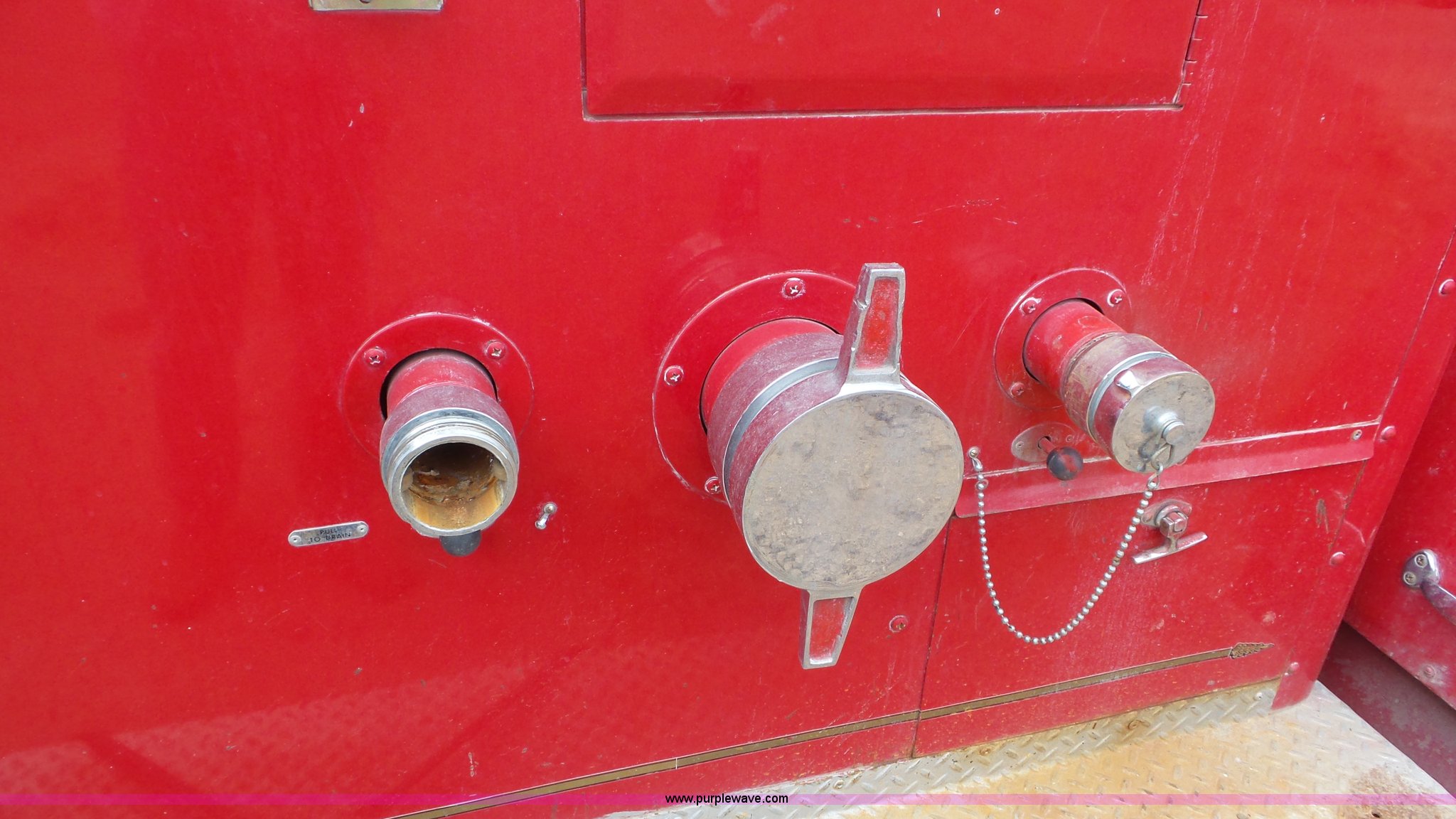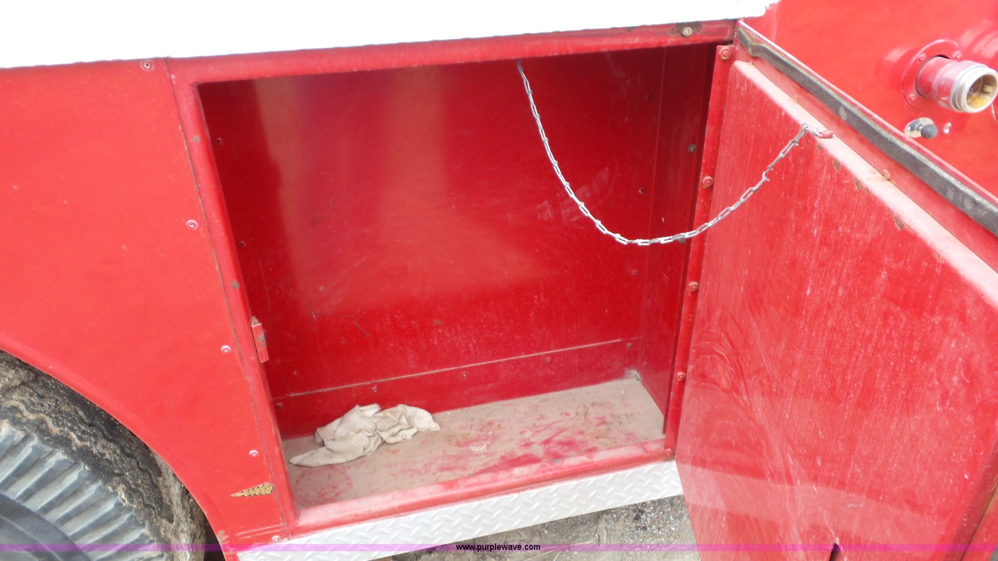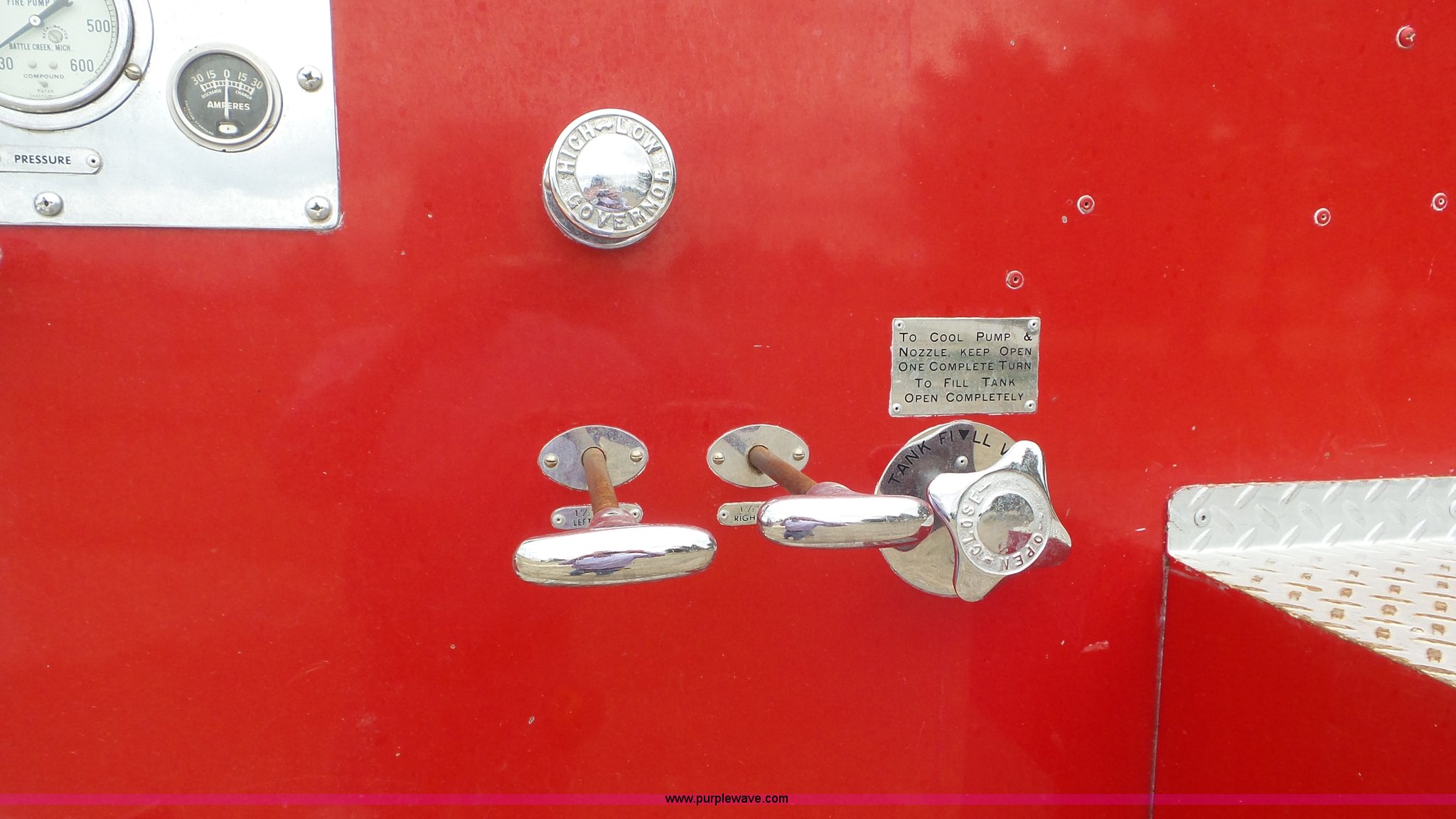 Purple Wave is selling a used Fire Truck or Emergency Vehicle in Kansas. This item is a 1968 Chevrolet fire truck with the following: 8,493 miles on odometer, 366 C.I.D. eight cylinder gas engine, Five speed manual transmission, Single axle, Heat, Suspension seat, 750 gpm pump, Hose, PTO, 9.00-20 tires, Needs brakes and battery