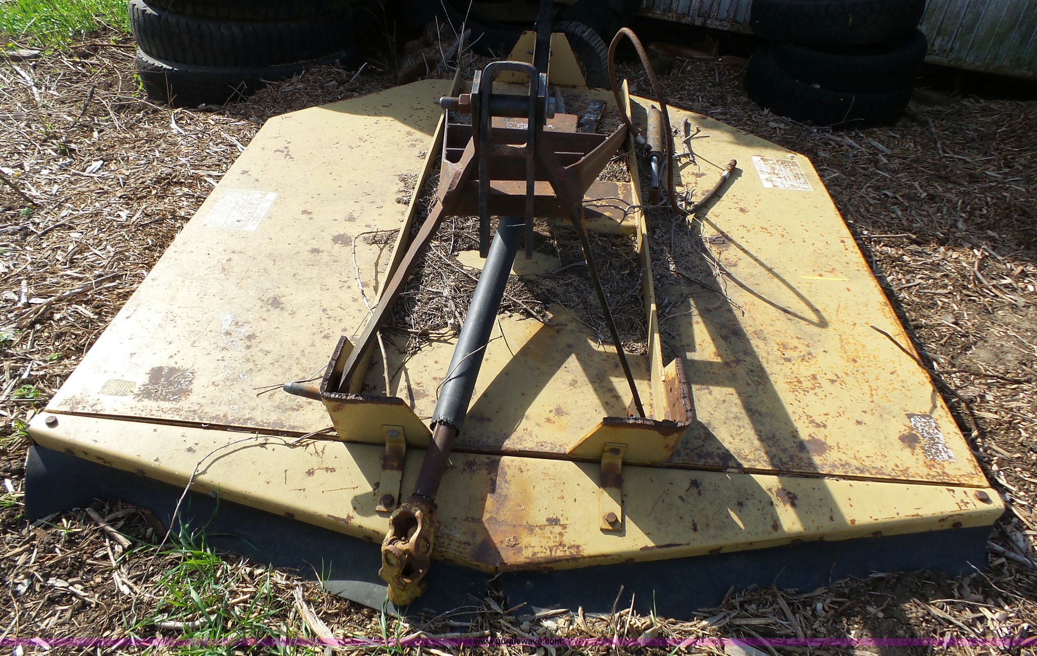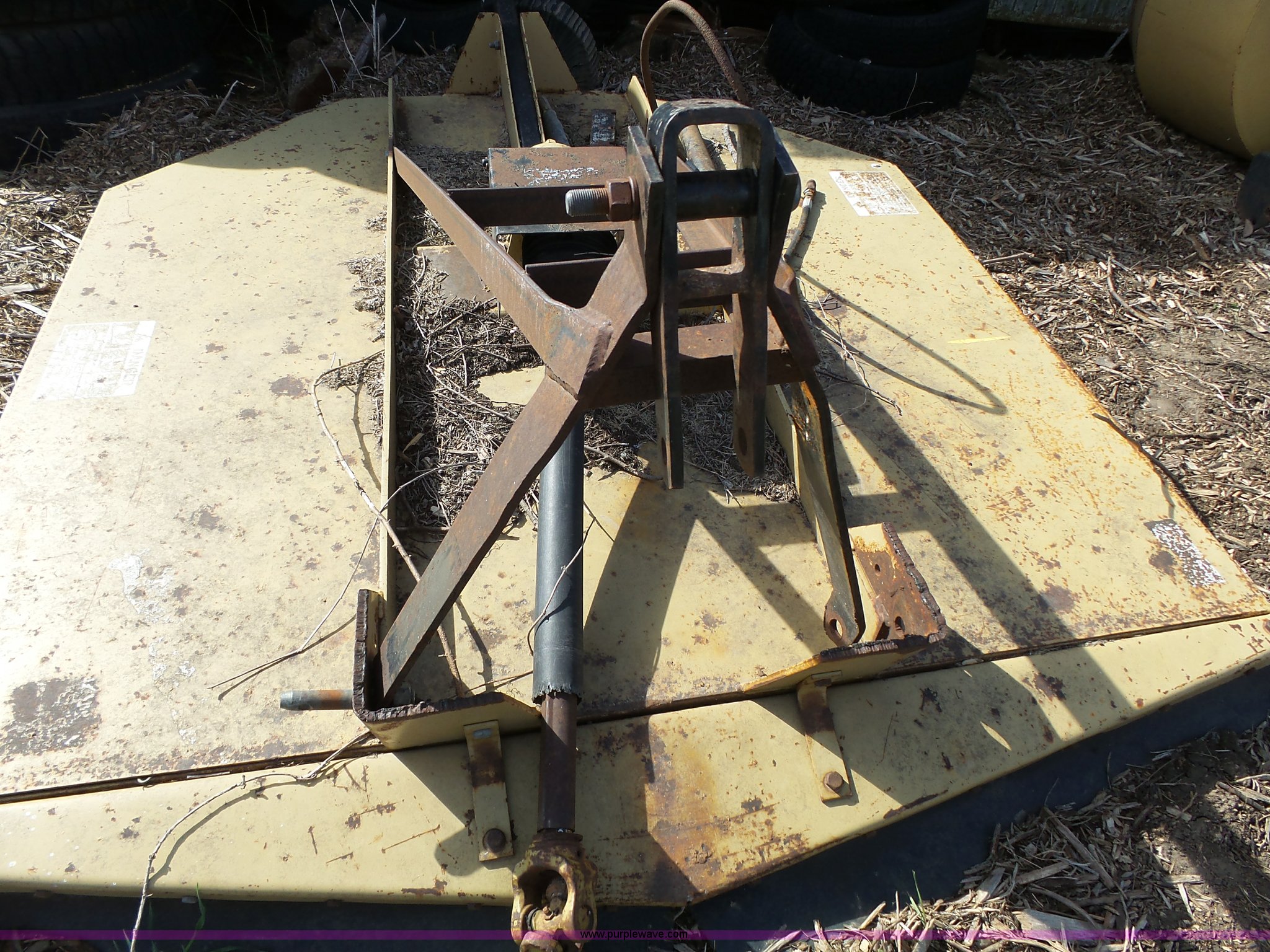 Purple Wave is selling a used Mower, Cutter, Shredder in Kansas. This item is a Land Pride 1572 rotary mower with the following: 540 PTO, Three point, Single rear tire, Three point frame needs work, Has been replaced