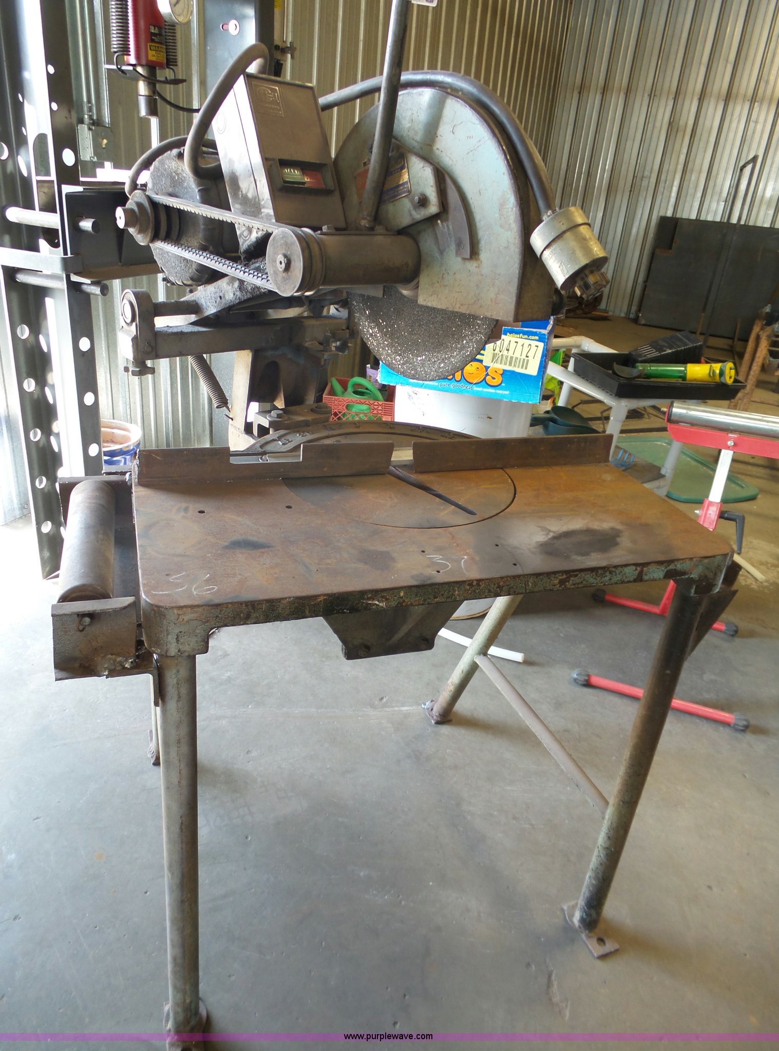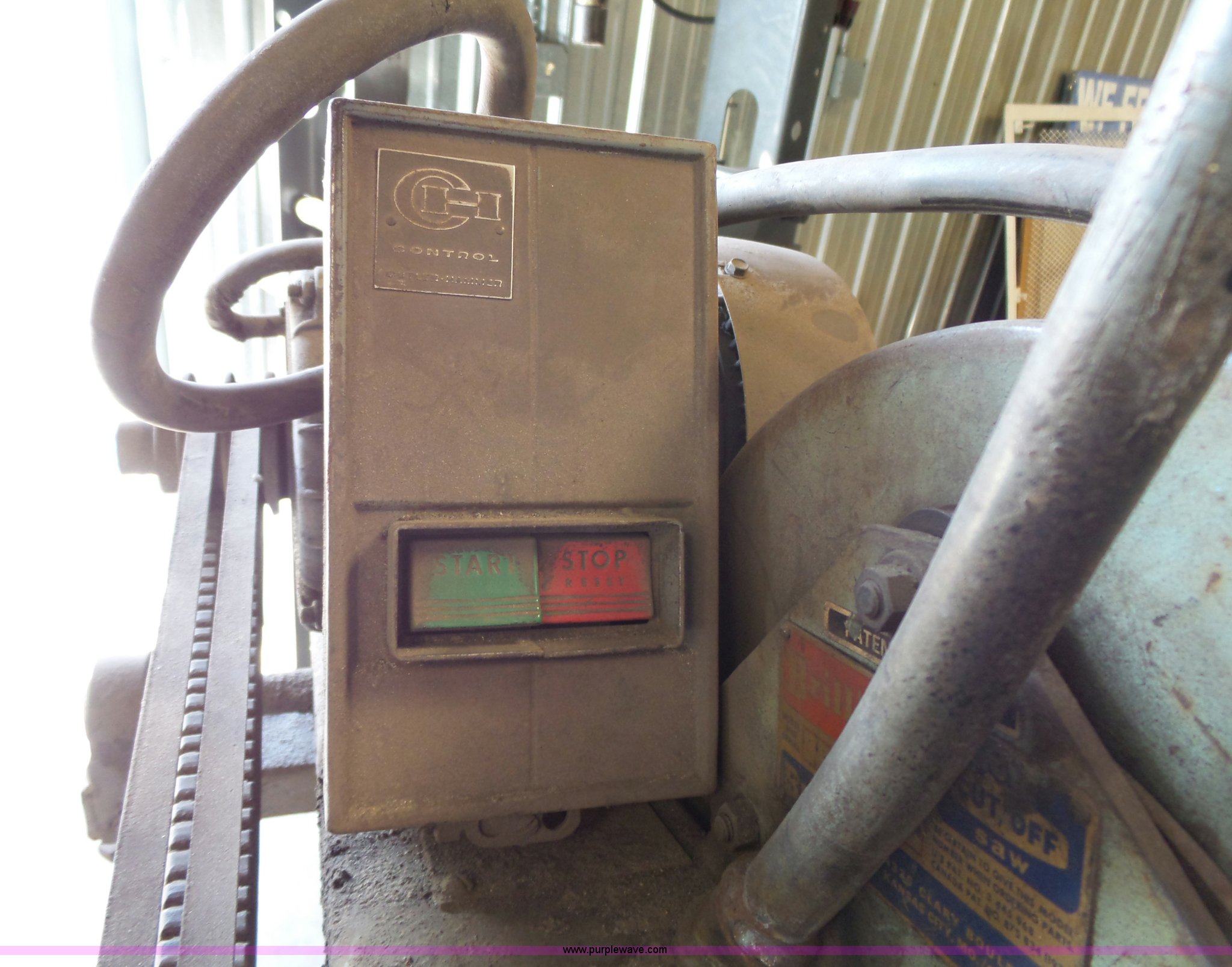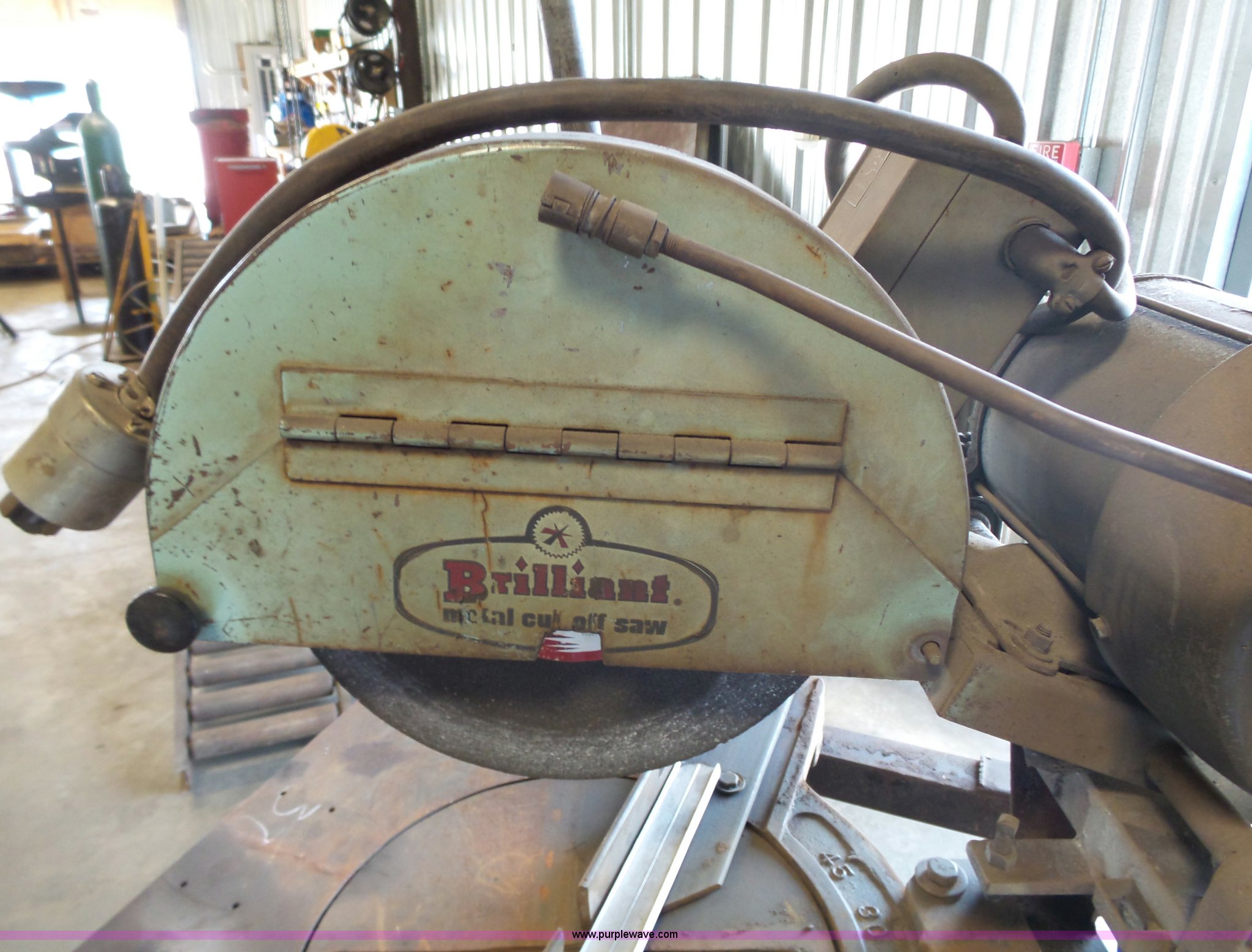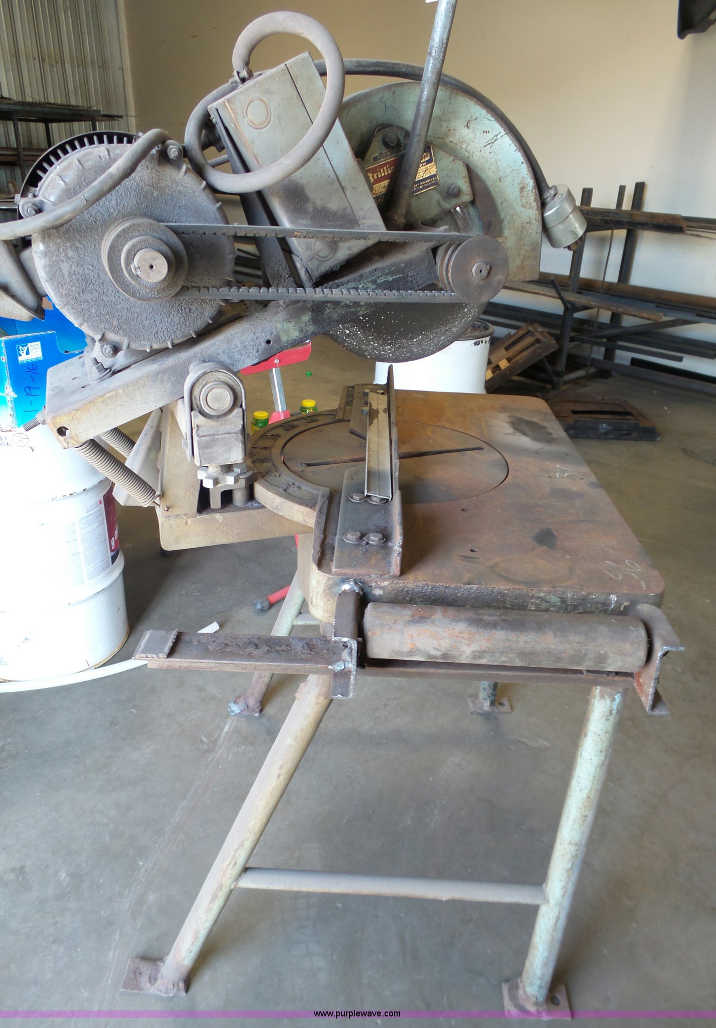 Purple Wave is selling a used Tools in Kansas. This item is a Brilliant metal cut-off saw with the following: Industrial motor, Three phase, 12" blade, Unknown operating condition, Serial BDM3373-10