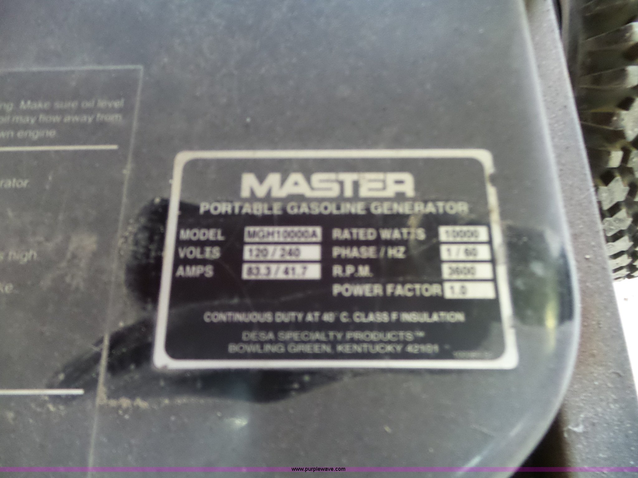 This 1999 Master 10000A generator will sell to the highest bidder regardless of price.