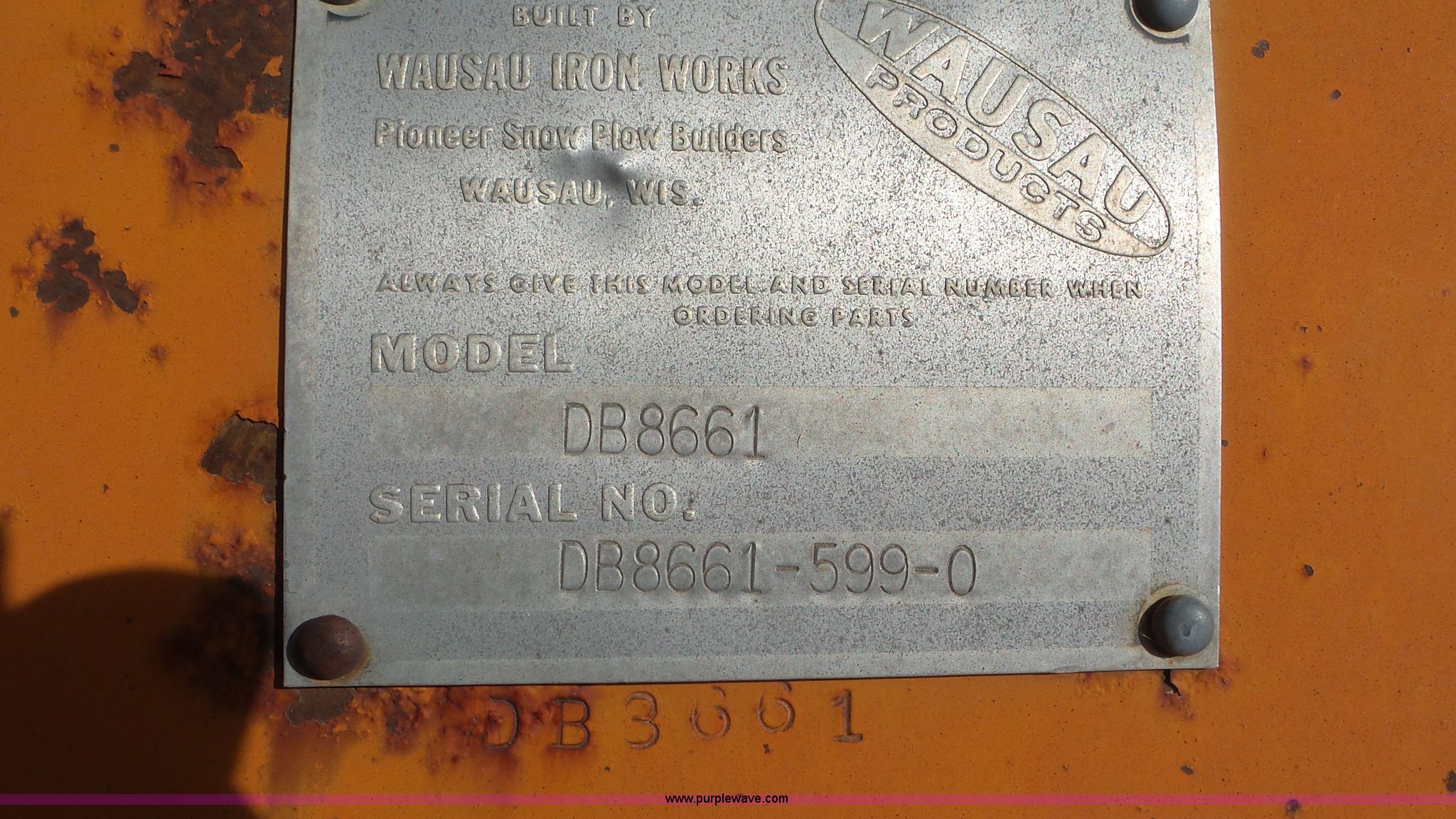 Purple Wave is selling a used Truck Part and Attach. in Kansas. This item is a Wausan snow plow with the following: Model DB8661, 14'W, Hydraulic lift, Mounts, Serial DB8661-599-0