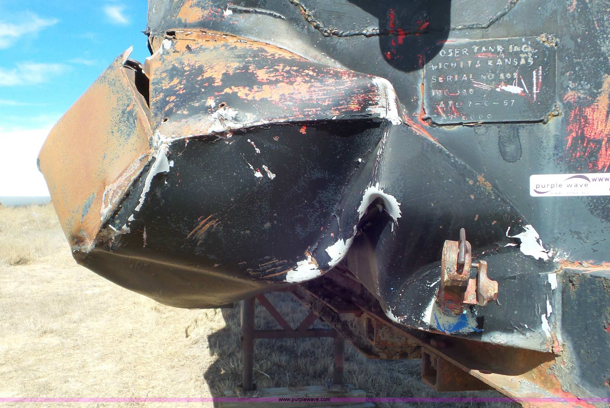Purple Wave is selling a used Tank Trailer in Kansas. This item is a 1957 Moser tank trailer with the following: 6,000 gallon capacity, Fifth wheel hitch, Spring suspension, Air brakes, 9.00R20 tires