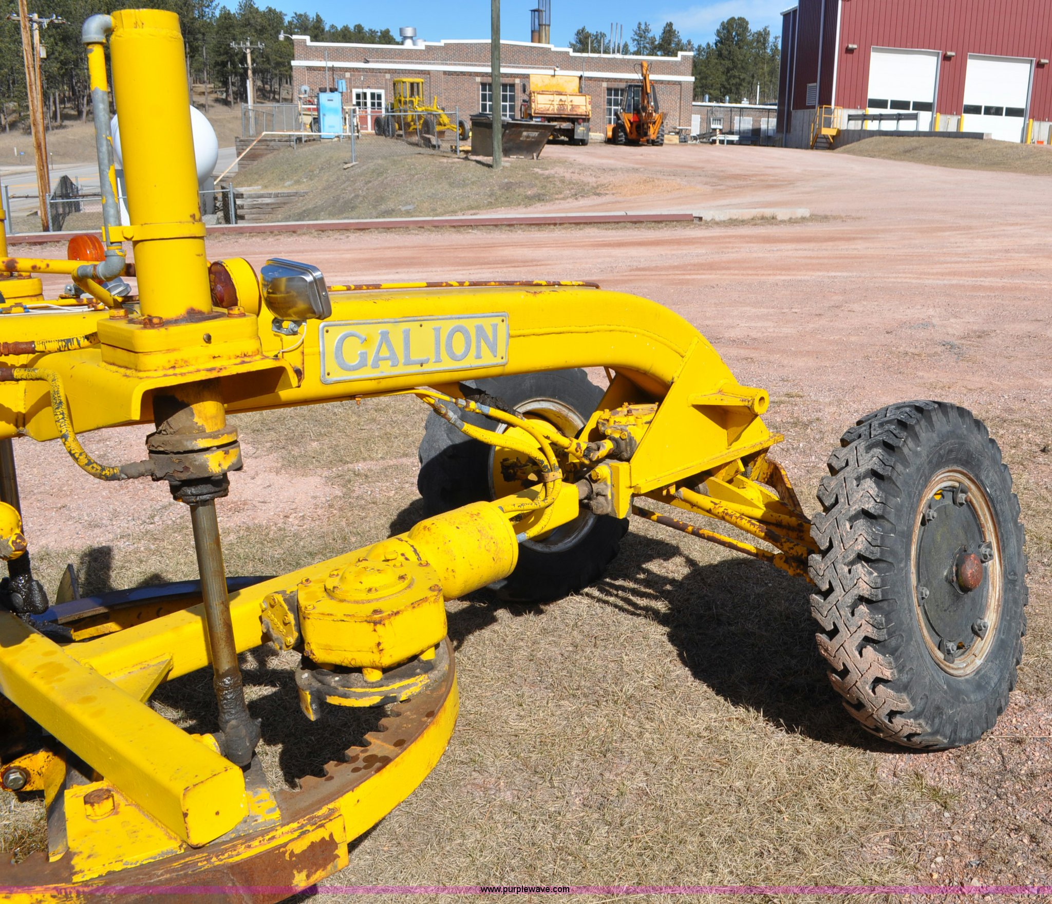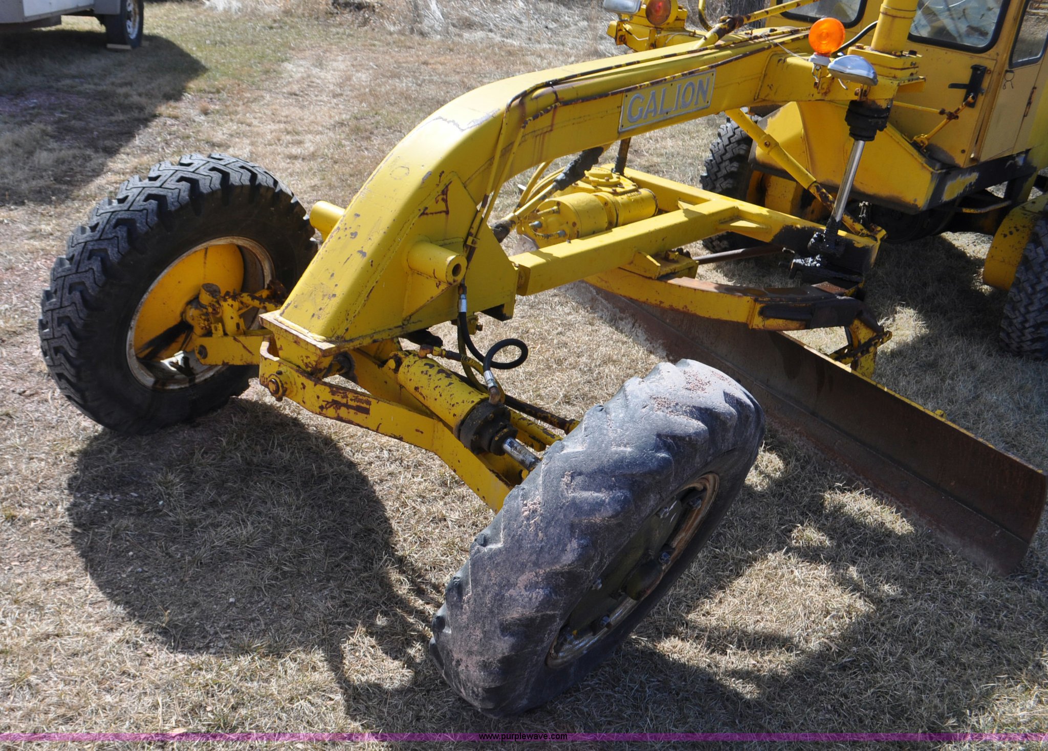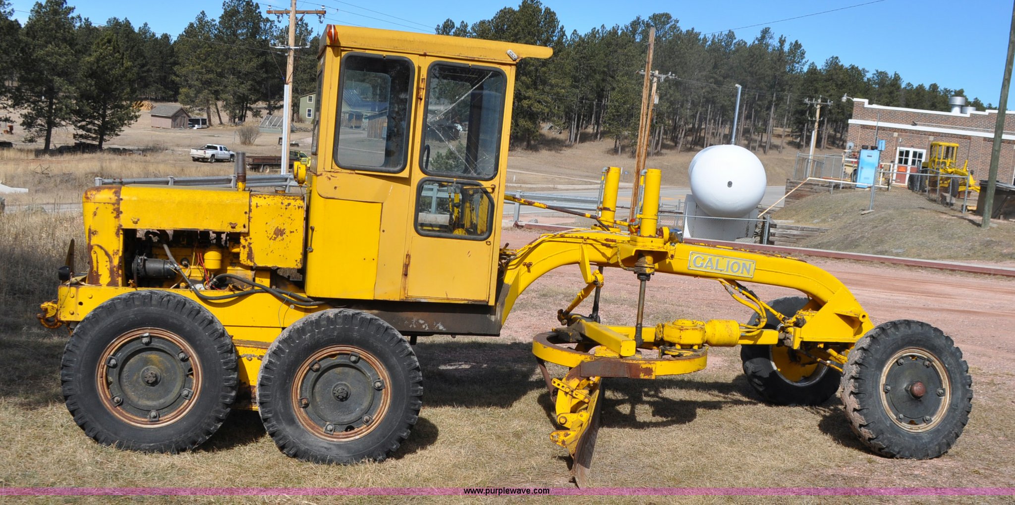 Purple Wave is selling a used Motor Grader in South Dakota. This item is a Galion 530G rigid frame motor grader with the following: Six cylinder gas engine, Direct-drive transmission, 4F-1R gears, EROPS, Heat, 4 control valves, 10W moldboard, 8.25-20 tires, Glass cracked, Serial 503-G2307