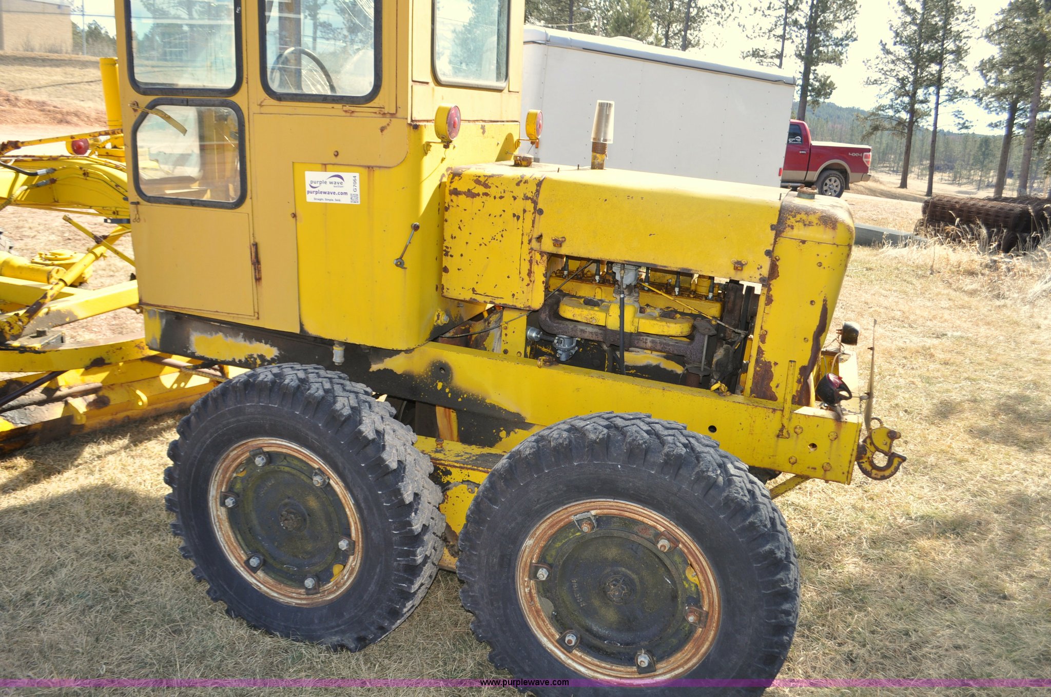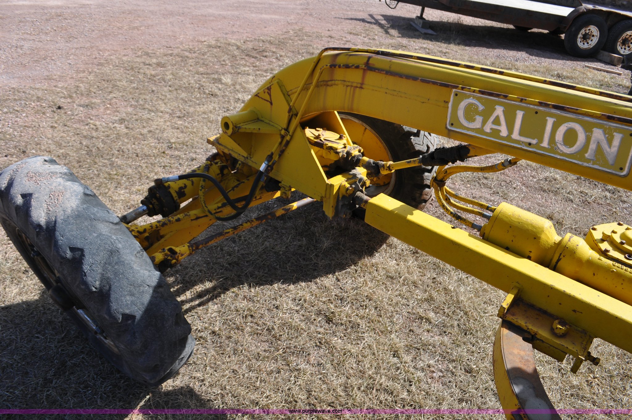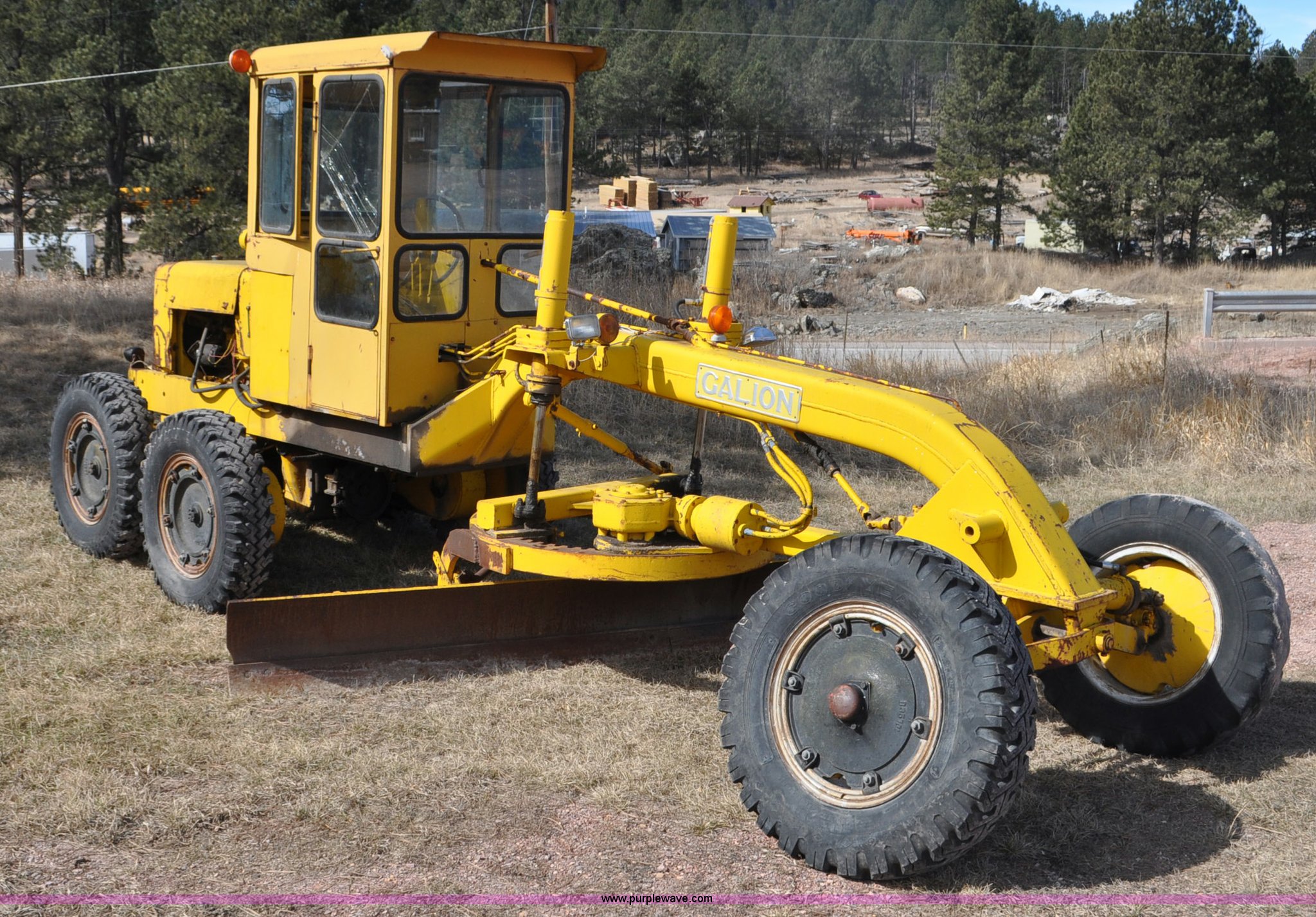Purple Wave is selling a used Motor Grader in South Dakota. This item is a Galion 530G rigid frame motor grader with the following: Six cylinder gas engine, Direct-drive transmission, 4F-1R gears, EROPS, Heat, 4 control valves, 10W moldboard, 8.25-20 tires, Glass cracked, Serial 503-G2307