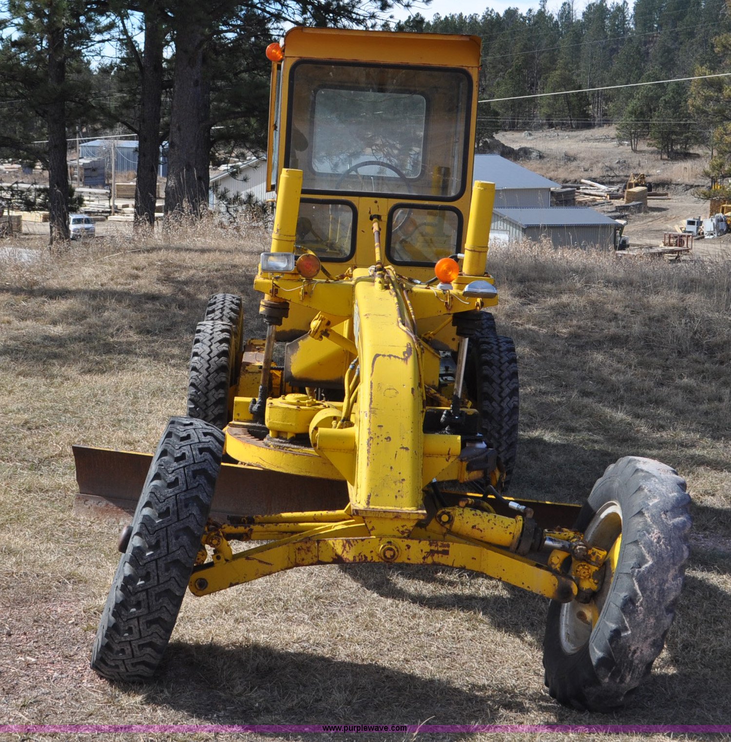 Galion 530G rigid frame motor grader. Six cylinder gas engine, Direct-drive transmission 4F-1R gears, EROPS, Heat, 4 control valves, 10W moldboard, 8.25-20 tires, Glass cracked, Serial 503-G2307. South Dakota Property Management. Custer, SD 57730