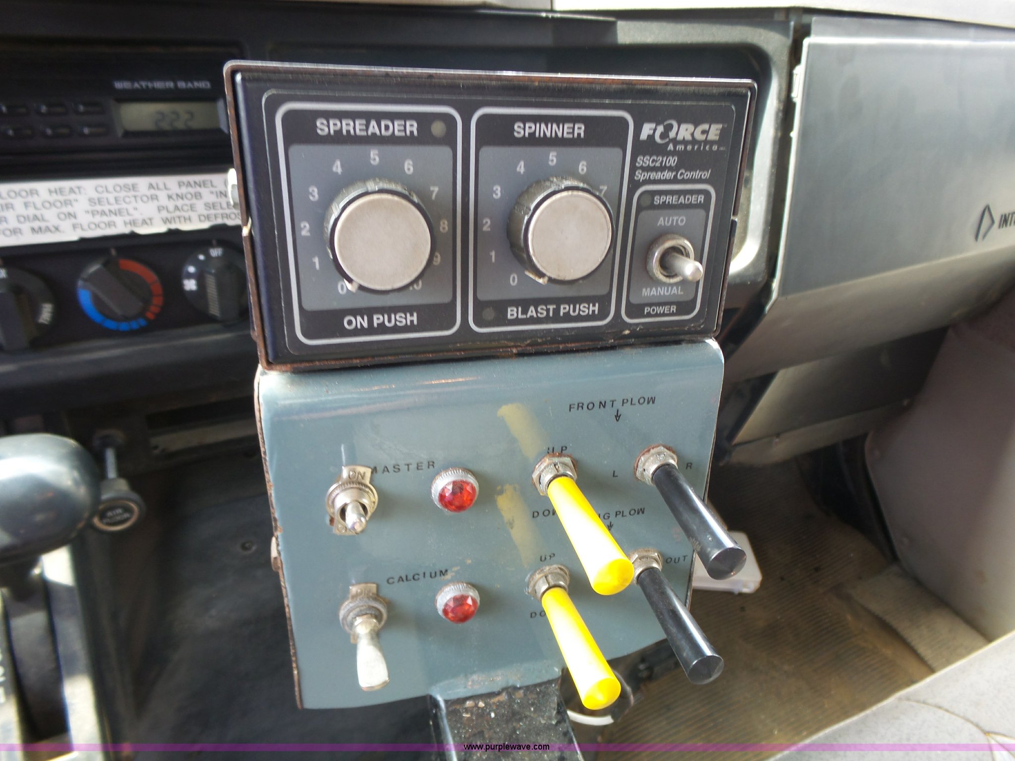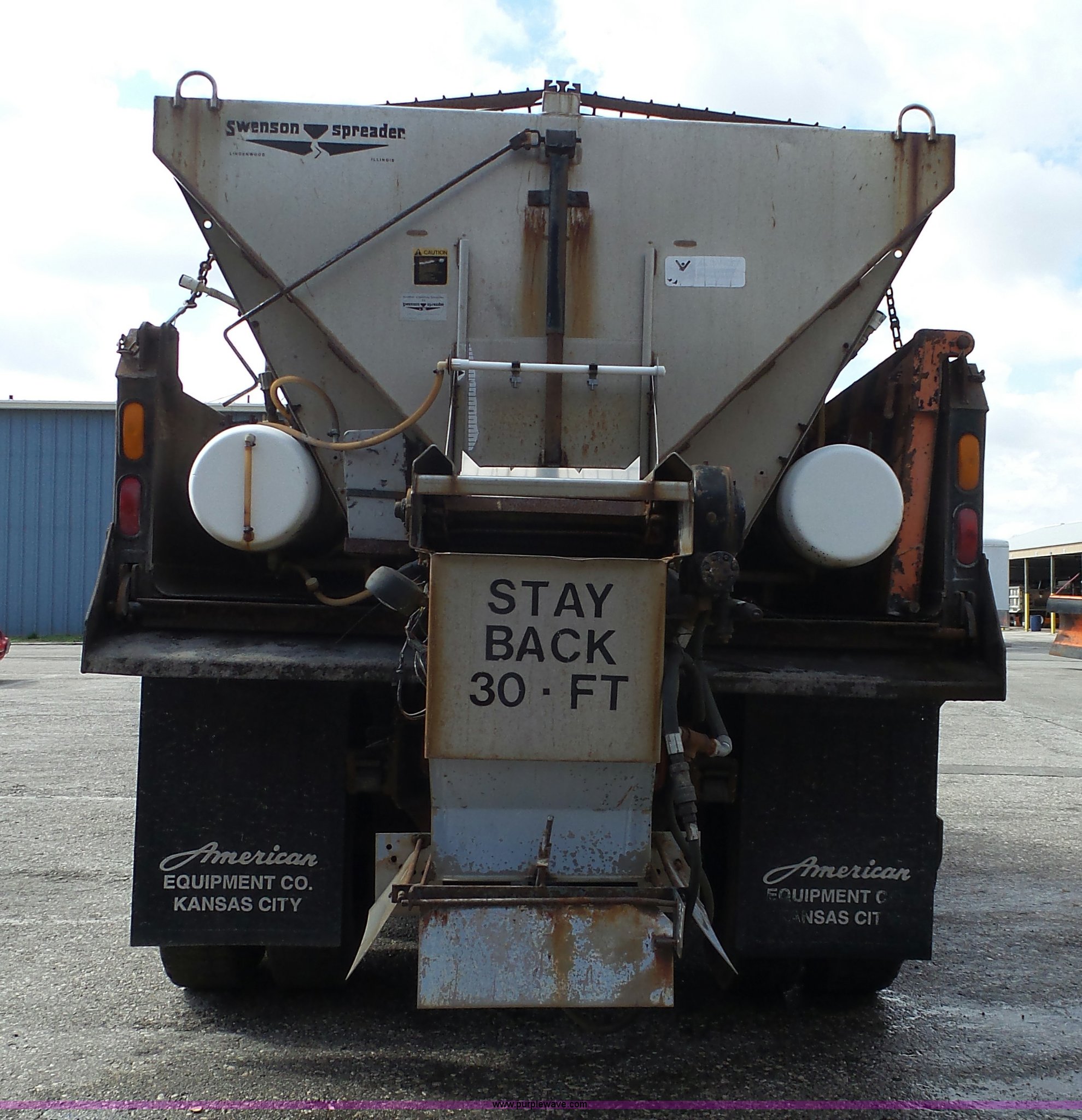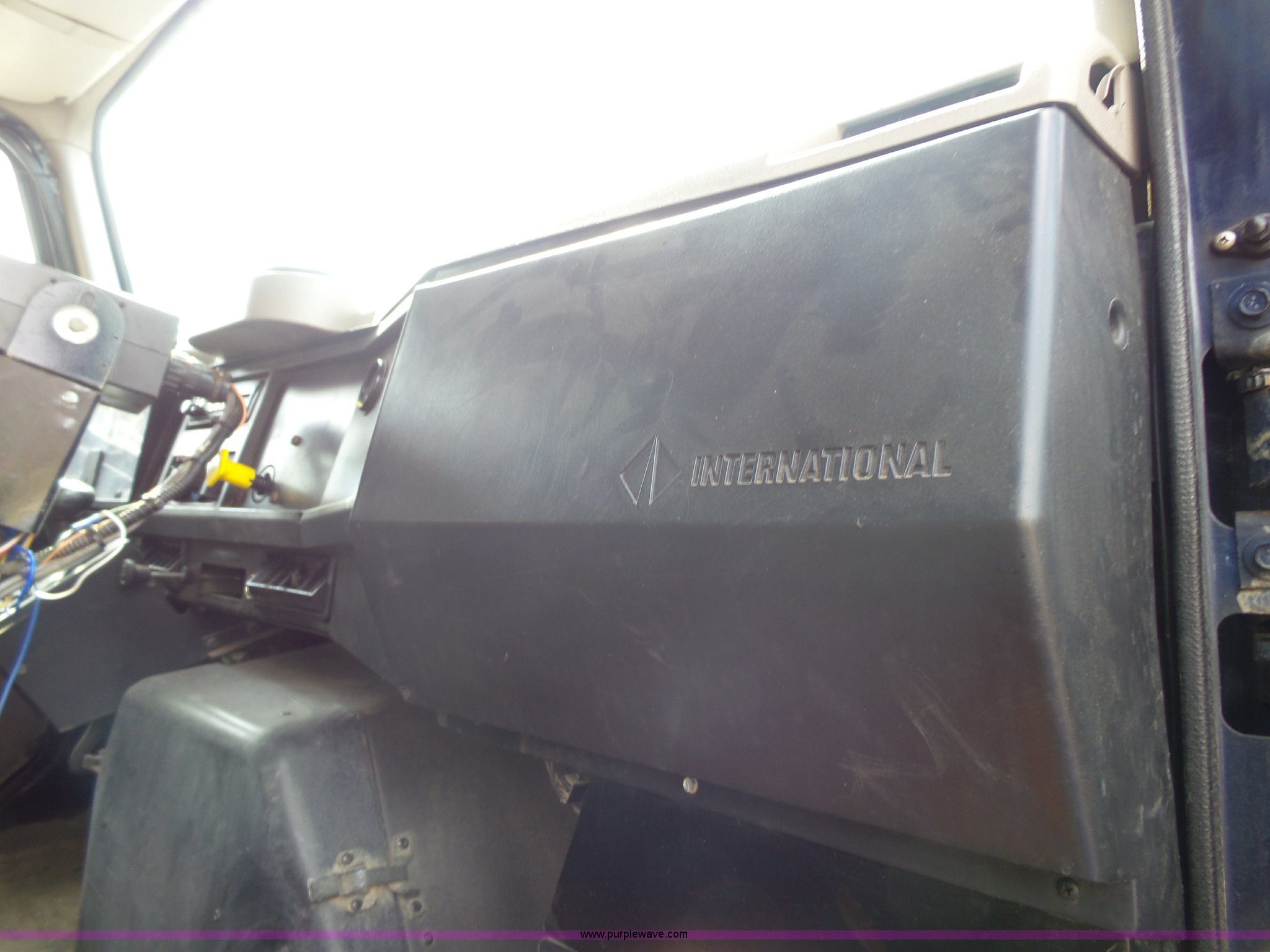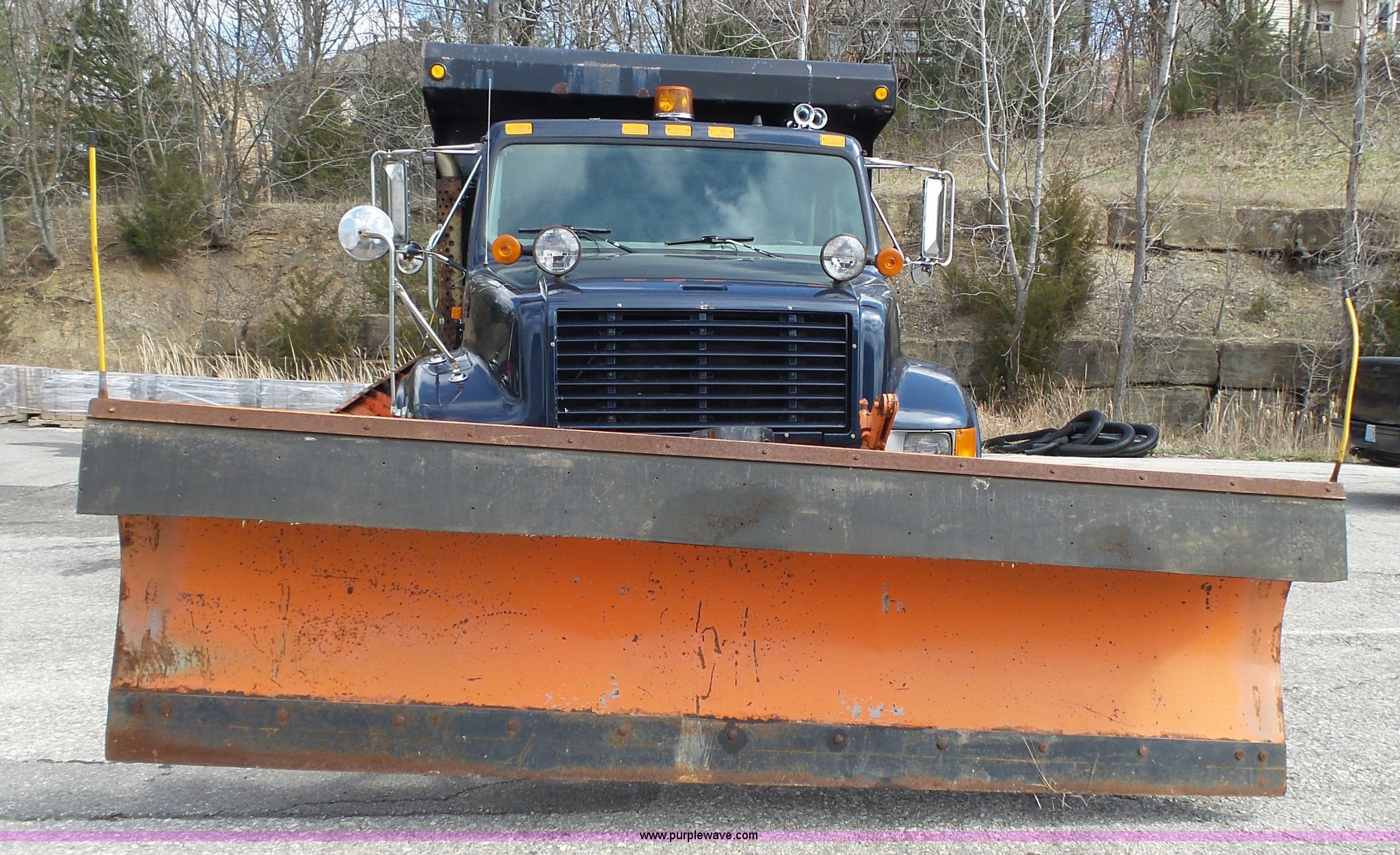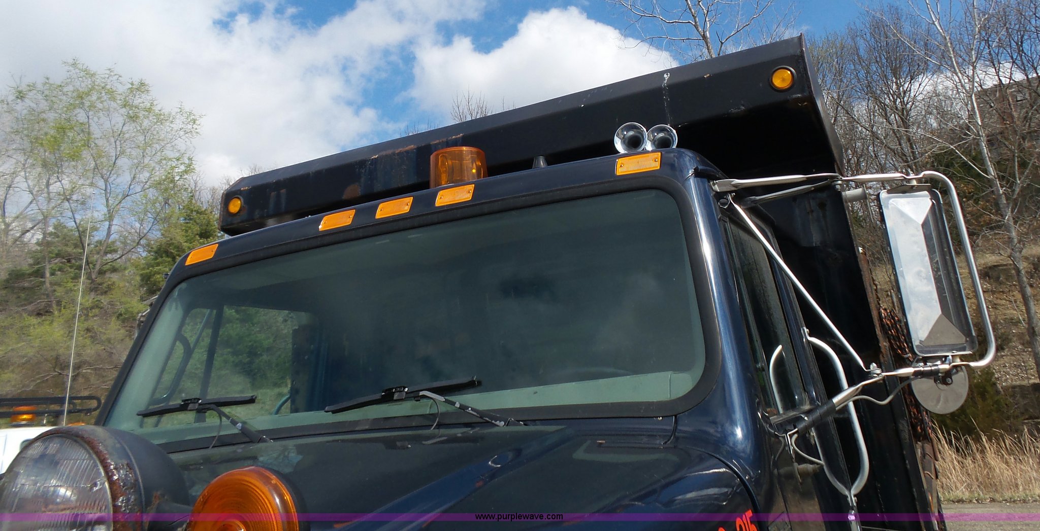 Purple Wave is selling a used Construction Dump Truck in Kansas. This item is a 2001 International 4900 dump truck with the following: 40,669 miles on odometer, 4,561 hours on meter, International DT466E 7.6L L6 turbo diesel engine, Automatic transmission, Single axle, Heat, Cruise, AM/FM/weatherband, Air suspension seat, Heated mirrors, Force SSC2100 spreader control, Strobe light, Backup alarm, Work lights, Chelsea PTO, American steel dump bed, 10'L x 8'W, 27" side height, 5 to 6 yd capacity, Roll over tarp, Single ram hoist, Coats PRB36II 11' plow, 8' side plow, Side markers, Monroe V-Box spreader, Stainless steel, Anti-Ice tanks, Pintle and receiver hitches, Trailer wiring, Single fuel tank, Spring suspension, Air brakes, 152" wheelbase, 11R22.5 tires, GVWR 35,000 lbs, FAWR 12,000 lbs, RWAR 23,000 lbs, Rust, Tailgate included, Unit# 3215