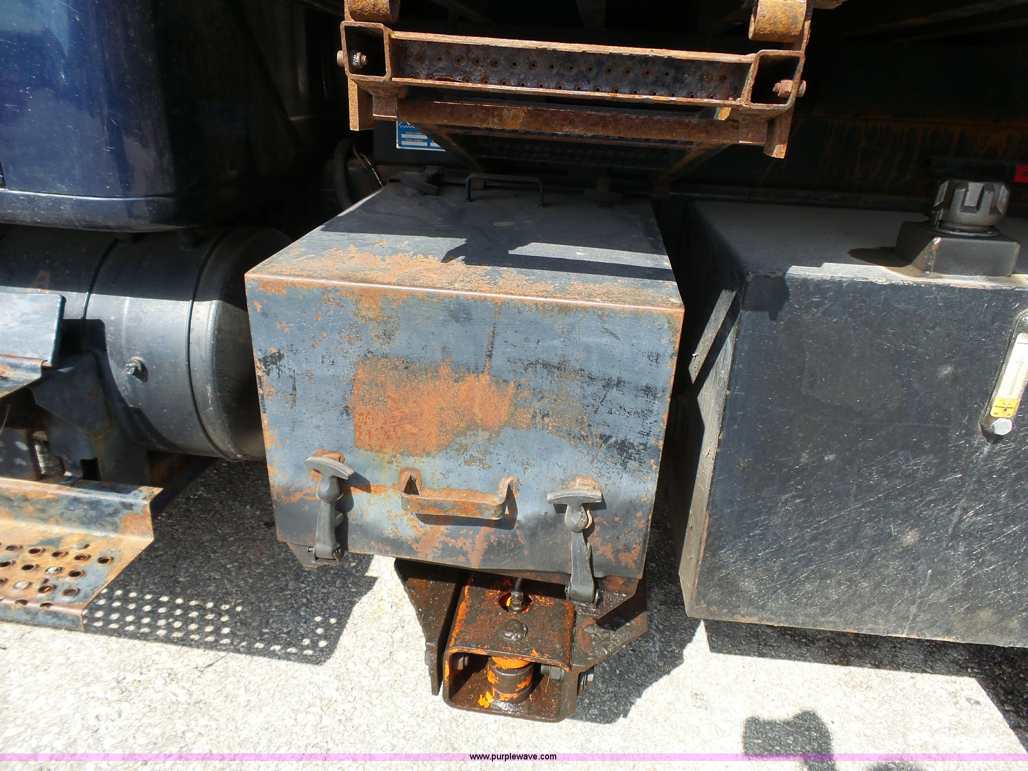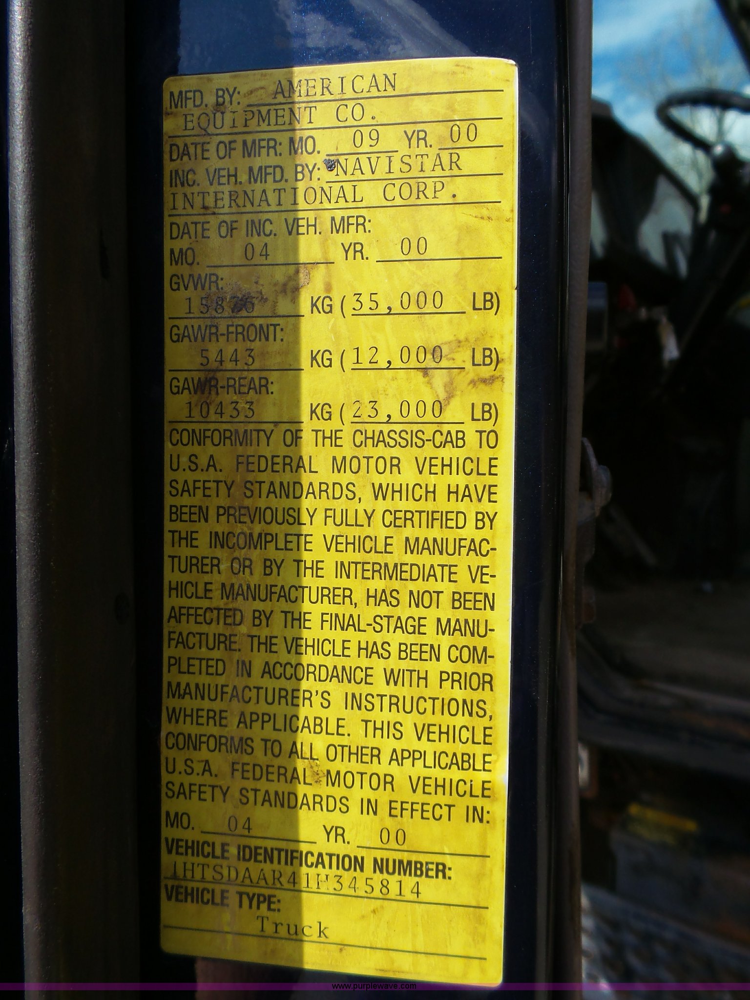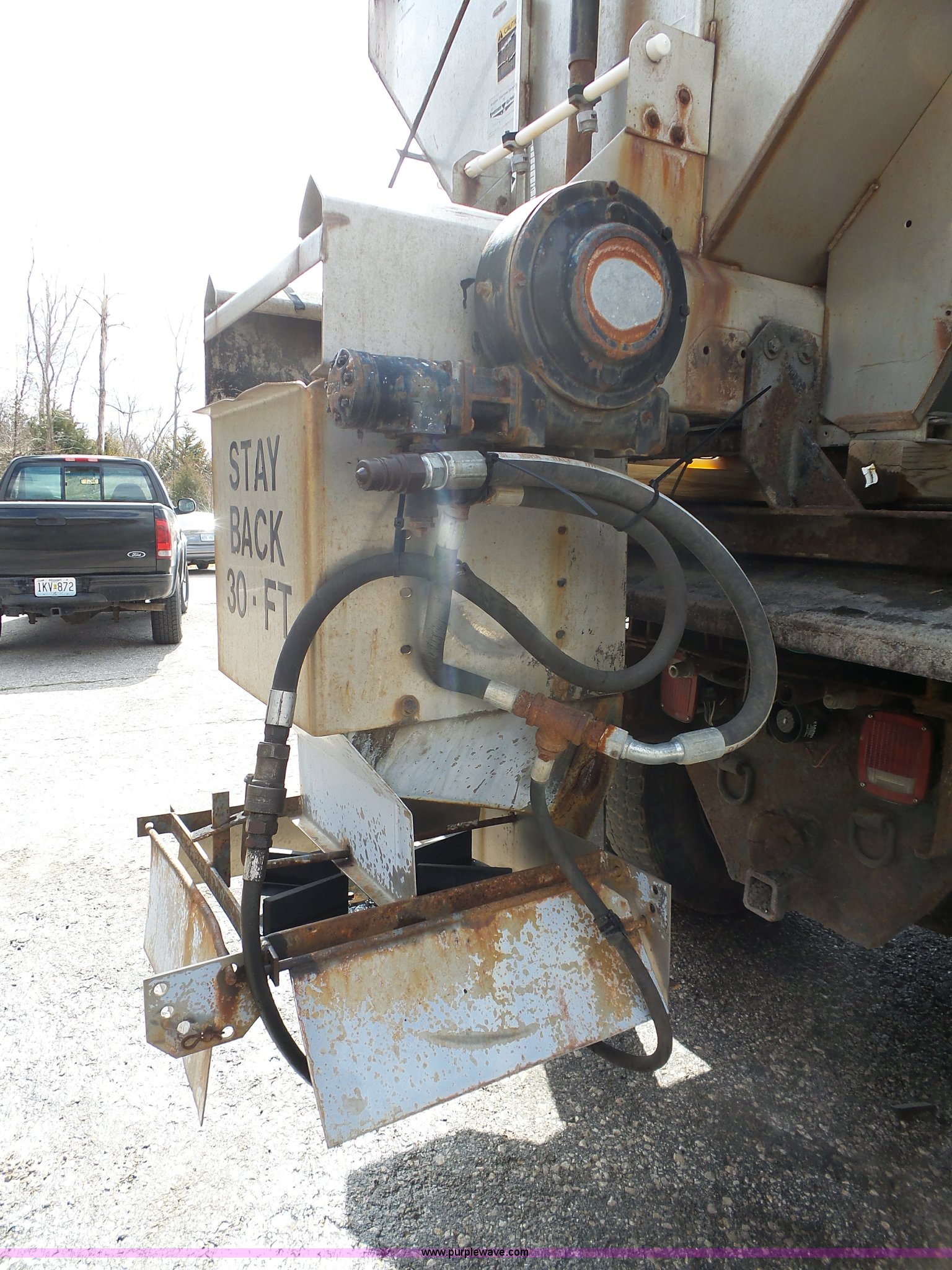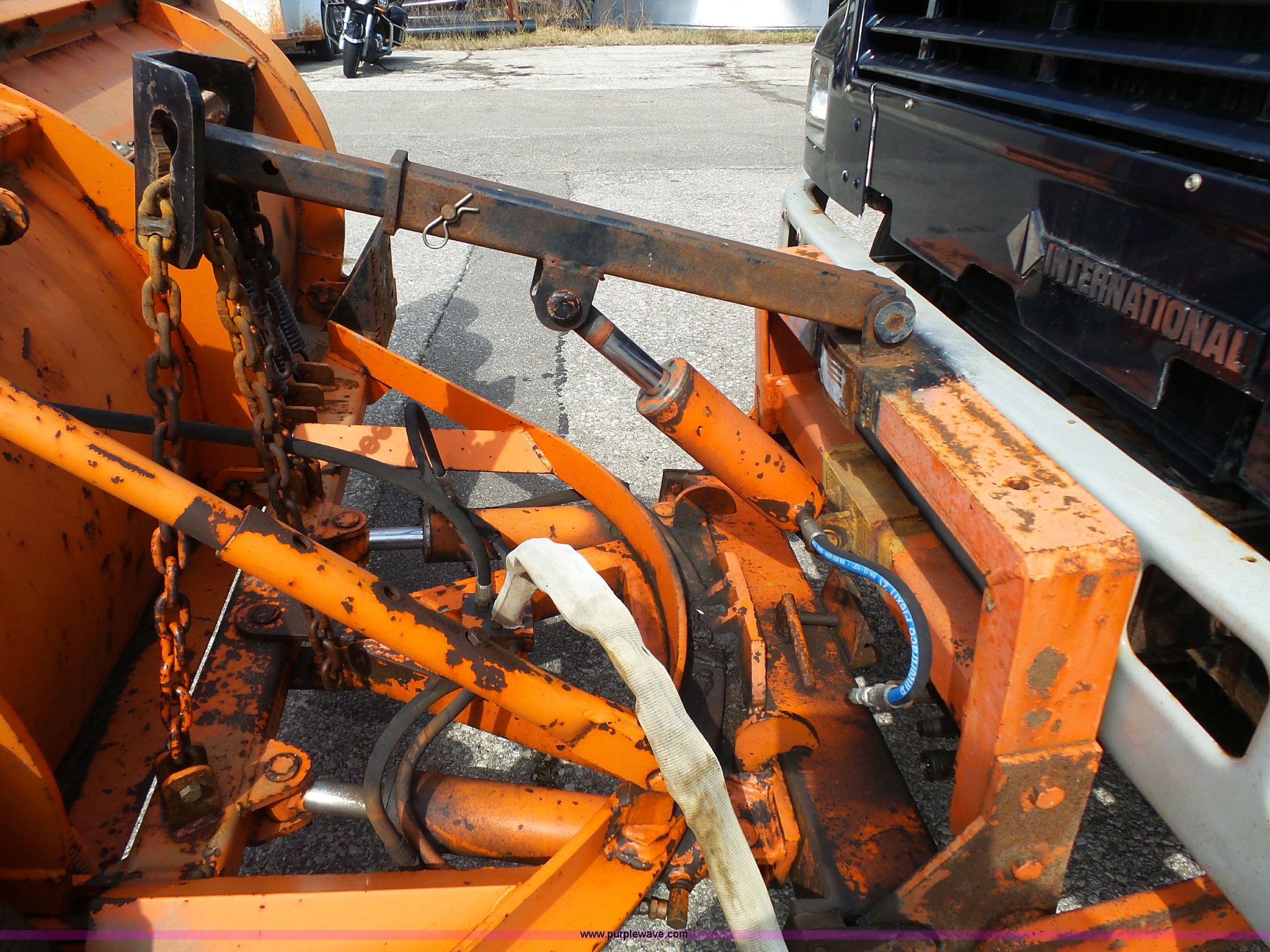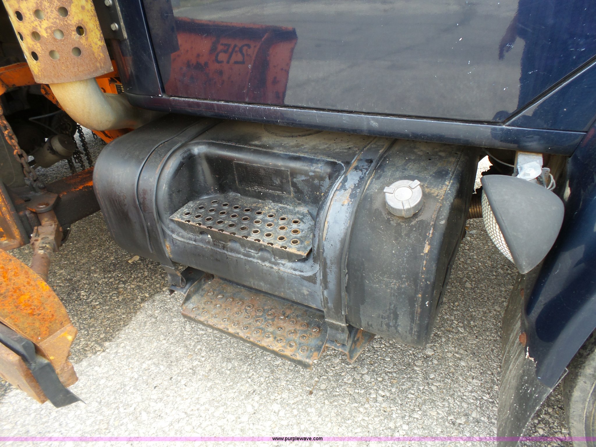 Purple Wave is selling a used Construction Dump Truck in Kansas. This item is a 2001 International 4900 dump truck with the following: 40,669 miles on odometer, 4,561 hours on meter, International DT466E 7.6L L6 turbo diesel engine, Automatic transmission, Single axle, Heat, Cruise, AM/FM/weatherband, Air suspension seat, Heated mirrors, Force SSC2100 spreader control, Strobe light, Backup alarm, Work lights, Chelsea PTO, American steel dump bed, 10'L x 8'W, 27" side height, 5 to 6 yd capacity, Roll over tarp, Single ram hoist, Coats PRB36II 11' plow, 8' side plow, Side markers, Monroe V-Box spreader, Stainless steel, Anti-Ice tanks, Pintle and receiver hitches, Trailer wiring, Single fuel tank, Spring suspension, Air brakes, 152" wheelbase, 11R22.5 tires, GVWR 35,000 lbs, FAWR 12,000 lbs, RWAR 23,000 lbs, Rust, Tailgate included, Unit# 3215