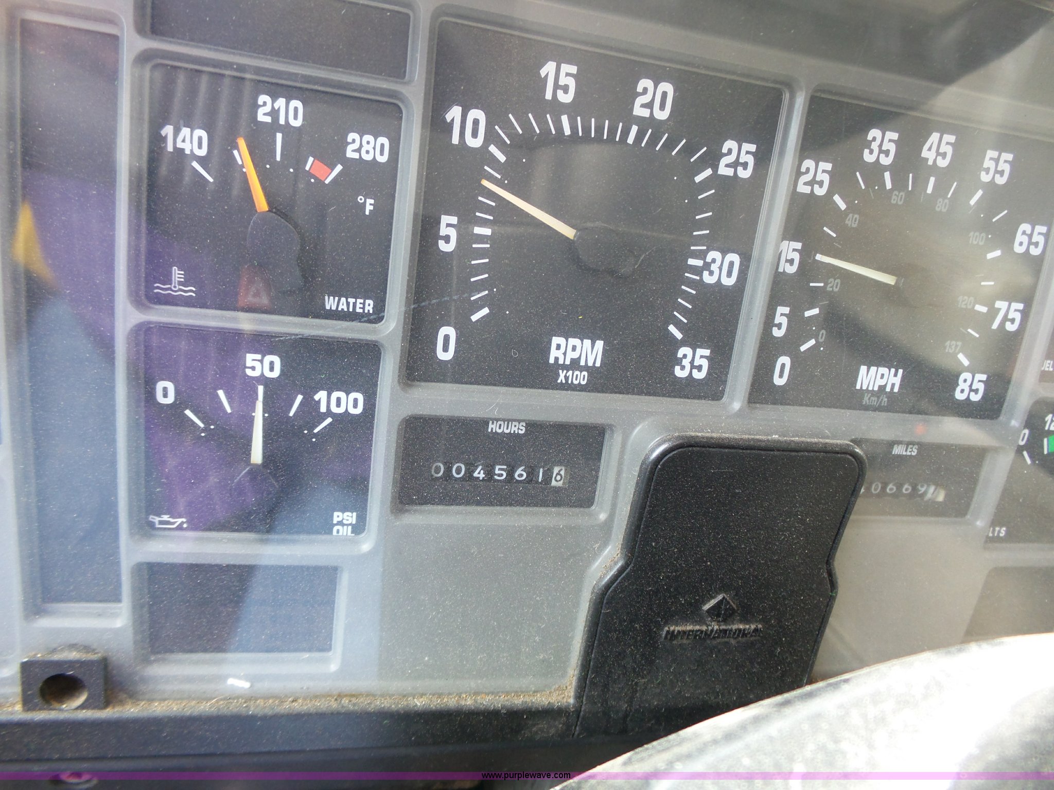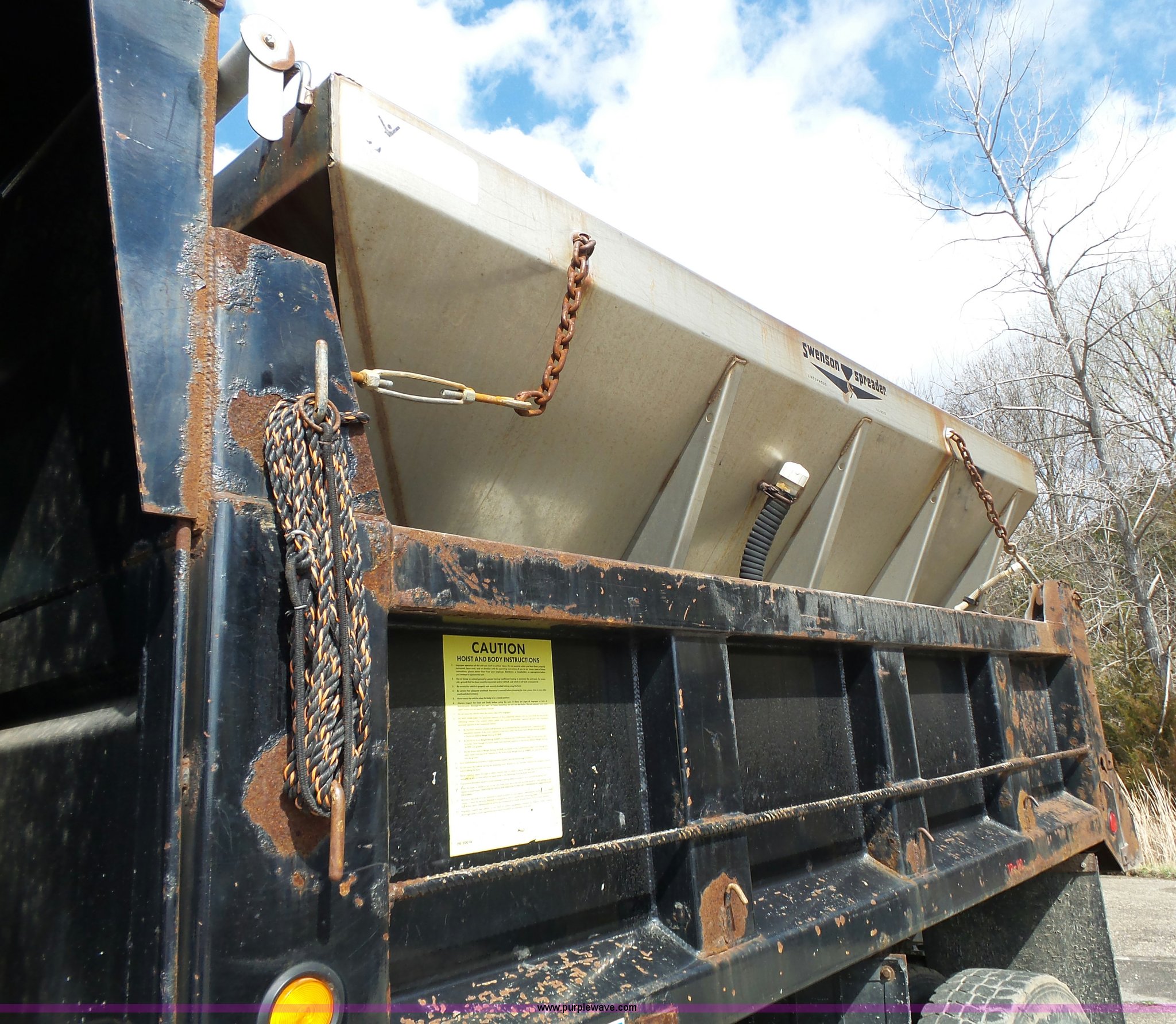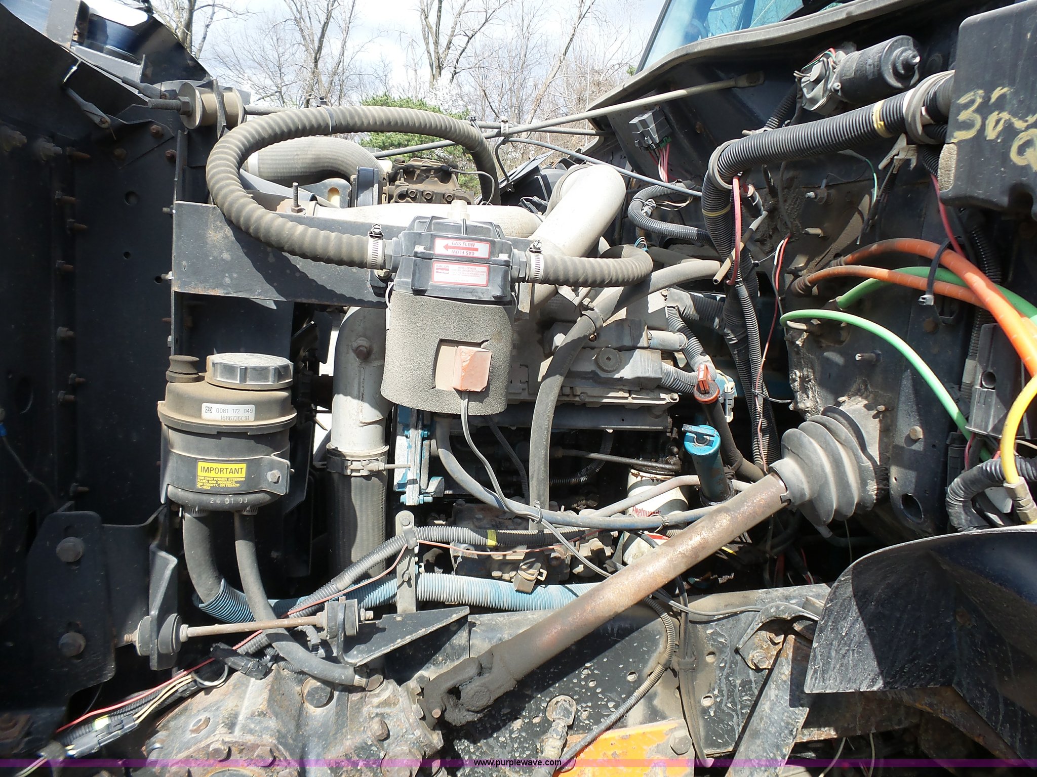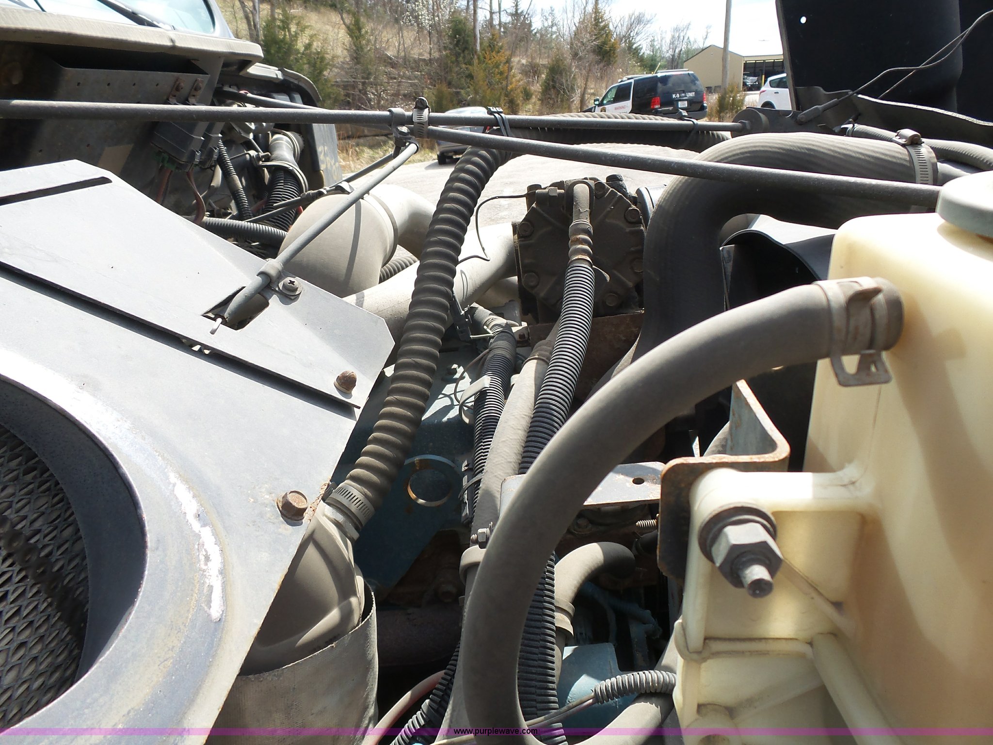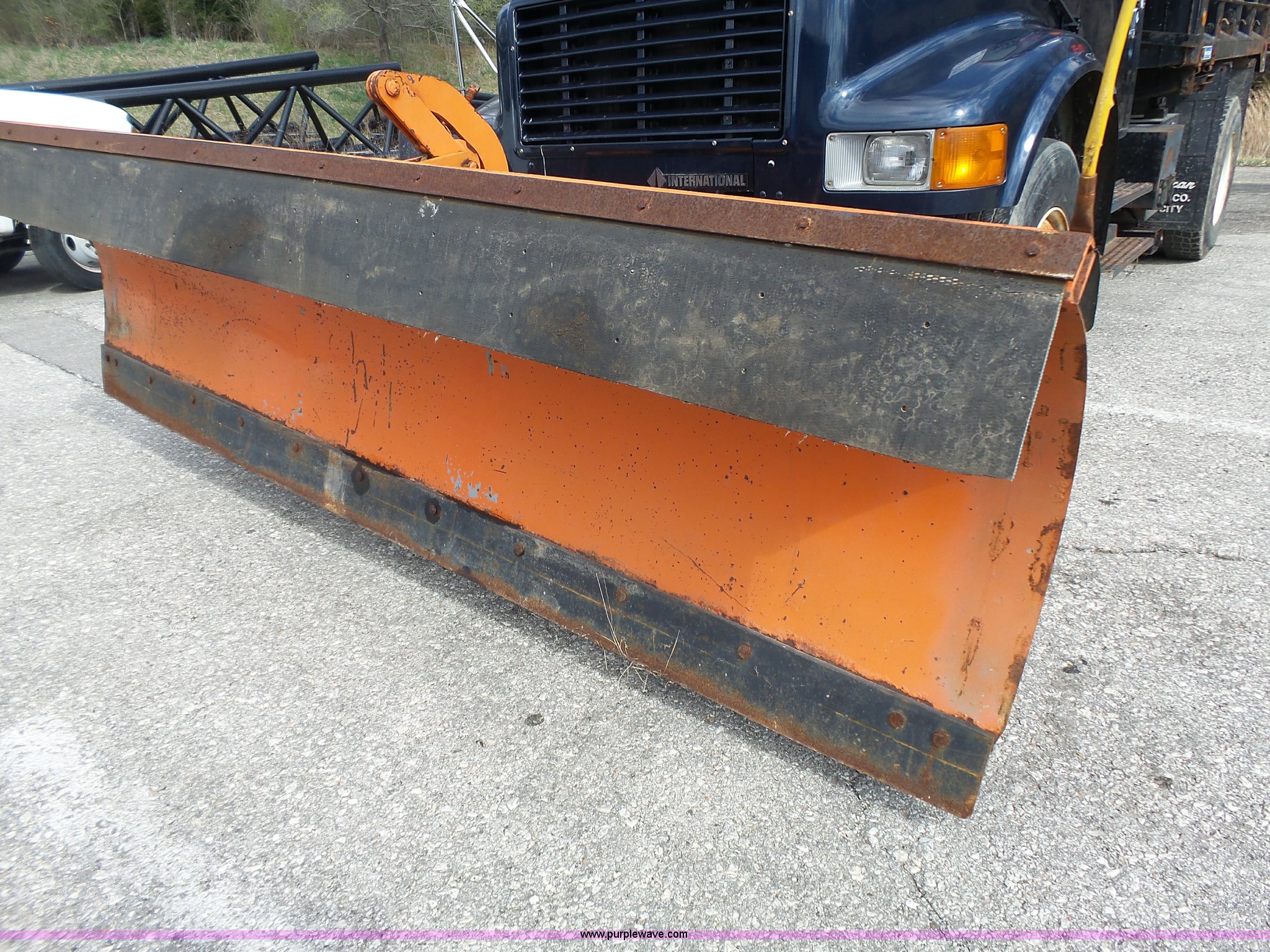 Purple Wave is selling a used Construction Dump Truck in Kansas. This item is a 2001 International 4900 dump truck with the following: 40,669 miles on odometer, 4,561 hours on meter, International DT466E 7.6L L6 turbo diesel engine, Automatic transmission, Single axle, Heat, Cruise, AM/FM/weatherband, Air suspension seat, Heated mirrors, Force SSC2100 spreader control, Strobe light, Backup alarm, Work lights, Chelsea PTO, American steel dump bed, 10'L x 8'W, 27" side height, 5 to 6 yd capacity, Roll over tarp, Single ram hoist, Coats PRB36II 11' plow, 8' side plow, Side markers, Monroe V-Box spreader, Stainless steel, Anti-Ice tanks, Pintle and receiver hitches, Trailer wiring, Single fuel tank, Spring suspension, Air brakes, 152" wheelbase, 11R22.5 tires, GVWR 35,000 lbs, FAWR 12,000 lbs, RWAR 23,000 lbs, Rust, Tailgate included, Unit# 3215
