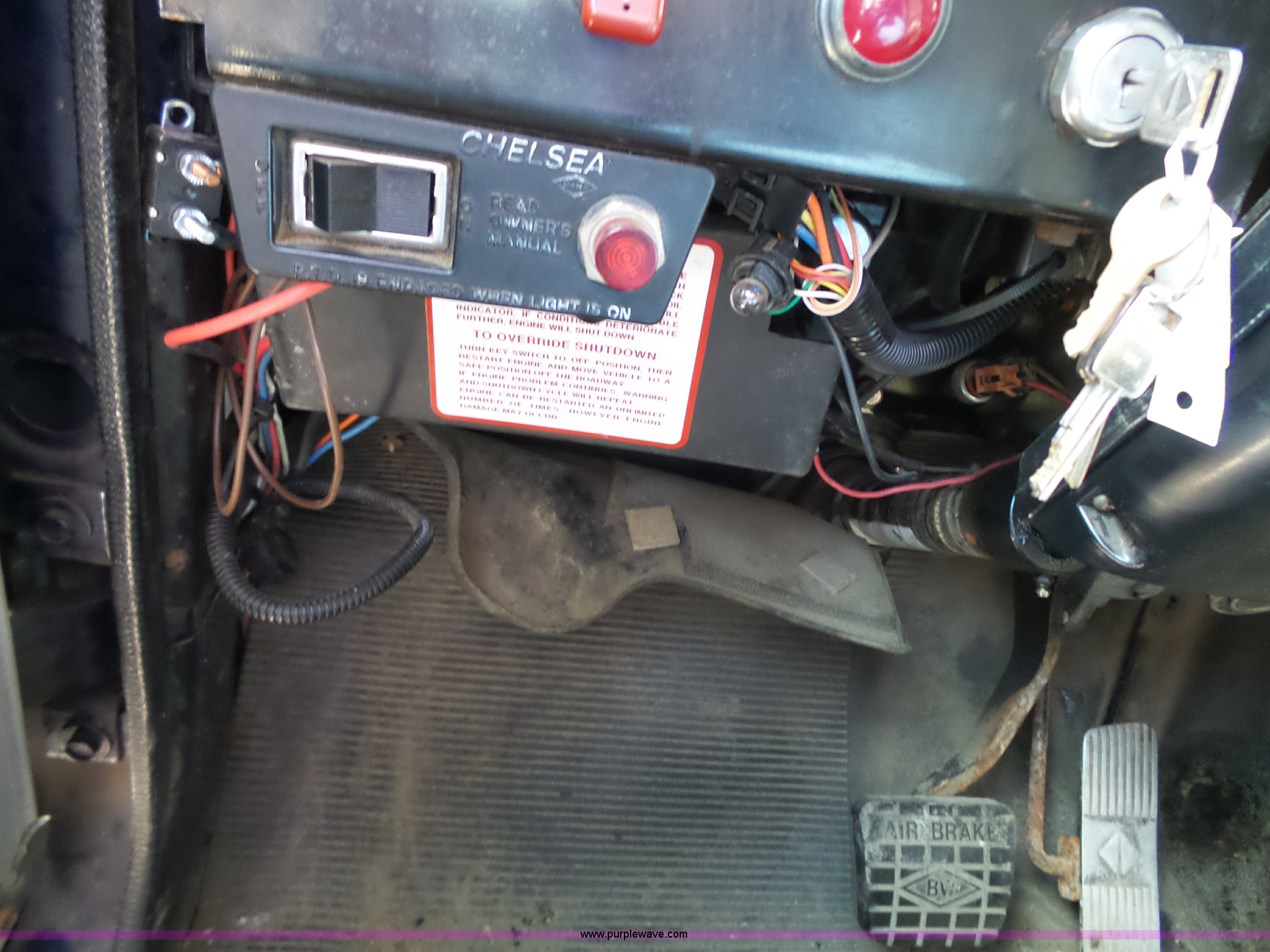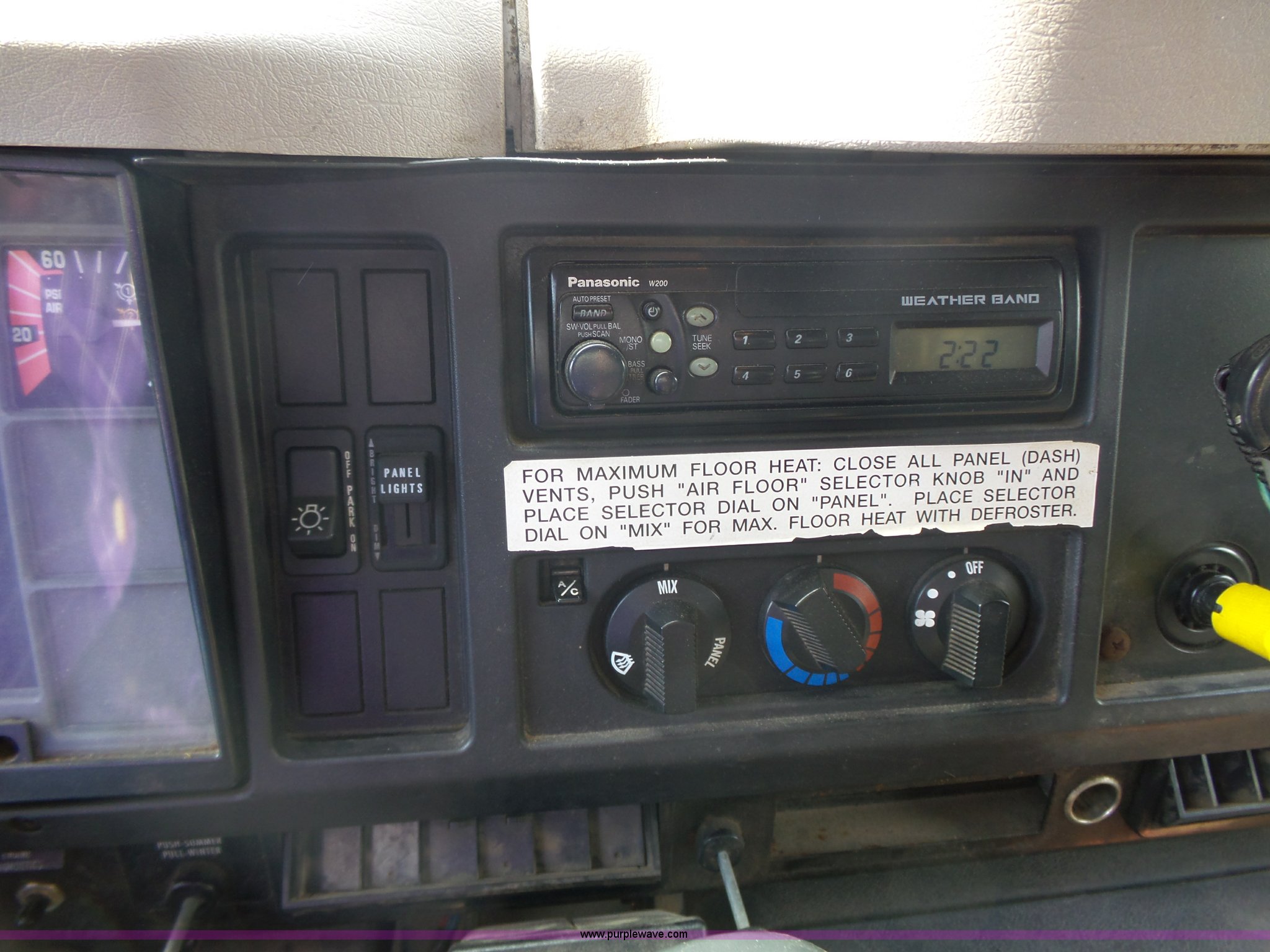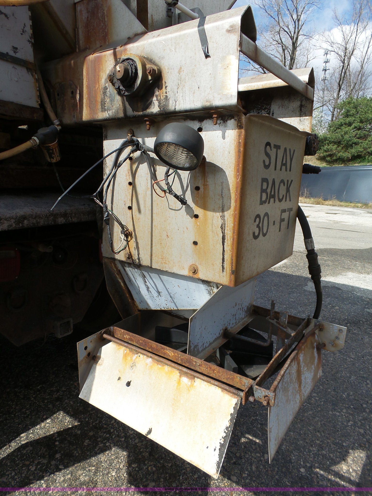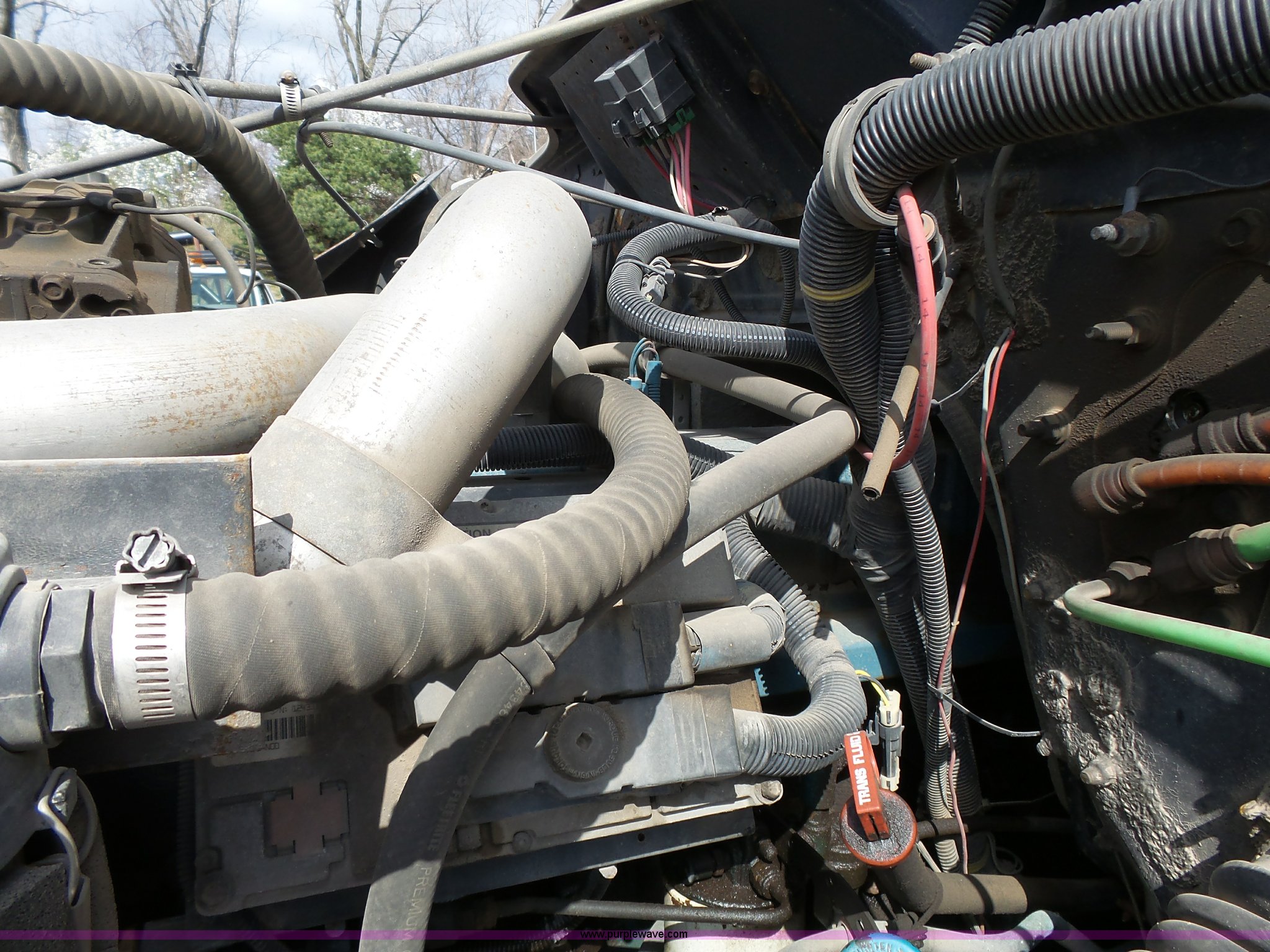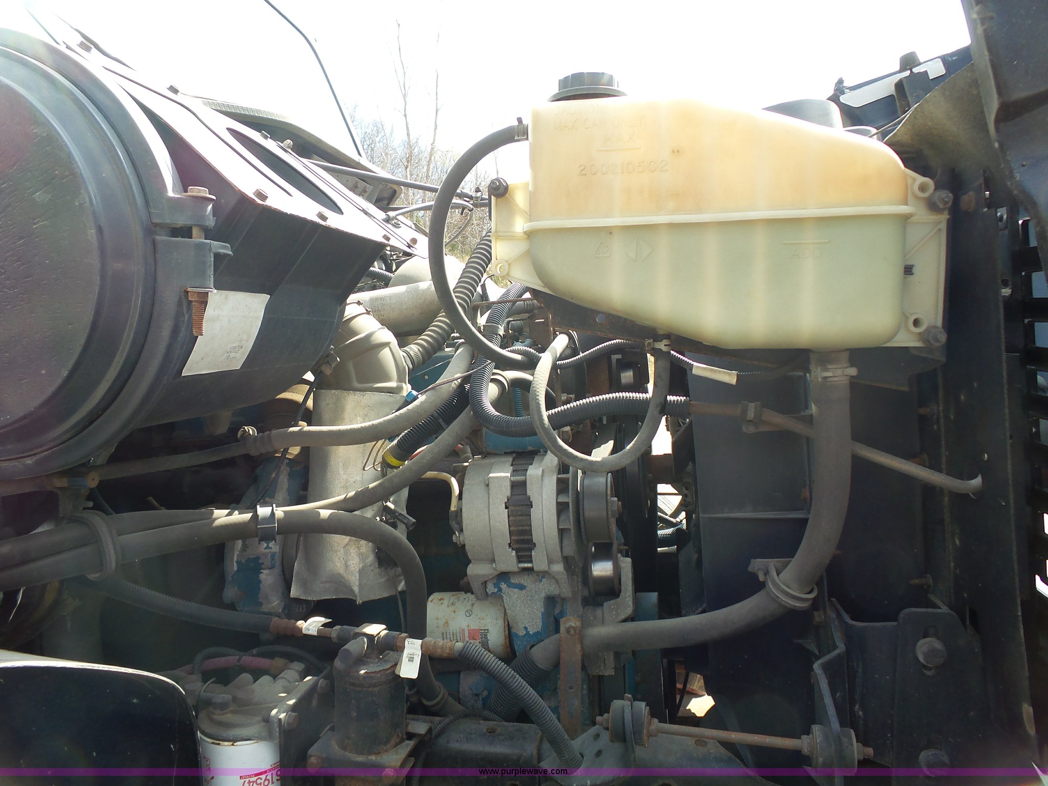 Purple Wave is selling a used Construction Dump Truck in Kansas. This item is a 2001 International 4900 dump truck with the following: 40,669 miles on odometer, 4,561 hours on meter, International DT466E 7.6L L6 turbo diesel engine, Automatic transmission, Single axle, Heat, Cruise, AM/FM/weatherband, Air suspension seat, Heated mirrors, Force SSC2100 spreader control, Strobe light, Backup alarm, Work lights, Chelsea PTO, American steel dump bed, 10'L x 8'W, 27" side height, 5 to 6 yd capacity, Roll over tarp, Single ram hoist, Coats PRB36II 11' plow, 8' side plow, Side markers, Monroe V-Box spreader, Stainless steel, Anti-Ice tanks, Pintle and receiver hitches, Trailer wiring, Single fuel tank, Spring suspension, Air brakes, 152" wheelbase, 11R22.5 tires, GVWR 35,000 lbs, FAWR 12,000 lbs, RWAR 23,000 lbs, Rust, Tailgate included, Unit# 3215