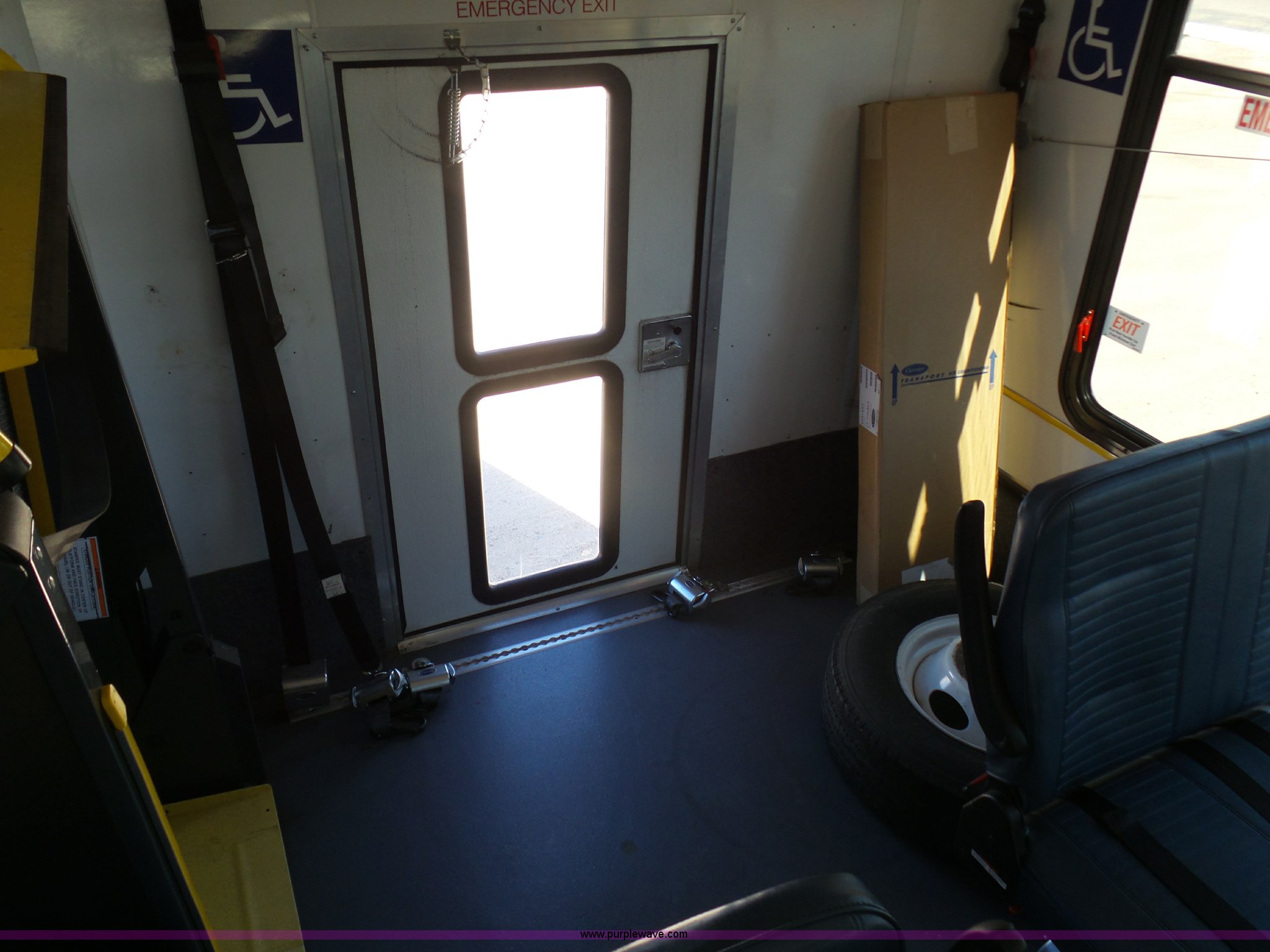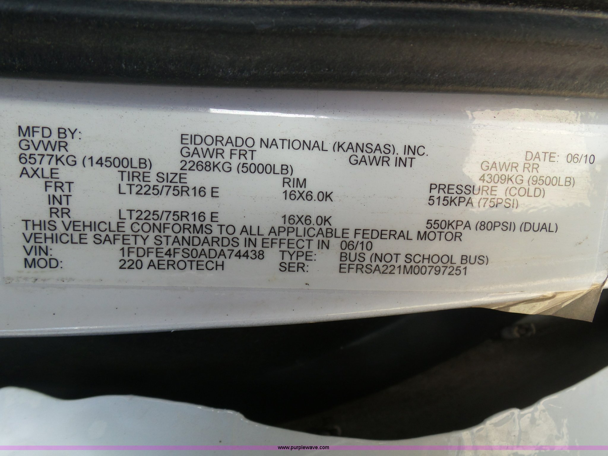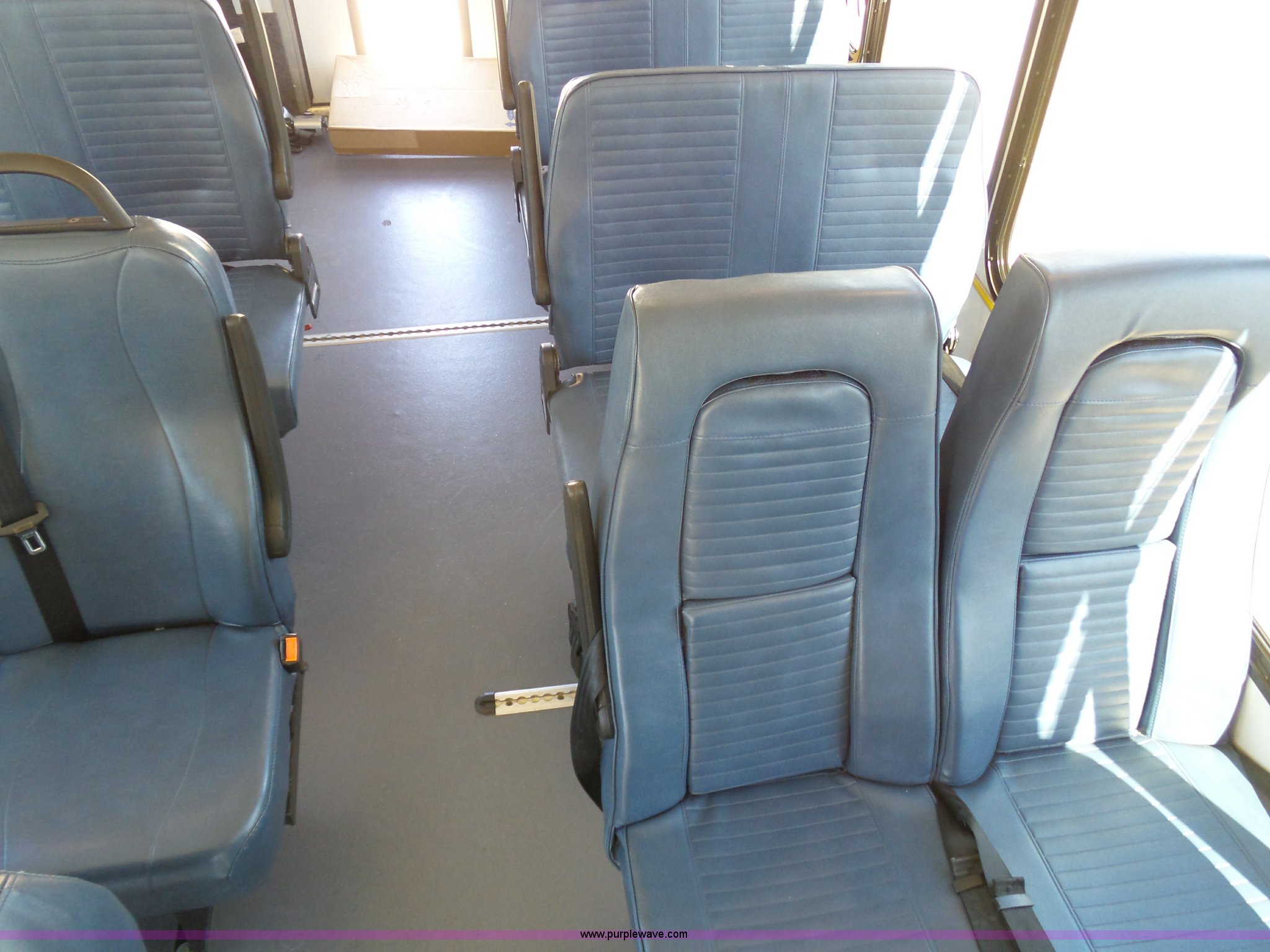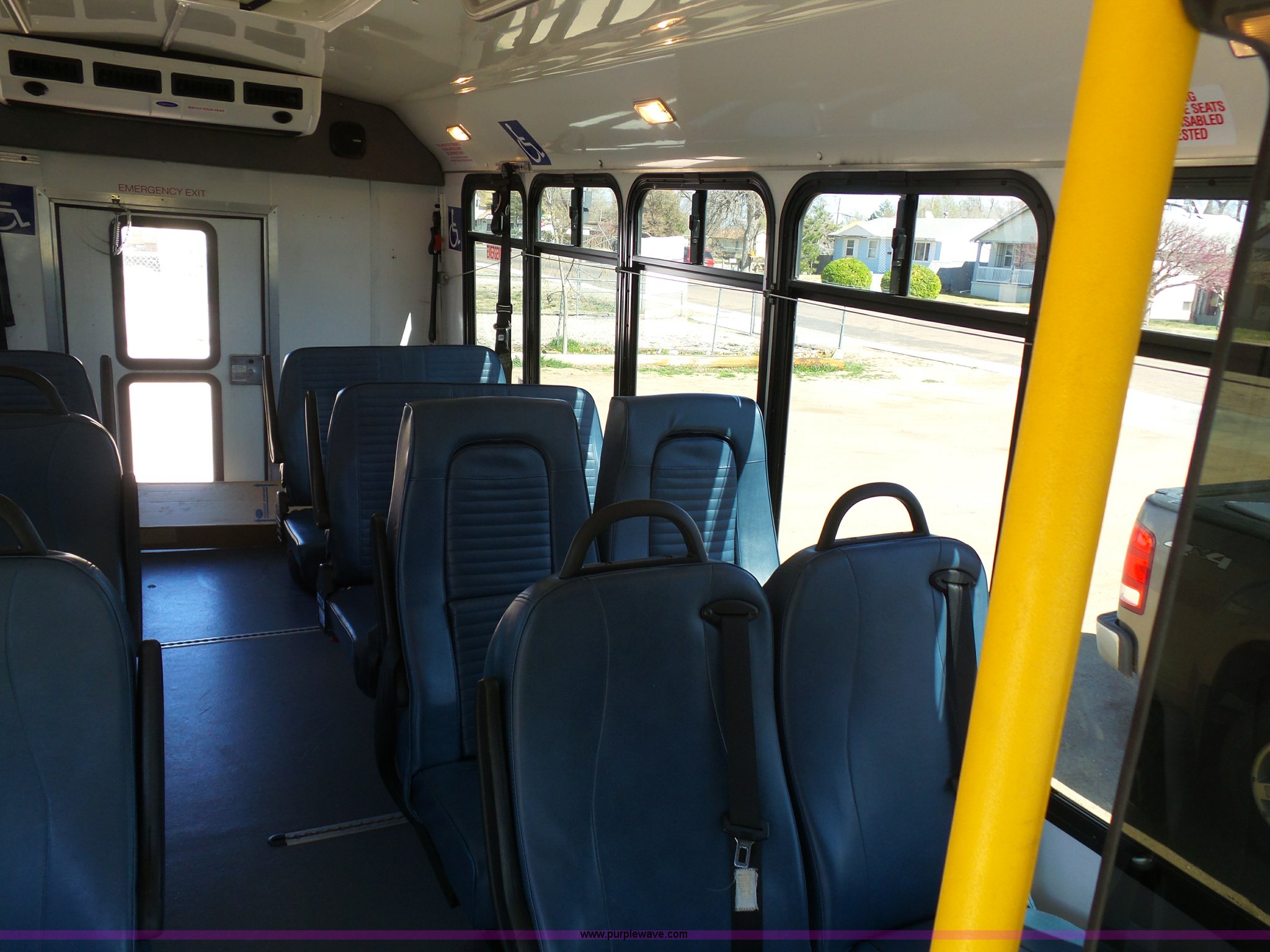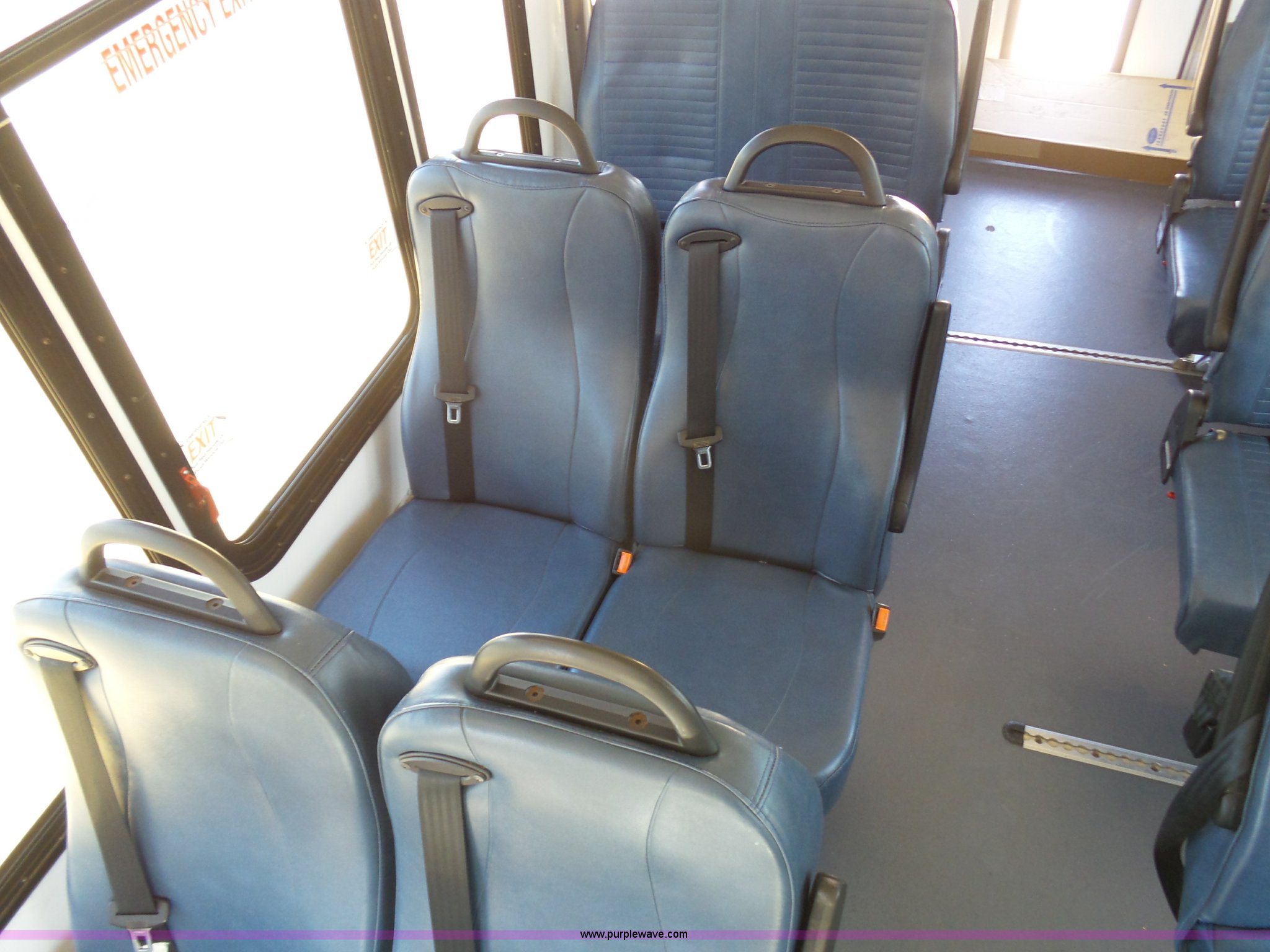 Purple Wave is selling a used Bus in Kansas. This item is a 2010 Ford Econoline E450 shuttle bus with the following: 109,458 miles on odometer, 6.8L V10 SOHC 20V gas engine, Automatic transmission, Single axle, AC and heat, Heated and power mirrors, Suspension seat, Block heater, Ceiling handrail, 14 passenger capacity, Extra length seat belts, Integrated child restraints, (2) child safety seats, Ricon S5510 wheelchair lift, (3) wheelchair tie-down areas, Retractable wheelchair fastners, Serial 00259765, Ceiling, rear, and side emergency egress, Emergency door alarm, Backup alarm, Fare box, Rear strobe lights, Public address systems, Pull cord systems, 158" wheelbase, Hydraulic suspension, Hydraulic brakes, LT225/75R16 tires, GVWR 14,500 lbs, Driver's seat damaged, Unit# 26