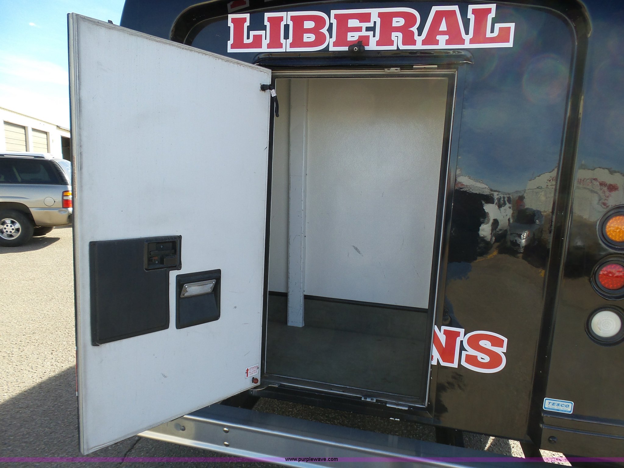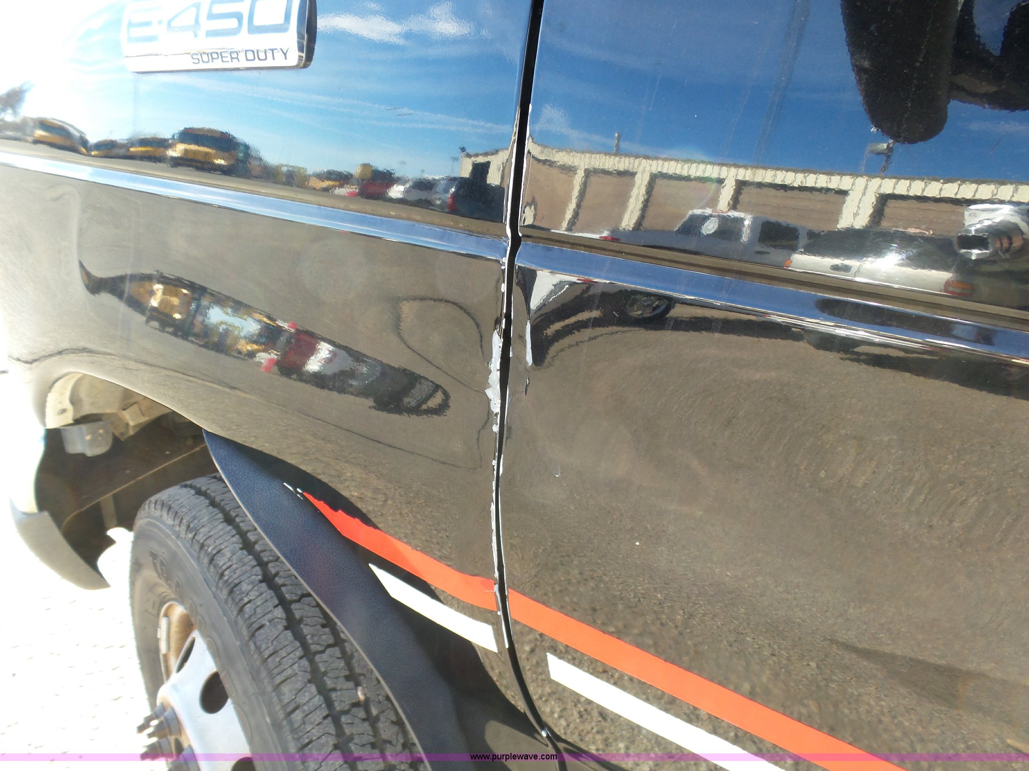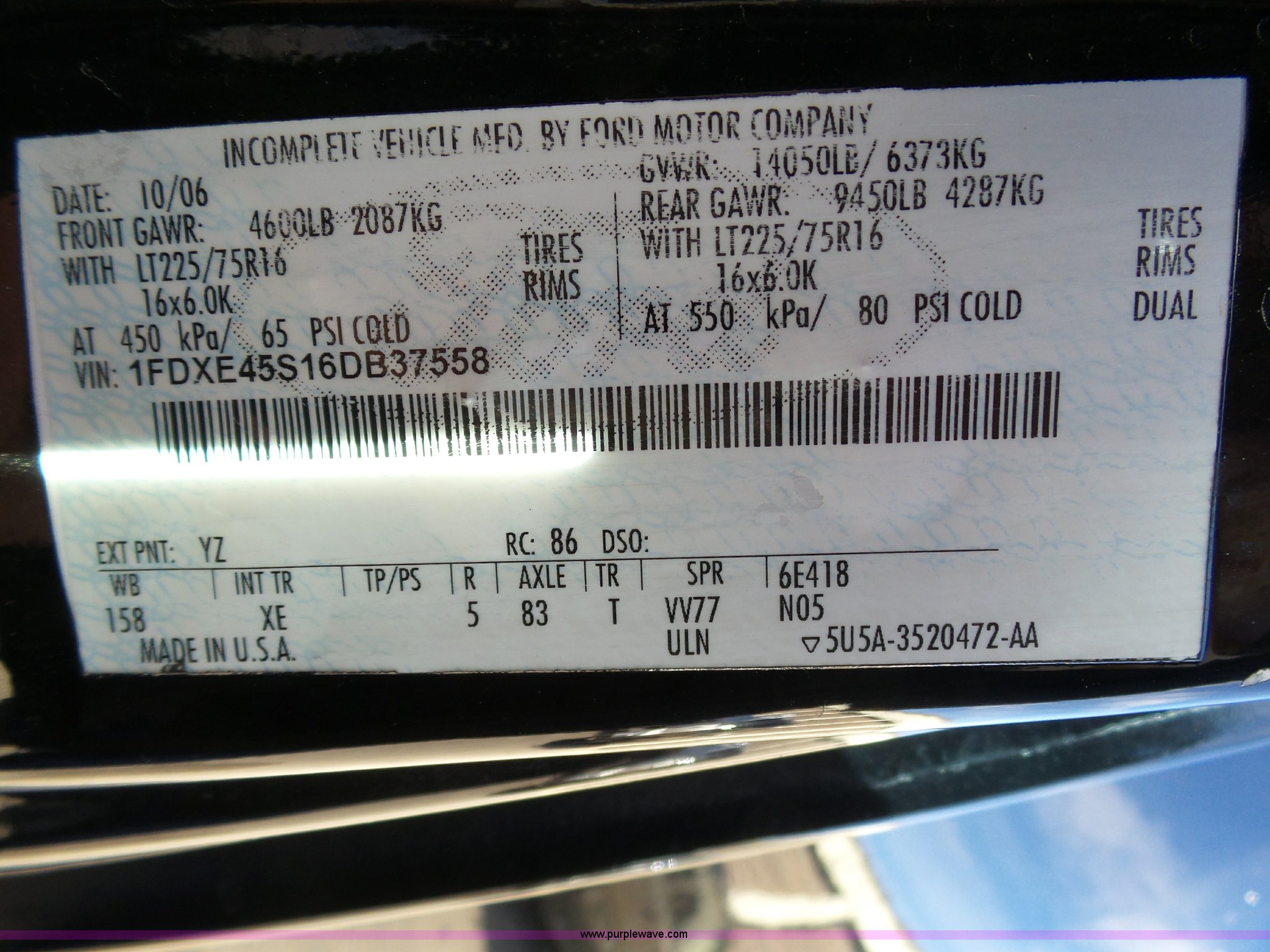 2006 Ford Econoline E450 shuttle bus. 133,771 miles on odometer, 6.8L V10 SOHC 20V gas engine Serial 6FMXH06.86H5, Automatic transmission, Single axle, AC and heat, Tilt, Cruise, AM/FM/CD, Suspension seat, Power and heated mirrors, Electric passenger sliding door, Overhead storage, 14 passenger capacity, Ceiling, front, and side emergency egress, Block heater, Rear entry closest/storage 92"W x 82"H x 31"D, Intercom system, Rear AC and heat, Overhead lighting, Overhead TV/CD/DVD/MP3 player, Turtle top leather bucket seats, Spring suspension, Hydraulic brakes, 158" wheelbase, LT225/75R16 tires, Interior/exterior cosmetic damage, Removable vinyl decals. 1FDXE45S16DB37558. USD 480 Liberal. 401 N Kansas. Liberal, KS 67901