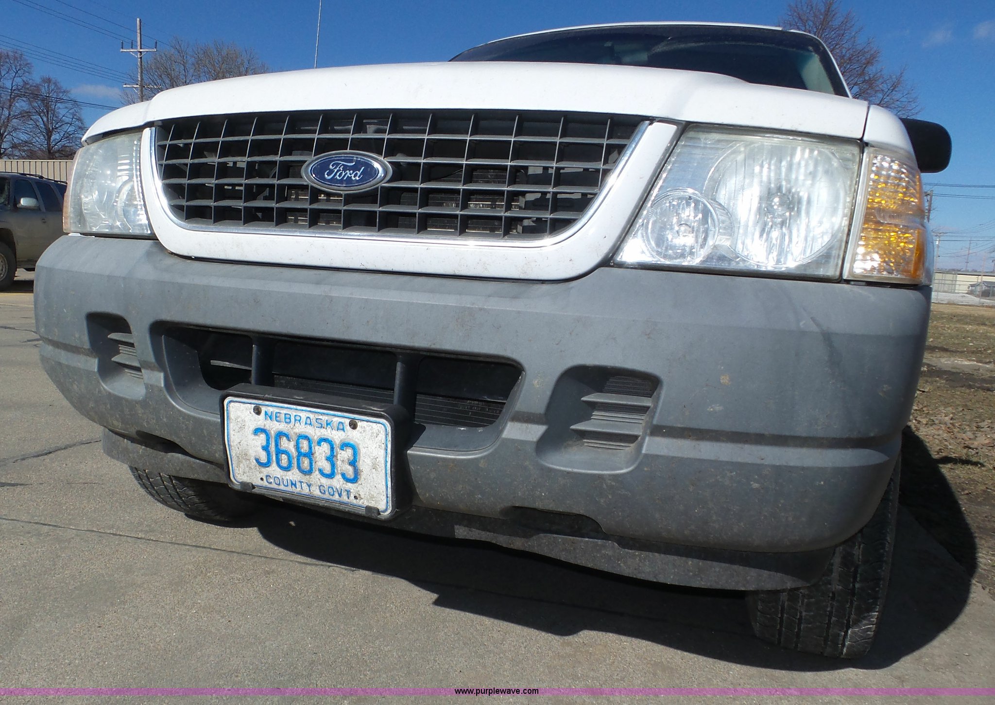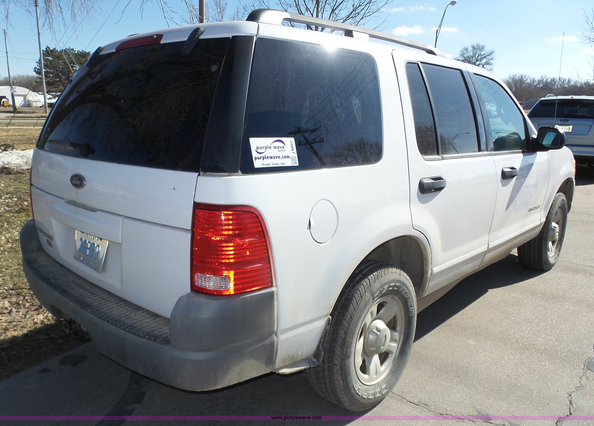 Purple Wave is selling a used Passenger Vehicle in Nebraska. This item is a 2002 Ford Explorer XLS SUV with the following: 132,630 miles on odometer, 4.0L V6 SOHC 16V gas engine, Automatic transmission, Four wheel drive, AC and heat, Tilt, Cruise, AM/FM/cassette, Power windows, locks, and mirrors, Cloth interior, Luggage rack, 235/70R16 tires, Owner's manual, Unattached rear console panel included, Rust, One owner