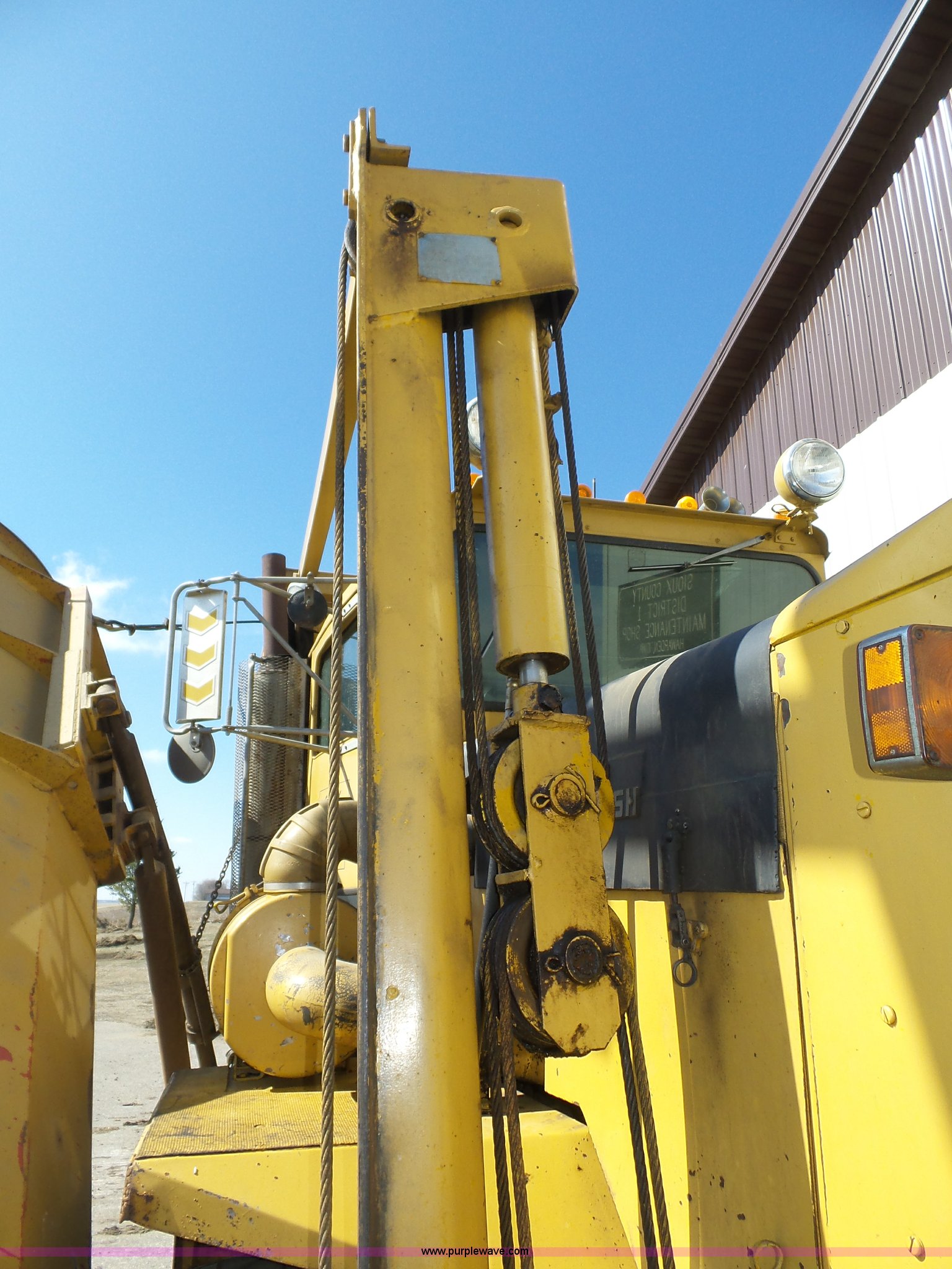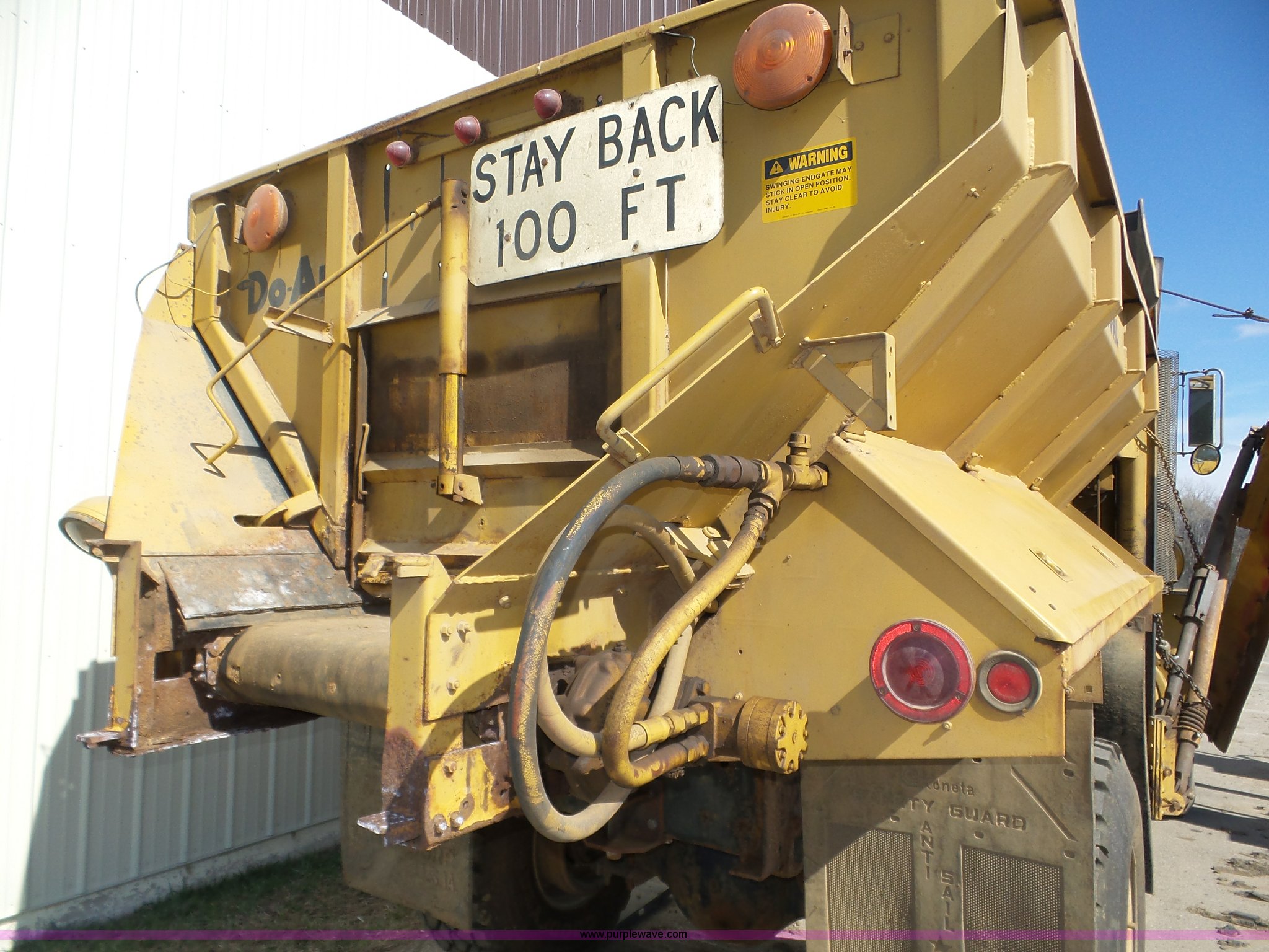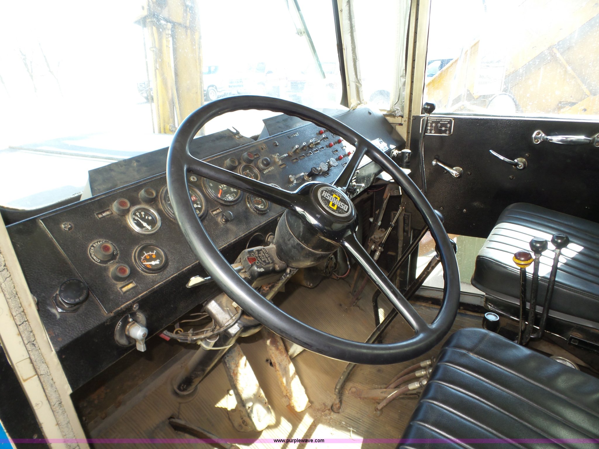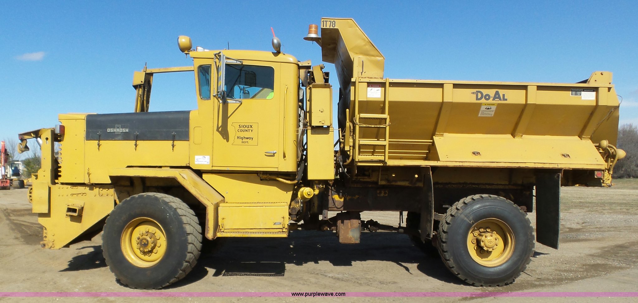 Purple Wave is selling a used Construction Dump Truck in Iowa. This item is a 1978 Oshkosh P-2323-5 sander truck with the following: 71,332 miles on odometer, 5,426 hours on meter, Caterpillar 3306 six cylinder turbo diesel engine, 1T78 transmission, Five gears, Three speed auxiliary transmission, Four wheel drive, Single axle, Heat, AM/FM/cassette, Air suspension seat, PTO, Hi-Way Do-Al box bed, 11'L x 7'W, Toolboxes, 27"W flat belt, Wausau TW13FP side blade, 11'W, Bolt-on cutting edge, Serial 1798, Work lights, Single fuel tank, Backup alarm, Plumbed for snow plow, Single exhaust stack, Pin hitch, Spring suspension, Air brakes, 445/65R22.5 front tires, 425/65R22.5 rear tires, GVWR 43,000 lbs, FAWR 20,000 lbs, RAWR 23,000 lbs, 160" wheel base, Approx 50 miles on rear tires, Contents are not included, No sander included, Power steering fluid leak, Unit# 1T78