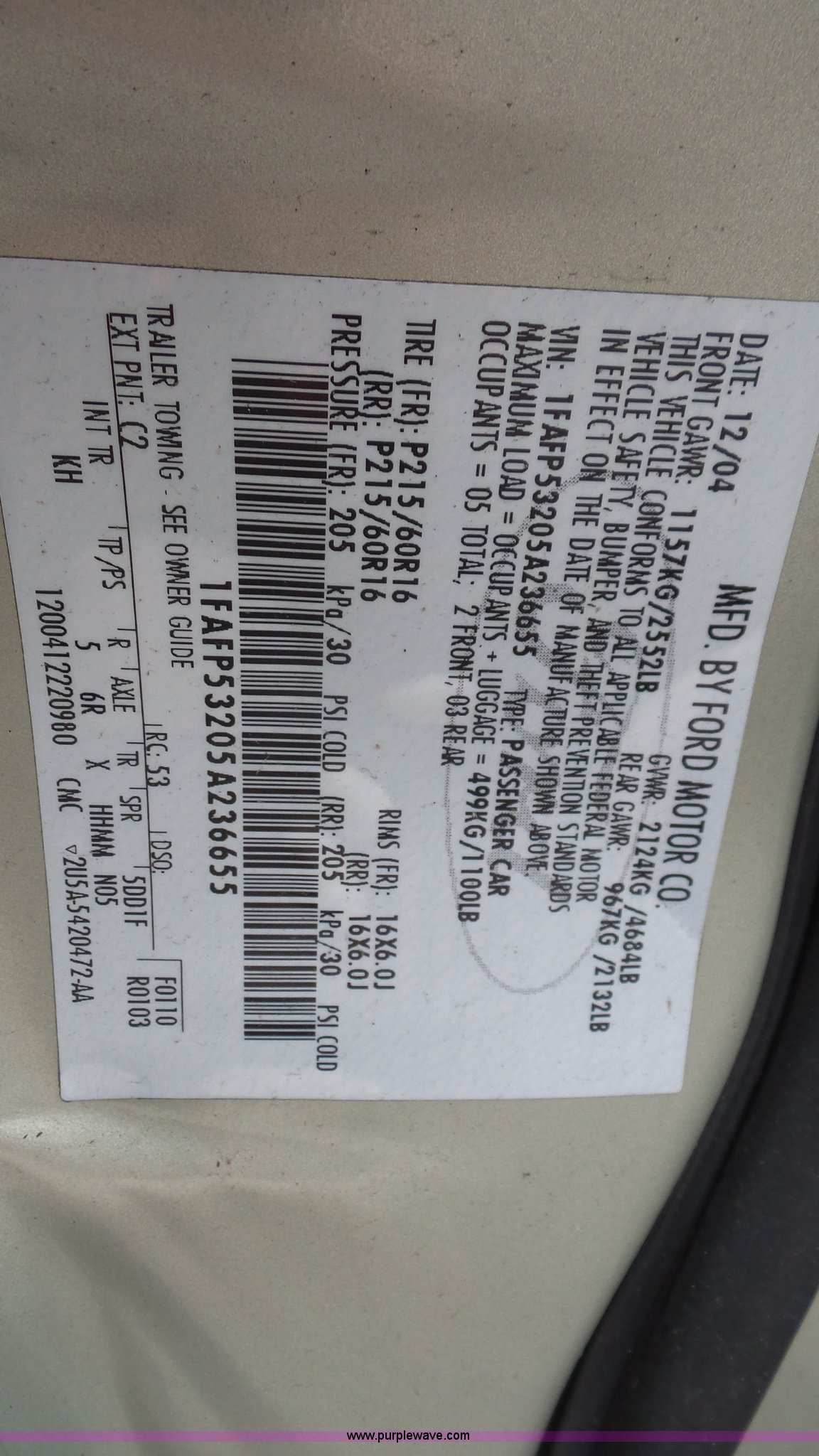 Purple Wave is selling a used Passenger Vehicle in Kansas. This item is a 2005 Ford Taurus SE with the following: 96,002 miles on odometer, 3.0L V6 OHV 12V FFV gas engine, Automatic transmission, AC and heat, Tilt, Cruise, AM/FM/CD, Power windows, locks, and mirrors, Cloth interior, 215/60R16 tires