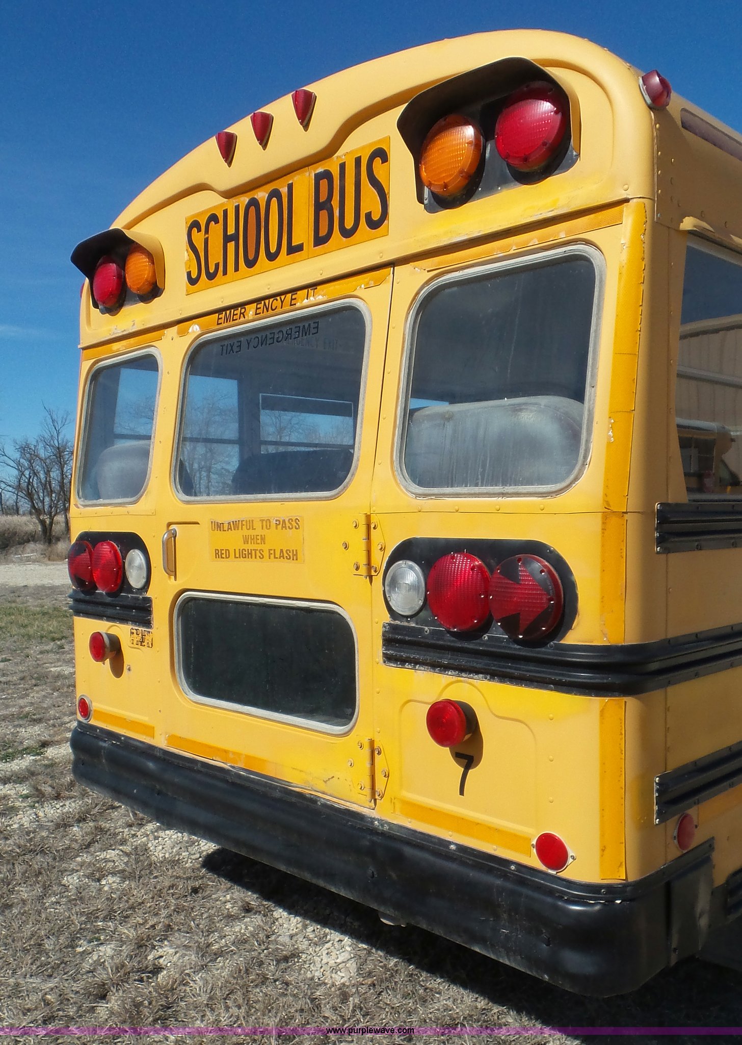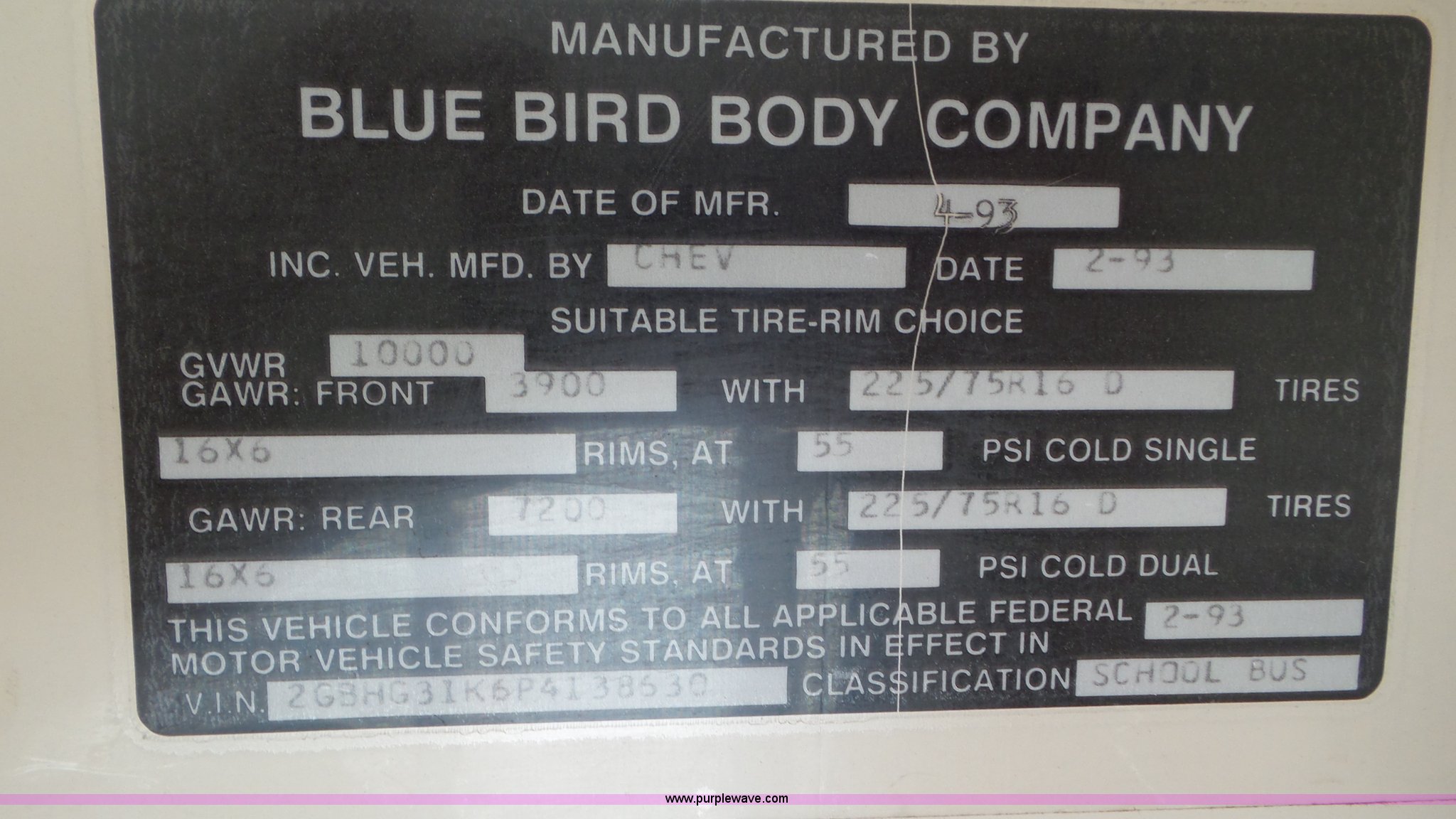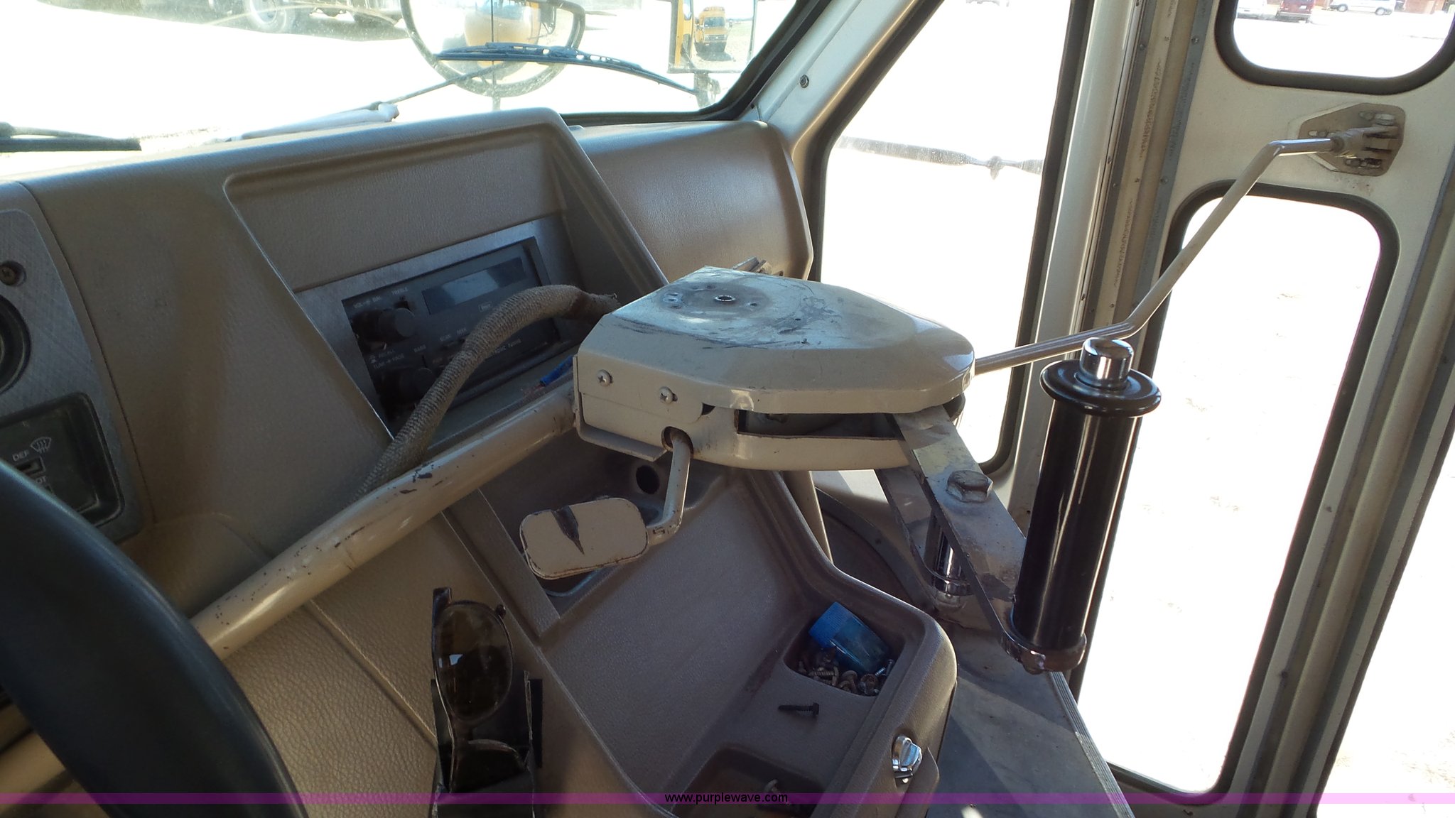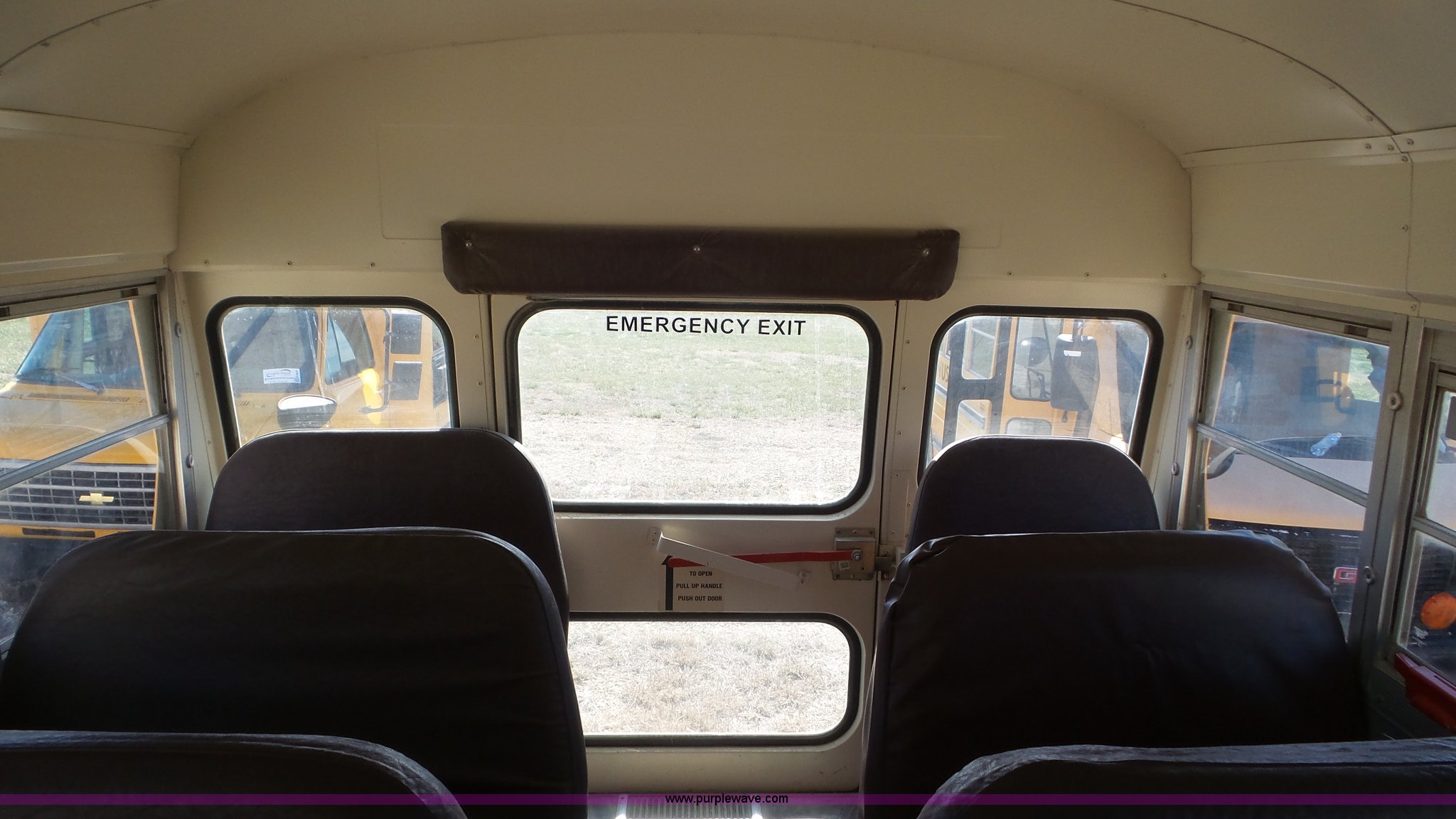 Purple Wave is selling a used Bus in Kansas. This item is a 1993 Chevrolet G30 school bus with the following: 216,890 miles on odometer, 5.7L V8 OHV 16V gas engine, Automatic transmission, Single axle, Heat, AM/FM, Auxiliary controls, 21 passenger capacity, Seat belts, Ceiling, rear, and side window emergency, Front and rear tow hooks, Lighted stop sign, Spring suspension, Hydraulic brakes, 225/75R16 tires, GVWR 10,000 lbs, Rear end is going out