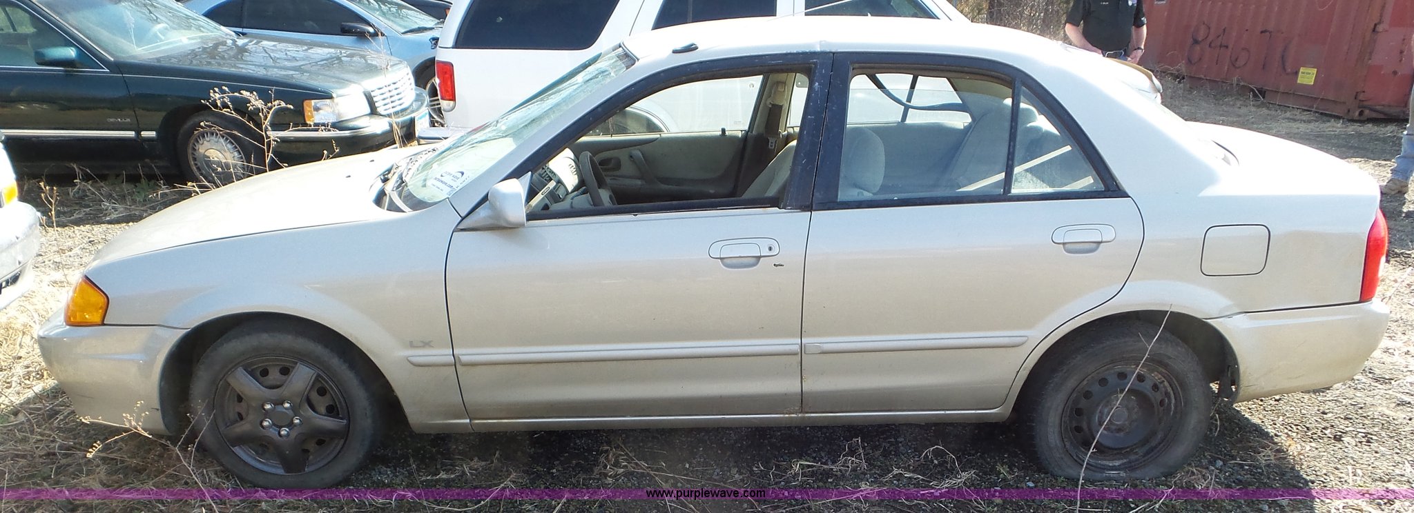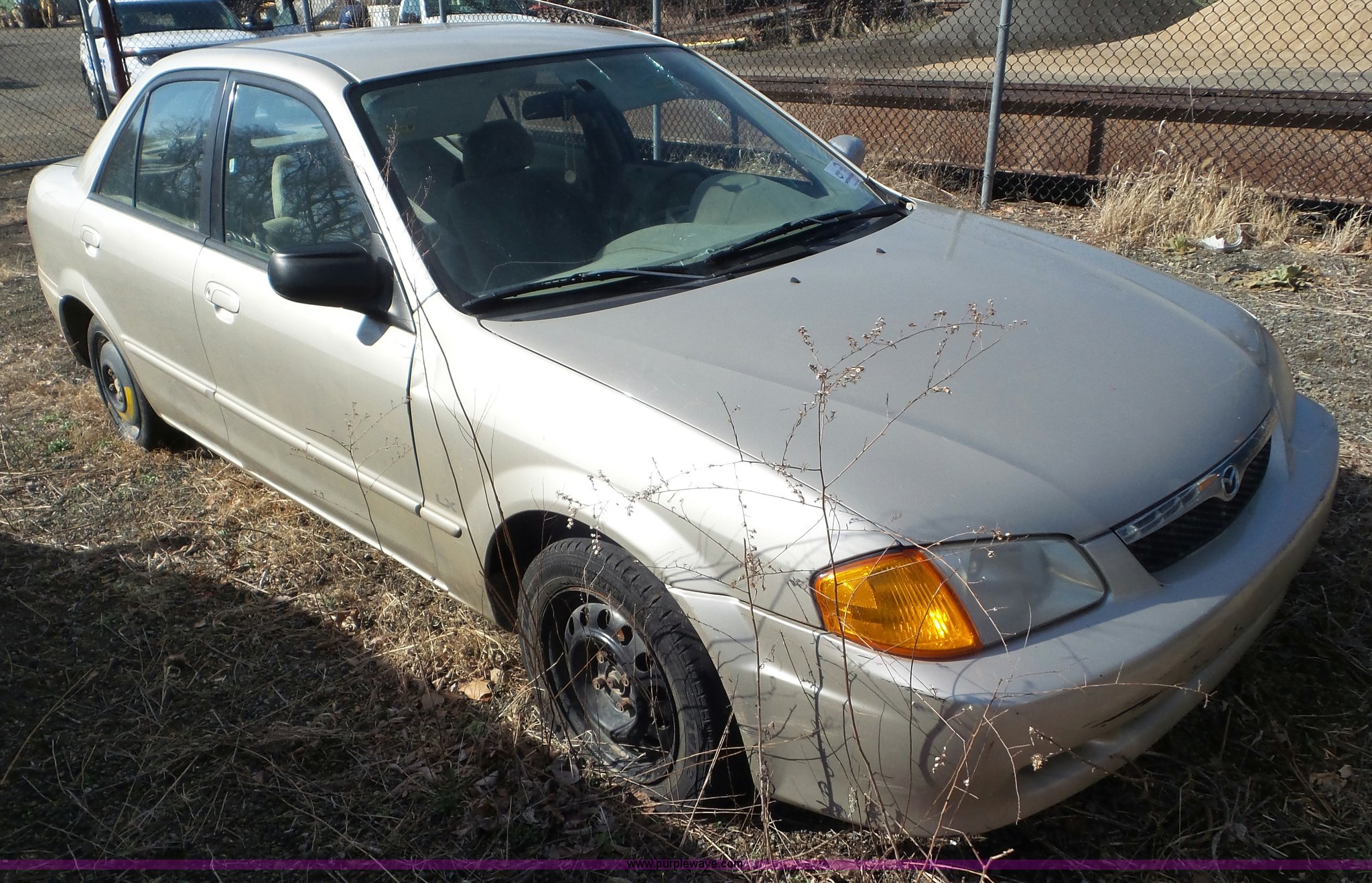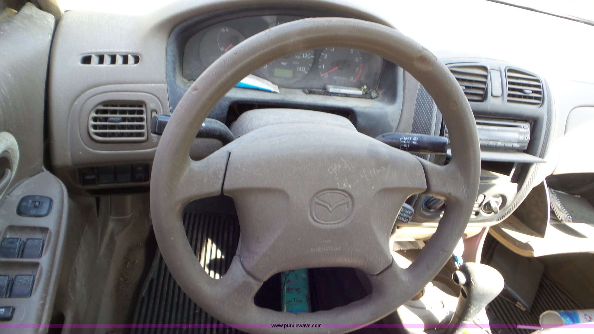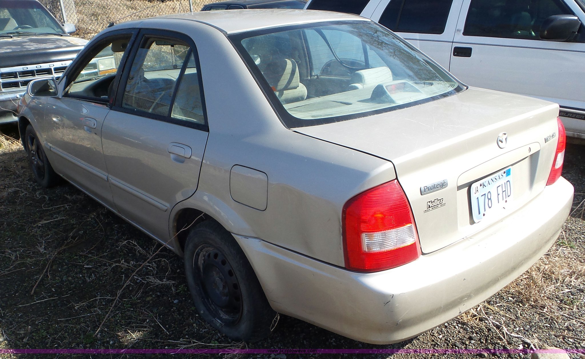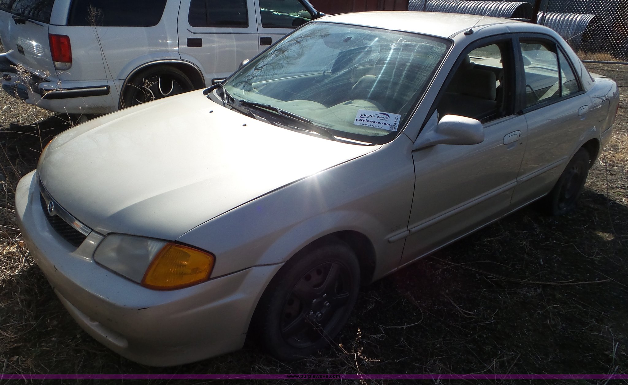Purple Wave is selling a used Passenger Vehicle in Kansas. This item is a 1999 Mazda Protege with the following: 240,010 miles on odometer, 4-Cyl. 1.6L gas engine, Automatic transmission, AC and heat, Cruise, AM/FM/CD, Power windows and locks, Cloth interior, 175/65R14 tires, Windshield cracked, Weak battery