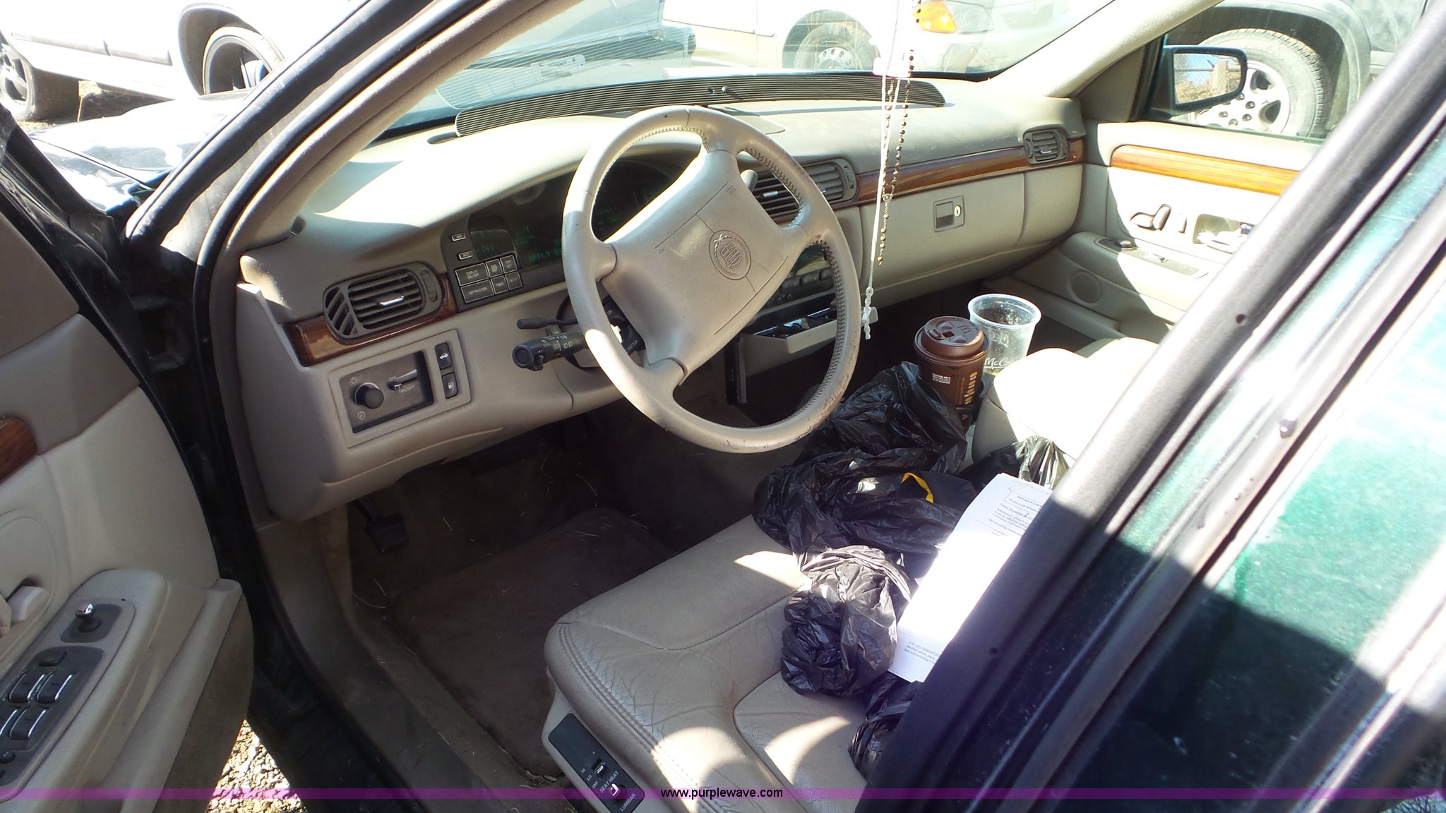 Purple Wave is selling a used Passenger Vehicle in Kansas. This item is a 1997 Cadillac DeVille with the following: 136,651 miles on odometer, V-8 4.6L gas engine, Automatic transmission, AC and heat, Tilt, Cruise, AM/FM/cassette, Power windows, locks, mirrors, and seats, Leather interior, 225/60R16 tires