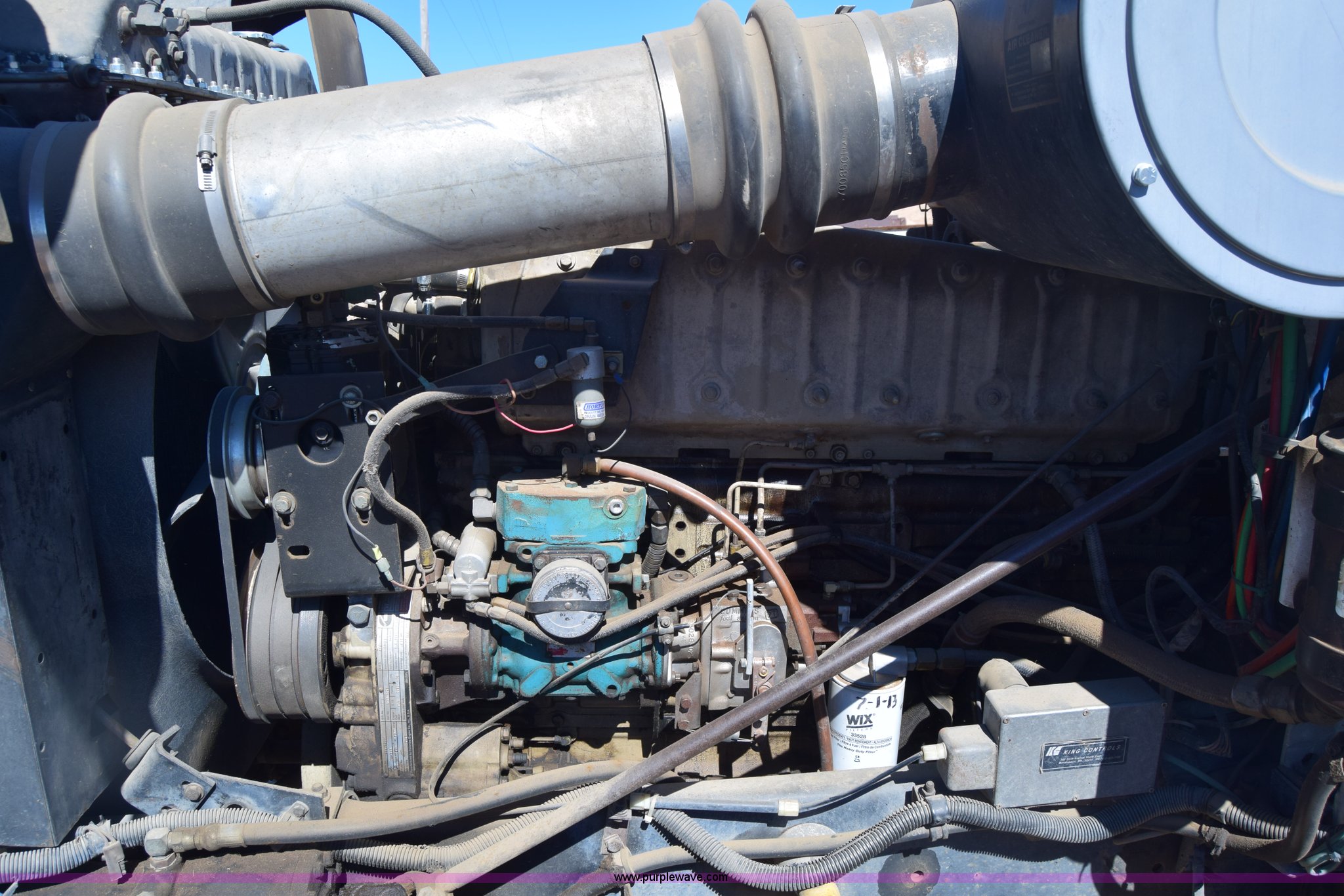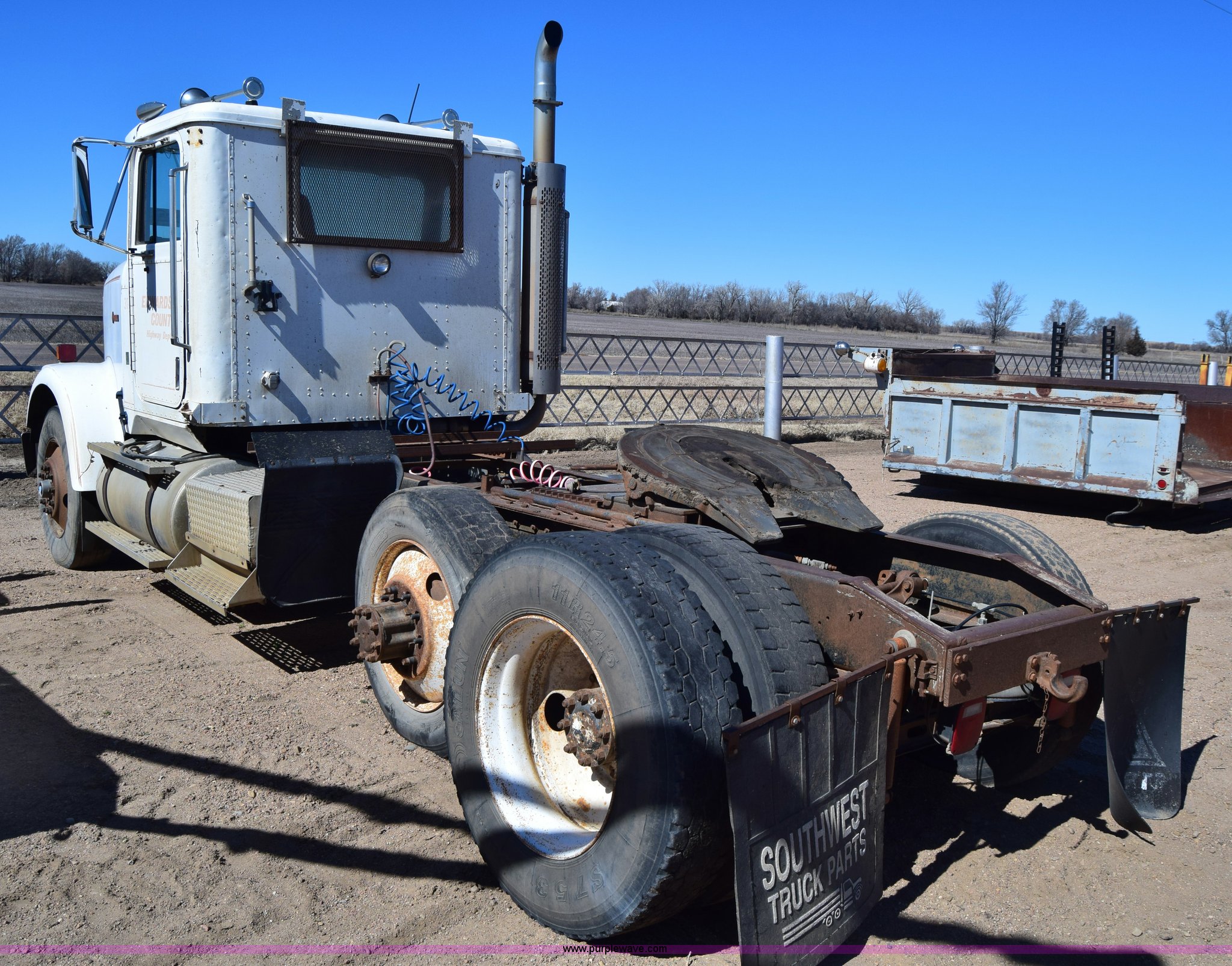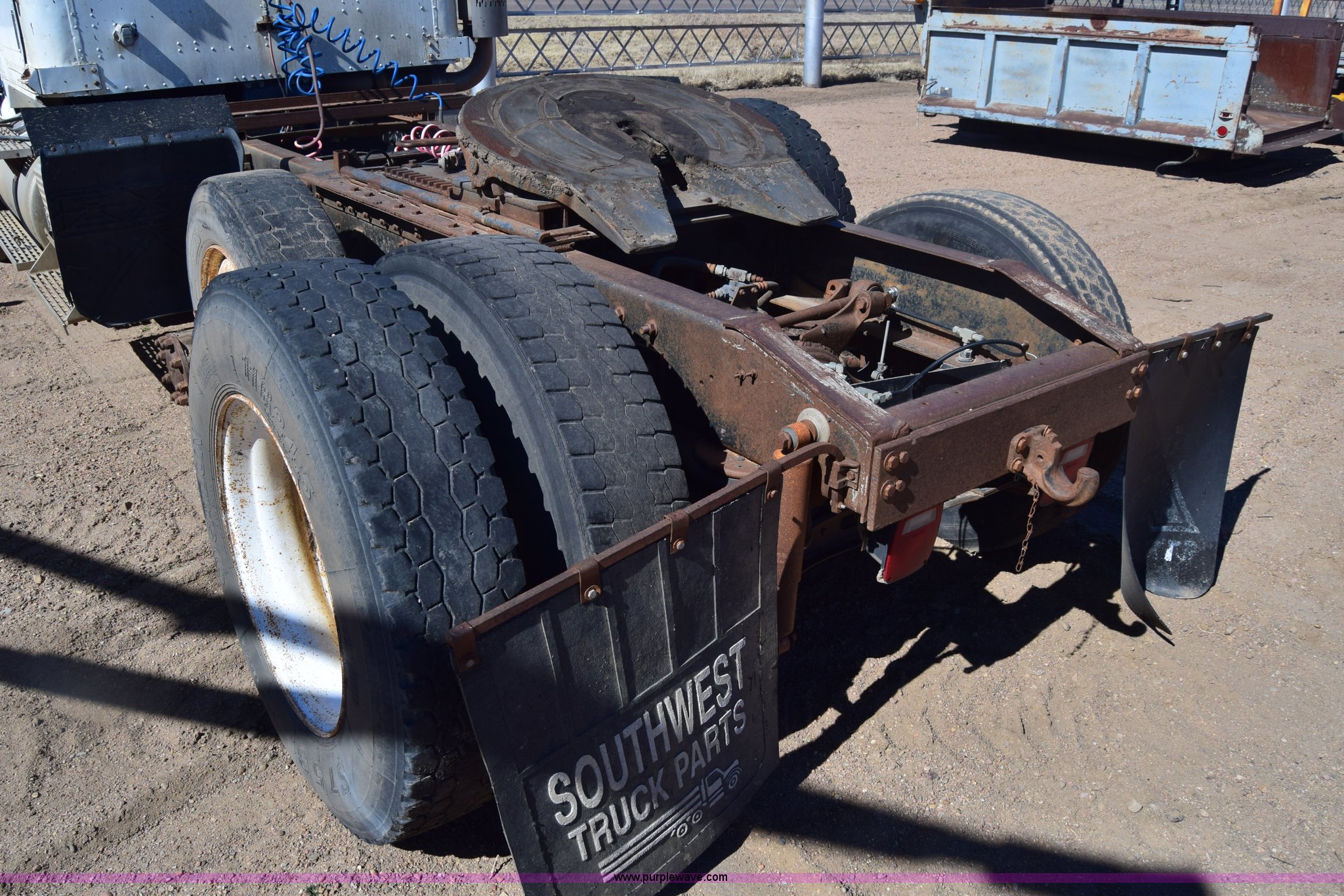Purple Wave is selling a used Truck Tractor in Kansas. This item is a 1988 International F9370 semi truck with the following: 906,419 miles on odometer, Cummins NTC diesel engine, 400 HP, Engine is bad, Eaton Fuller 13 speed manual transmission, Tandem axle, AC and heat, Manual windows and locks, Air suspension seat, Single exhaust stack, Dual fuel tanks, Air suspension, 191" wheelbase, 11R24.5 tires