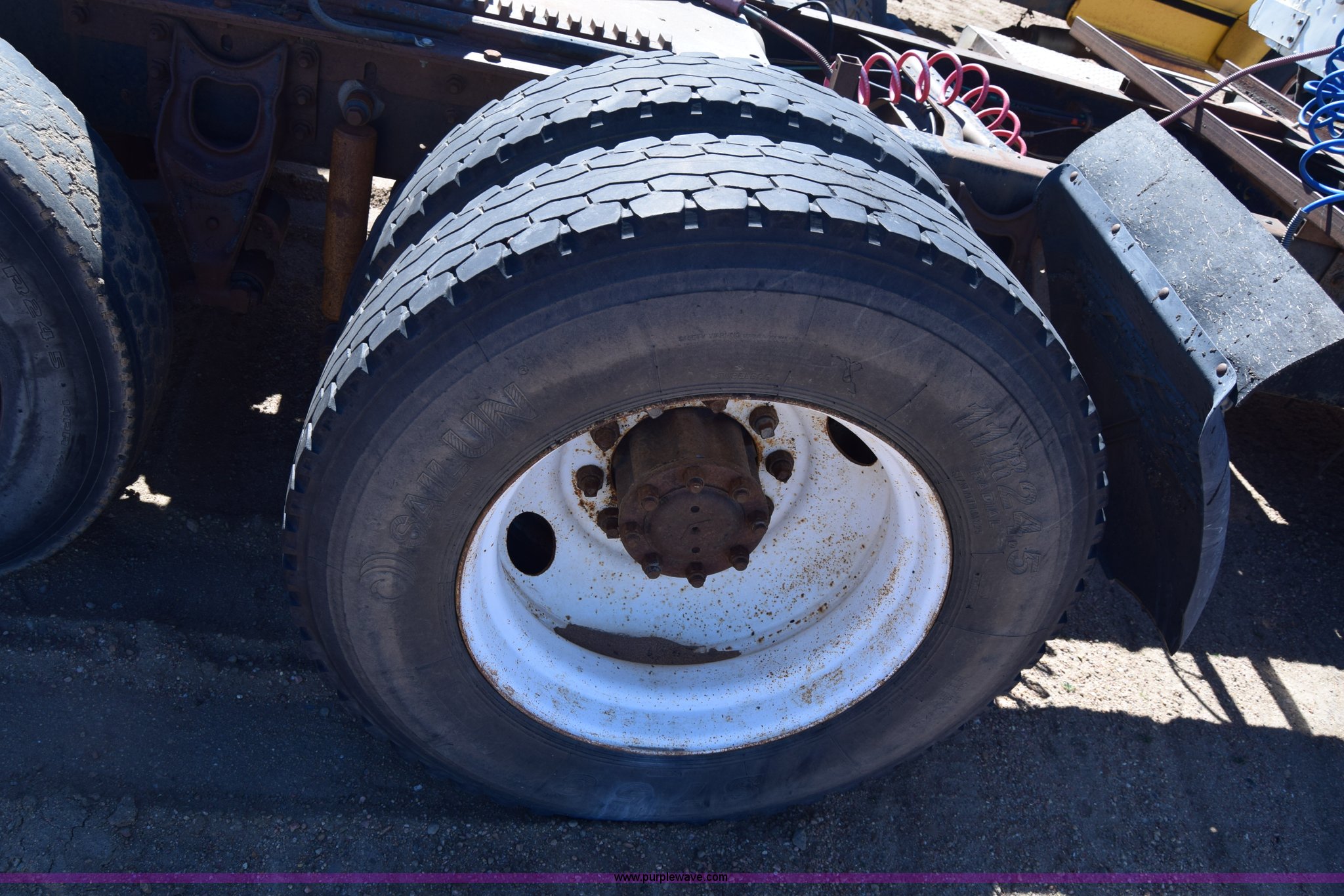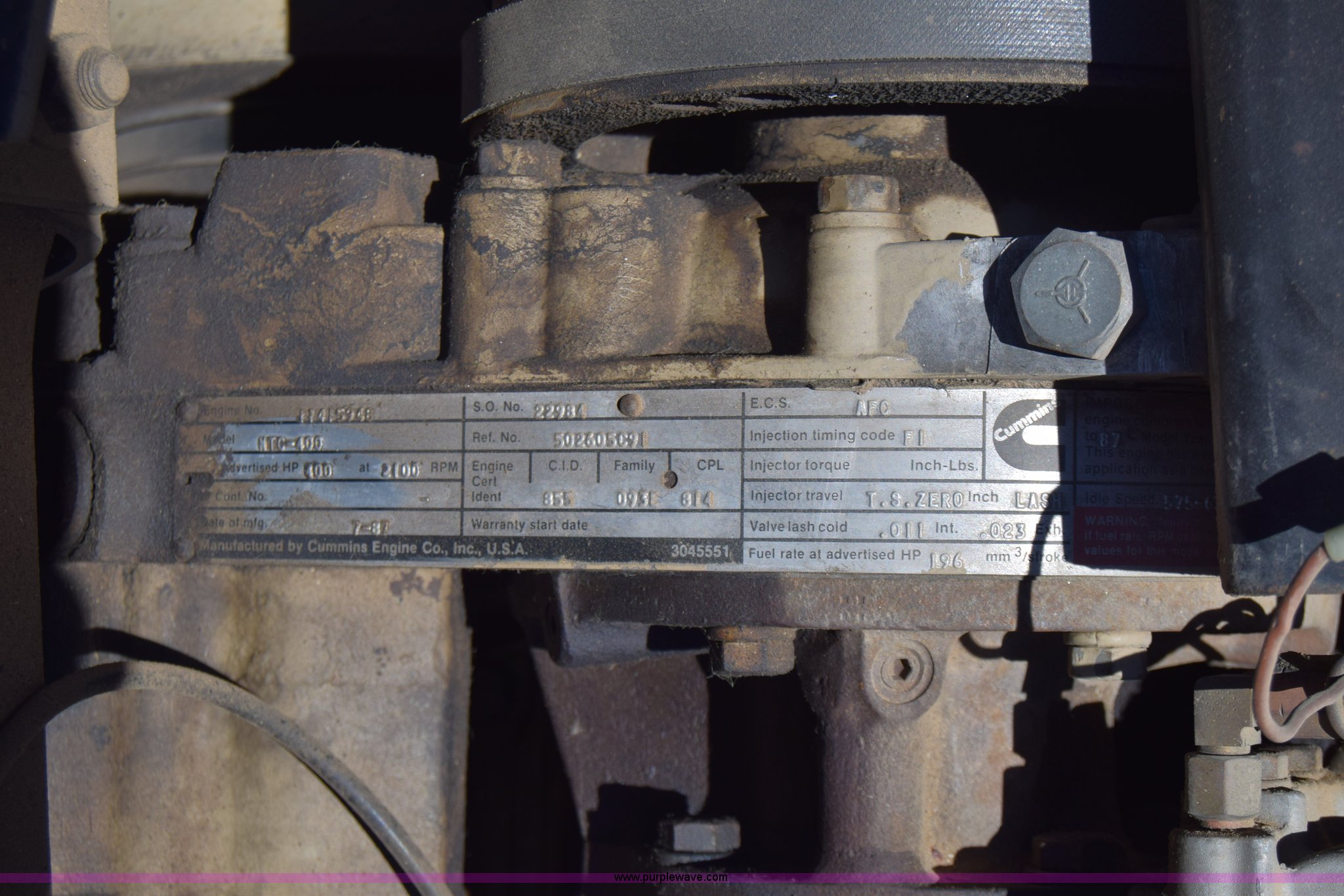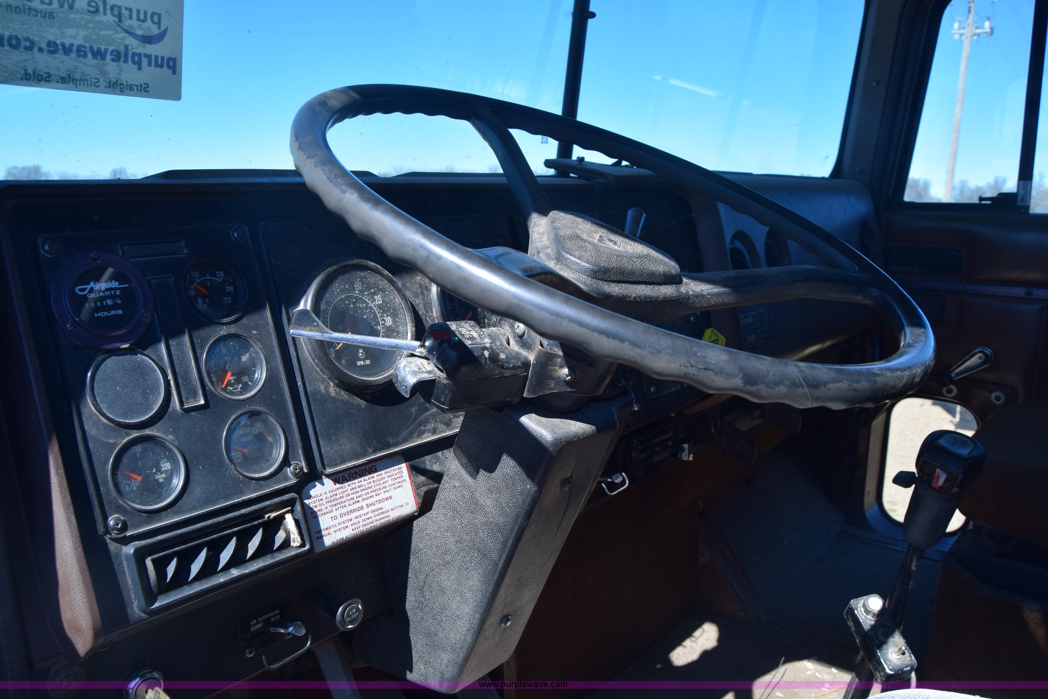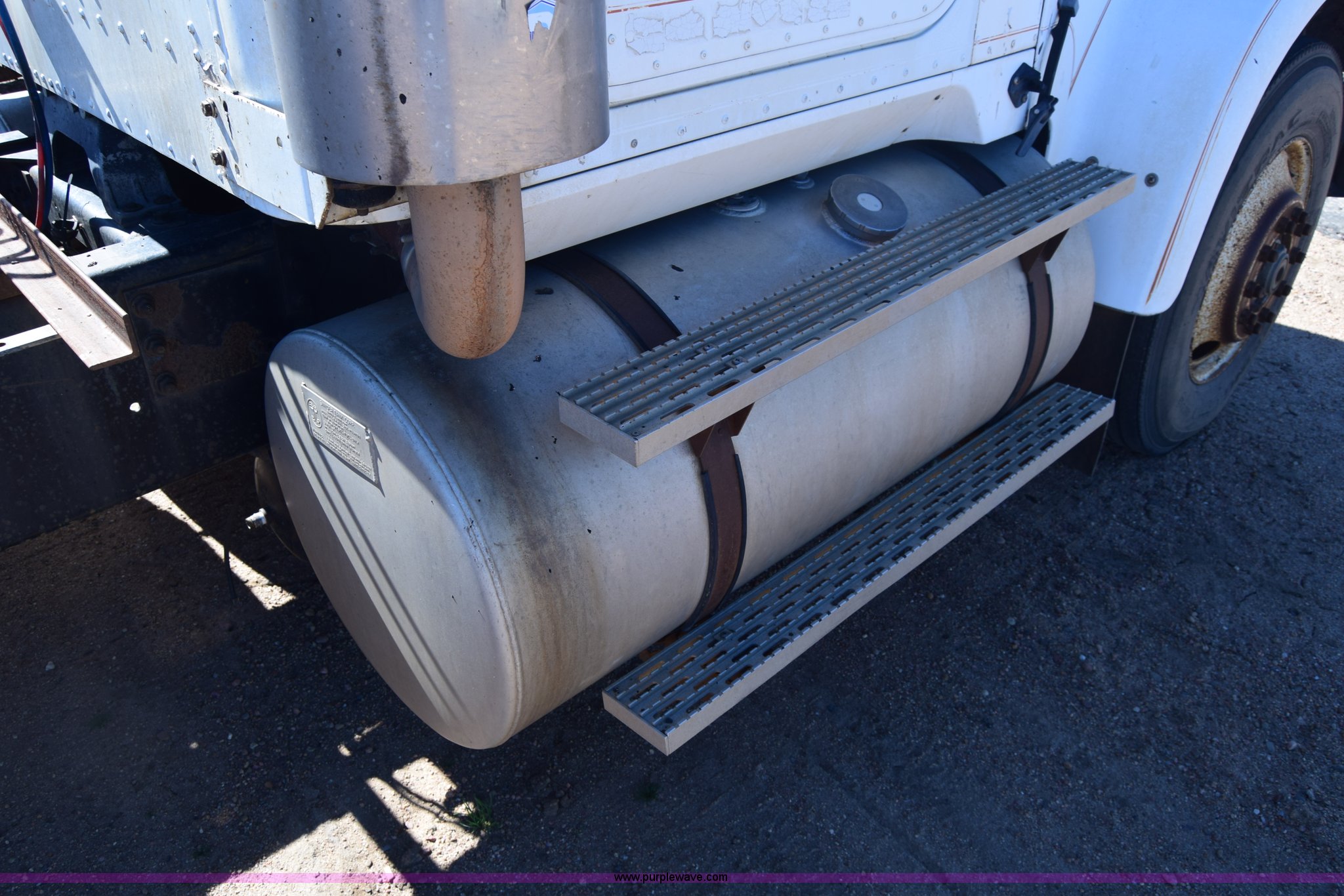 Purple Wave is selling a used Truck Tractor in Kansas. This item is a 1988 International F9370 semi truck with the following: 906,419 miles on odometer, Cummins NTC diesel engine, 400 HP, Engine is bad, Eaton Fuller 13 speed manual transmission, Tandem axle, AC and heat, Manual windows and locks, Air suspension seat, Single exhaust stack, Dual fuel tanks, Air suspension, 191" wheelbase, 11R24.5 tires