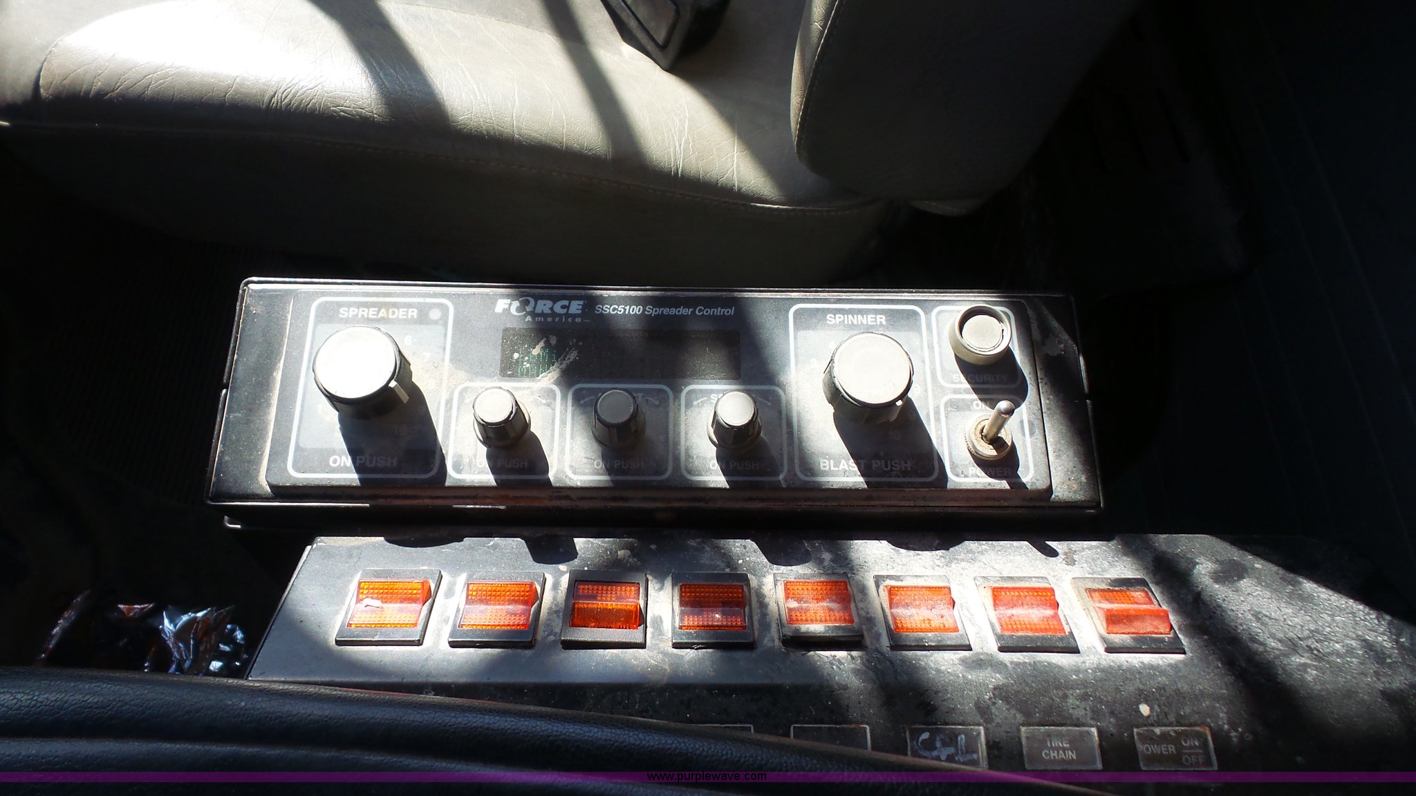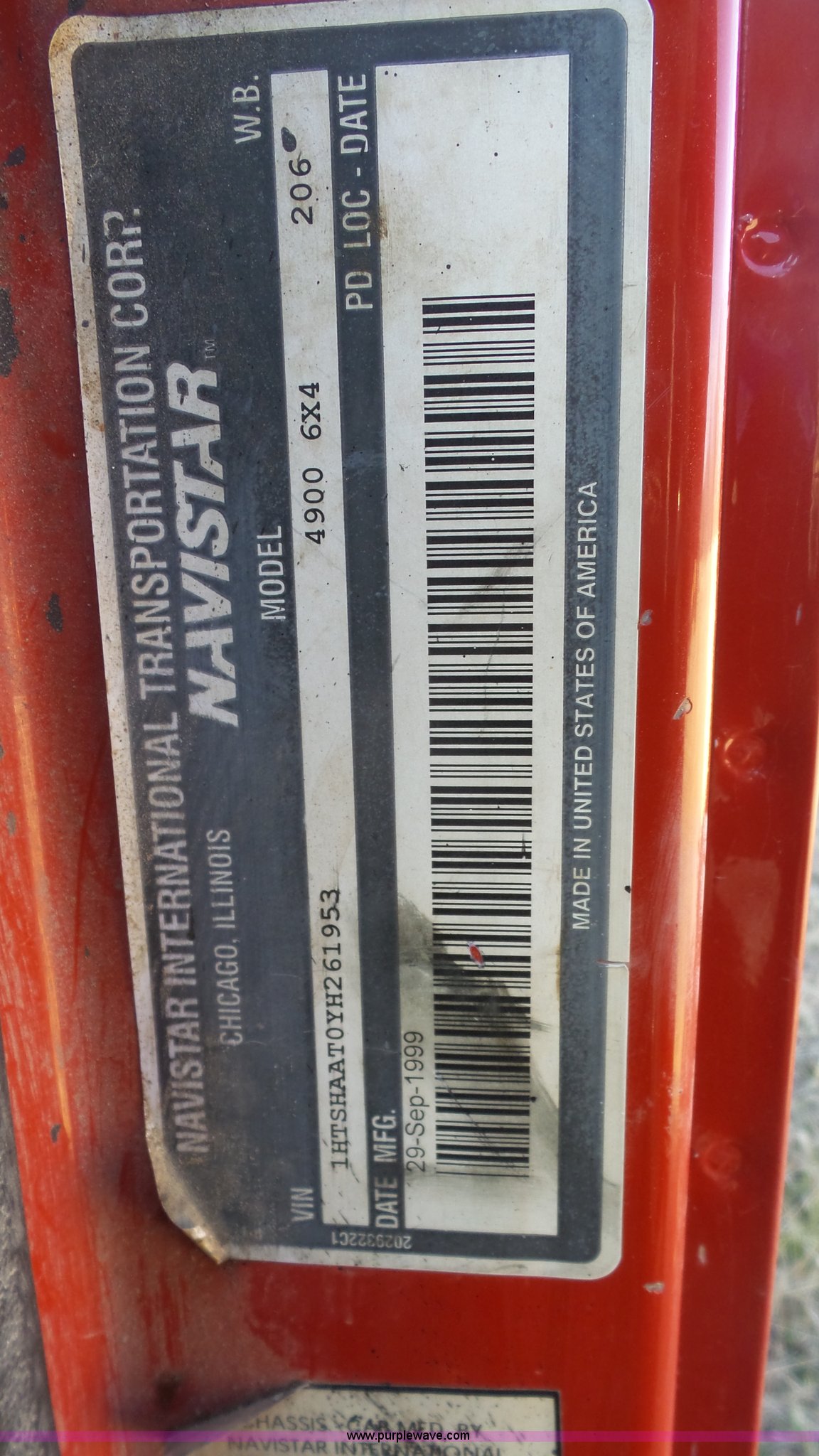 2000 International F4900 dump truck. 152,635 miles on odometer, 7,645 hours on meter, International DT466E 7.6L L6 turbo diesel engine 250 HP, Serial 470HM2U1202372, Automatic transmission, Tandem axle, Inter-axle differential lock, AC and heat, Cruise, AM/FM/weatherband, Heated mirrors, Vinyl interior, Block heater, Command All plow control, Force SSC5100 spreader controls, Front mounted PTO with plow bracket, Heil steel dump bed 15'L x 8'W, 45" side height, Rollover tarp, Single ram hoist, Air operated end gate, Spreader hookups, Trailer wiring, Spring suspension, Air brakes, 210" wheelbase, 315/80R22.5 front tires, 11R22.5 tires, PDL light is on, Paint faded, Rust, Unit# PWK4401. 1HTSHAAT0YH261953. Johnson County. 1810 W Old Hwy 56. Olathe, KS 66061