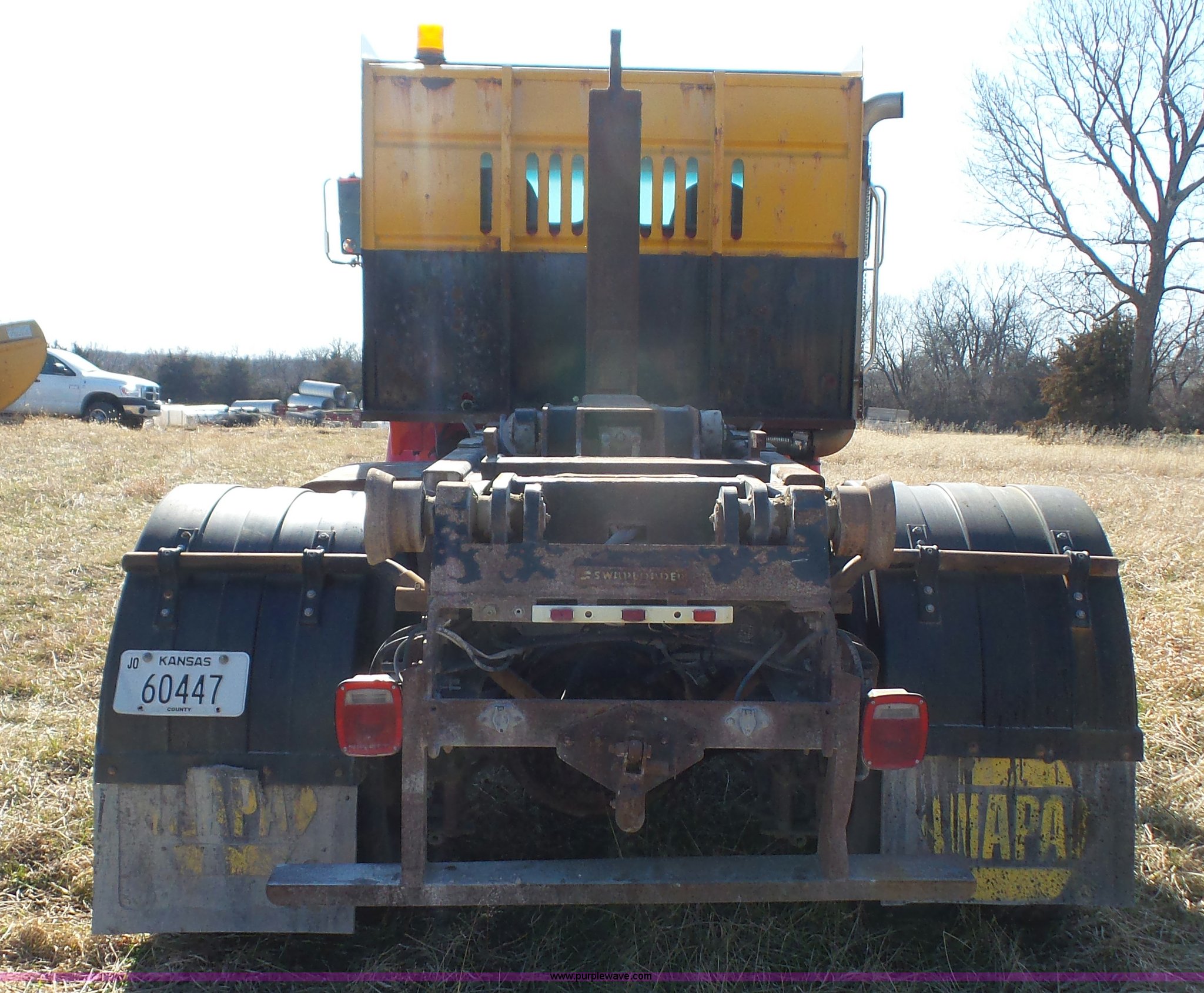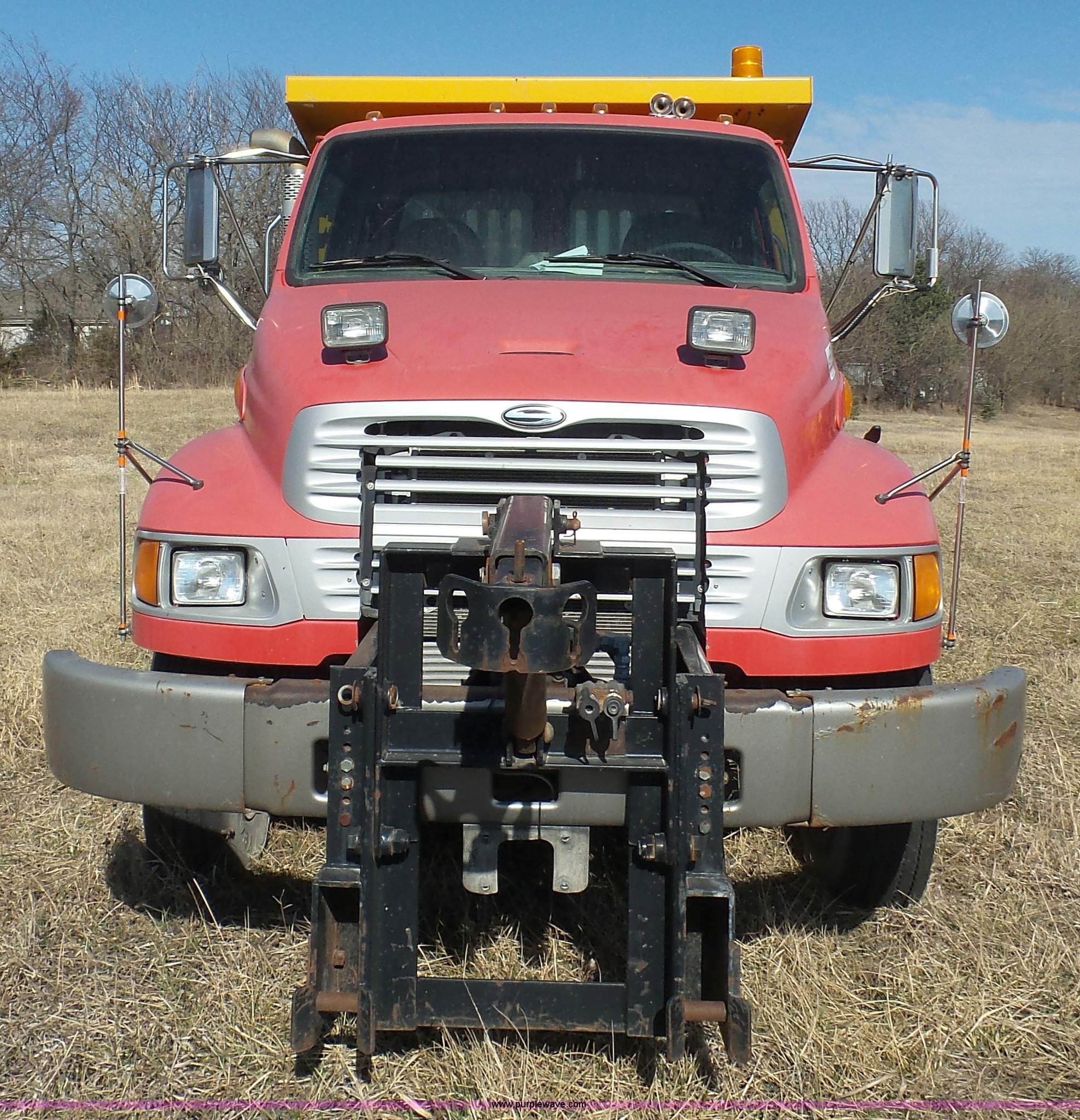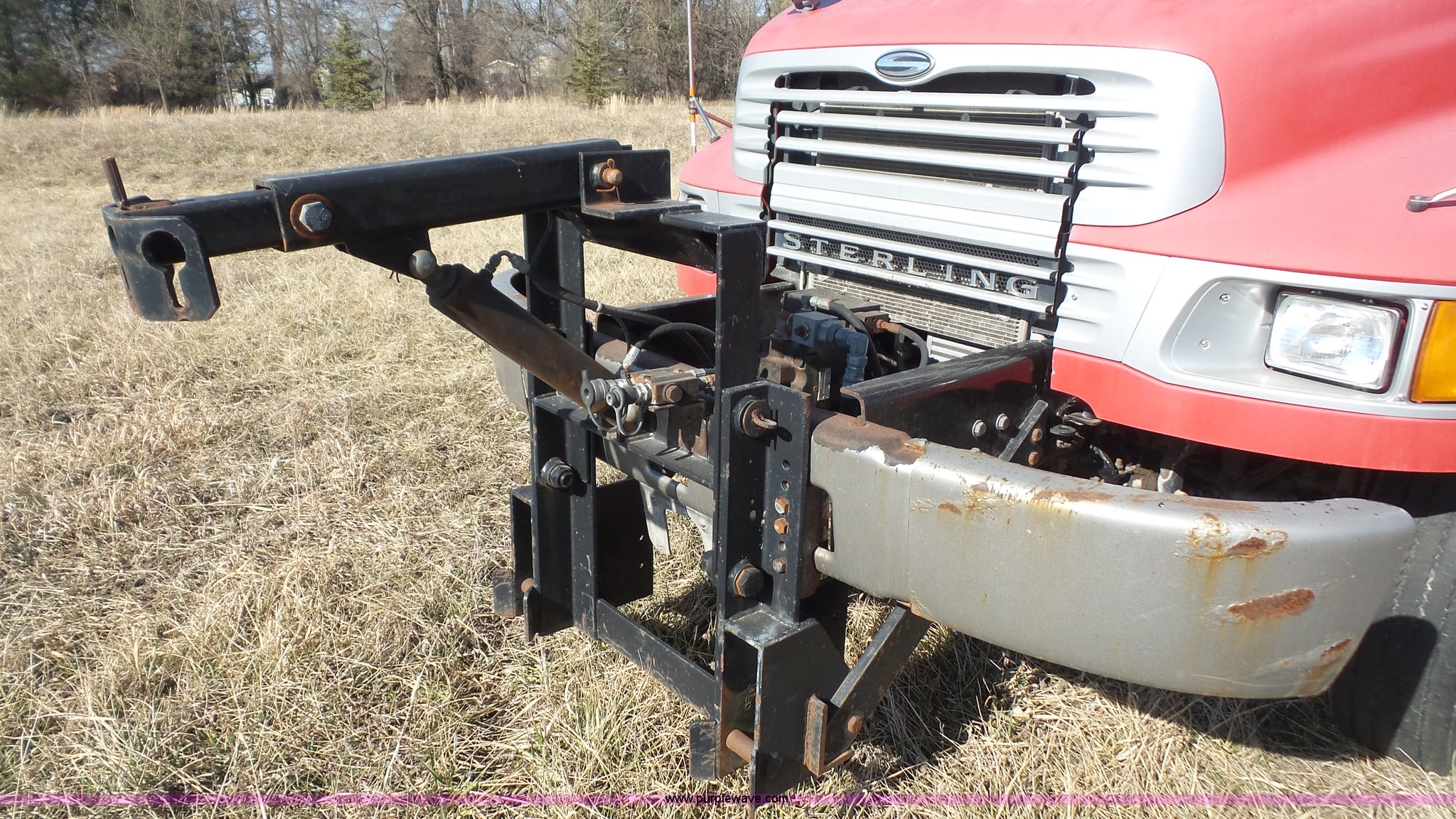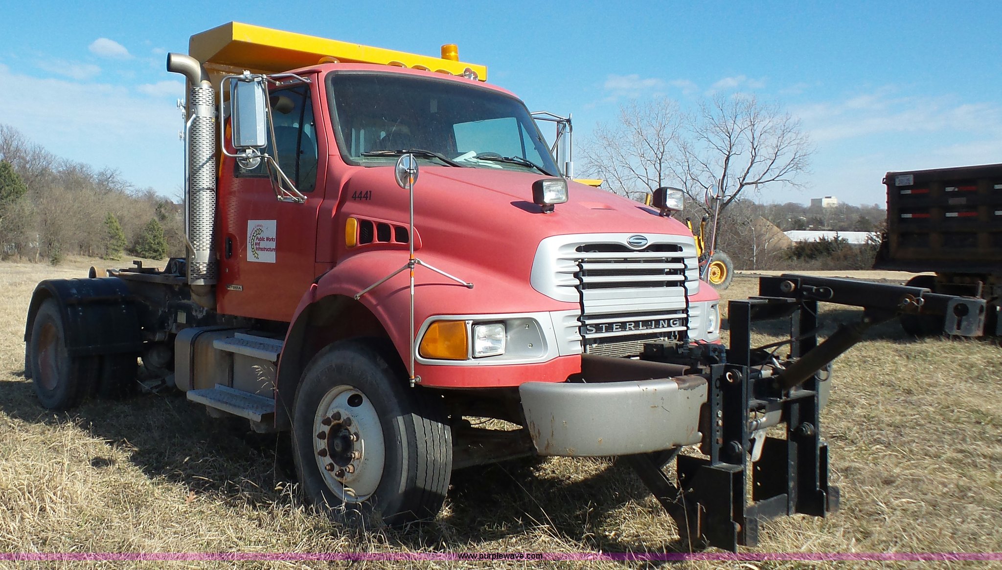 Purple Wave is selling a used Rollback or Tow Truck in Kansas. This item is a 2004 Sterling Acterra roll off container truck with the following: 54,782 miles on odometer, Caterpillar 3126 7.2L L6 turbo diesel engine, Automatic transmission, Heat, AM/FM, Air suspension seat, Heated mirrors, Block heater, Beacon light, Command All plow control, Force spreader control, Front mounted PTO with plow bracket, Single exhaust stack, Swap loader, Pintle hitch, Trailer wiring, Spring suspension, Air brakes, 172" wheelbase, Michelin 12R22.5 tires, GVWR 37,000 lbs, FAWR 14,000 lbs, RAWR 23,000 lbs, Unit# PWK4441