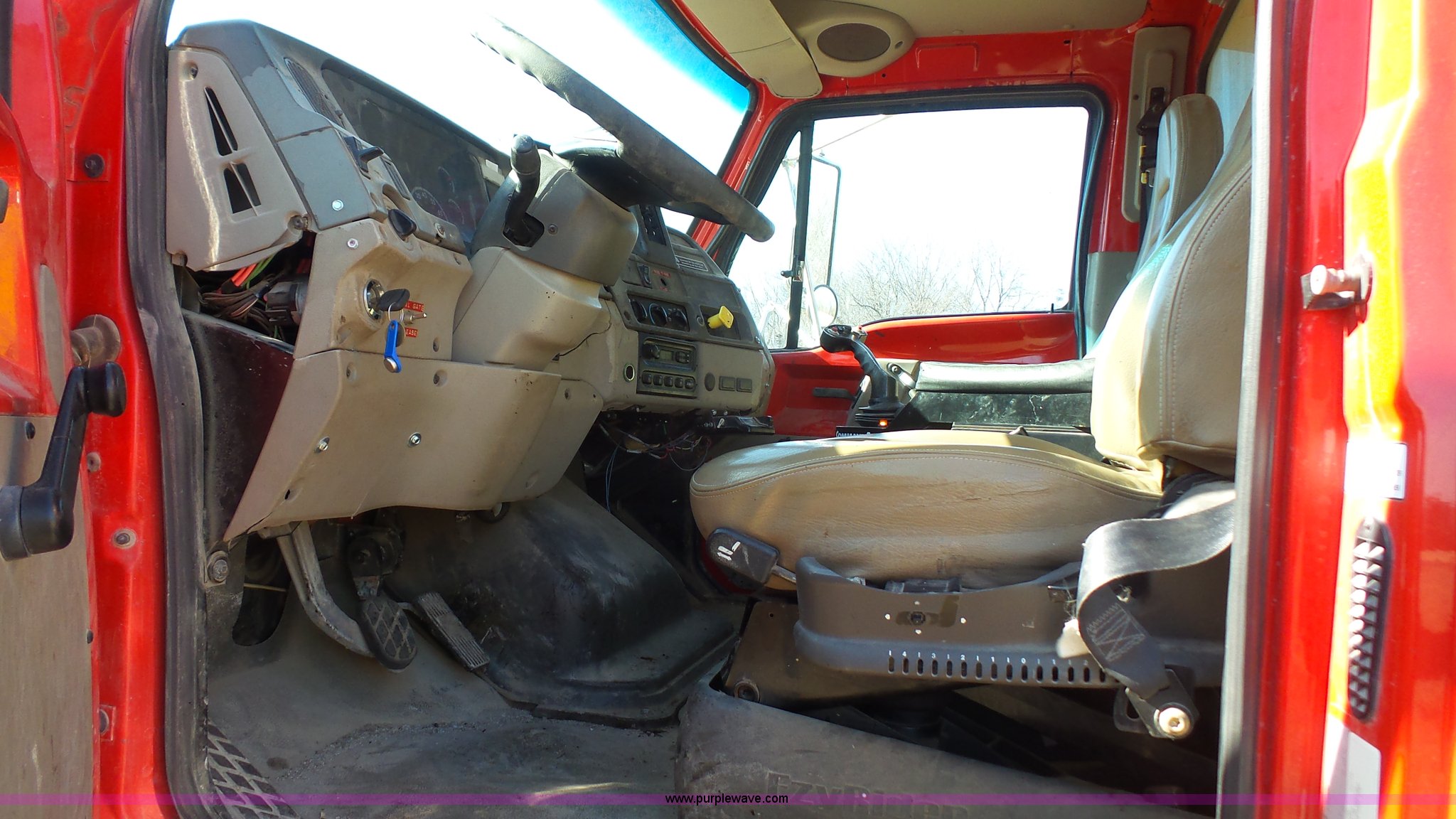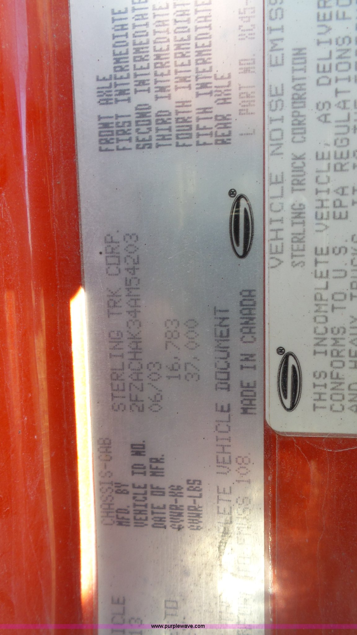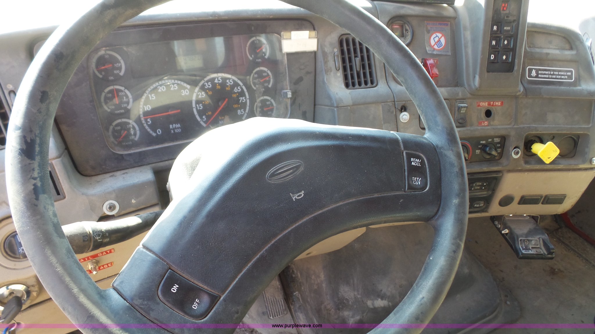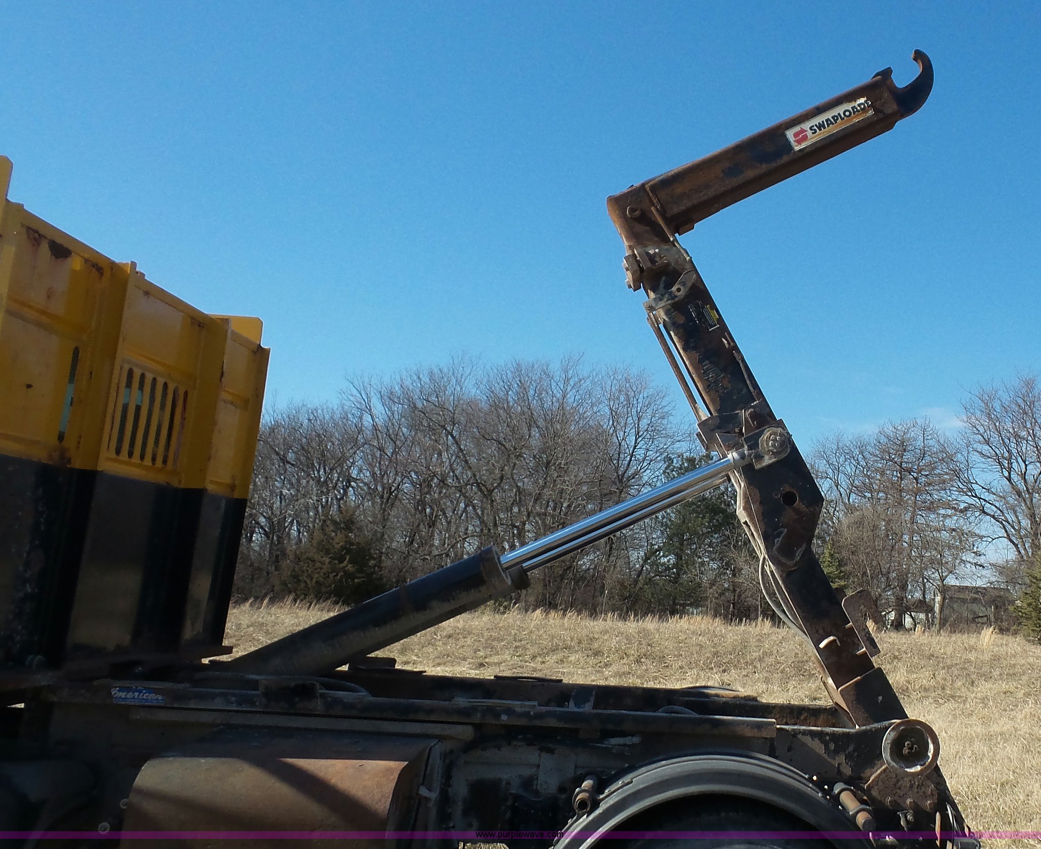 Purple Wave is selling a used Rollback or Tow Truck in Kansas. This item is a 2004 Sterling Acterra roll off container truck with the following: 54,782 miles on odometer, Caterpillar 3126 7.2L L6 turbo diesel engine, Automatic transmission, Heat, AM/FM, Air suspension seat, Heated mirrors, Block heater, Beacon light, Command All plow control, Force spreader control, Front mounted PTO with plow bracket, Single exhaust stack, Swap loader, Pintle hitch, Trailer wiring, Spring suspension, Air brakes, 172" wheelbase, Michelin 12R22.5 tires, GVWR 37,000 lbs, FAWR 14,000 lbs, RAWR 23,000 lbs, Unit# PWK4441