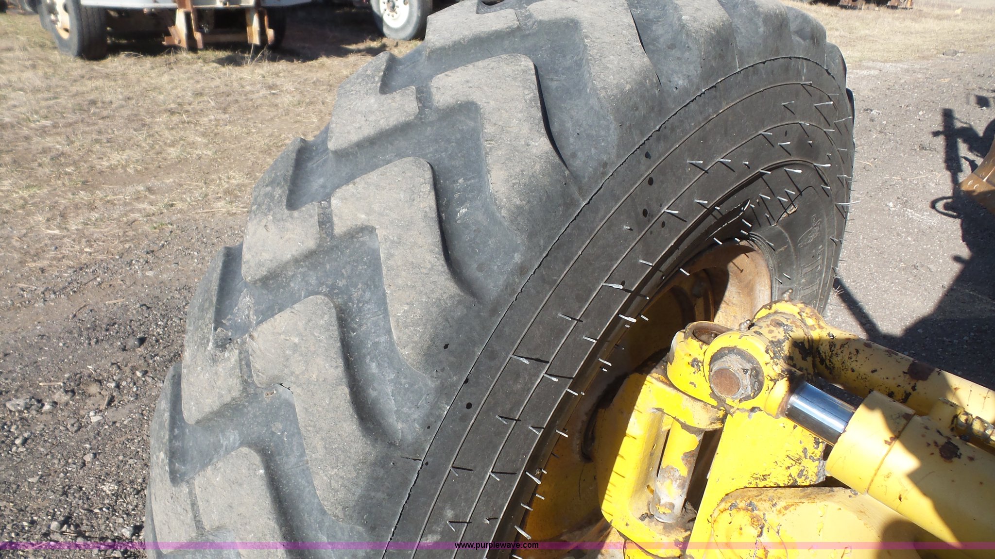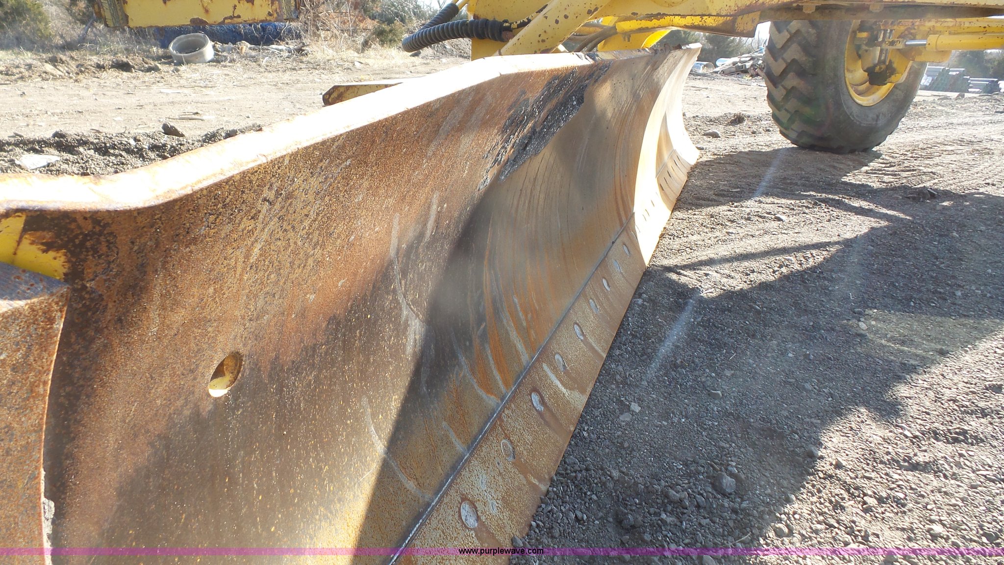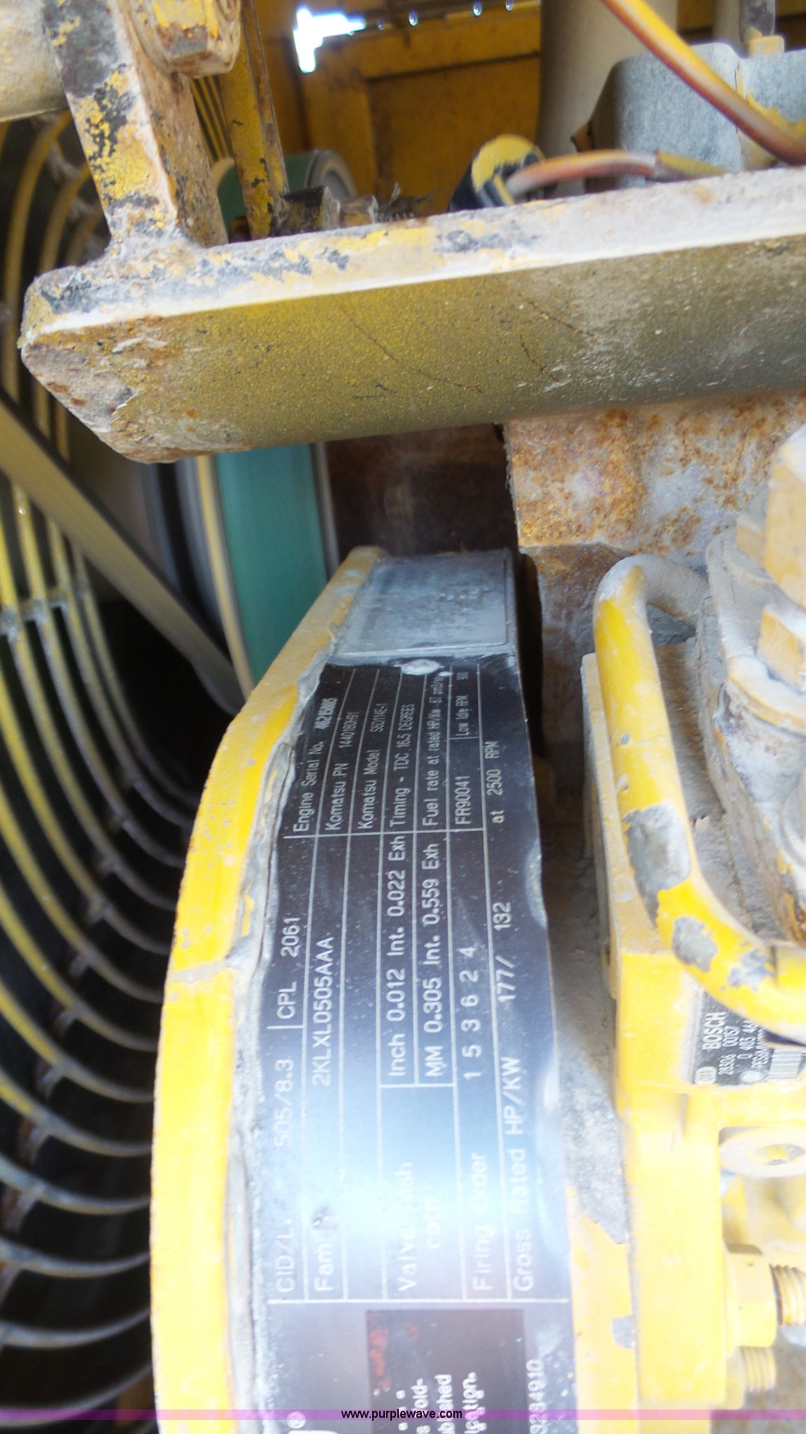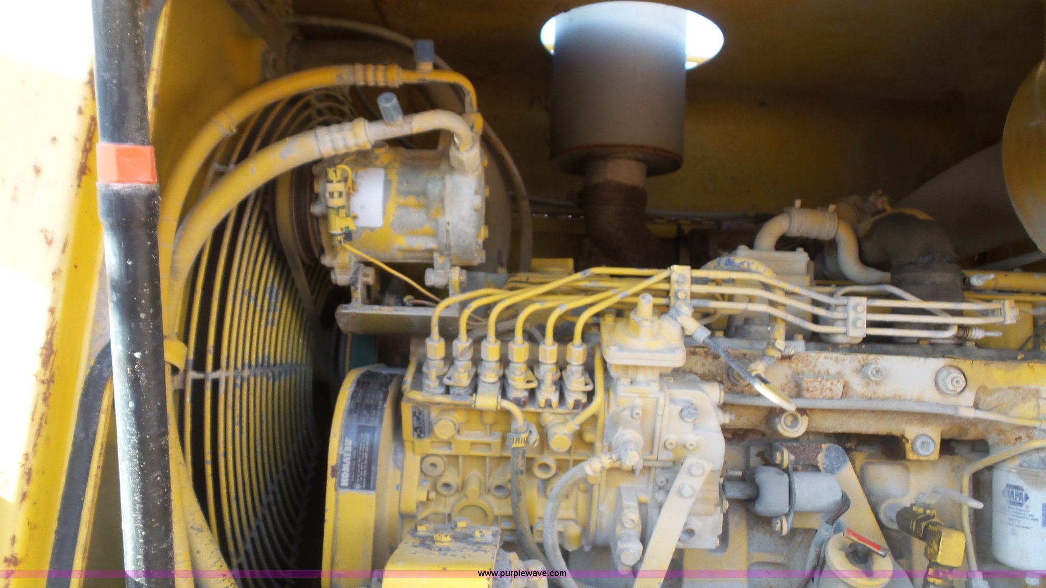 Purple Wave is selling a used Motor Grader in Kansas. This item is a 2003 Komatsu GD650A motor grader with the following: 10,535 hours on meter, Komatsu 8.3L six cylinder turbo diesel engine, 177 HP, Serial 46215885, Powershift transmission, 6F-3R gears, Enclosed cab, AC and heat, Suspension seat, Front and rear work lights, Front and rear wipers, Strobe light, Block heater, 14' moldboard, Tip control, Side shift, Titan 14.00R24 tires, 37,500 lbs. base operating weight, PIN 82110548, Serial 71457, Unit# PWK5433