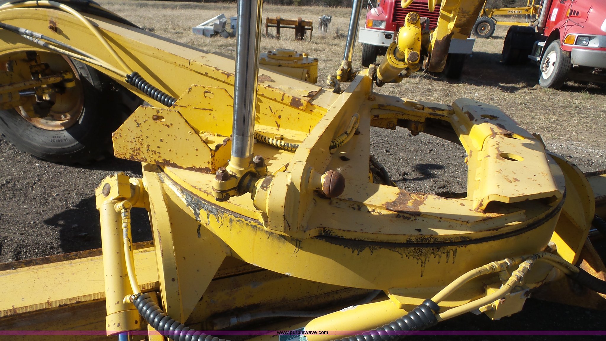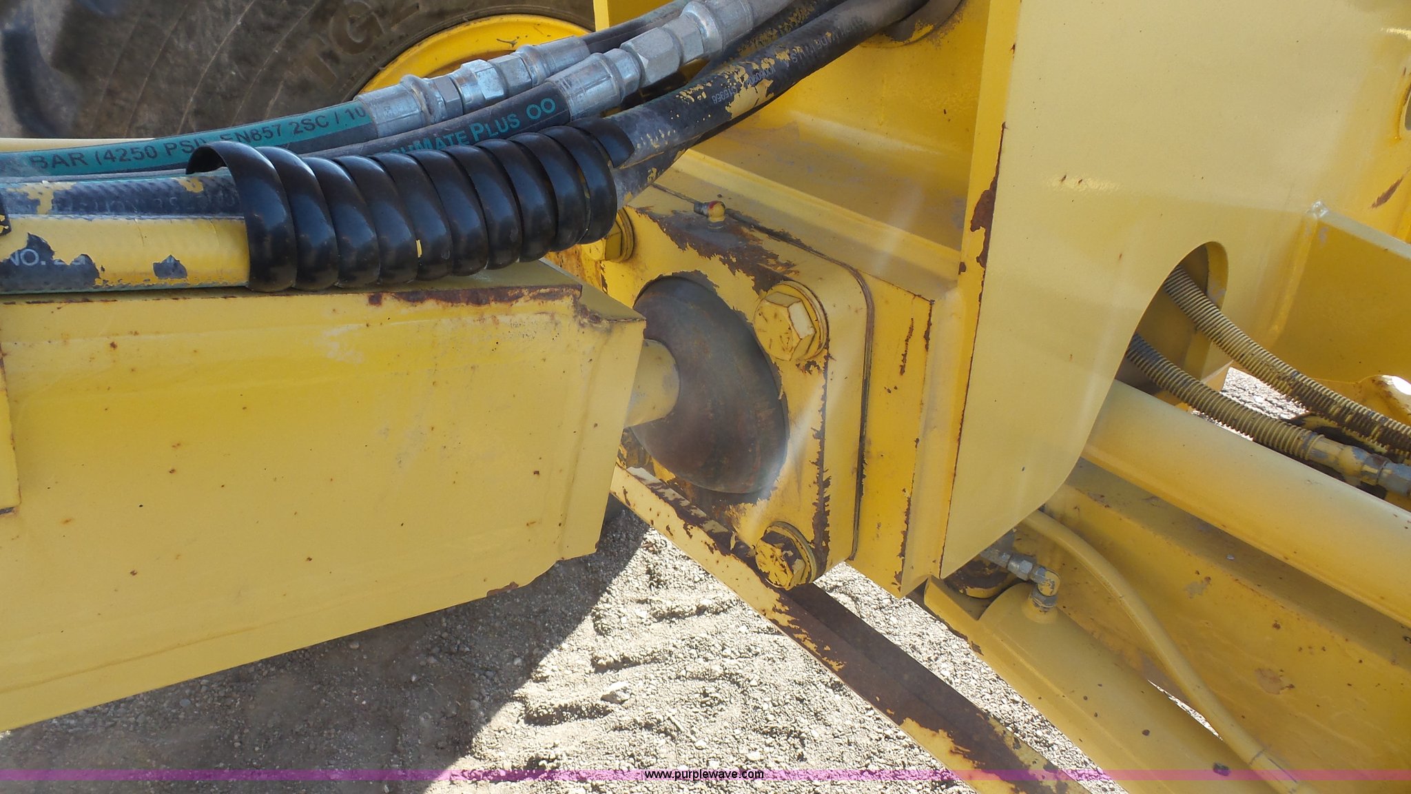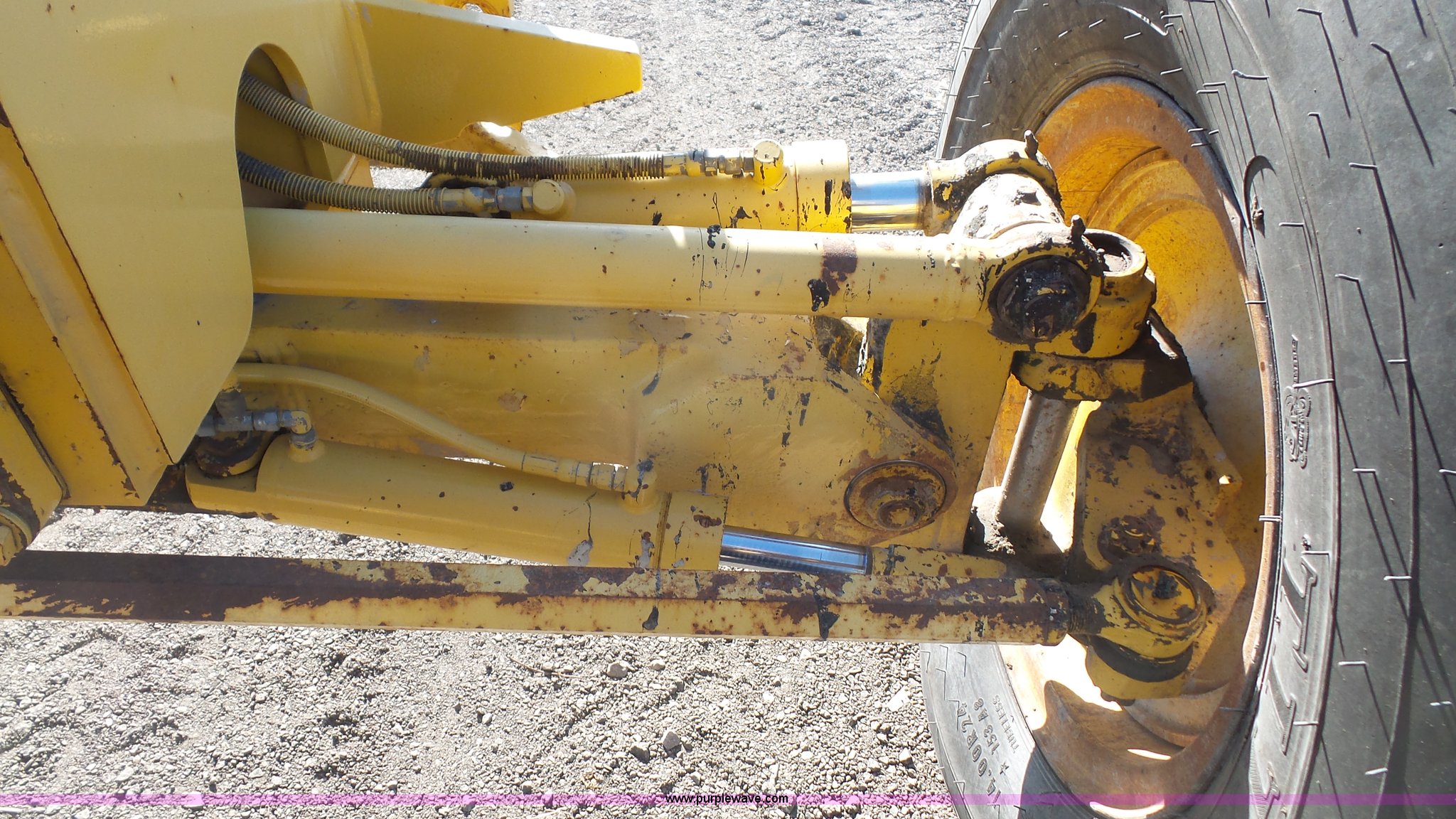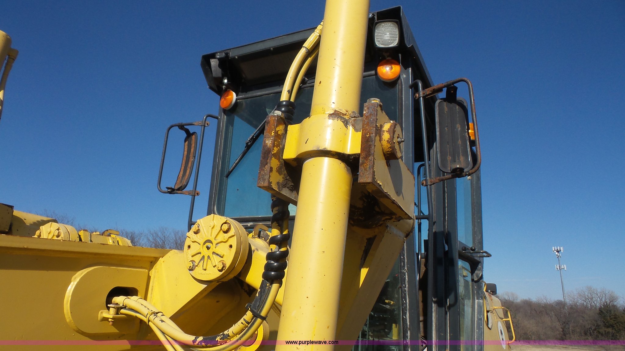 Purple Wave is selling a used Motor Grader in Kansas. This item is a 2003 Komatsu GD650A motor grader with the following: 10,535 hours on meter, Komatsu 8.3L six cylinder turbo diesel engine, 177 HP, Serial 46215885, Powershift transmission, 6F-3R gears, Enclosed cab, AC and heat, Suspension seat, Front and rear work lights, Front and rear wipers, Strobe light, Block heater, 14' moldboard, Tip control, Side shift, Titan 14.00R24 tires, 37,500 lbs. base operating weight, PIN 82110548, Serial 71457, Unit# PWK5433
