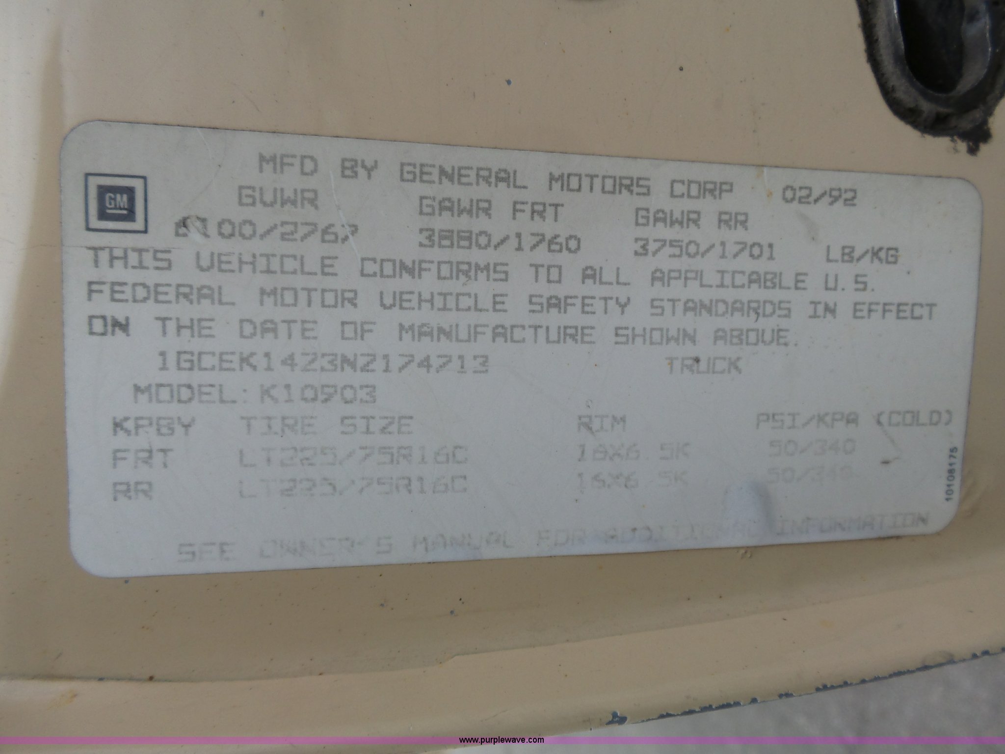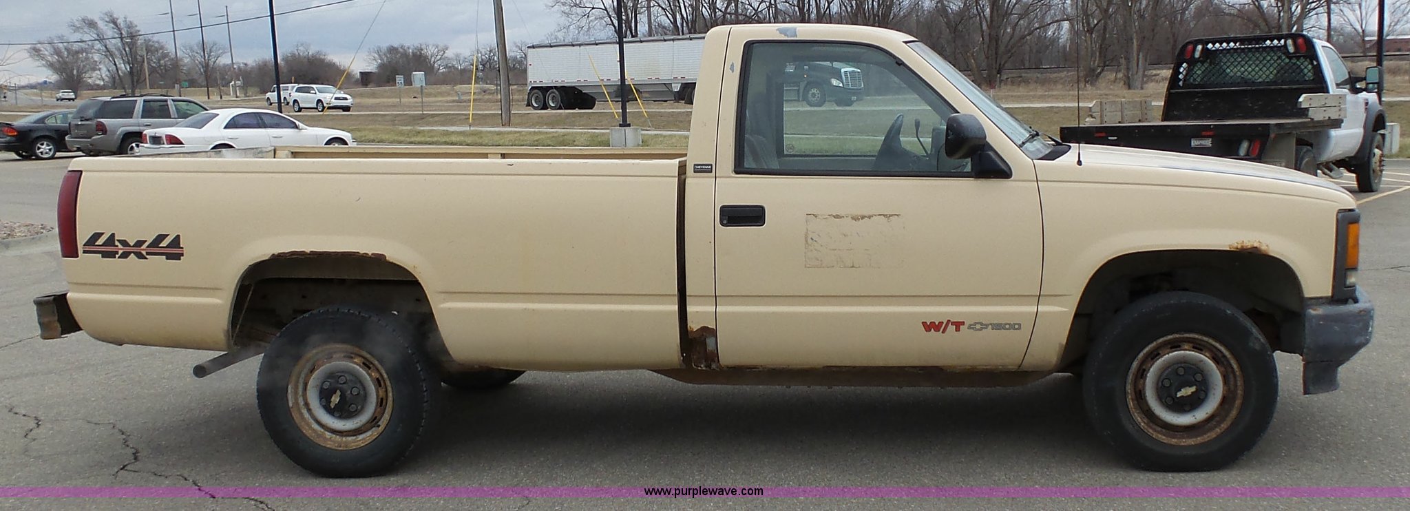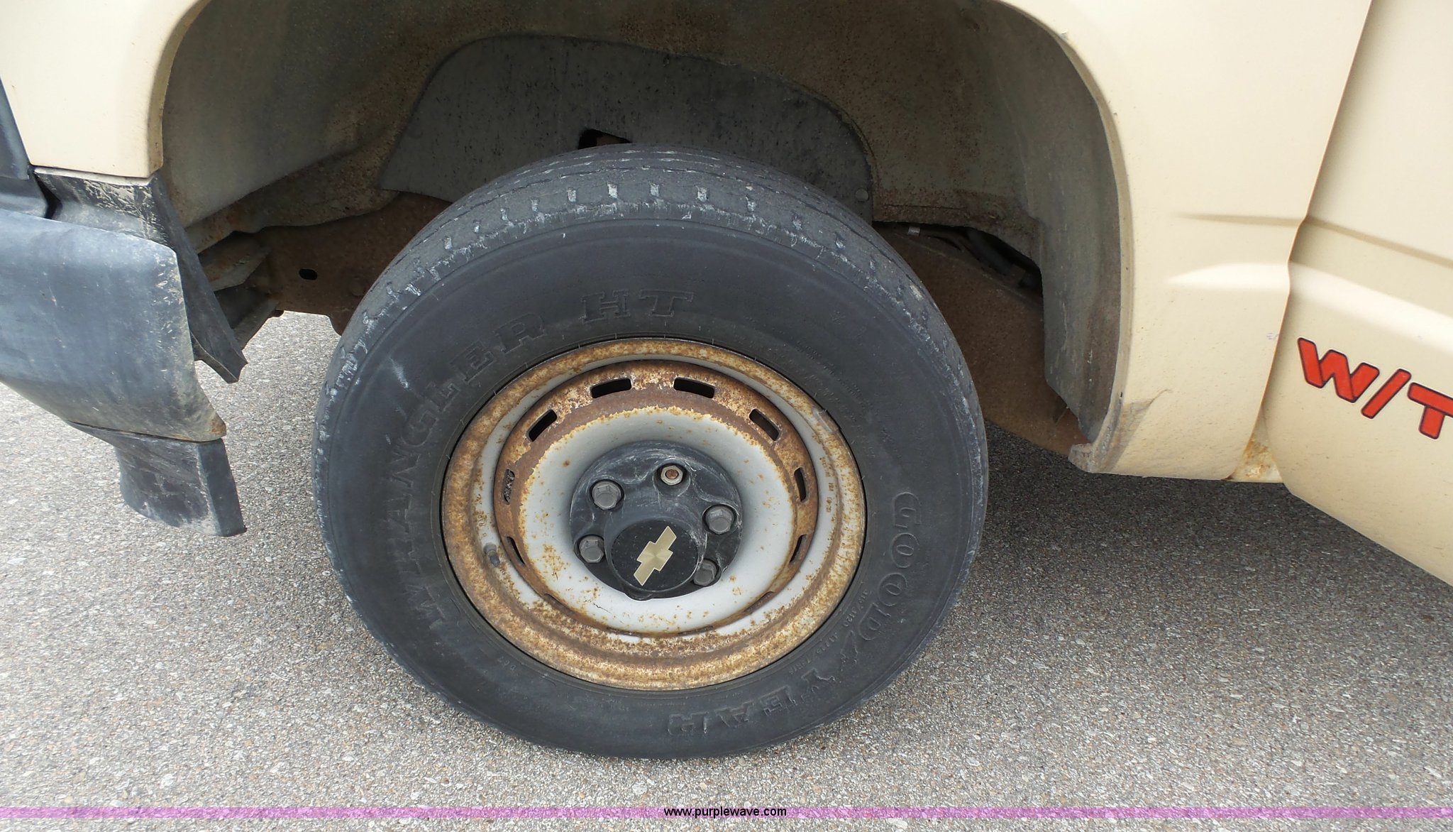 Purple Wave is selling a used 1/2 Ton Pickup or Van in Kansas. This item is a 1992 Chevrolet Cheyenne 1500 pickup truck with the following: 142,389 miles on odometer, 4.3L V6 OHV 12V gas engine, Automatic transmission, Four wheel drive, Heat, AM/FM/CD, Manual windows and locks, Vinyl interior, Front tow hooks, Ball hitch, Trailer wiring, 225/75R16 tires, Interior/exterior cosmetic damage, Paint peeling, Rust, Dents, Scratches, Chassis may have rust issues, Headliner needs repaired, Interior fan knocks when first turned off and on