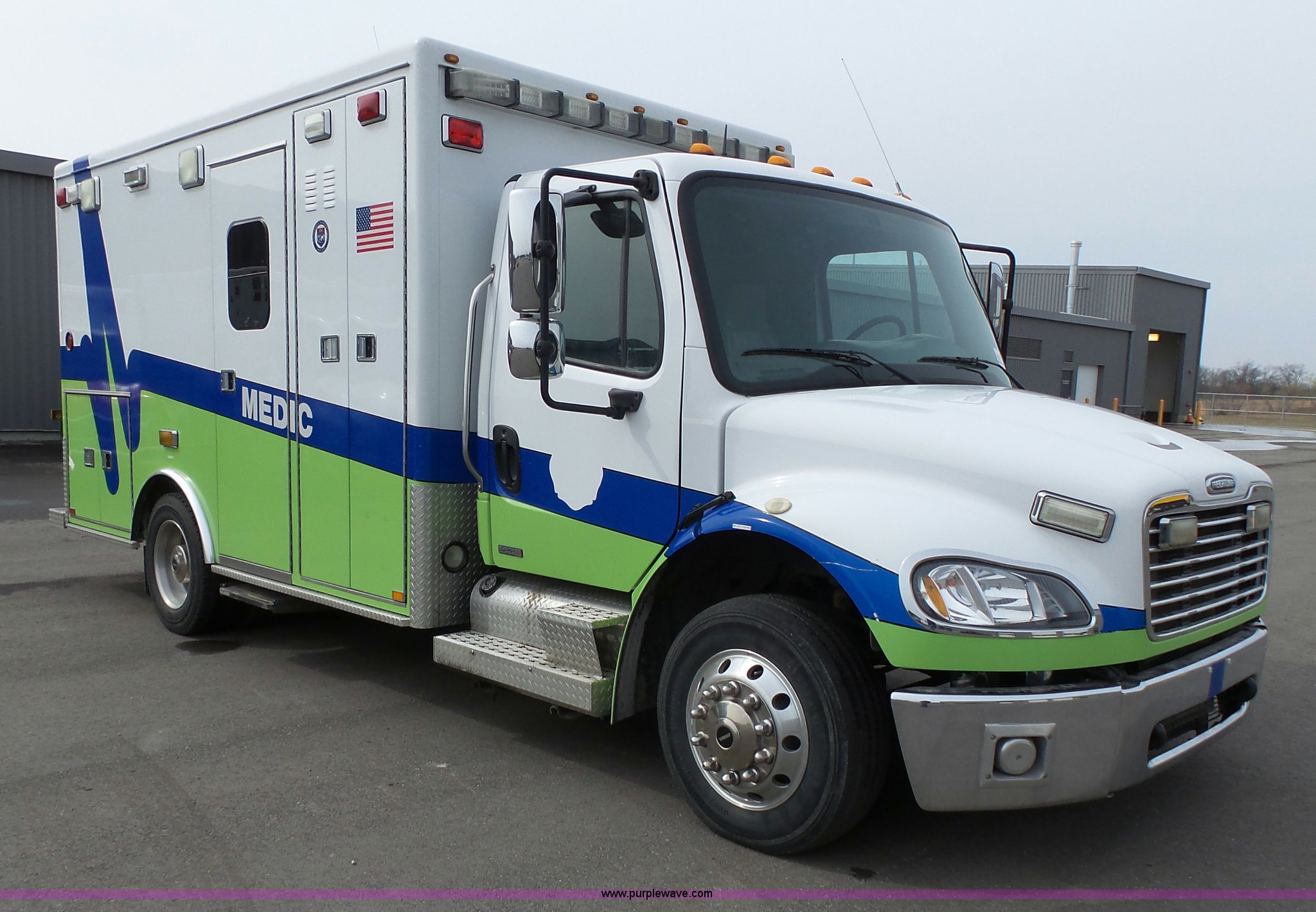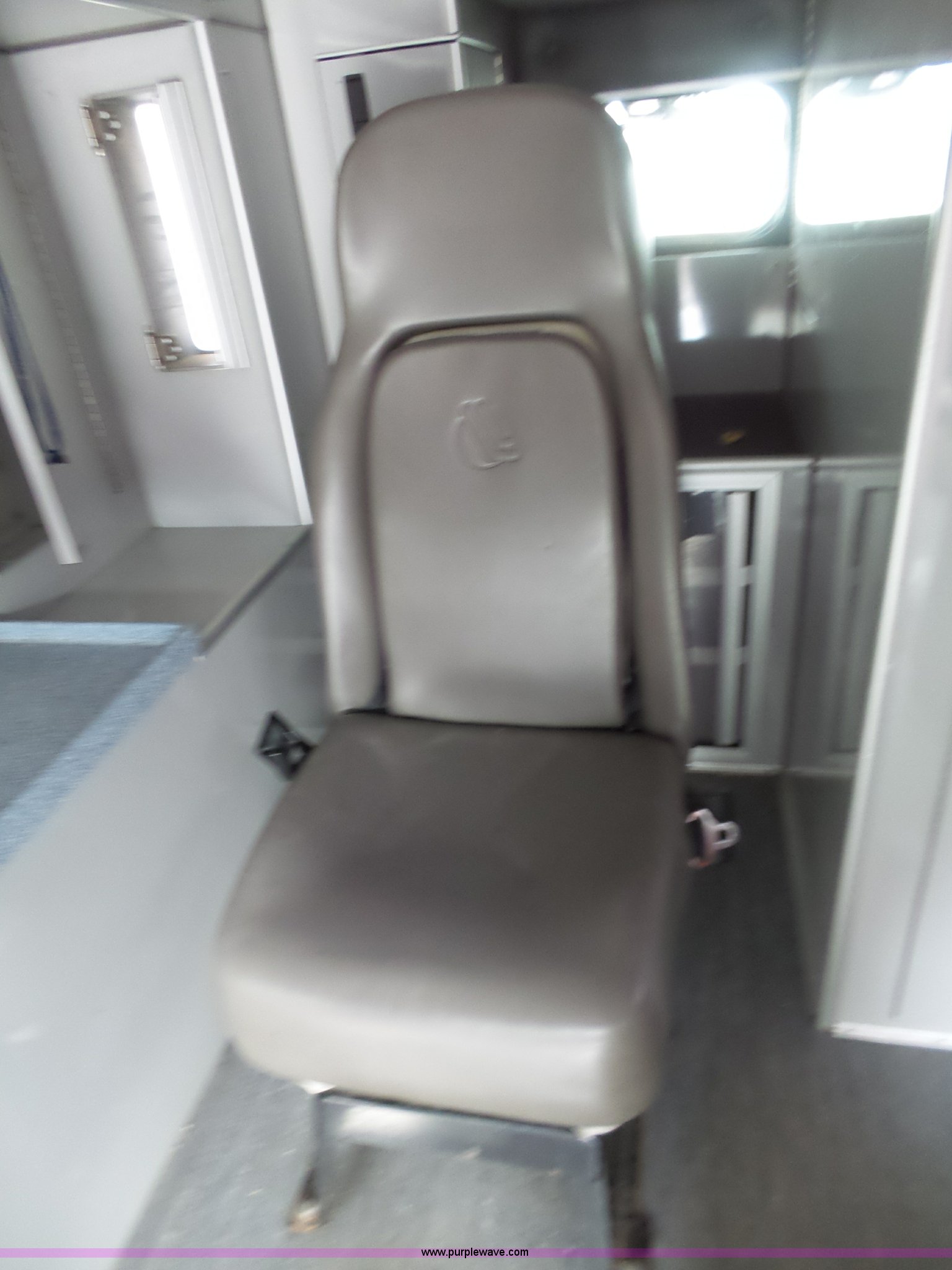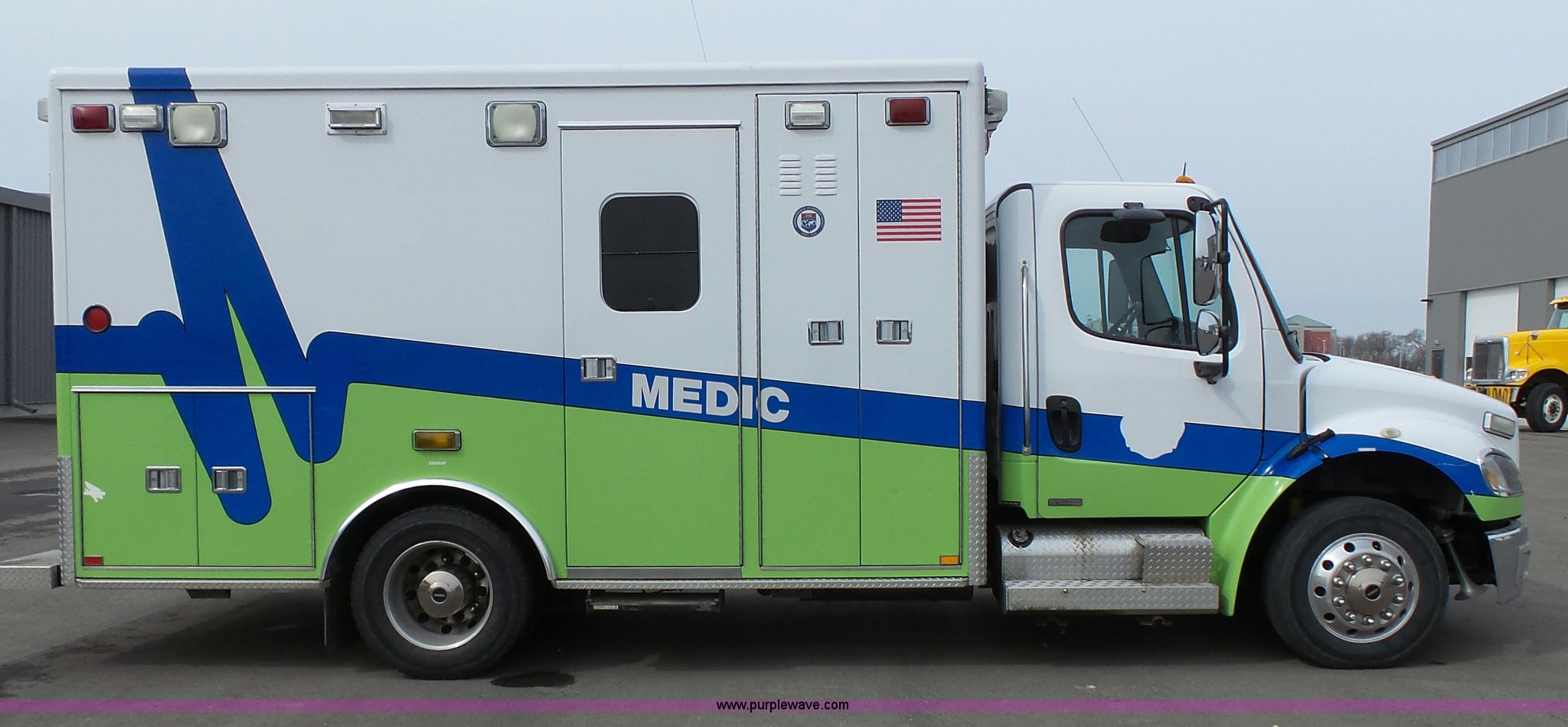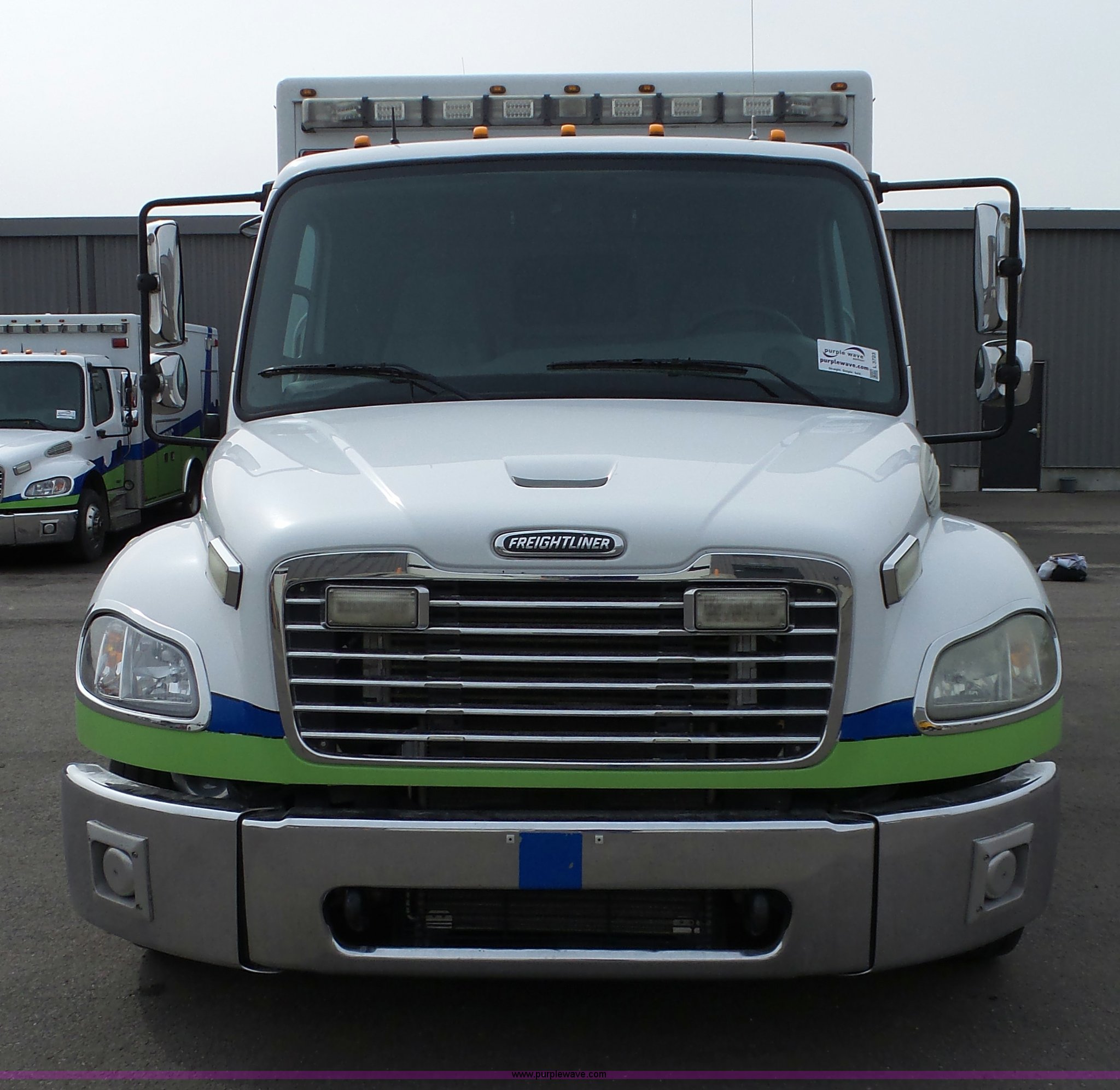 Purple Wave is selling a used Fire Truck or Emergency Vehicle in Kansas. This item is a 2005 Freightliner Business Class M2 ambulance with the following: 182,748 miles on odometer, Caterpillar C7 7.2L L6 turbo diesel engine, Automatic transmission, AC and heat, Cruise, AM/FM, Power windows and locks, Heated mirrors, Air suspension seat, Vinyl interior, Backup alarm, Air horn, Federal Signal PA4000 control system, Emergency lights and sirens, Voyager backup camera, (3) oxygen hookups, Front and rear tow hooks, Air suspension, Air brakes, Michelin 245/70R19.5 tires, GVWR 20,000 lbs, FAWR 8,000 lbs, RAWR 12,000 lbs, Decals have been removed