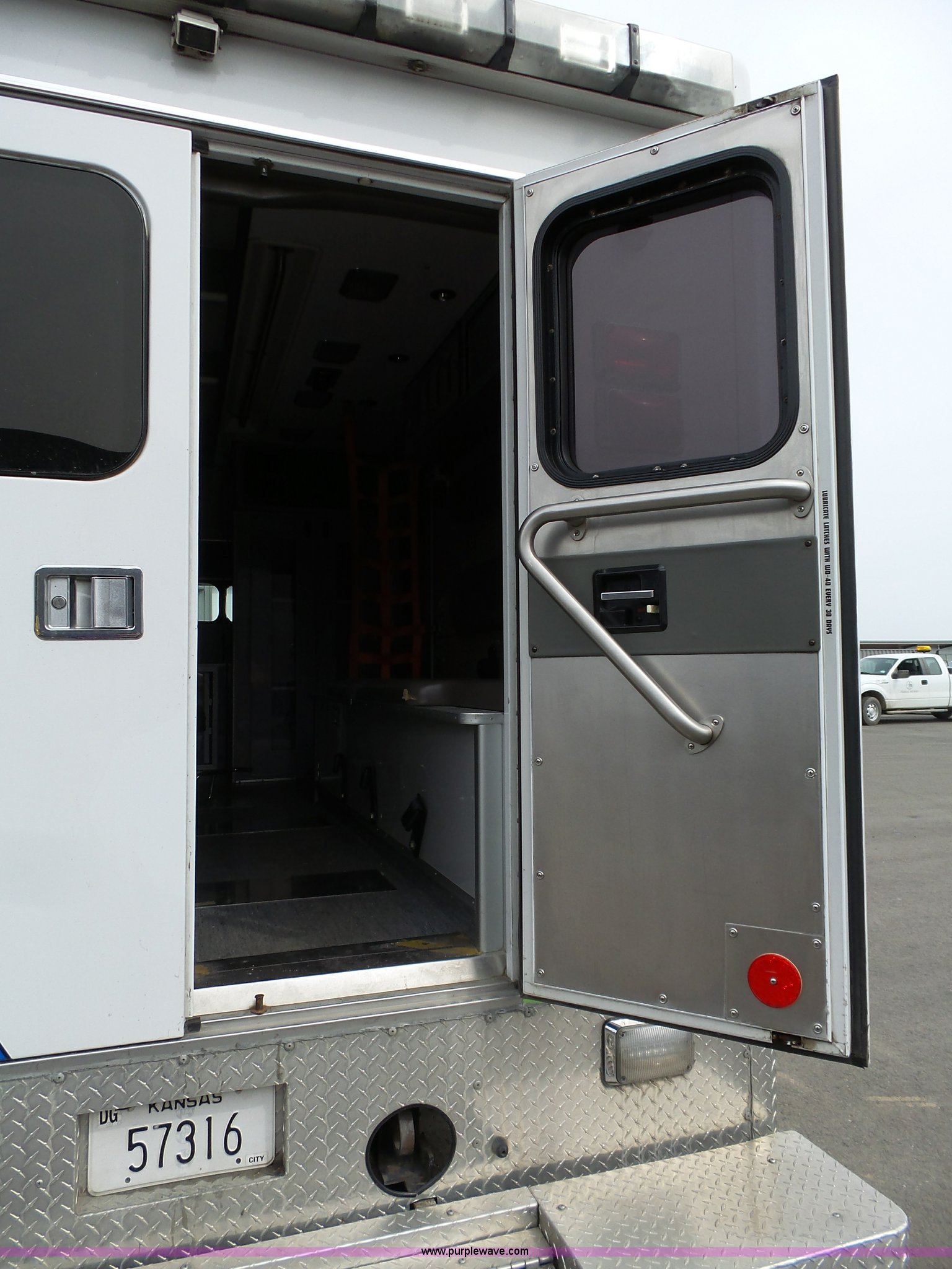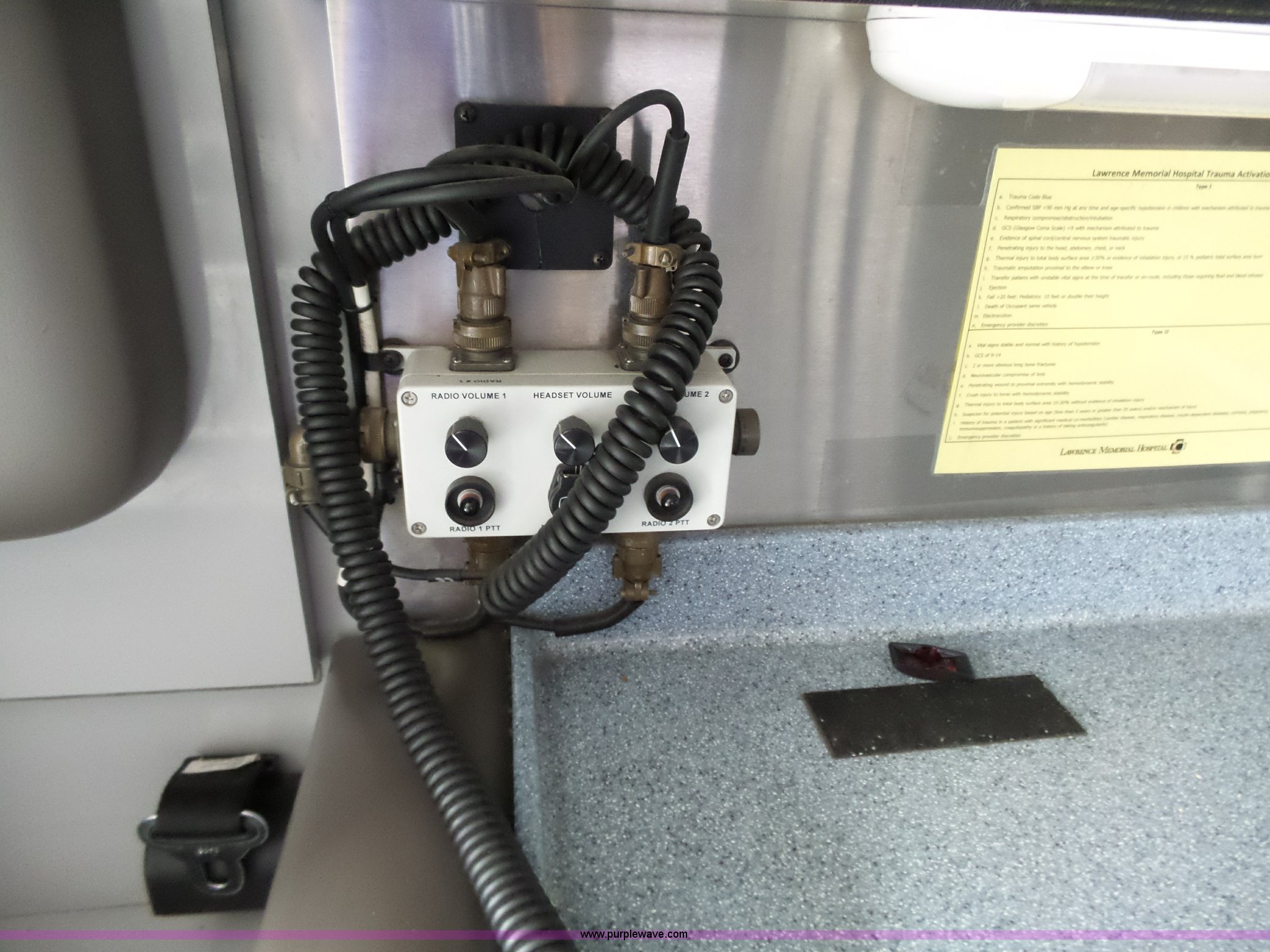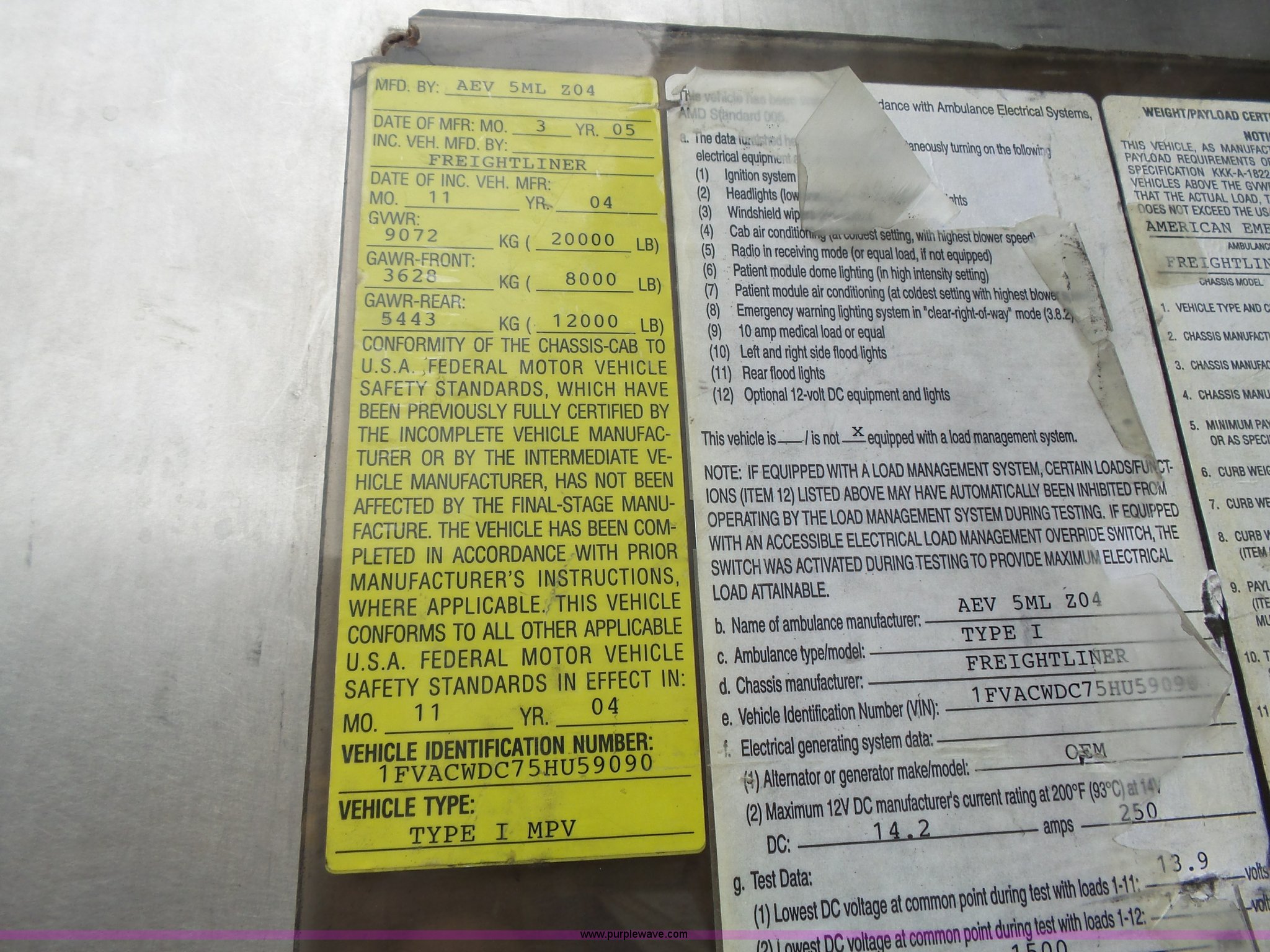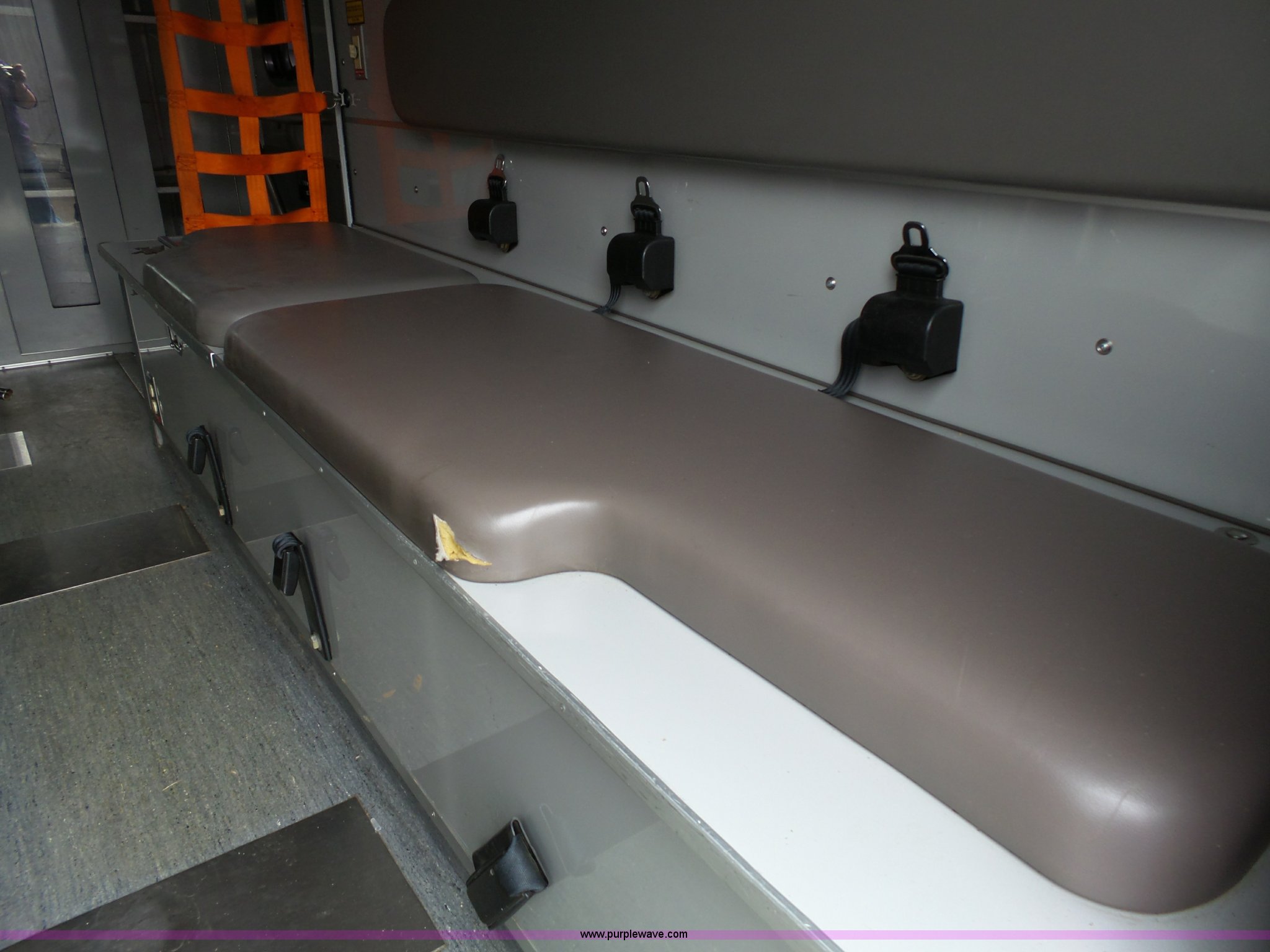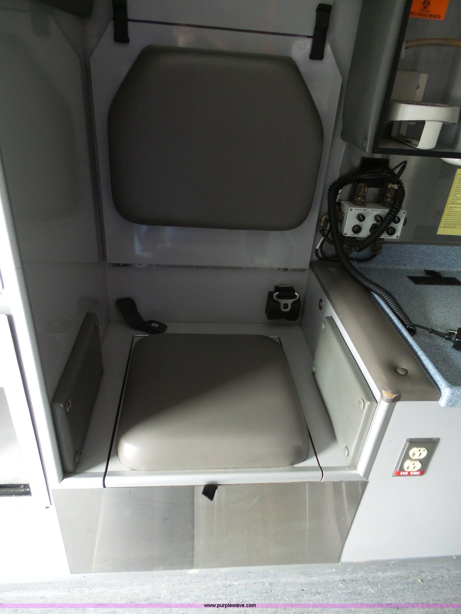 Purple Wave is selling a used Fire Truck or Emergency Vehicle in Kansas. This item is a 2005 Freightliner Business Class M2 ambulance with the following: 182,748 miles on odometer, Caterpillar C7 7.2L L6 turbo diesel engine, Automatic transmission, AC and heat, Cruise, AM/FM, Power windows and locks, Heated mirrors, Air suspension seat, Vinyl interior, Backup alarm, Air horn, Federal Signal PA4000 control system, Emergency lights and sirens, Voyager backup camera, (3) oxygen hookups, Front and rear tow hooks, Air suspension, Air brakes, Michelin 245/70R19.5 tires, GVWR 20,000 lbs, FAWR 8,000 lbs, RAWR 12,000 lbs, Decals have been removed