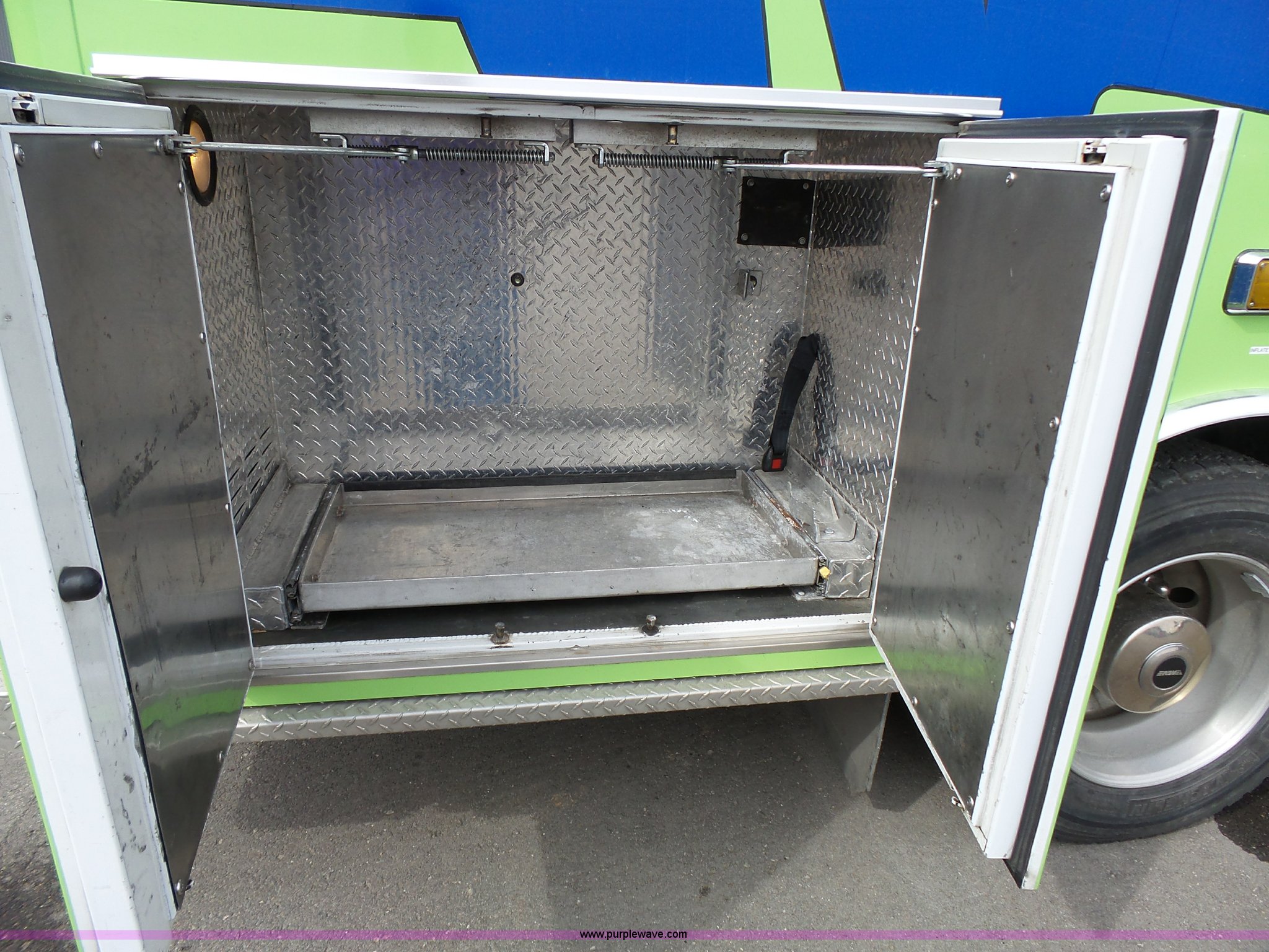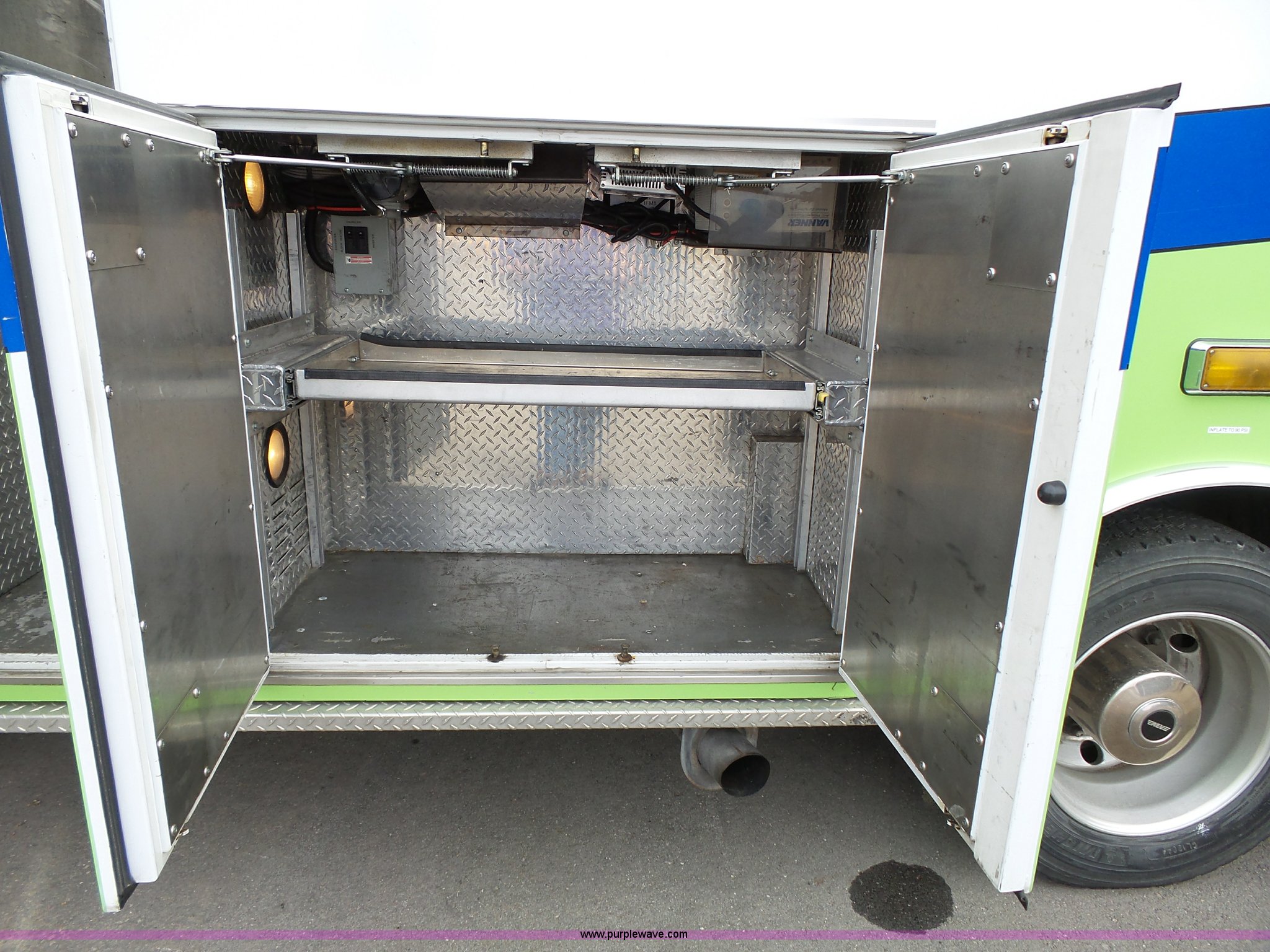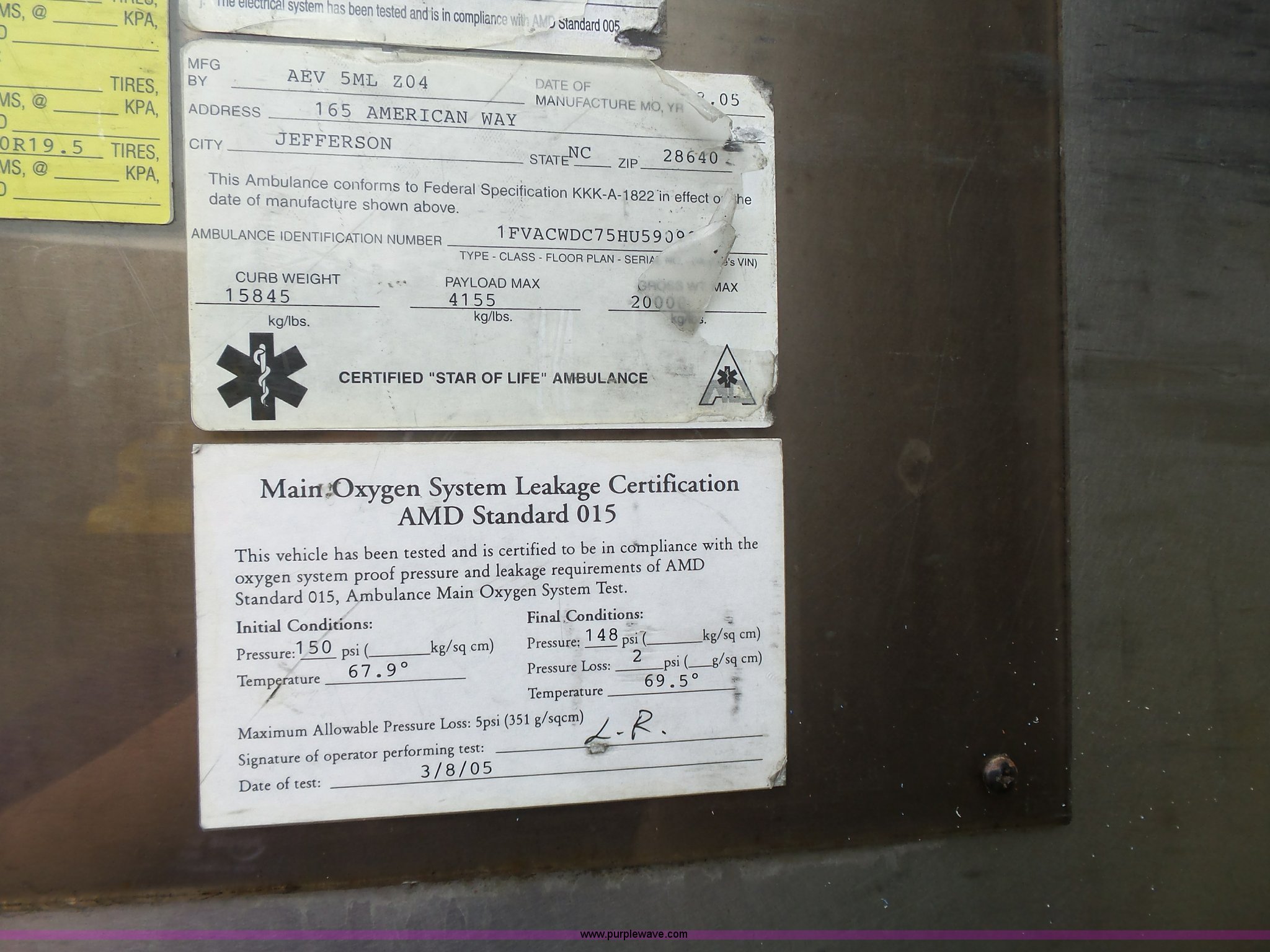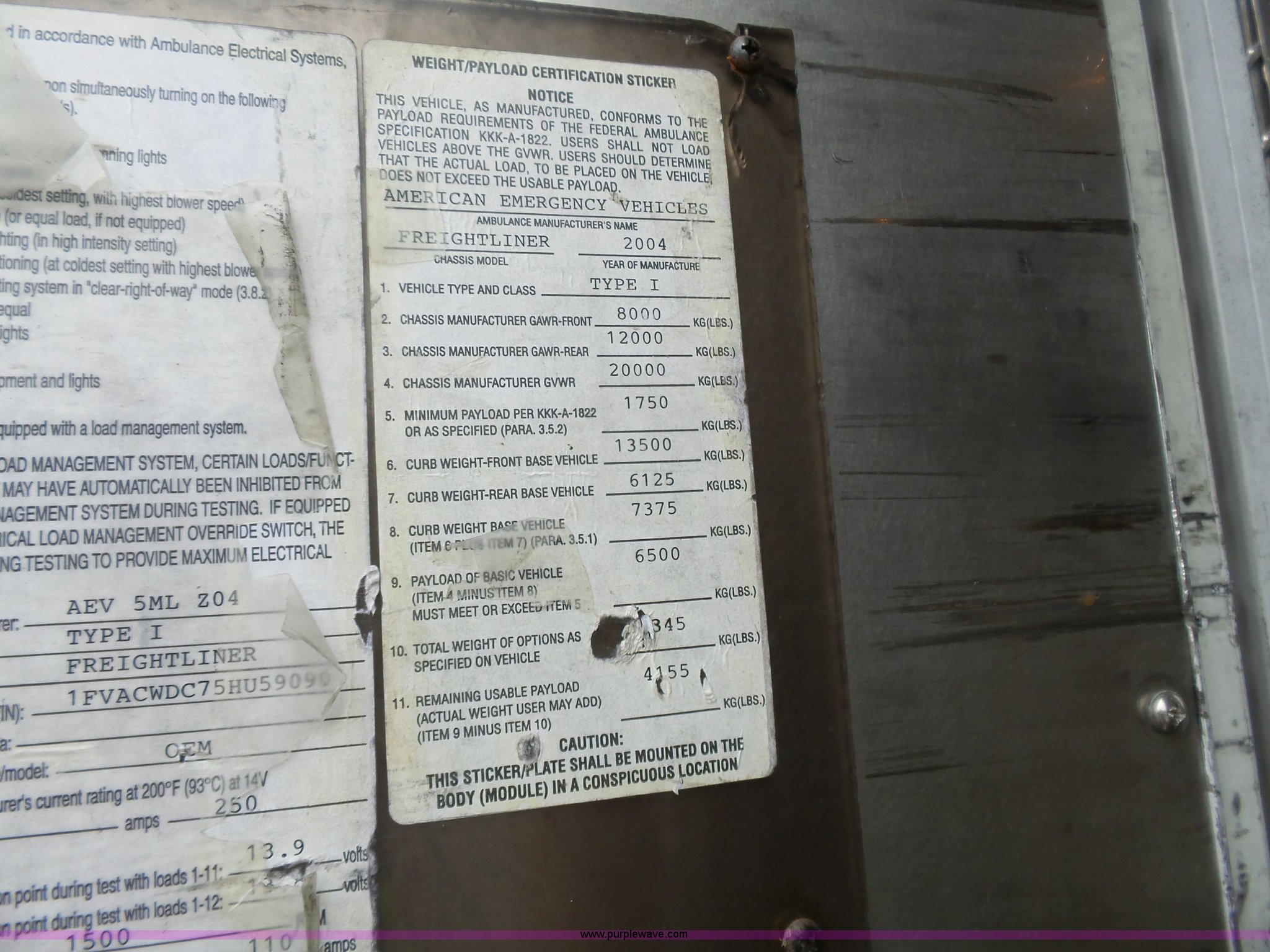 Purple Wave is selling a used Fire Truck or Emergency Vehicle in Kansas. This item is a 2005 Freightliner Business Class M2 ambulance with the following: 182,748 miles on odometer, Caterpillar C7 7.2L L6 turbo diesel engine, Automatic transmission, AC and heat, Cruise, AM/FM, Power windows and locks, Heated mirrors, Air suspension seat, Vinyl interior, Backup alarm, Air horn, Federal Signal PA4000 control system, Emergency lights and sirens, Voyager backup camera, (3) oxygen hookups, Front and rear tow hooks, Air suspension, Air brakes, Michelin 245/70R19.5 tires, GVWR 20,000 lbs, FAWR 8,000 lbs, RAWR 12,000 lbs, Decals have been removed