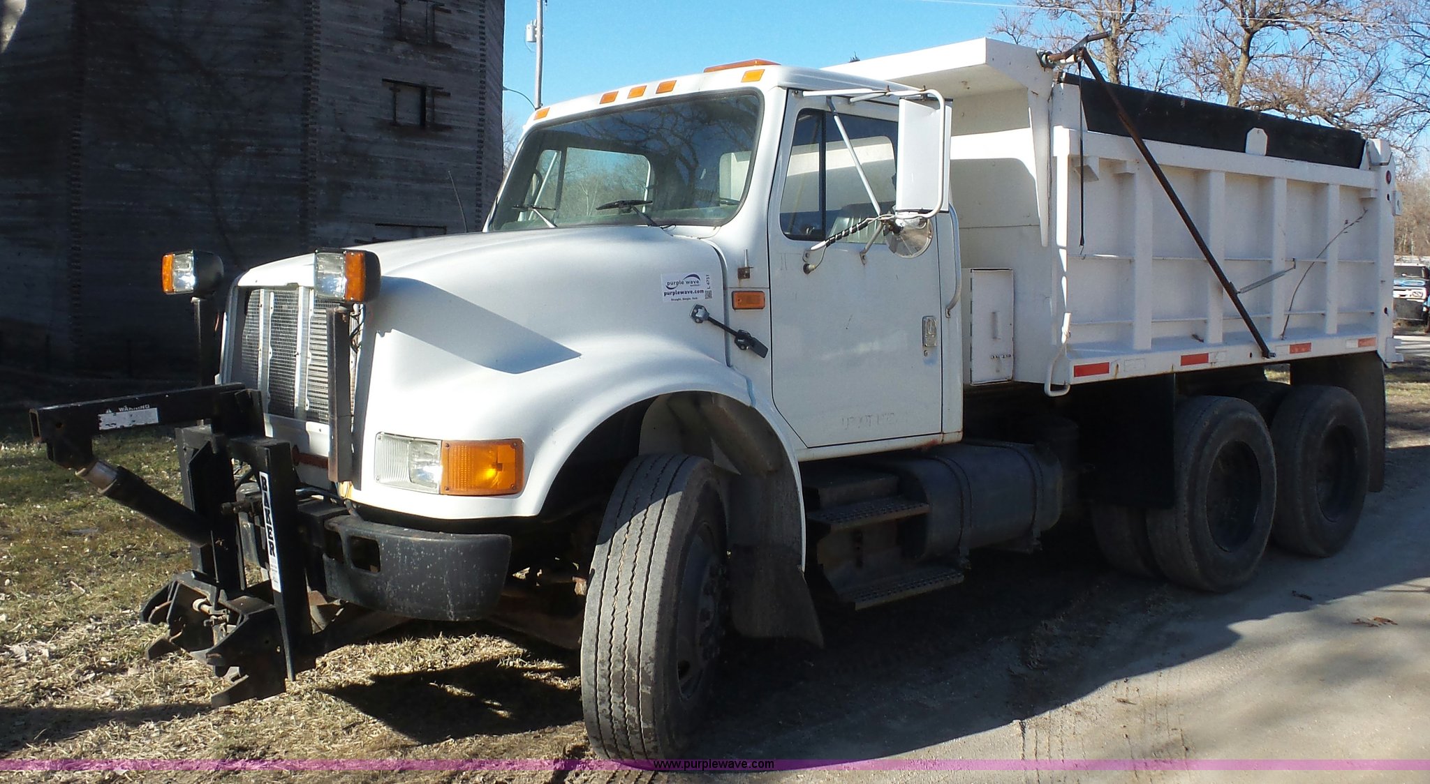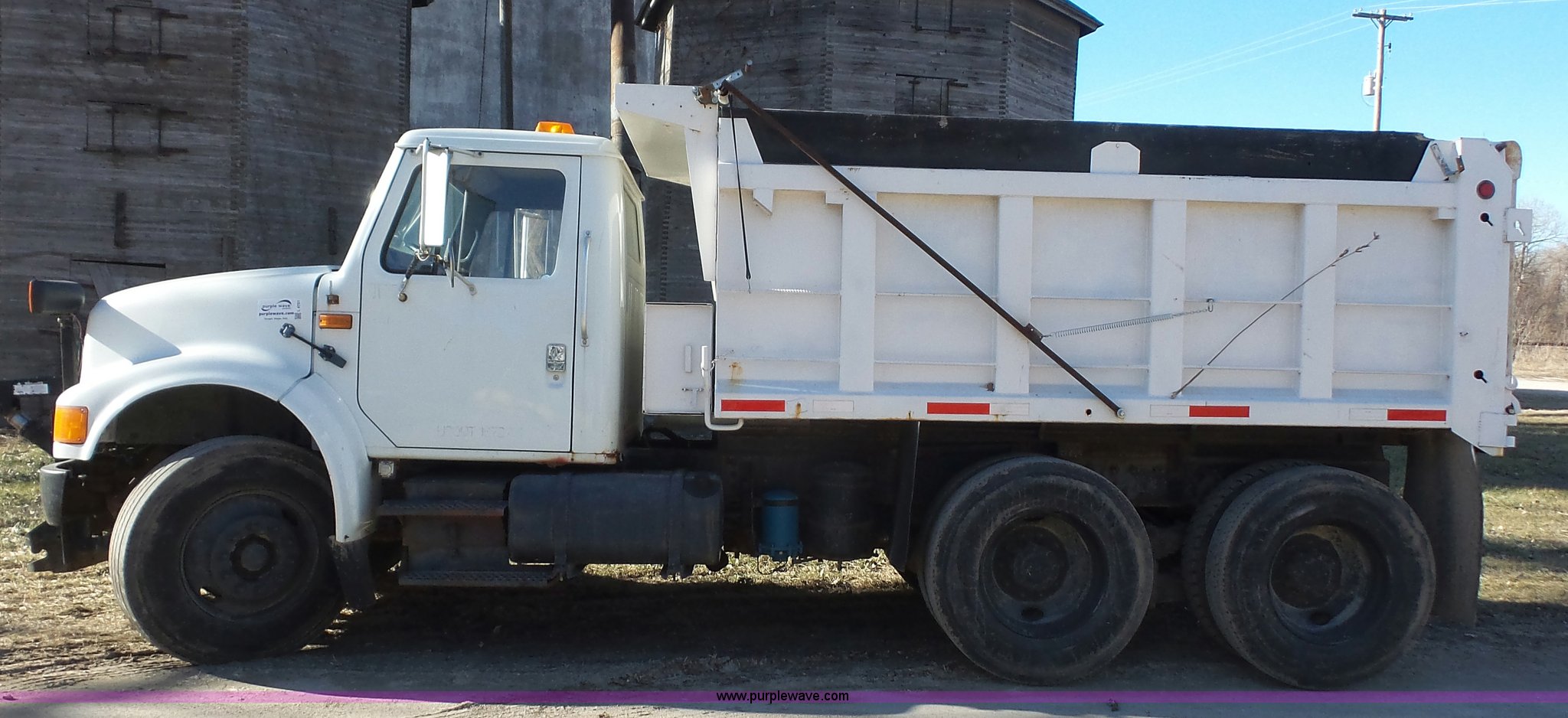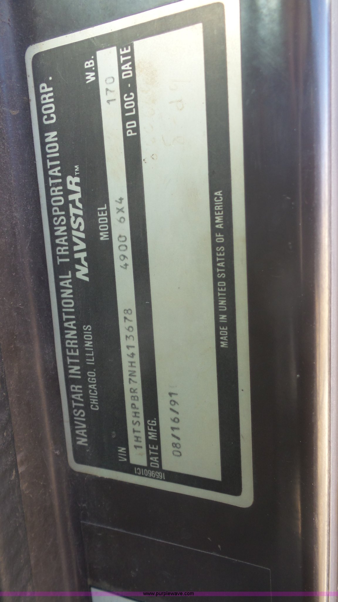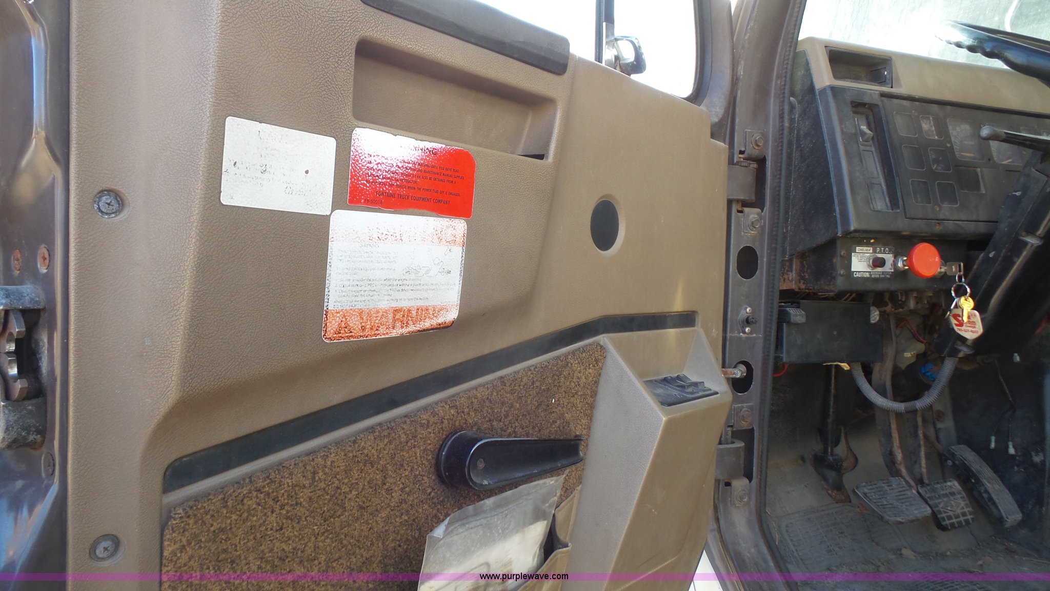Purple Wave is selling a used Construction Dump Truck in Kansas. This item is a 1992 International 4900 dump truck with the following: 112,022 miles on odometer, 6,758 hours on meter, International DT466 7.6L L6 diesel engine, Eaton Fuller 10 speed manual transmission, Tandem axle, Inter-axle differential lock, Heat, AM/FM, Power windows, Air suspension seat, PTO, 12'L x 8'W dump bed, 44" side height, 10"H side boards, Rollover tarp, Single ram hoist, Manual end gate, Toolbox between cab and bed, Spring suspension, 11R22.5 tires, Seat torn, Snow plow, plow mount and controls not included, selling as item F1188