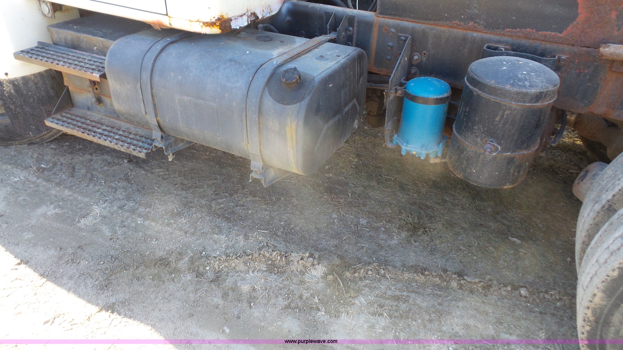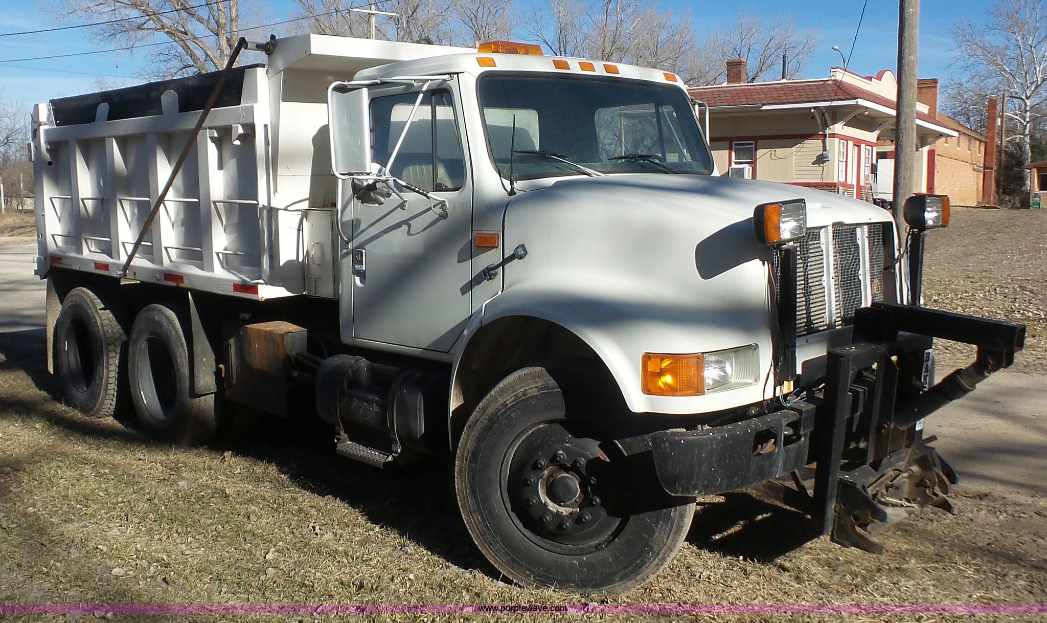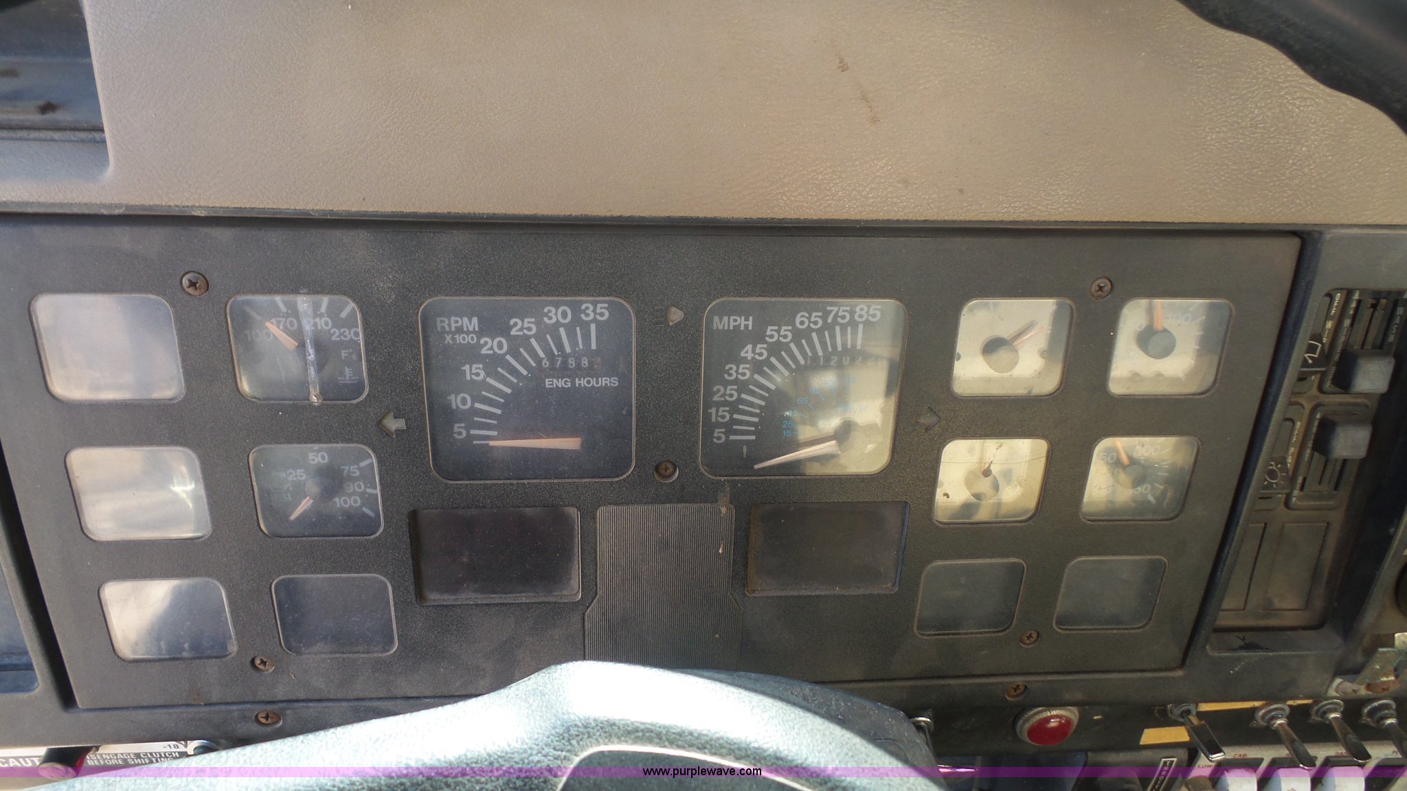 Purple Wave is selling a used Construction Dump Truck in Kansas. This item is a 1992 International 4900 dump truck with the following: 112,022 miles on odometer, 6,758 hours on meter, International DT466 7.6L L6 diesel engine, Eaton Fuller 10 speed manual transmission, Tandem axle, Inter-axle differential lock, Heat, AM/FM, Power windows, Air suspension seat, PTO, 12'L x 8'W dump bed, 44" side height, 10"H side boards, Rollover tarp, Single ram hoist, Manual end gate, Toolbox between cab and bed, Spring suspension, 11R22.5 tires, Seat torn, Snow plow, plow mount and controls not included, selling as item F1188