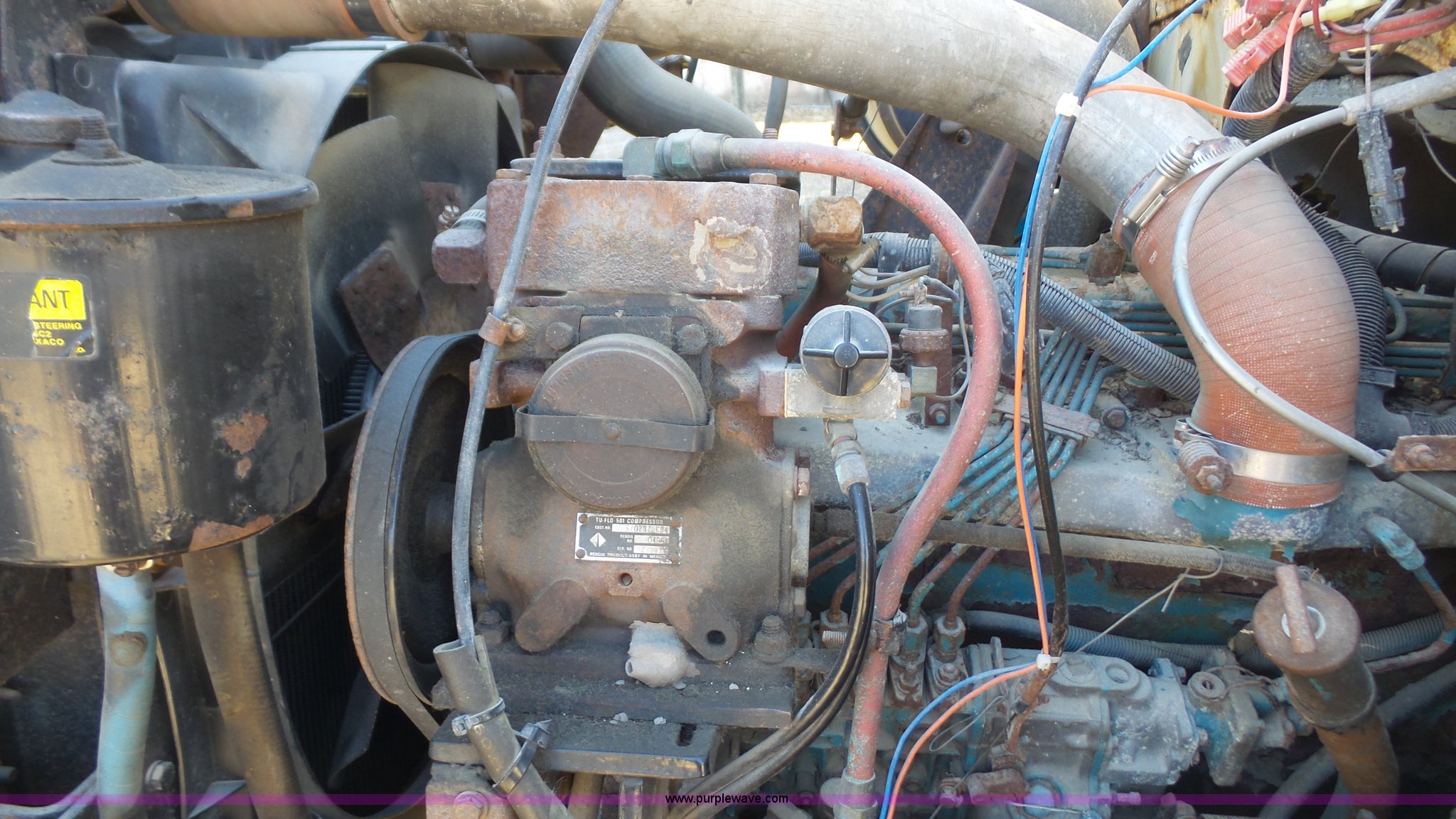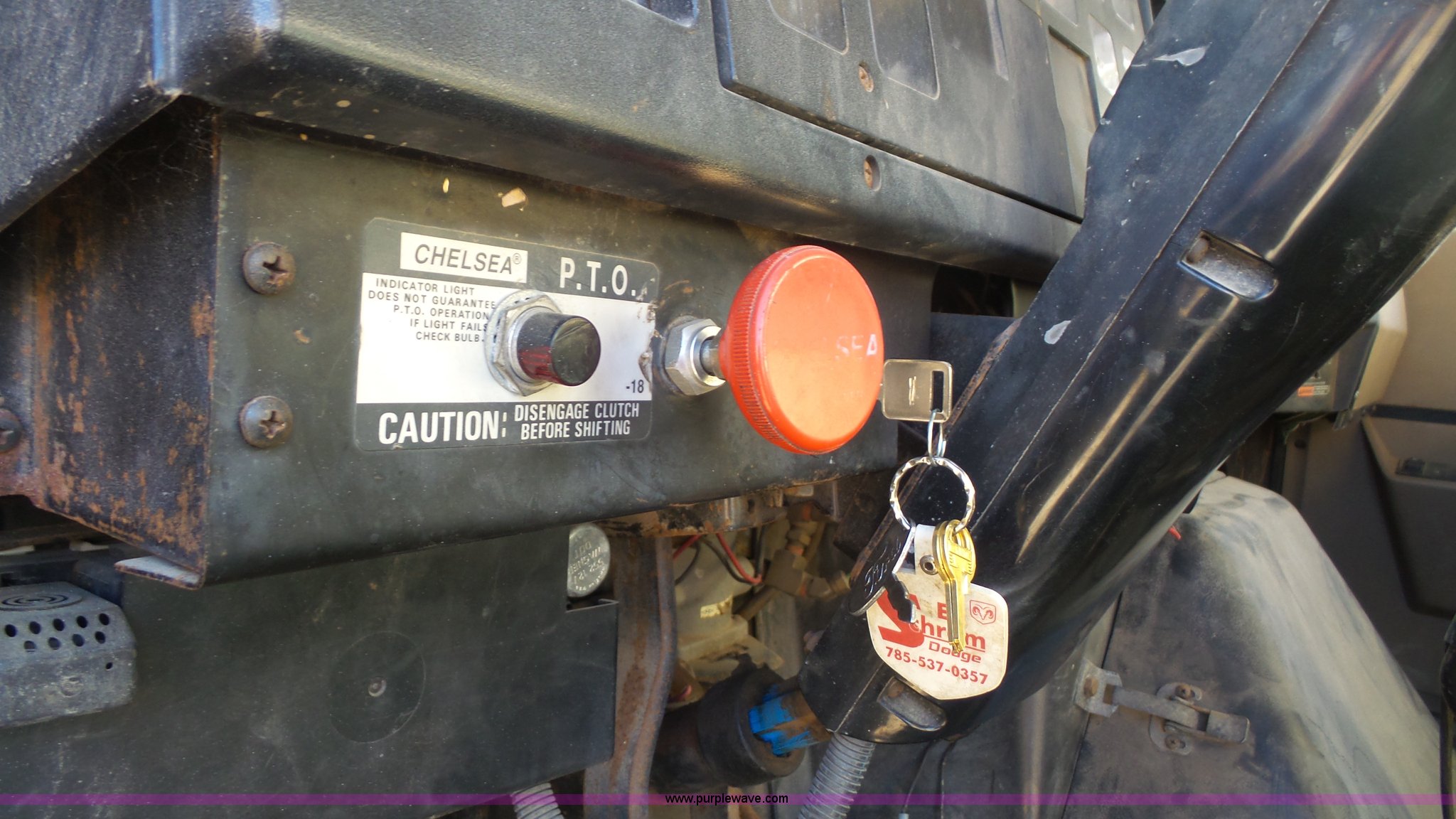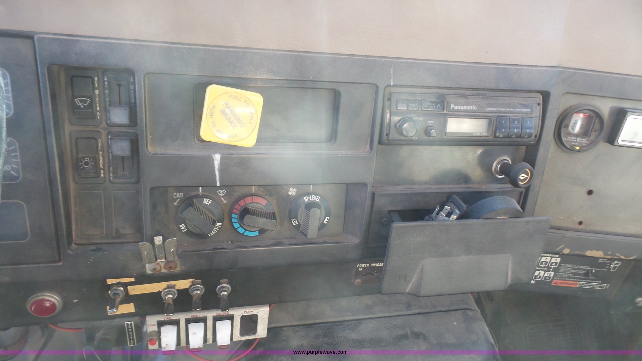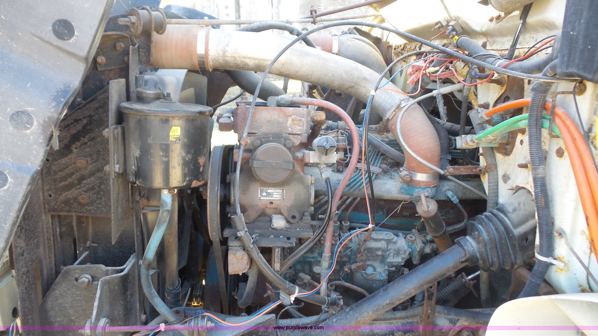 Purple Wave is selling a used Construction Dump Truck in Kansas. This item is a 1992 International 4900 dump truck with the following: 112,022 miles on odometer, 6,758 hours on meter, International DT466 7.6L L6 diesel engine, Eaton Fuller 10 speed manual transmission, Tandem axle, Inter-axle differential lock, Heat, AM/FM, Power windows, Air suspension seat, PTO, 12'L x 8'W dump bed, 44" side height, 10"H side boards, Rollover tarp, Single ram hoist, Manual end gate, Toolbox between cab and bed, Spring suspension, 11R22.5 tires, Seat torn, Snow plow, plow mount and controls not included, selling as item F1188