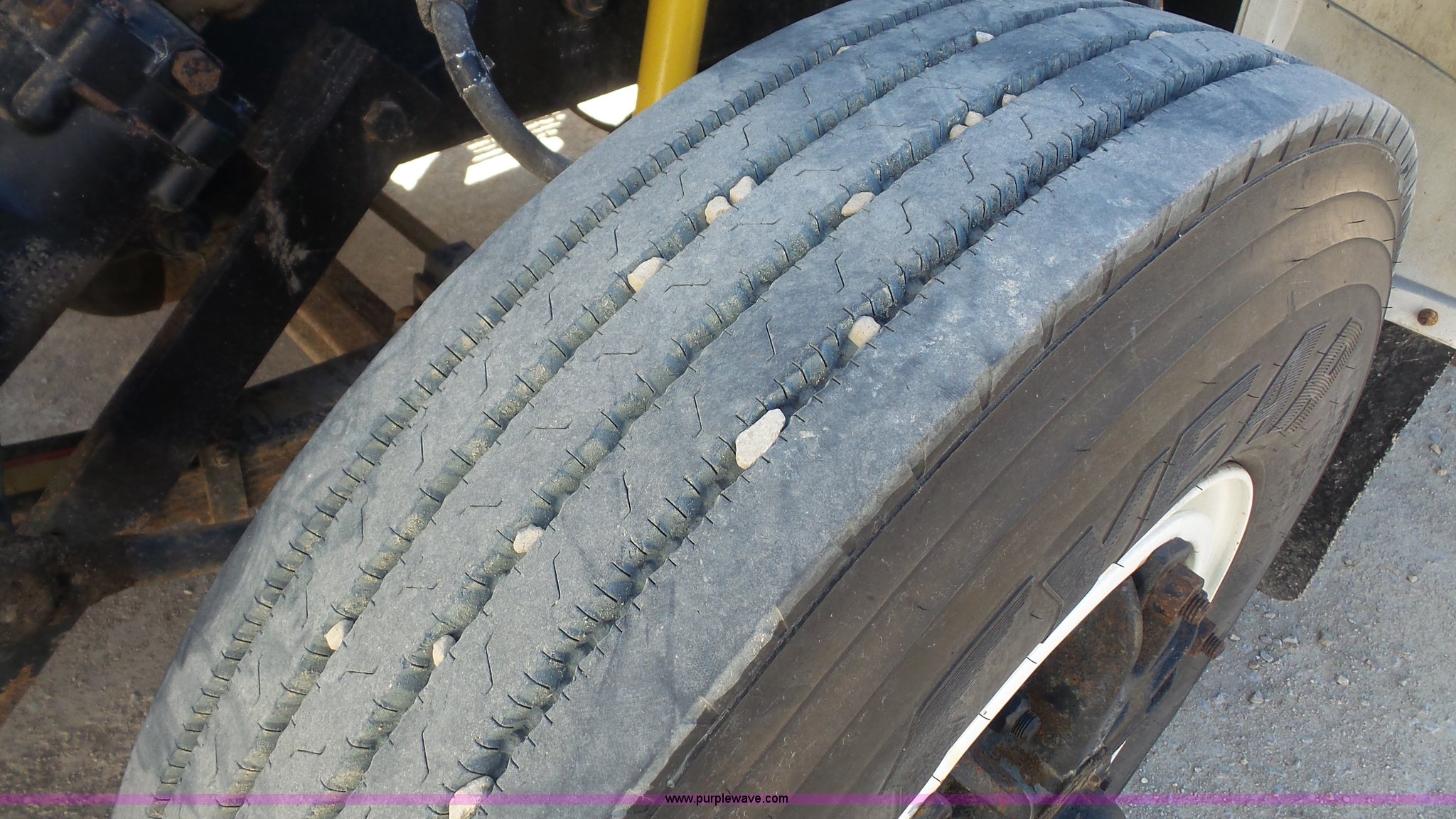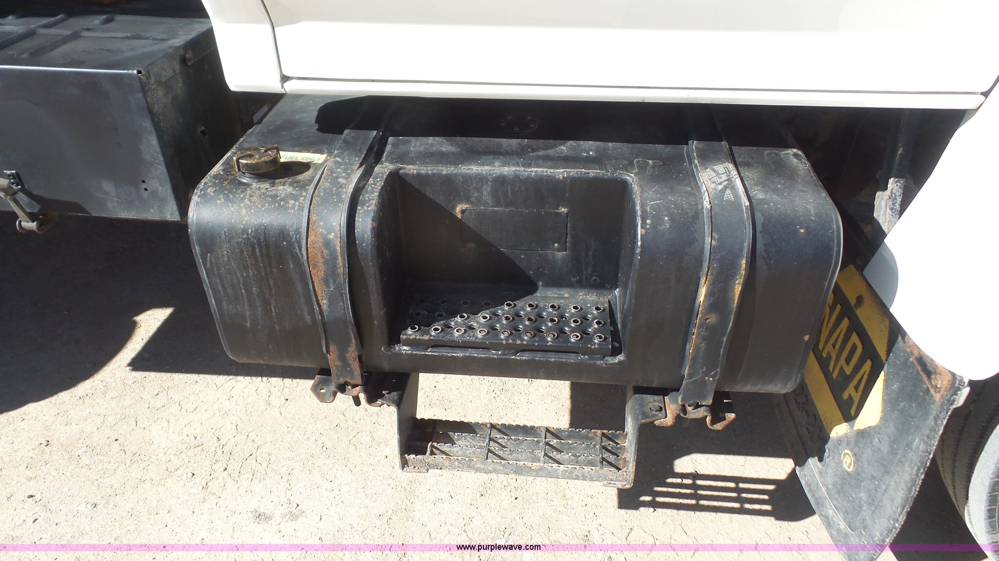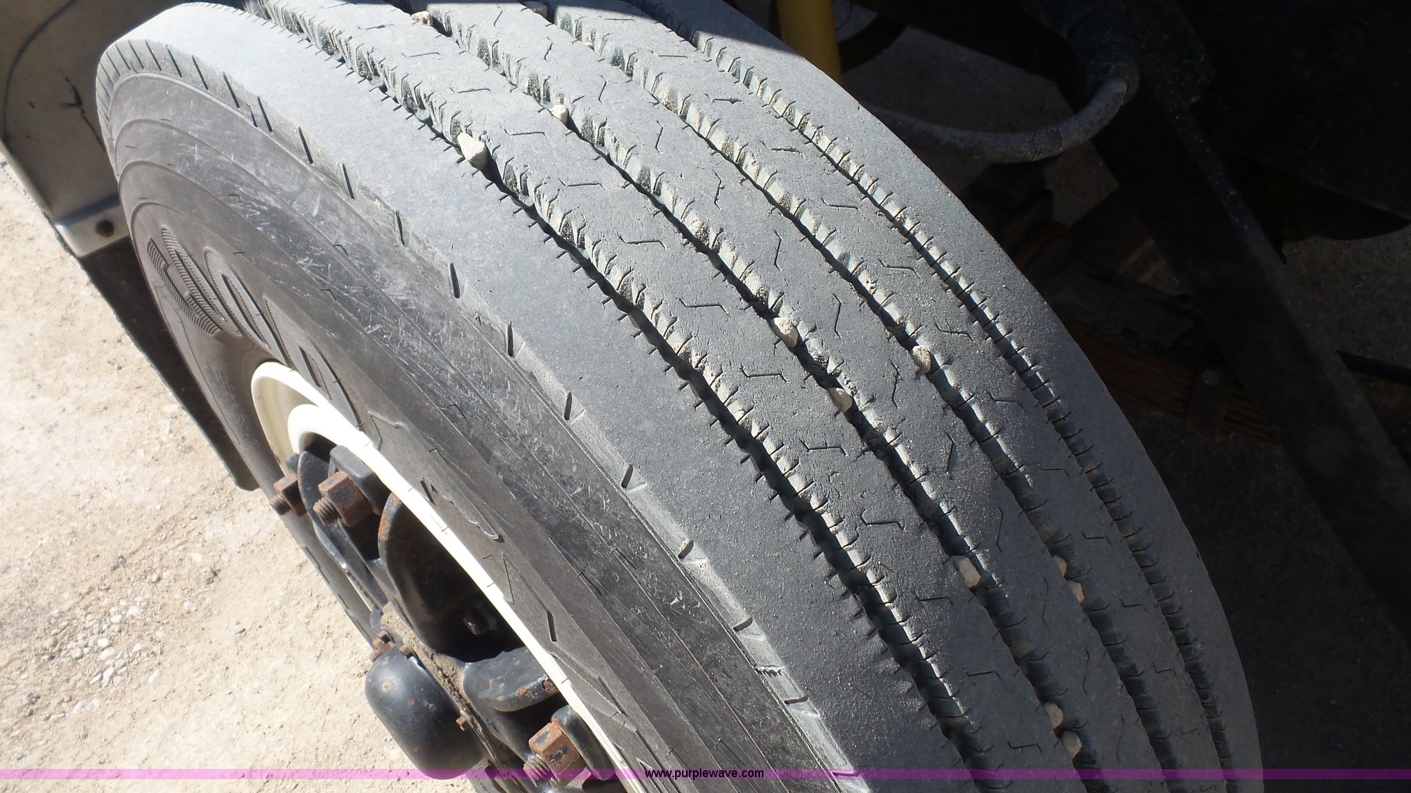 Purple Wave is selling a used Construction Dump Truck in Kansas. This item is a 1995 Ford F800 Super Duty dump truck with the following: 75,140 miles on odometer, Cummins ISC 8.3L L6 diesel engine, 210 HP, Five speed manual transmission, Two speed rear end, Single axle, AC and heat, AM/FM, Suspension seat, (2) PTOs, Galion 402F-2 steel dump bed, 10'L x 96"W, 5 to 6 cu. yd. capacity, 30" side height, 6 3/4"H side boards, Single ram hoist, Electric rollover tarp, Manual end gate, Vaulk 11'W plow, Electric over hydraulic plow control, 2005 Henderson WSHX9050 spreader, Chains, Dual fuel tanks, Spring suspension, Air brakes, 11R22.5 tires, GVWR 33,000 lbs, FAWR 12,000 lbs, RAWR 21,000 lbs, Front spring replaced last fall, Stored inside, One owner