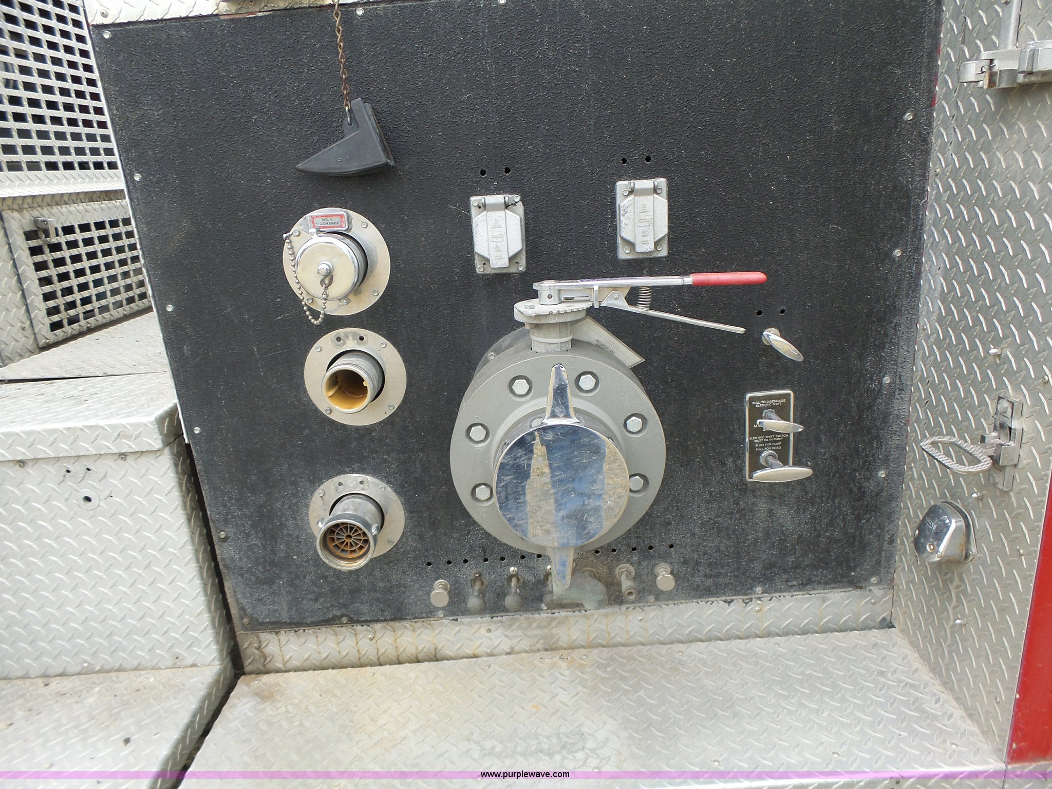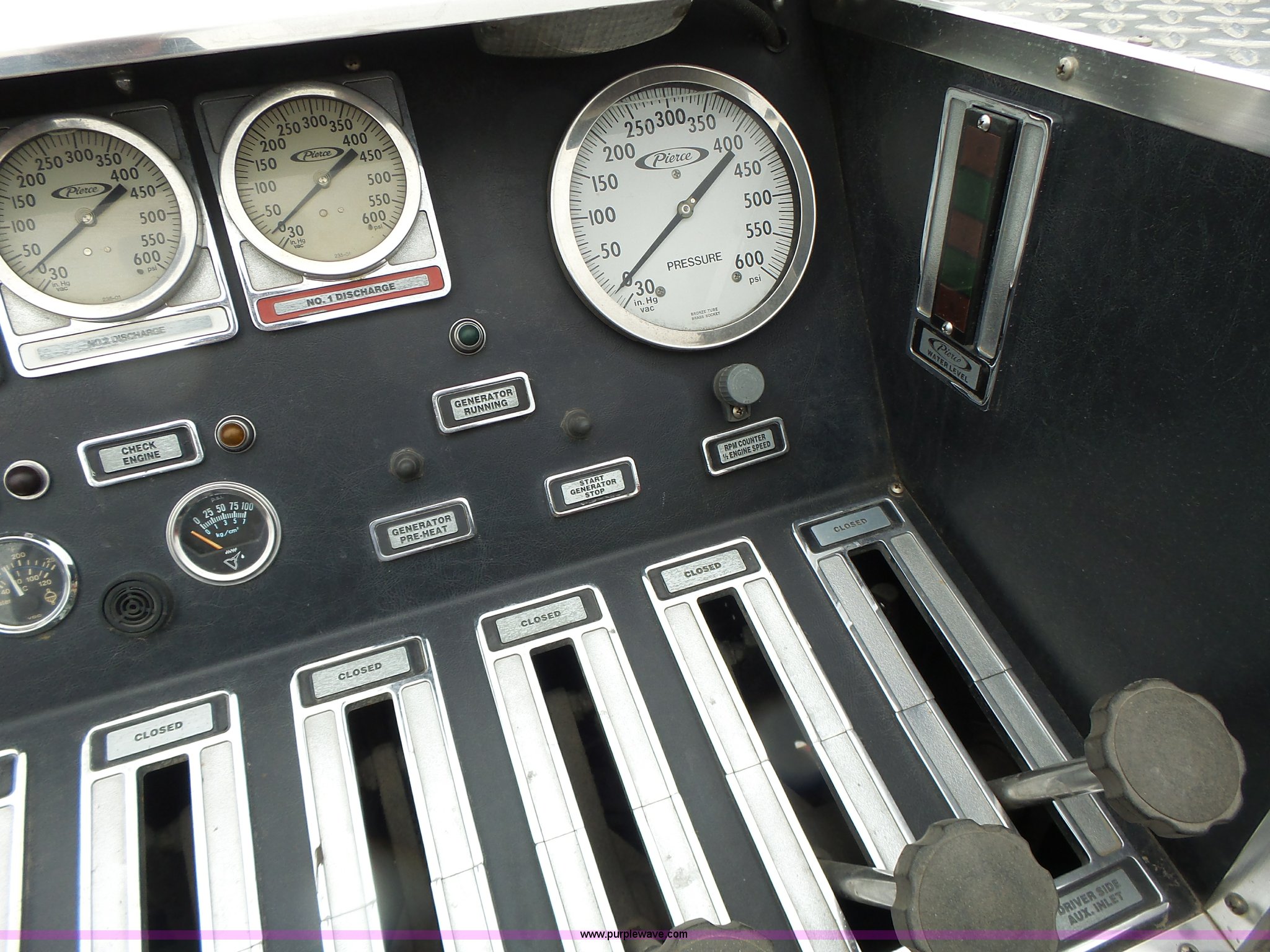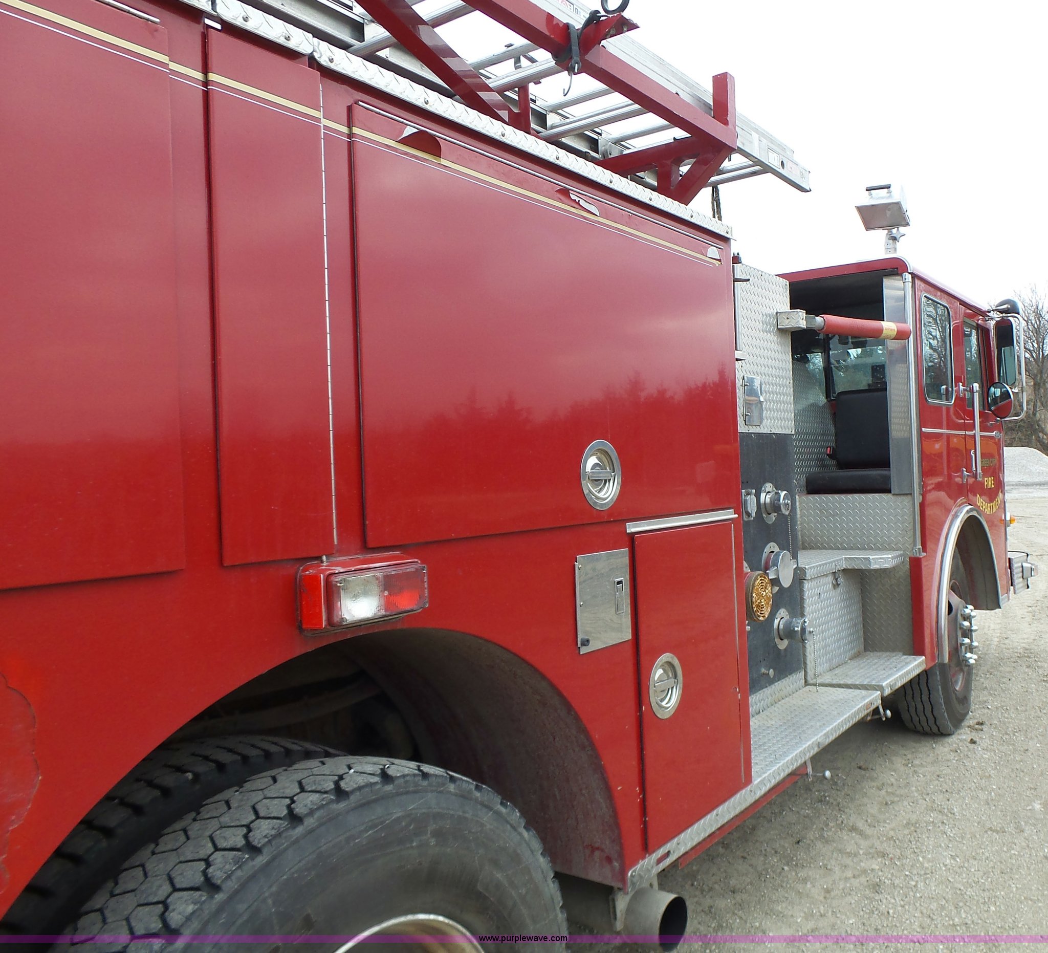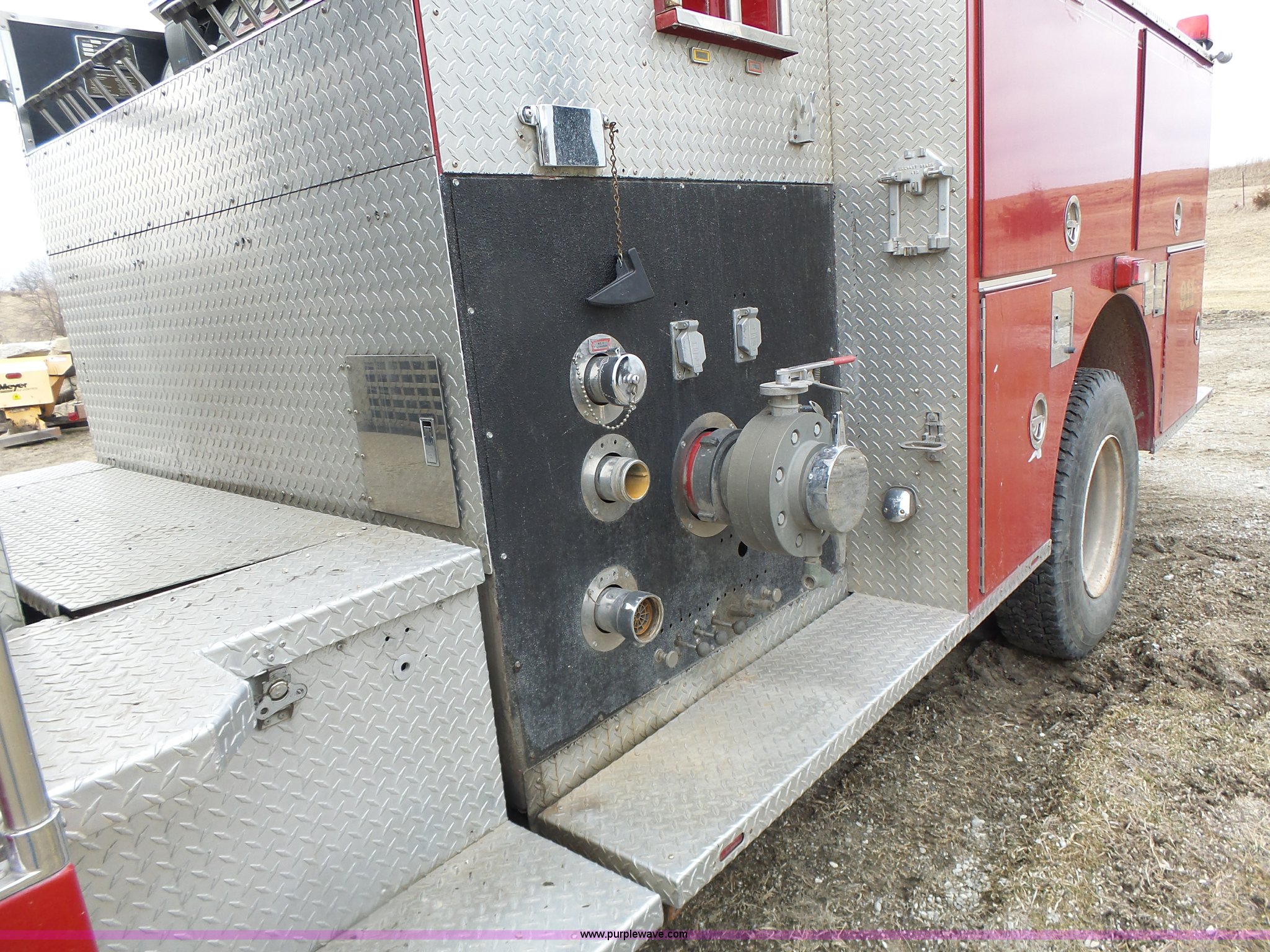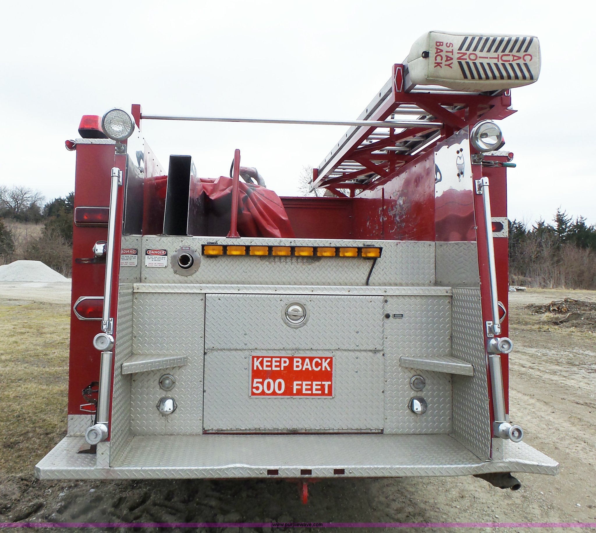 Purple Wave is selling a used Fire Truck or Emergency Vehicle in Missouri. This item is a 1991 Pierce Crew Cab fire truck with the following: 96,350 miles on odometer, Detroit Diesel 6V-92 9.2L six cylinder turbo diesel engine, Automatic transmission, Single axle, Heat, Suspension seat, Pierce E6338 platform, 1,500 gpm pump, Water gun, Work lights, Hose, Ladder, Onan generator, 12R22.5 tires, GVWR 38,400 lbs