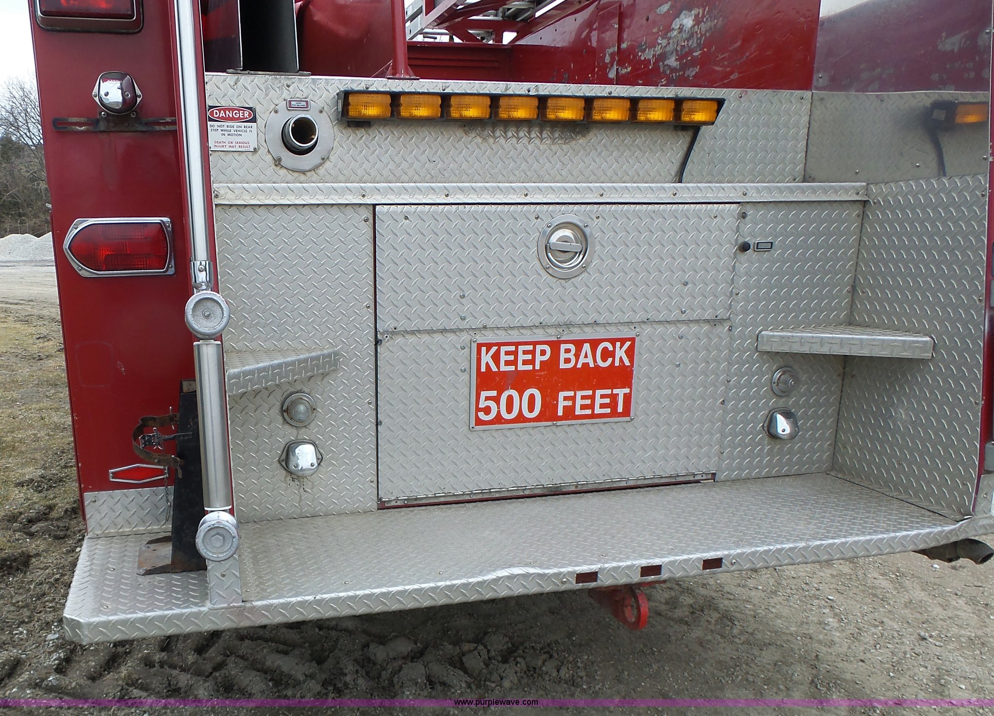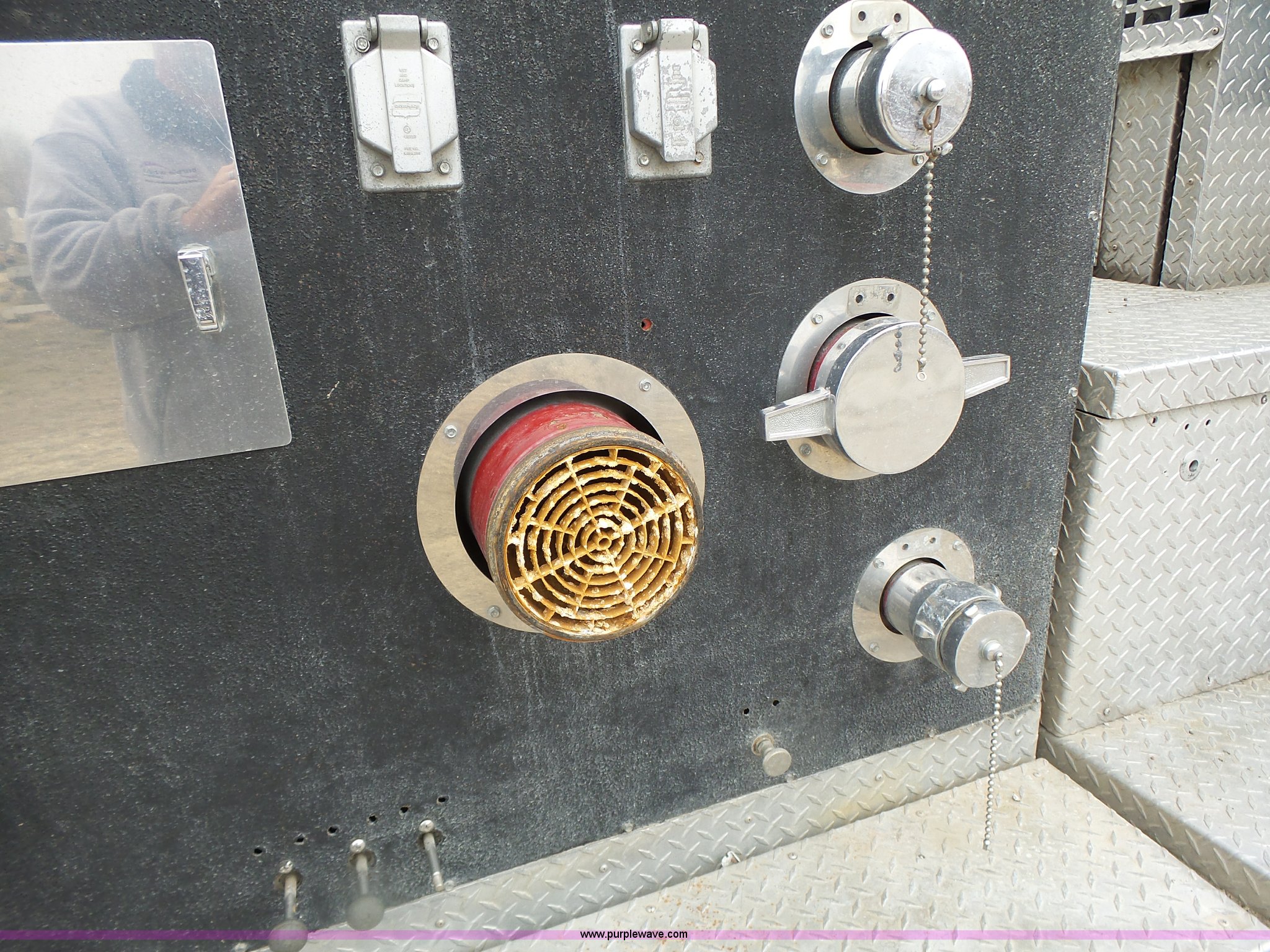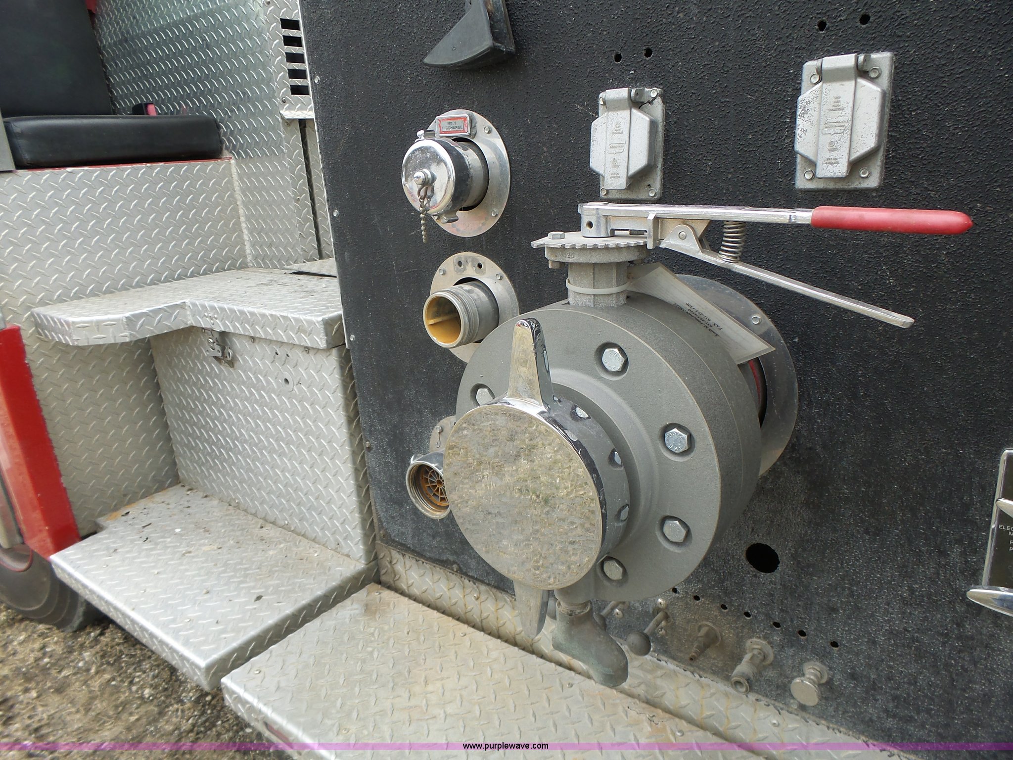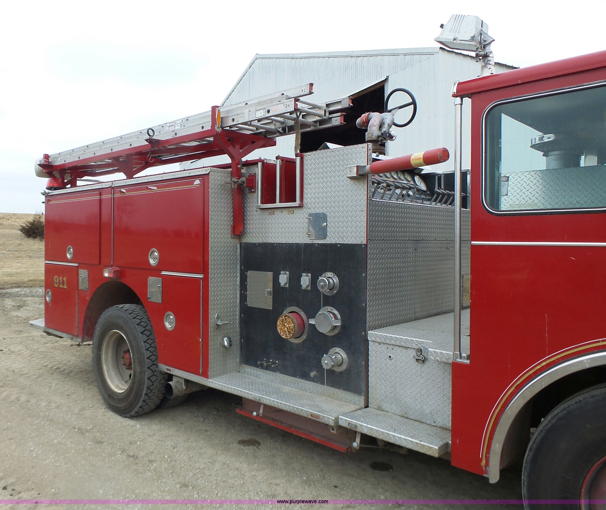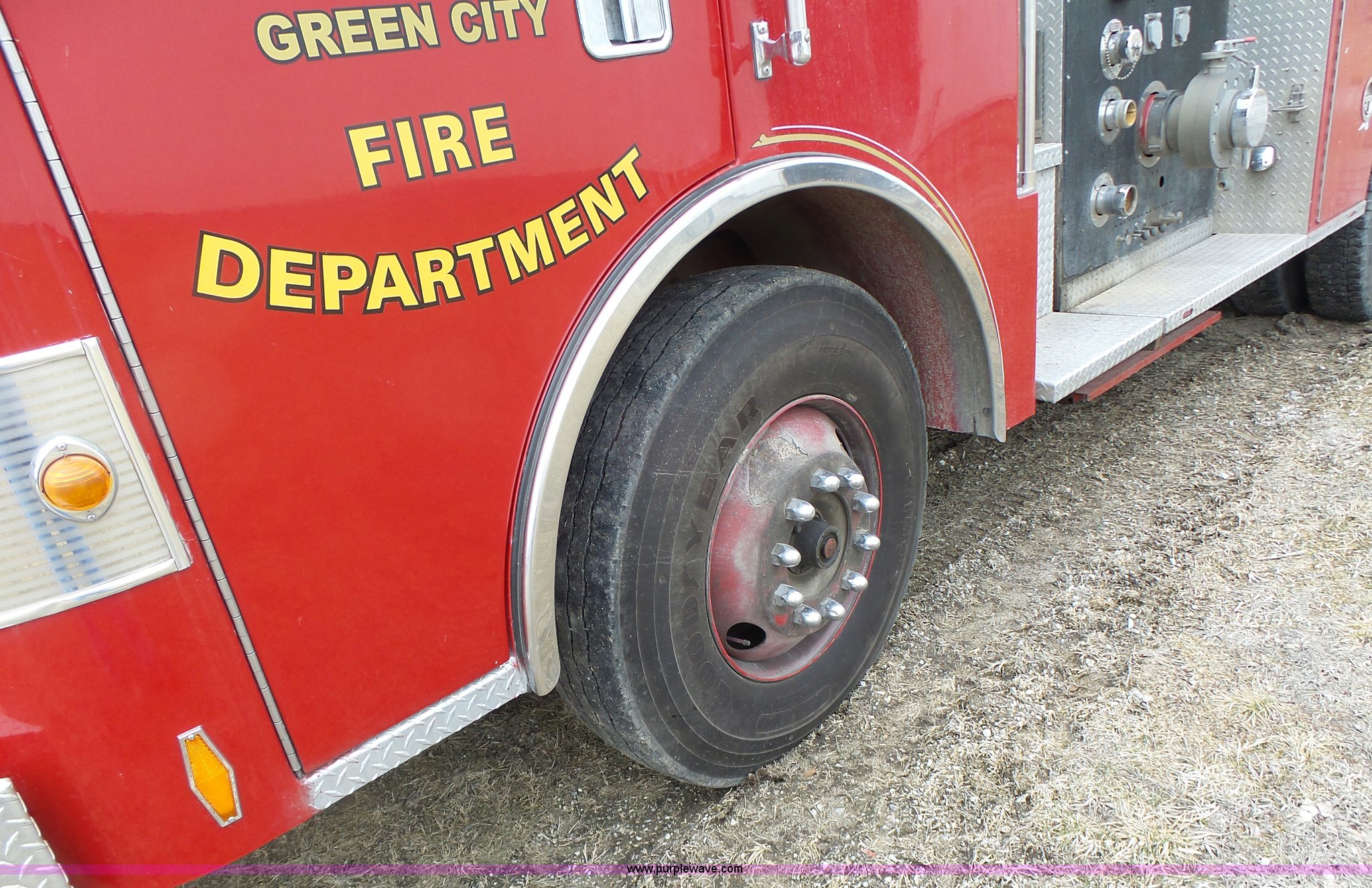Purple Wave is selling a used Fire Truck or Emergency Vehicle in Missouri. This item is a 1991 Pierce Crew Cab fire truck with the following: 96,350 miles on odometer, Detroit Diesel 6V-92 9.2L six cylinder turbo diesel engine, Automatic transmission, Single axle, Heat, Suspension seat, Pierce E6338 platform, 1,500 gpm pump, Water gun, Work lights, Hose, Ladder, Onan generator, 12R22.5 tires, GVWR 38,400 lbs