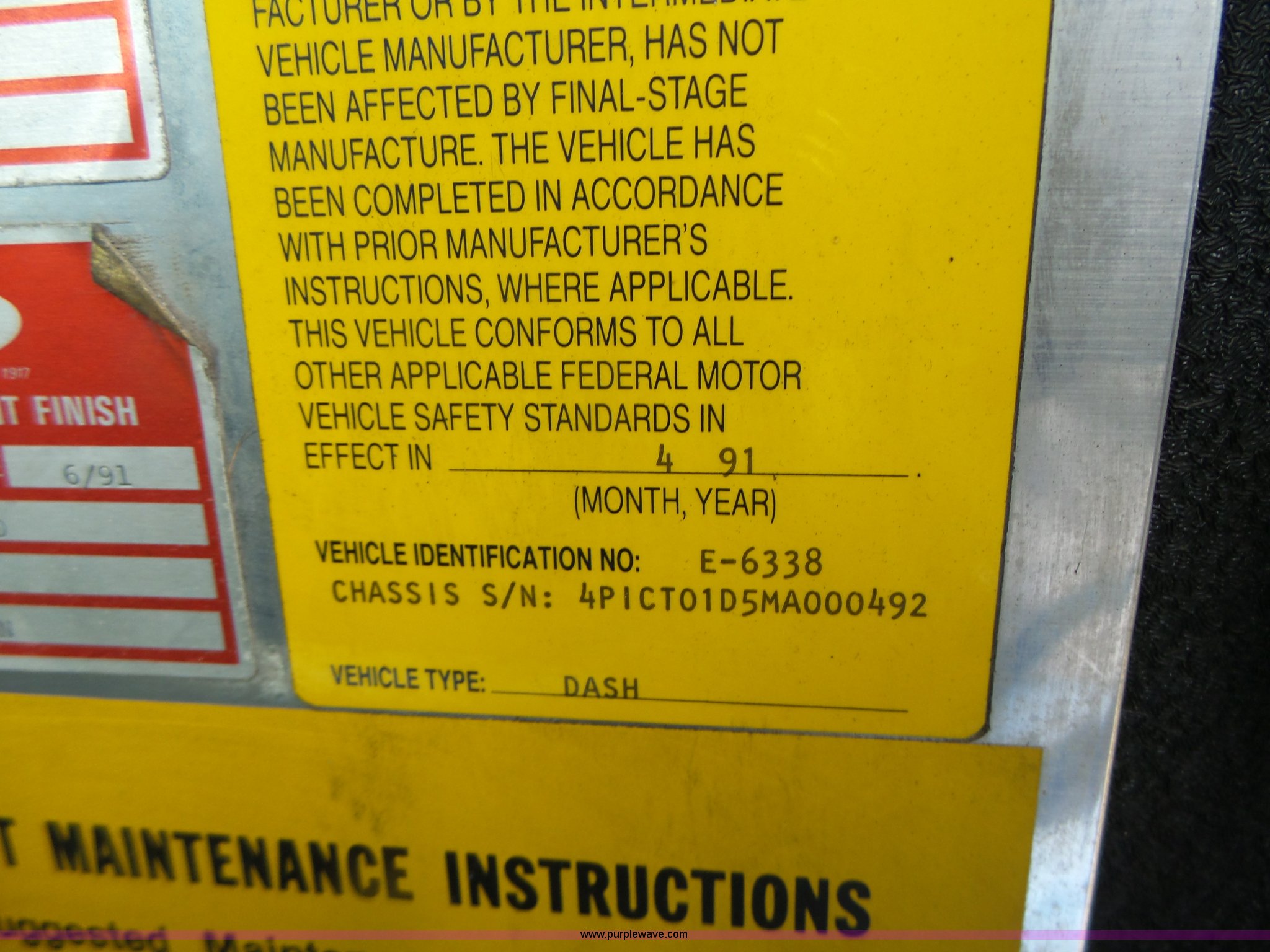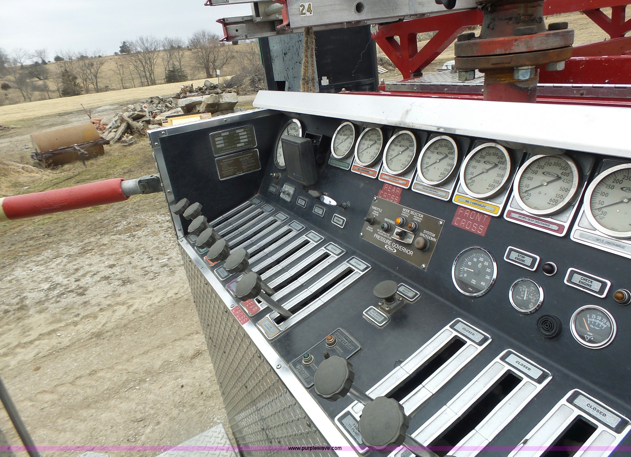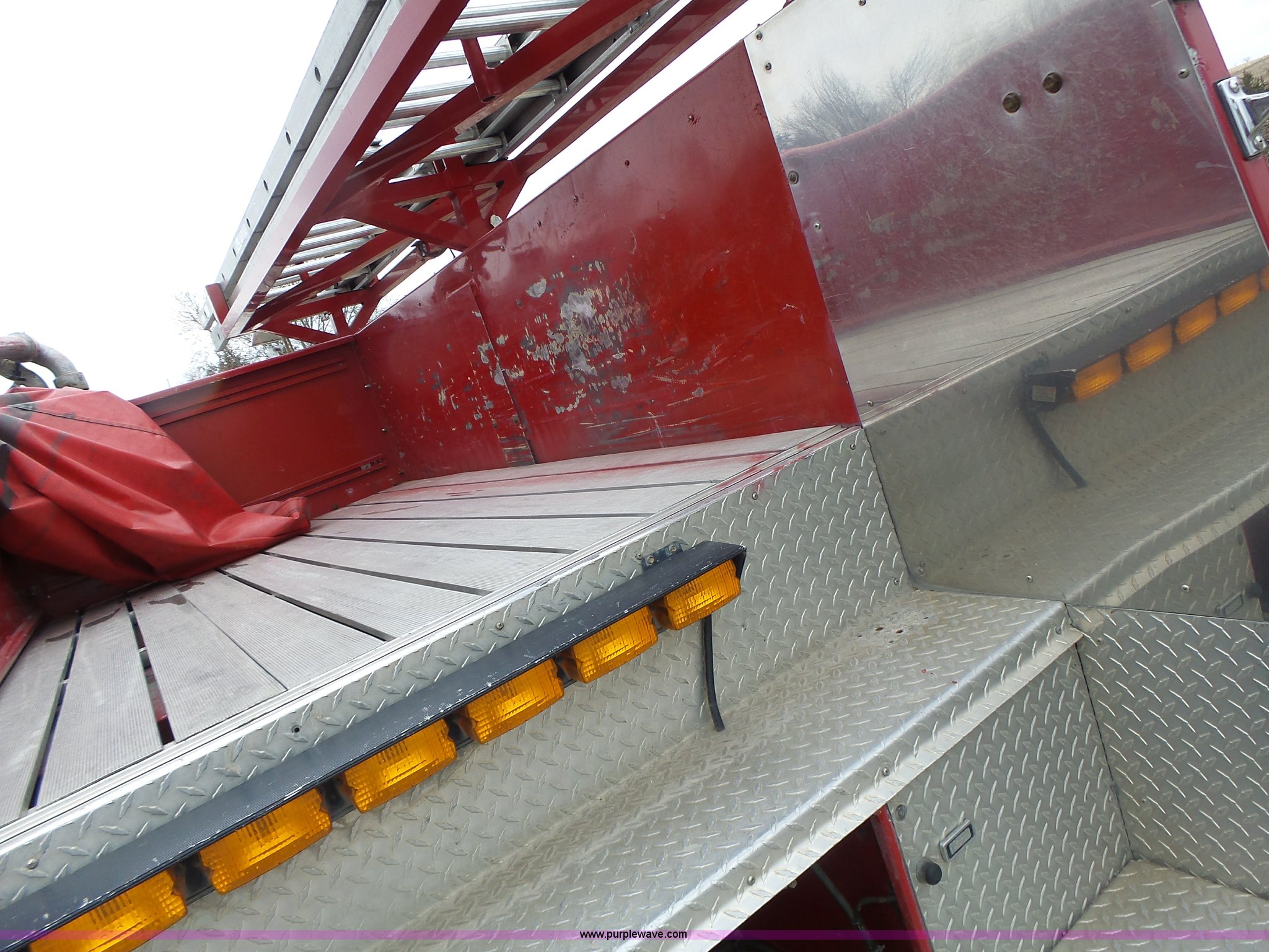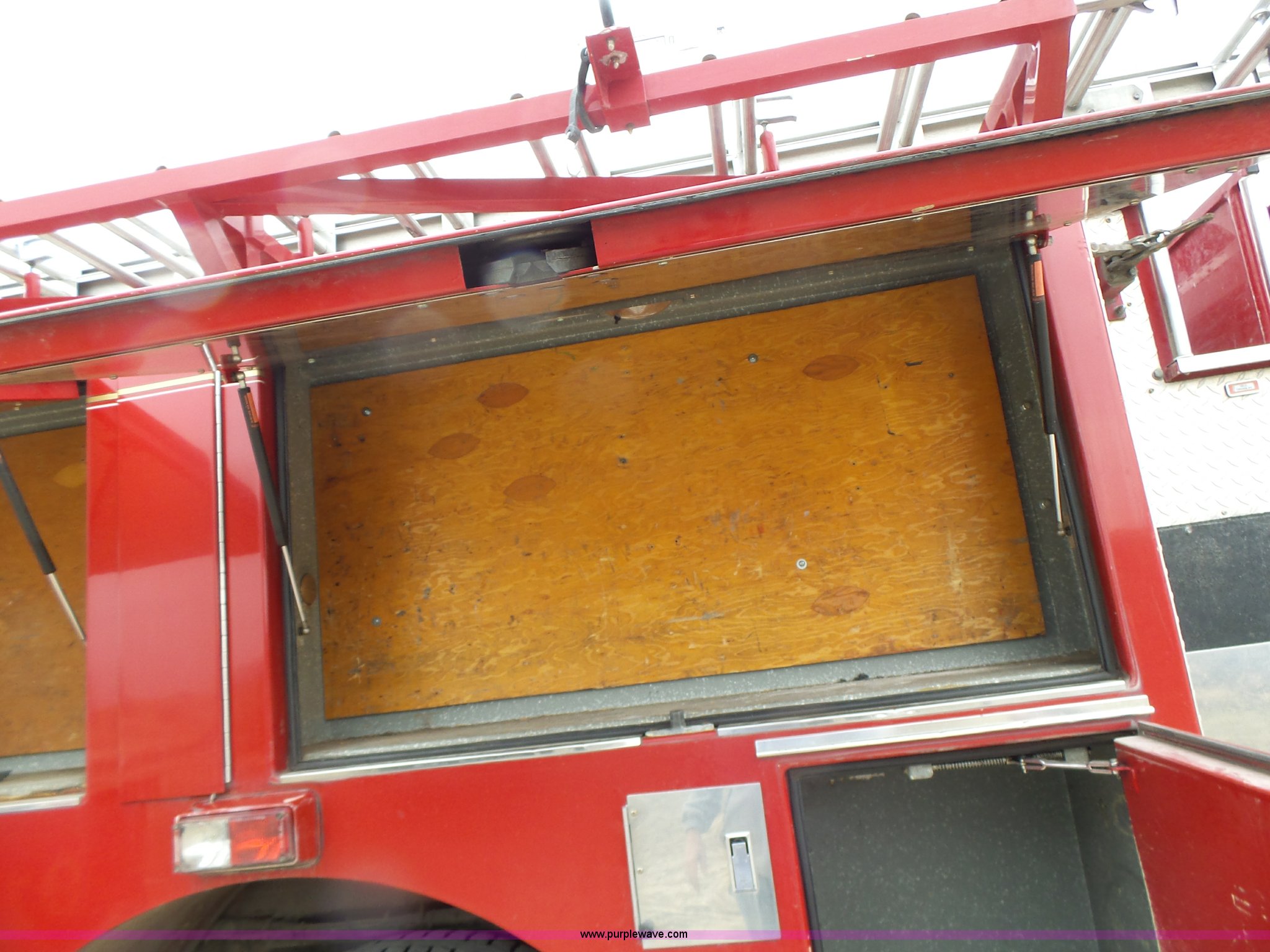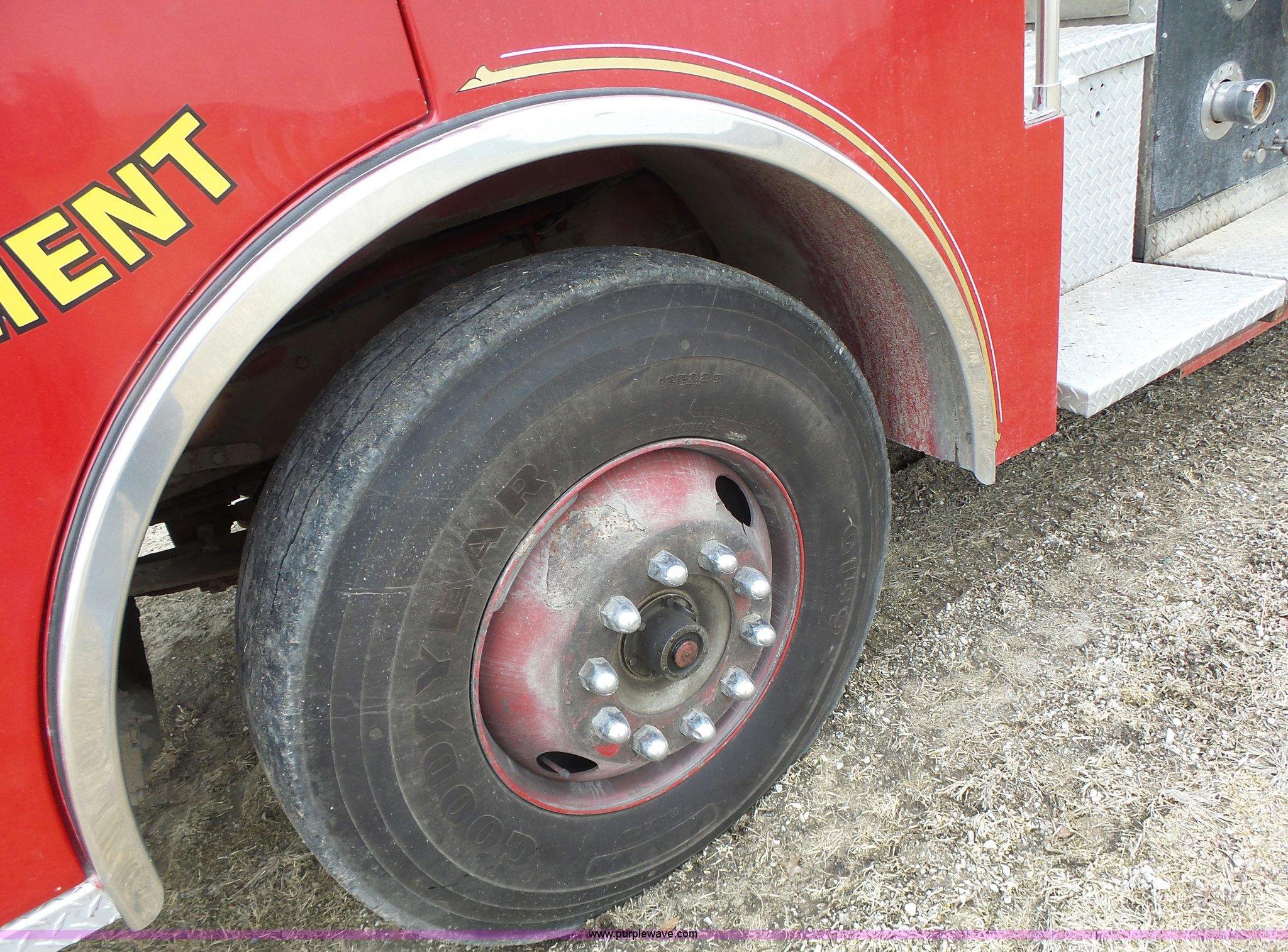 Purple Wave is selling a used Fire Truck or Emergency Vehicle in Missouri. This item is a 1991 Pierce Crew Cab fire truck with the following: 96,350 miles on odometer, Detroit Diesel 6V-92 9.2L six cylinder turbo diesel engine, Automatic transmission, Single axle, Heat, Suspension seat, Pierce E6338 platform, 1,500 gpm pump, Water gun, Work lights, Hose, Ladder, Onan generator, 12R22.5 tires, GVWR 38,400 lbs