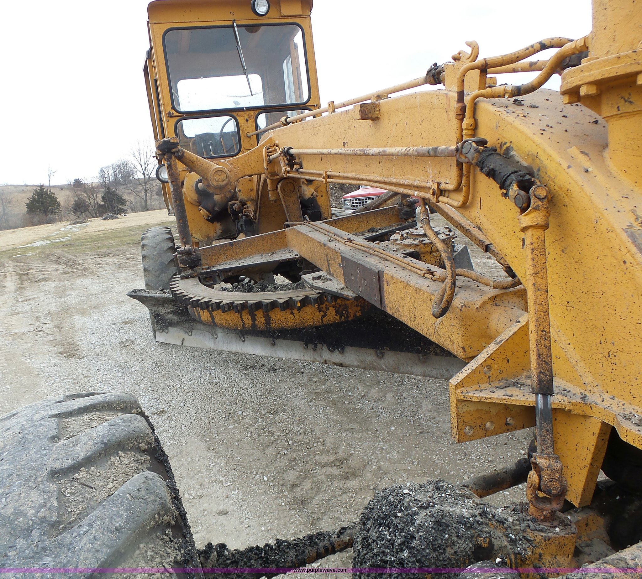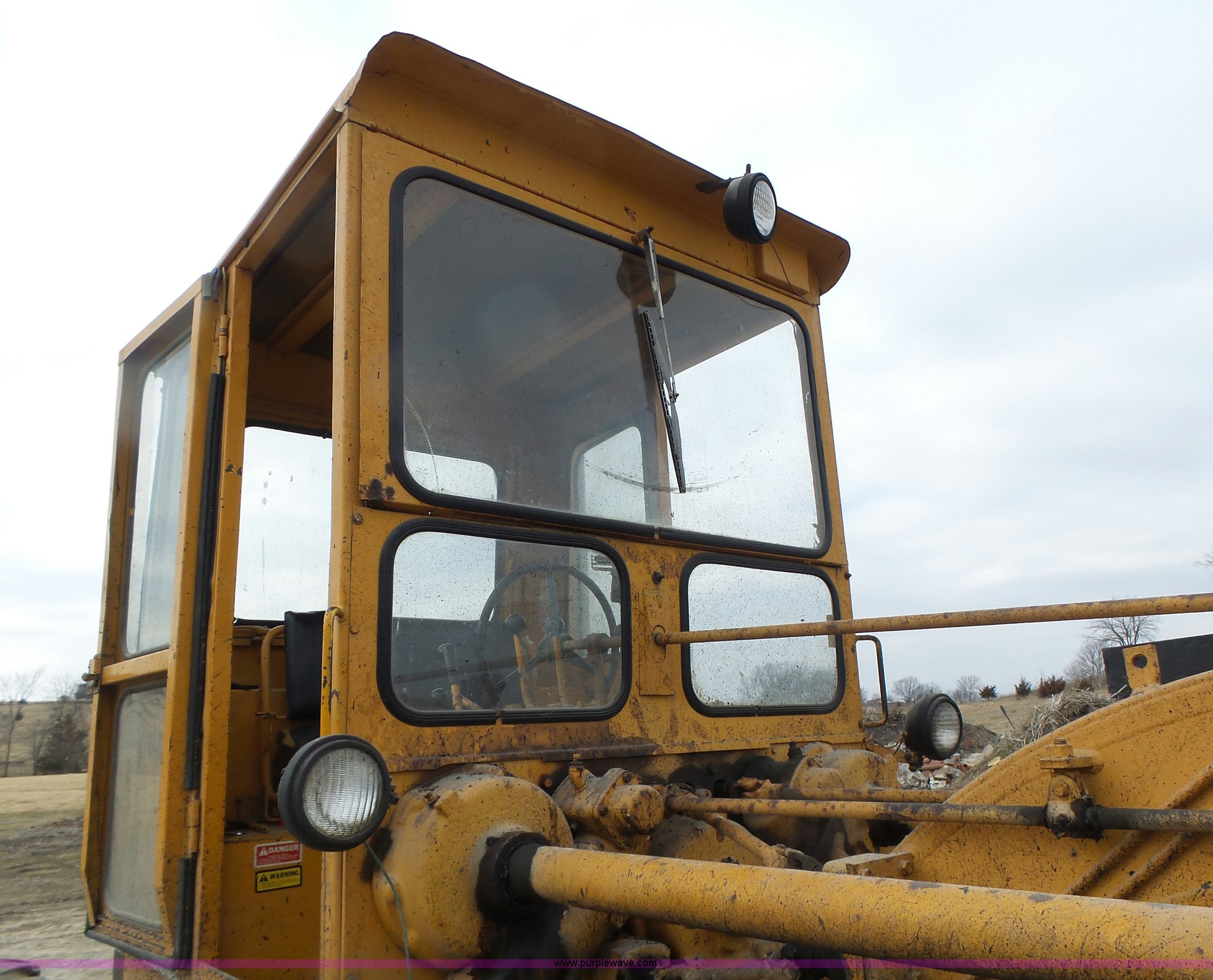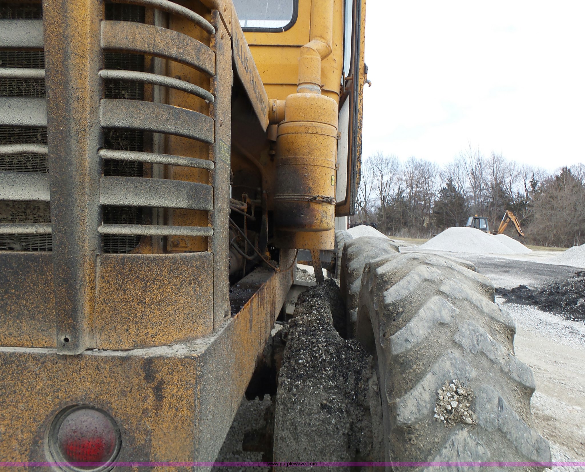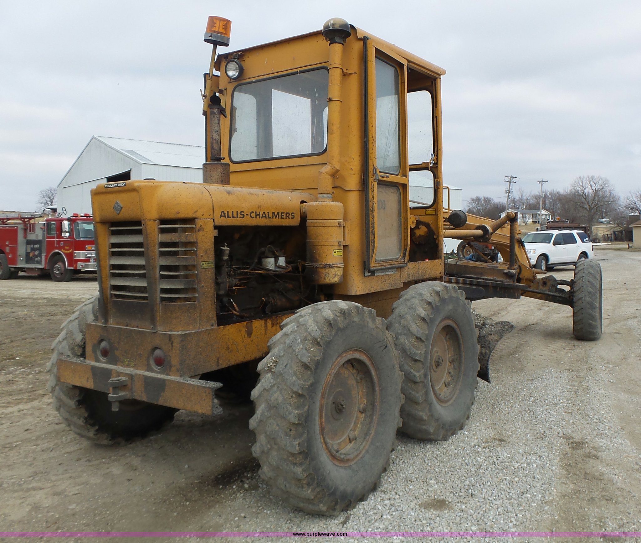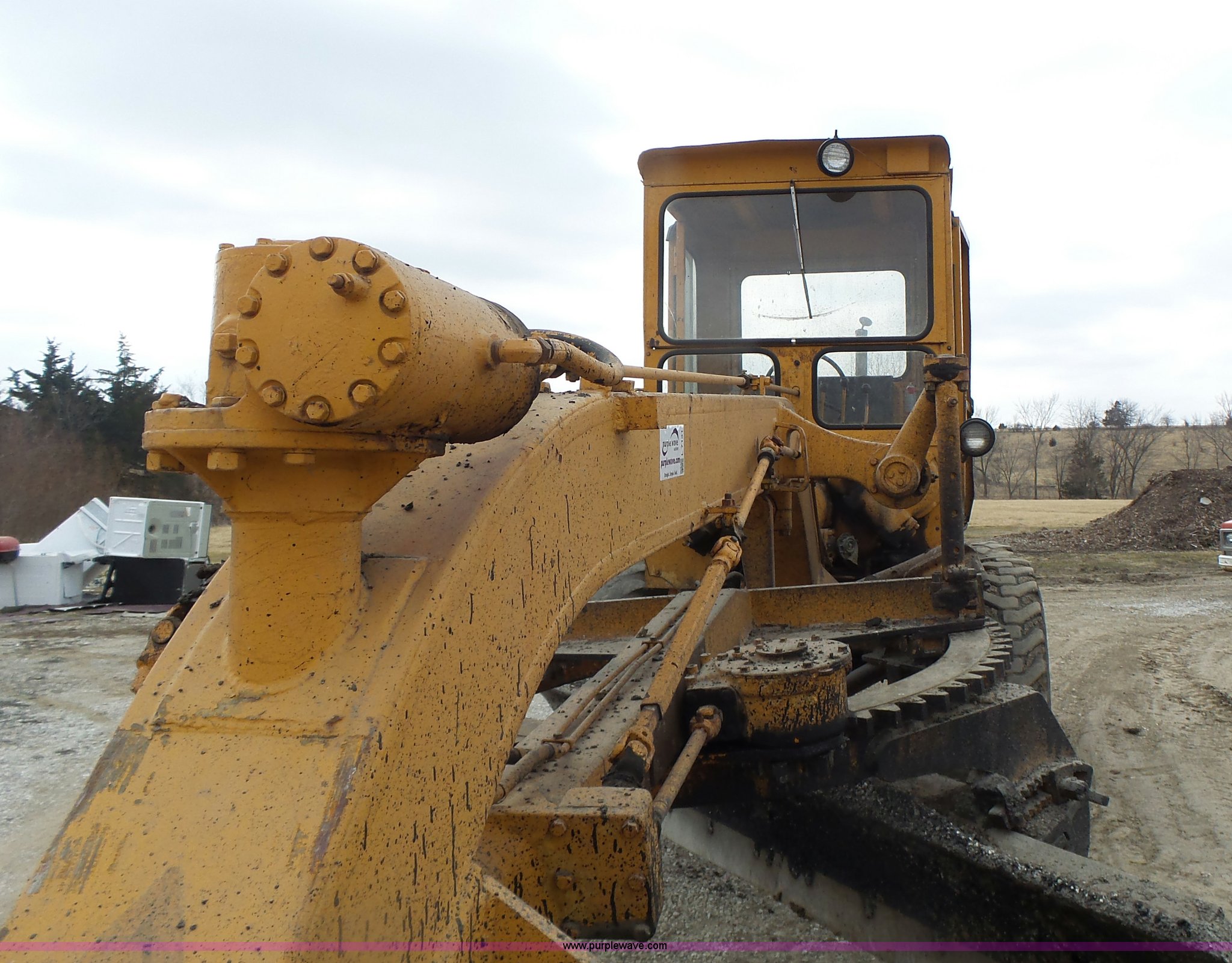 Purple Wave is selling a used Motor Grader in Missouri. This item is a 1966 Allis Chalmers M100 motor grader with the following: 8,359 hours on meter, Allis Chalmers six cylinder diesel engine, 3F-3R gears, Enclosed cab, Heat, Front and rear work lights, 12'W moldboard, Tip control, Side shift, Rigid frame, 13.00-24 tires, Serial M100R1516