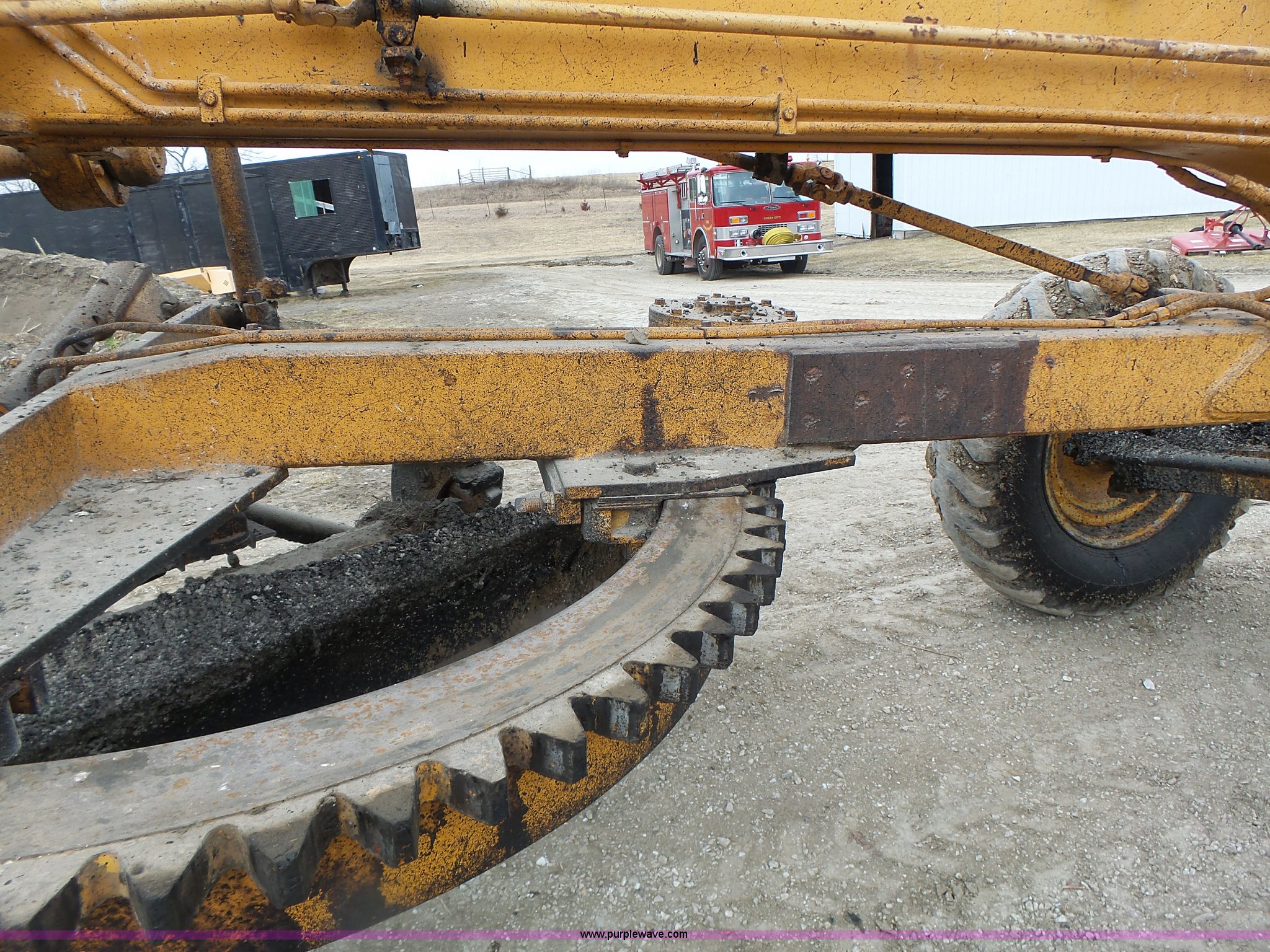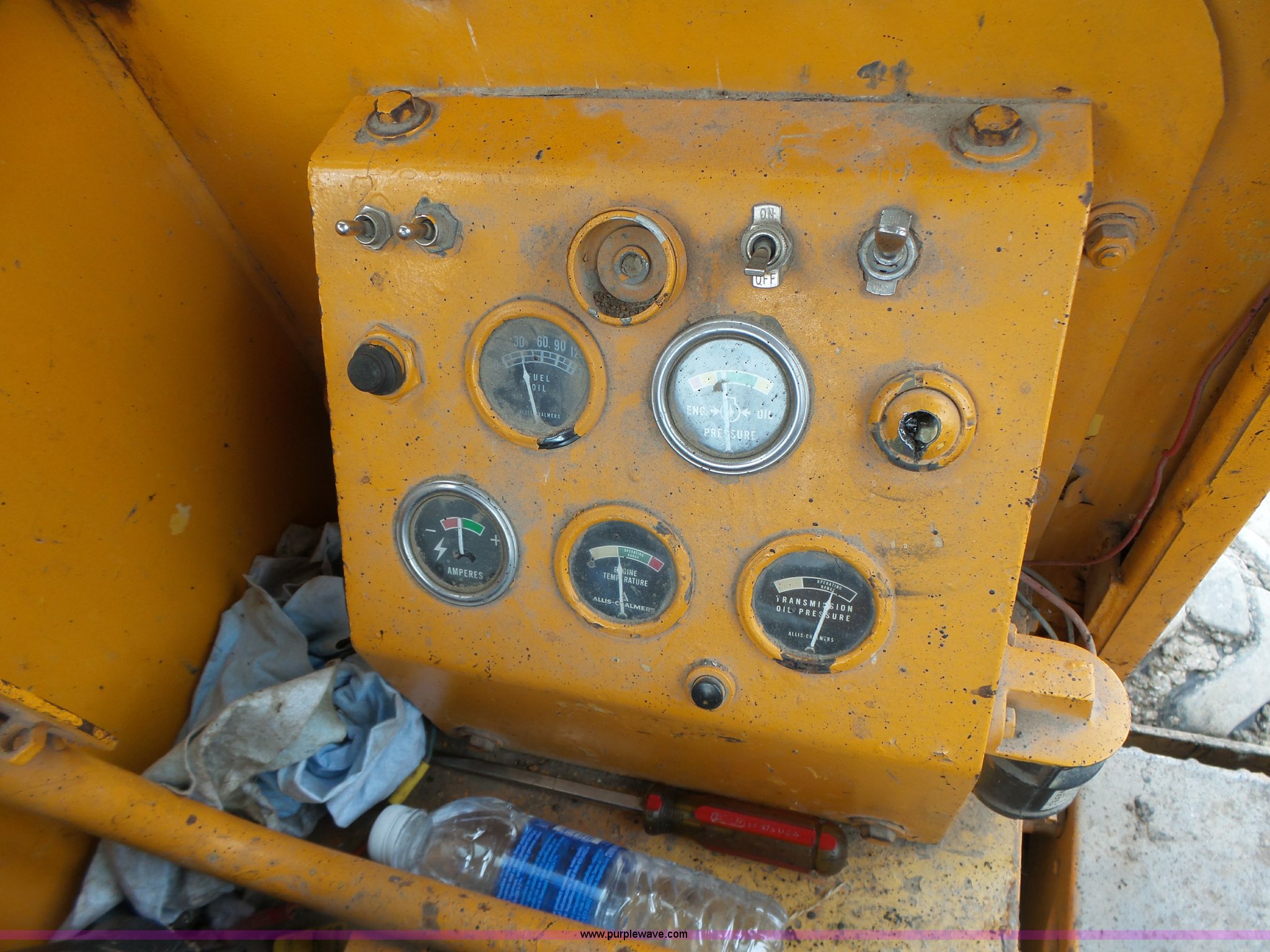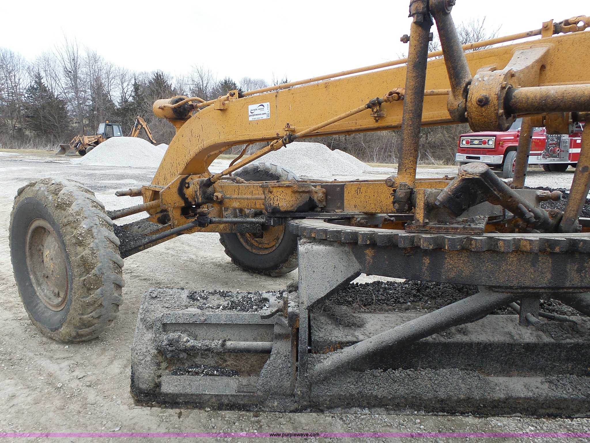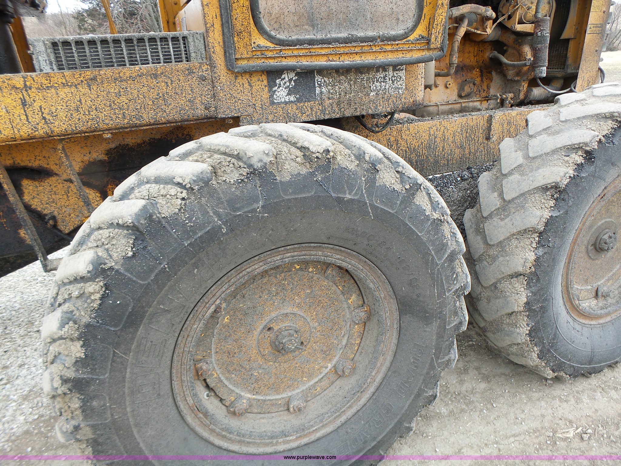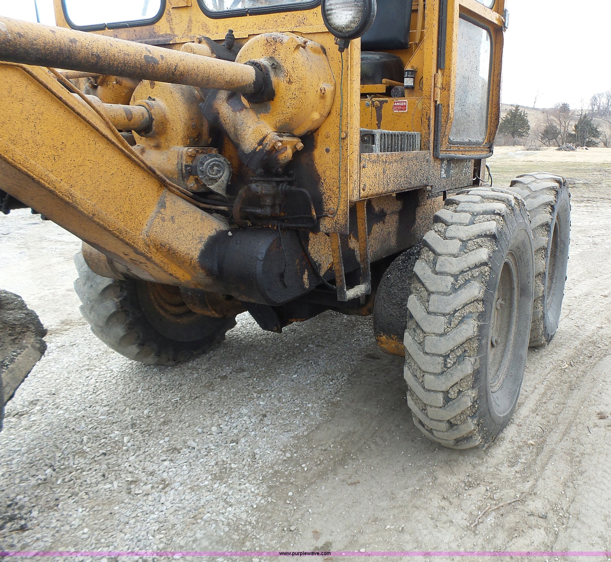 Purple Wave is selling a used Motor Grader in Missouri. This item is a 1966 Allis Chalmers M100 motor grader with the following: 8,359 hours on meter, Allis Chalmers six cylinder diesel engine, 3F-3R gears, Enclosed cab, Heat, Front and rear work lights, 12'W moldboard, Tip control, Side shift, Rigid frame, 13.00-24 tires, Serial M100R1516