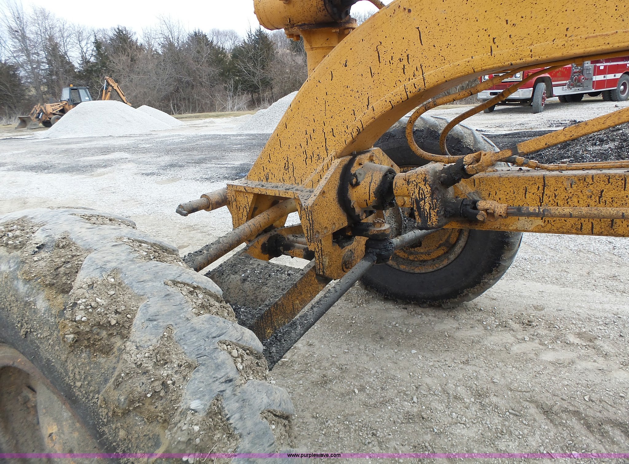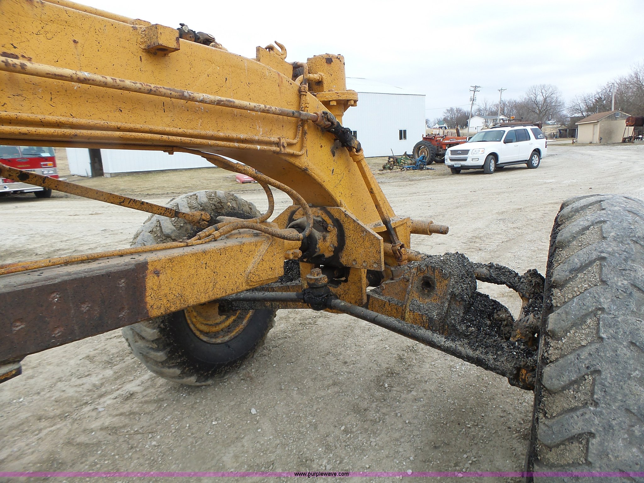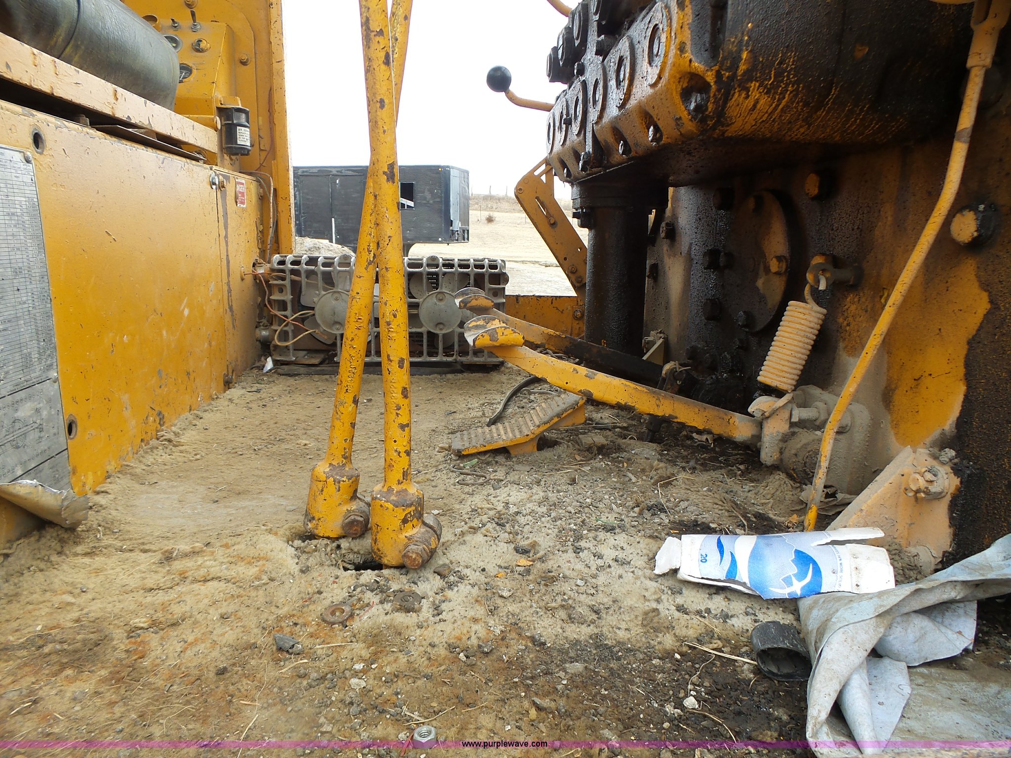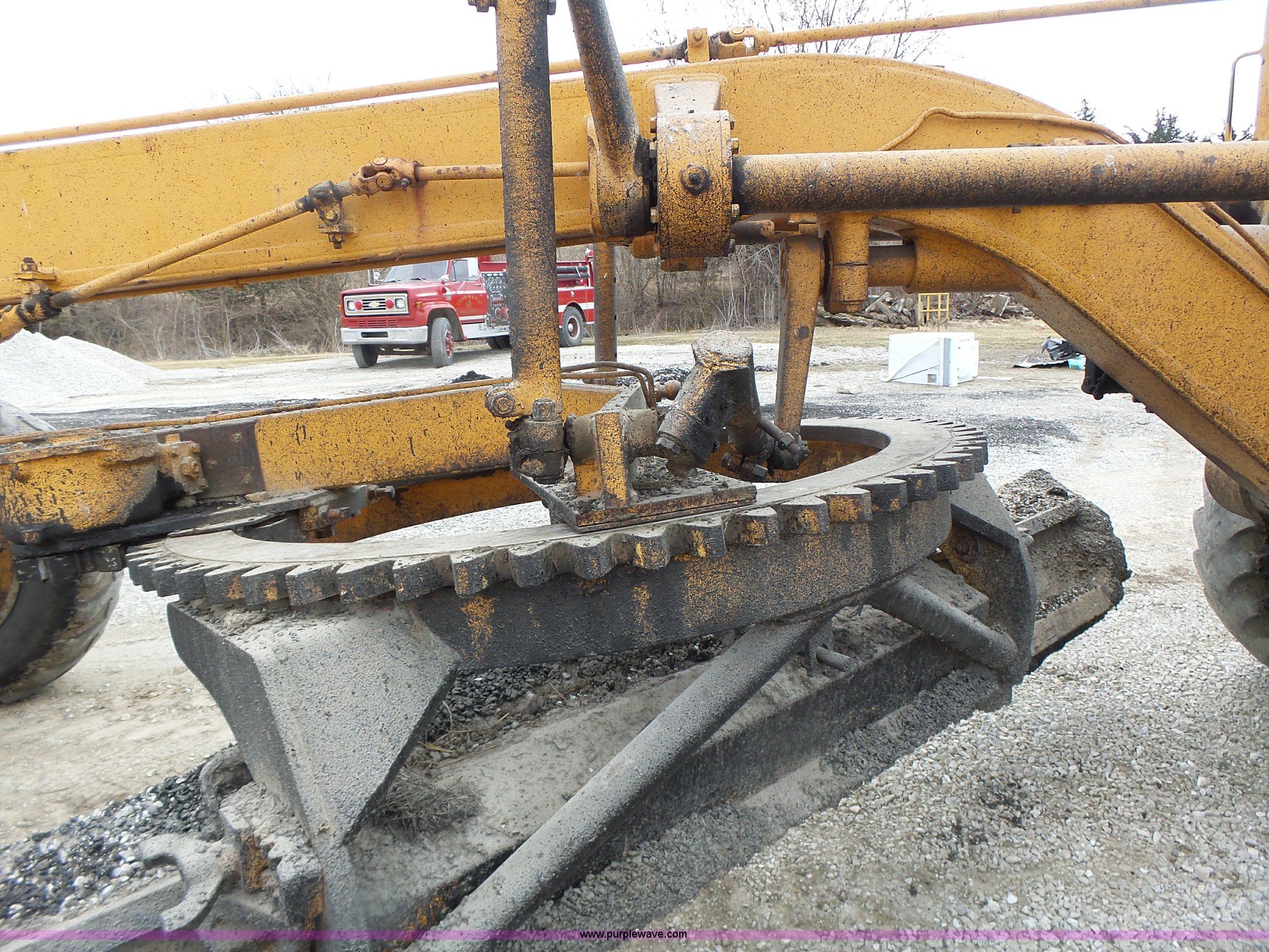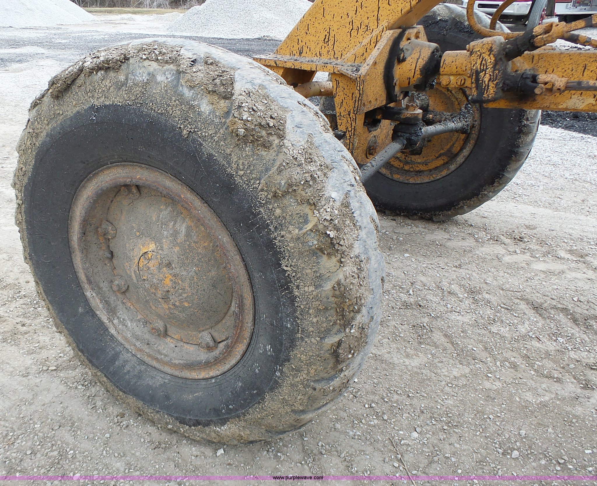 Purple Wave is selling a used Motor Grader in Missouri. This item is a 1966 Allis Chalmers M100 motor grader with the following: 8,359 hours on meter, Allis Chalmers six cylinder diesel engine, 3F-3R gears, Enclosed cab, Heat, Front and rear work lights, 12'W moldboard, Tip control, Side shift, Rigid frame, 13.00-24 tires, Serial M100R1516