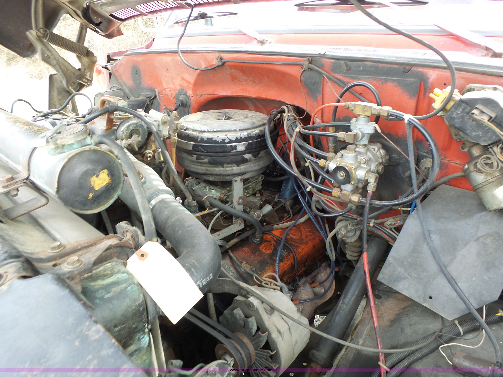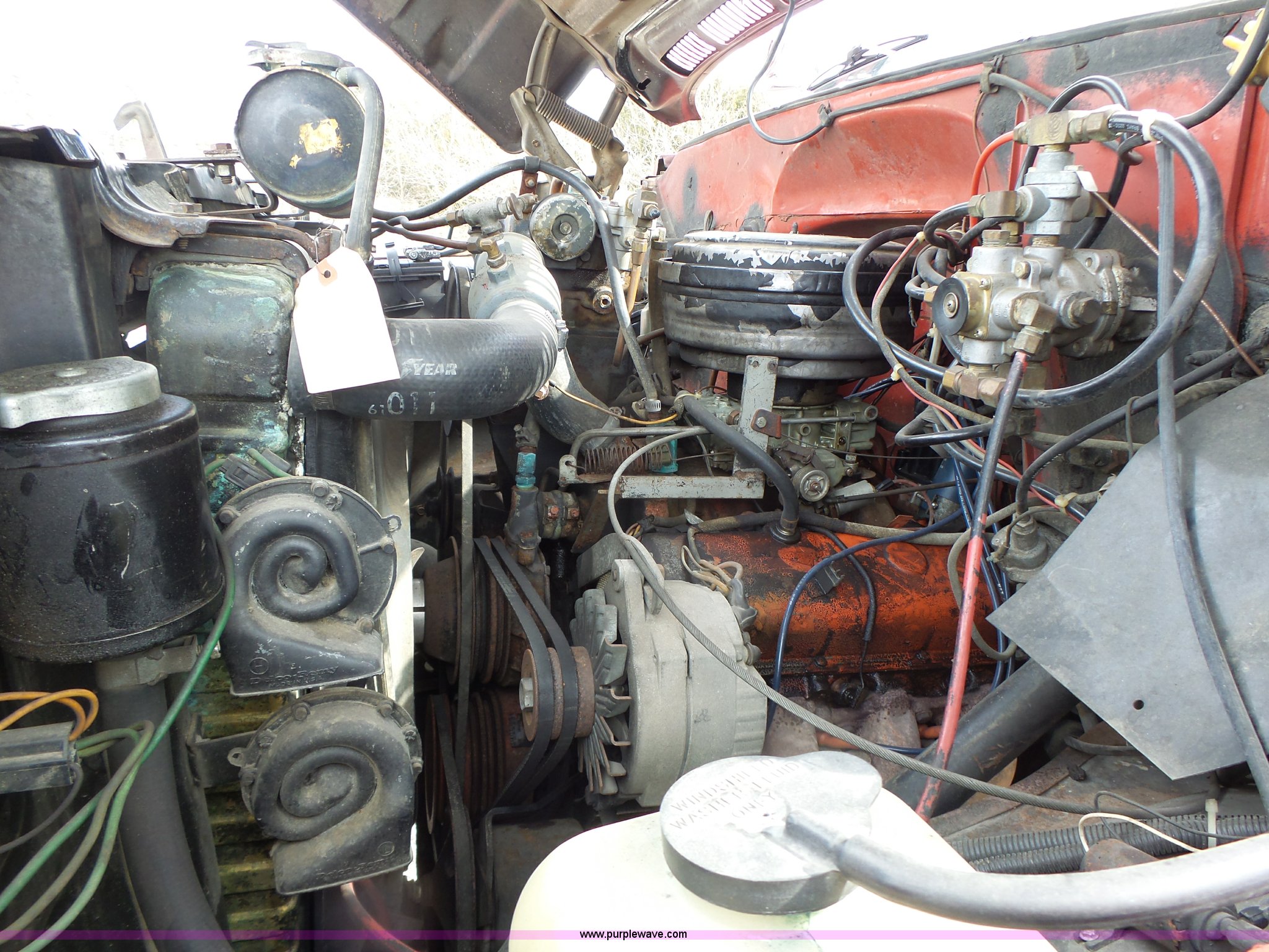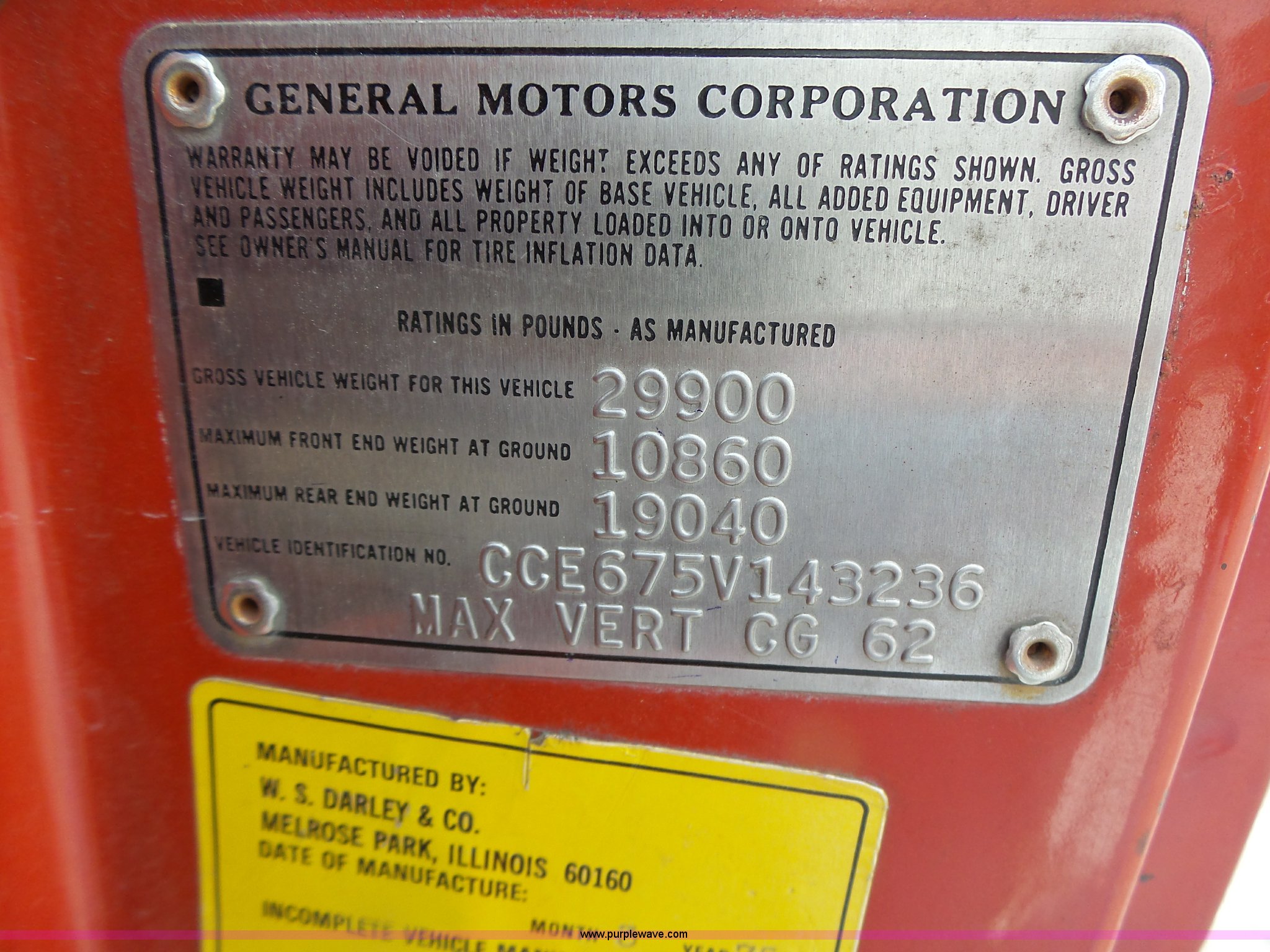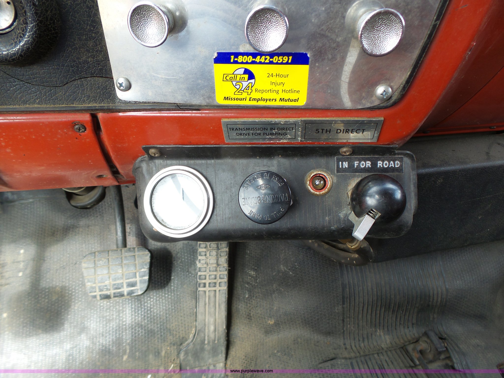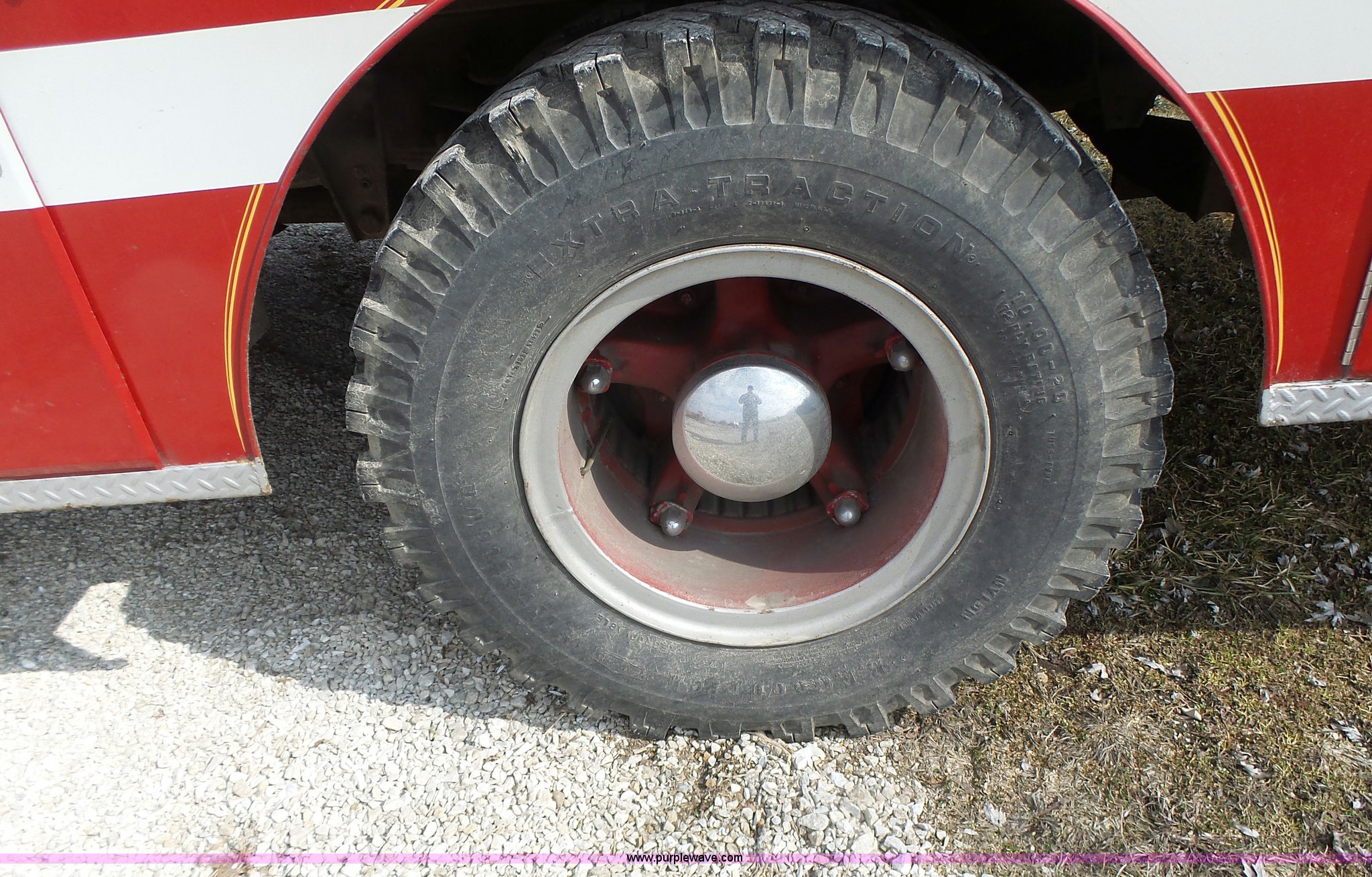 Purple Wave is selling a used Fire Truck or Emergency Vehicle in Missouri. This item is a 1975 Chevrolet C65 fire truck with the following: 21,337 miles on odometer, Eight cylinder gas engine, Five speed manual transmission, Two speed rear end, Single axle, Heat, Suspension seat, Champion 81289 platform, 750 gpm pump, Water gun, Work lights, Hose, Ladder, 10.00-20 tires