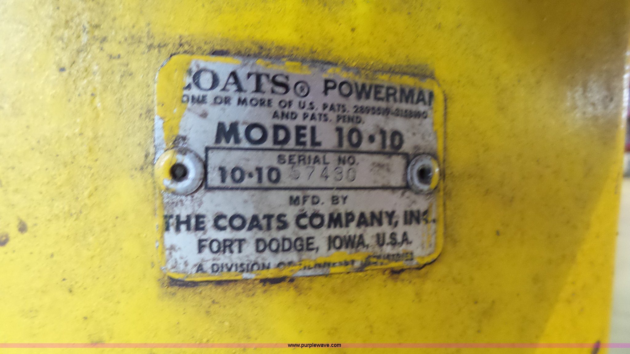 Purple Wave is selling a used Tools in Indiana. This item is a Coats 10-10 tire changer with the following: Serial 57430