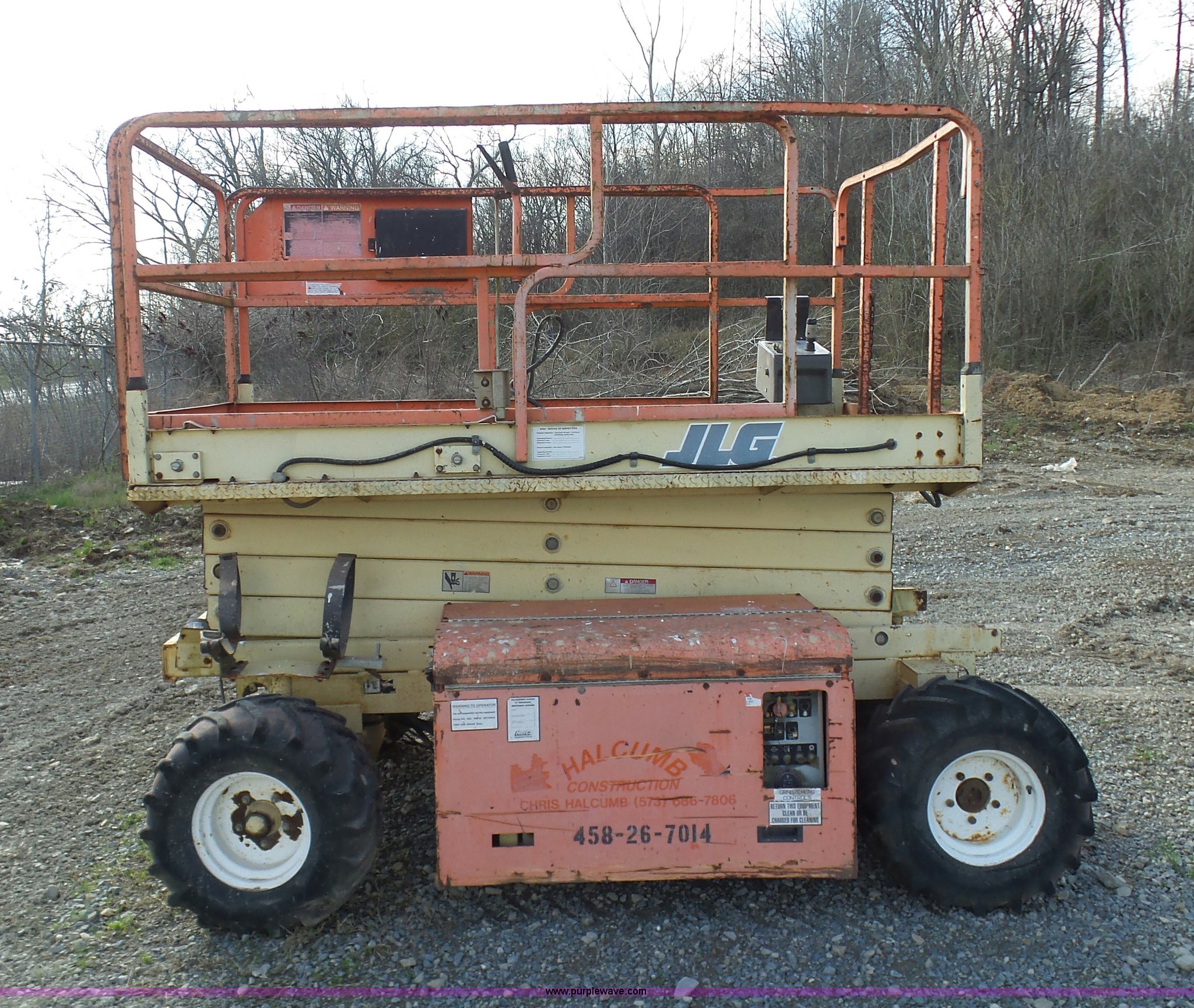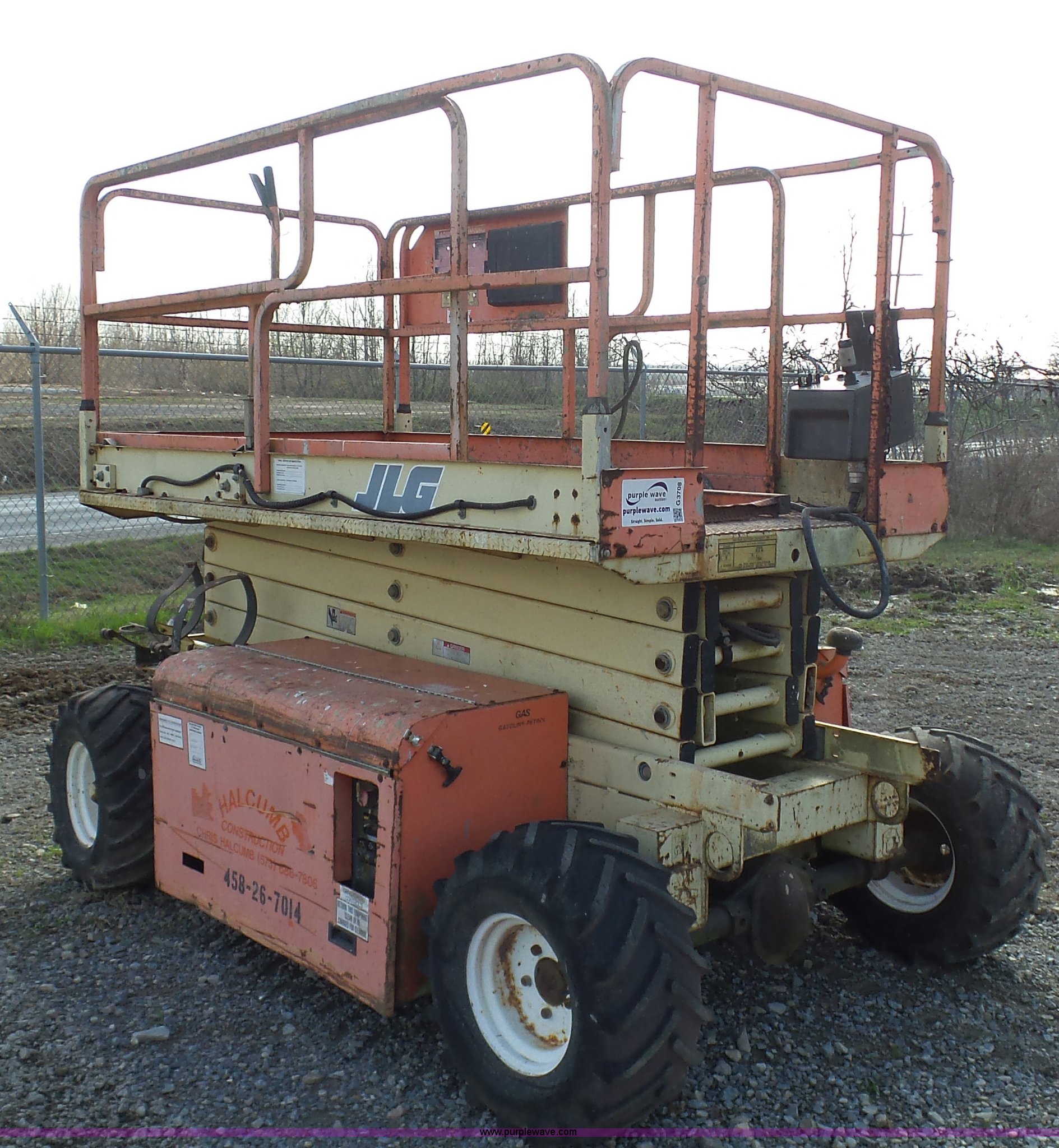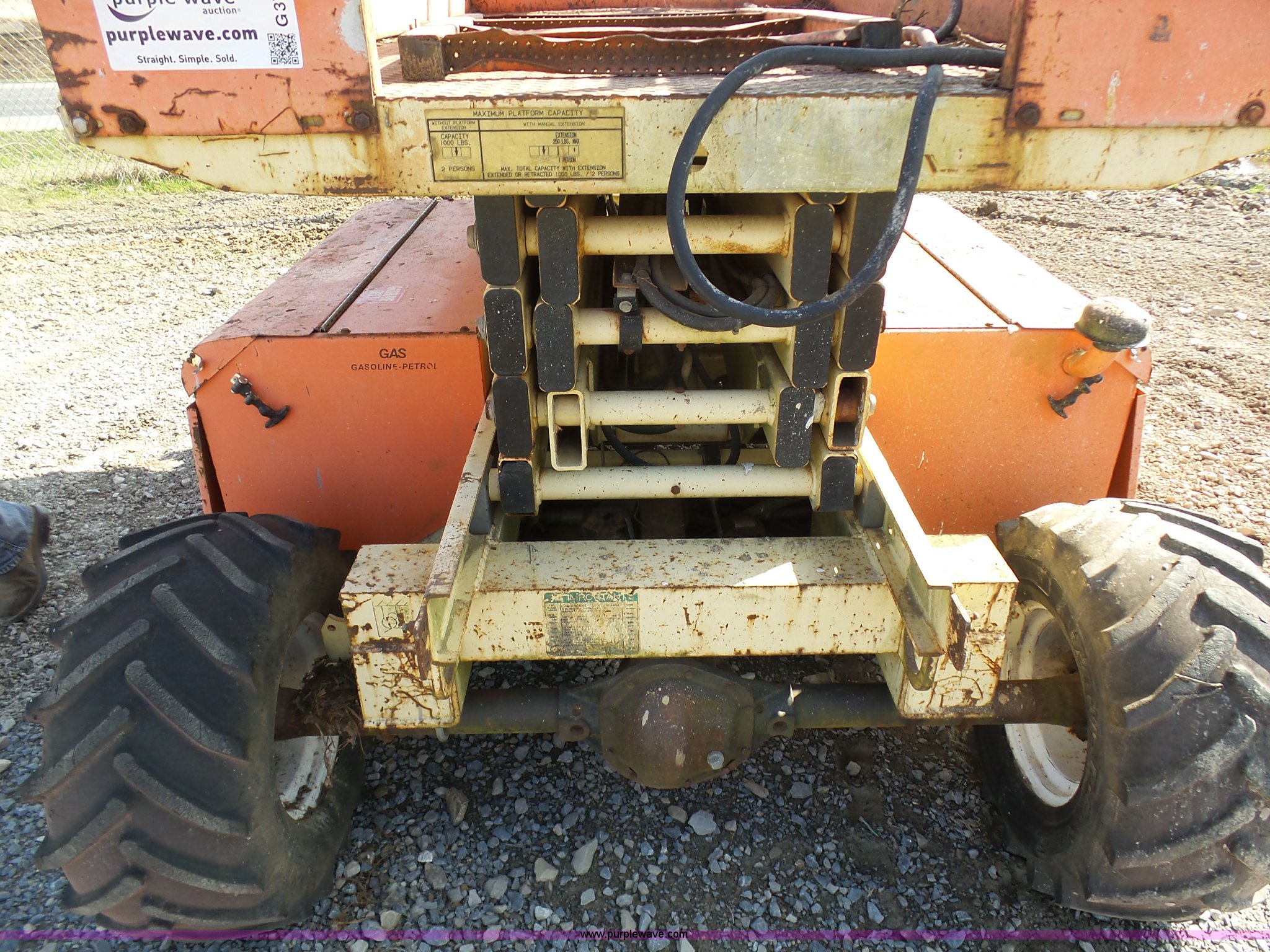 Purple Wave is selling a used Scissor or Vertical Lift in Missouri. This item is a JLG 26MRT scissor lift with the following: 2,061 hours on meter, Daihtsu DM700G three cylinder gas engine, Engine turns over but will not start, 1,000 lbs maximum lift capacity, 8' x 4' platform, 3' slide-out platform extensions, Non-operational unit, Serial 0200033244