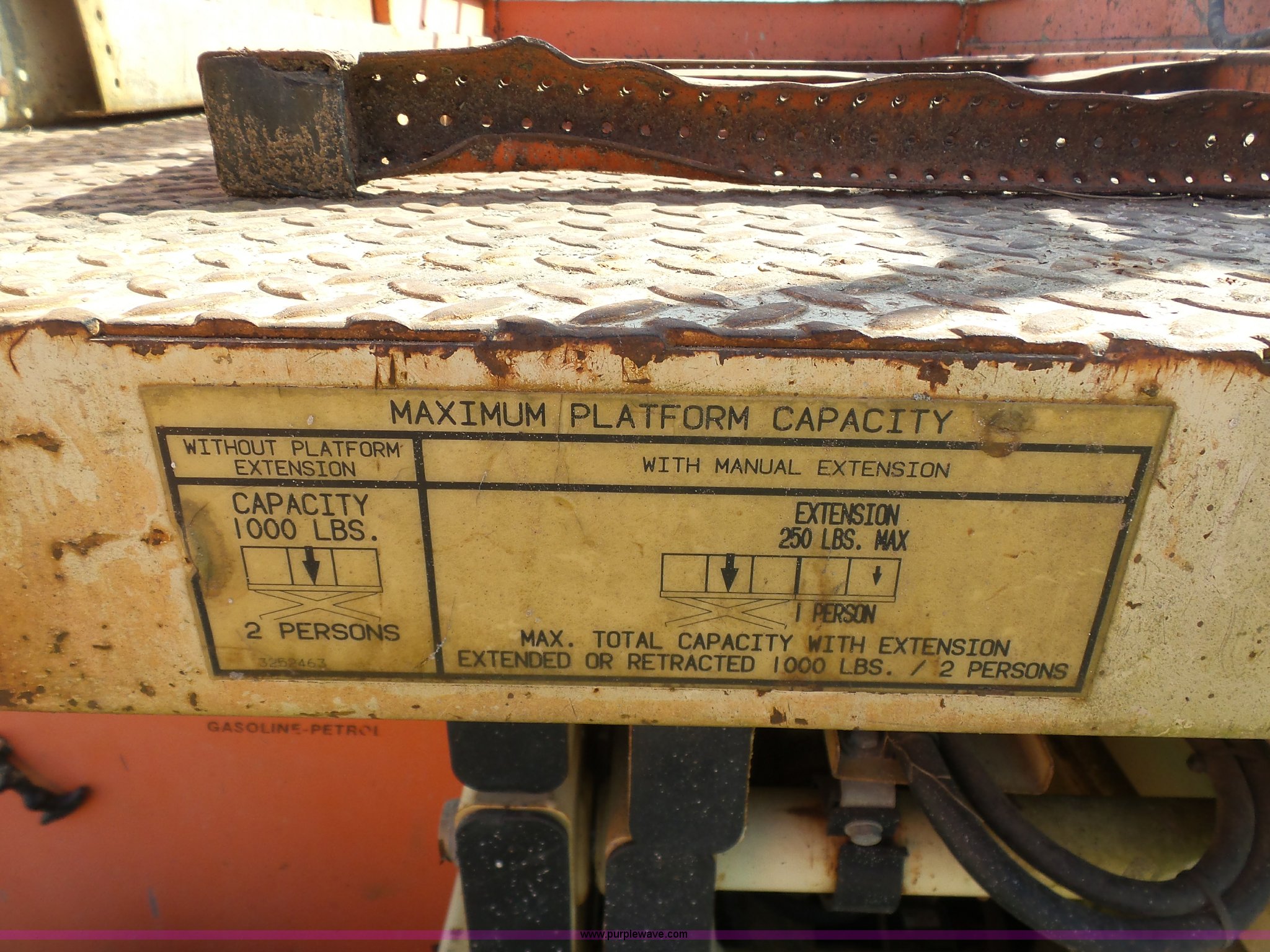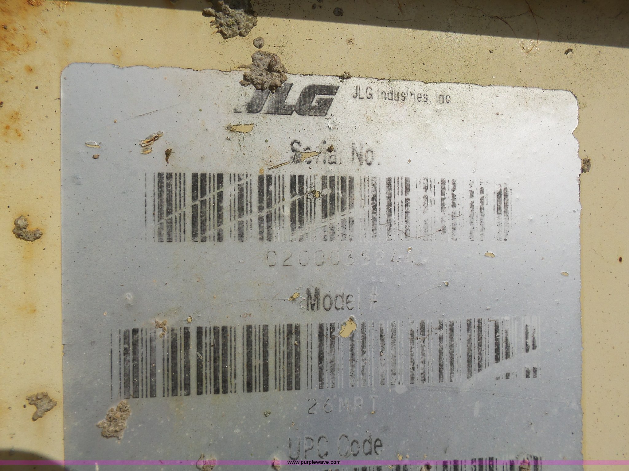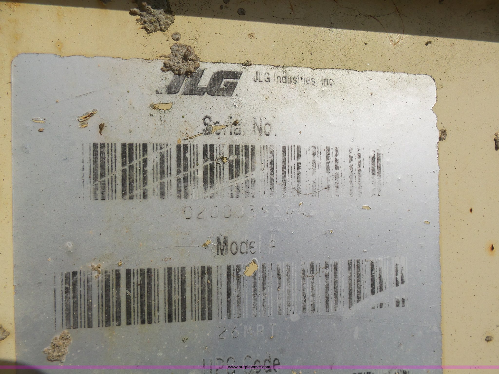 Purple Wave is selling a used Scissor or Vertical Lift in Missouri. This item is a JLG 26MRT scissor lift with the following: 2,061 hours on meter, Daihtsu DM700G three cylinder gas engine, Engine turns over but will not start, 1,000 lbs maximum lift capacity, 8' x 4' platform, 3' slide-out platform extensions, Non-operational unit, Serial 0200033244