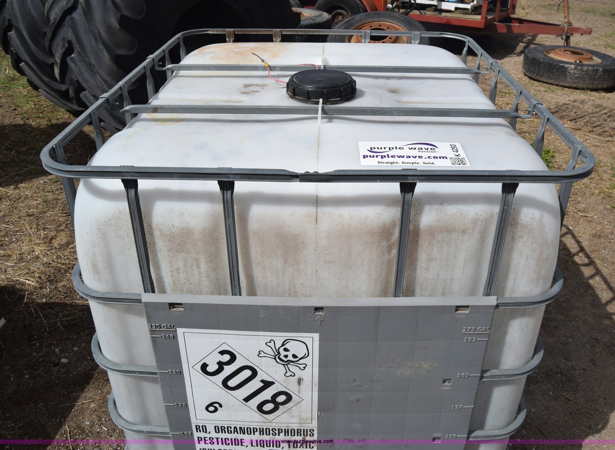 Purple Wave is selling a used Tanks in Kansas. This item is a Pesticide tank with the following: 39" x 47", 330 gallon capacity