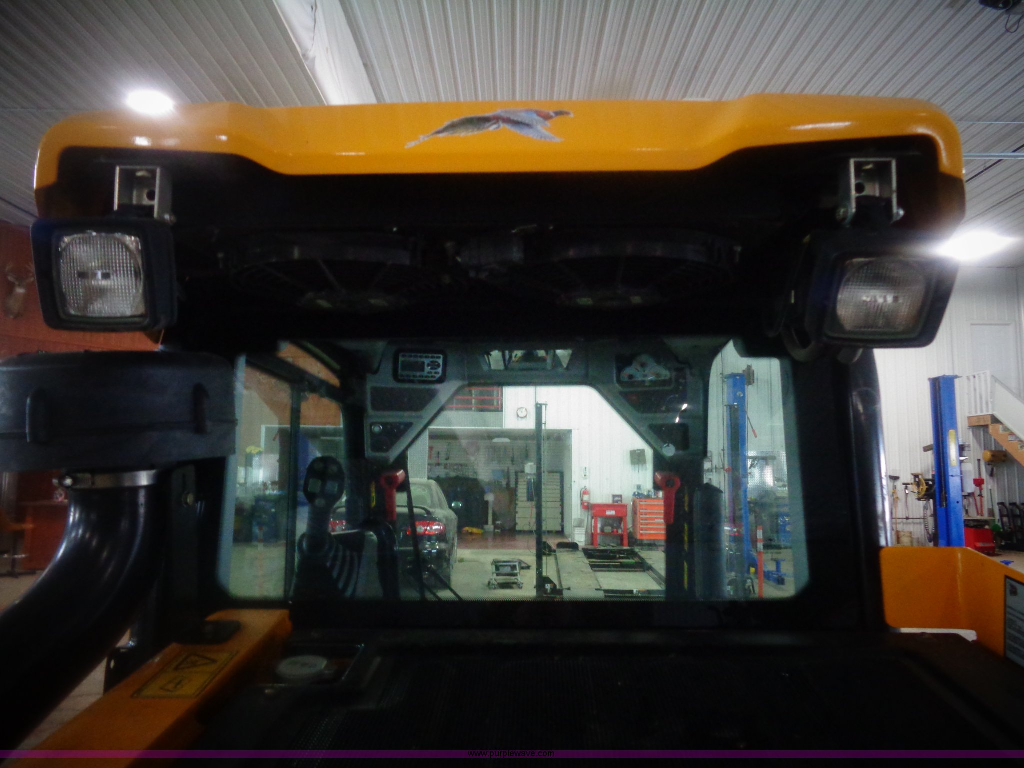 2013 JCB 320T skid steer. 581 hours on meter, JCB Dieselmax TC-68 268 C.I.D. turbo diesel engine 92 HP, Hydrostatic transmission, Enclosed cab AC and heat, AM/FM, Air suspension seat, Joystick controls, EMS panel, Wipers, Backup alarm, Front and rear work lights, Block heater, High flow auxiliary hydraulics, Auxiliary electrical outlet, Hydraulic quick coupler, 17.7"W tracks, Serial GE0320TVAC1747330. Pheasant Country Automotive. 39595 130th St. Bath, SD 57427