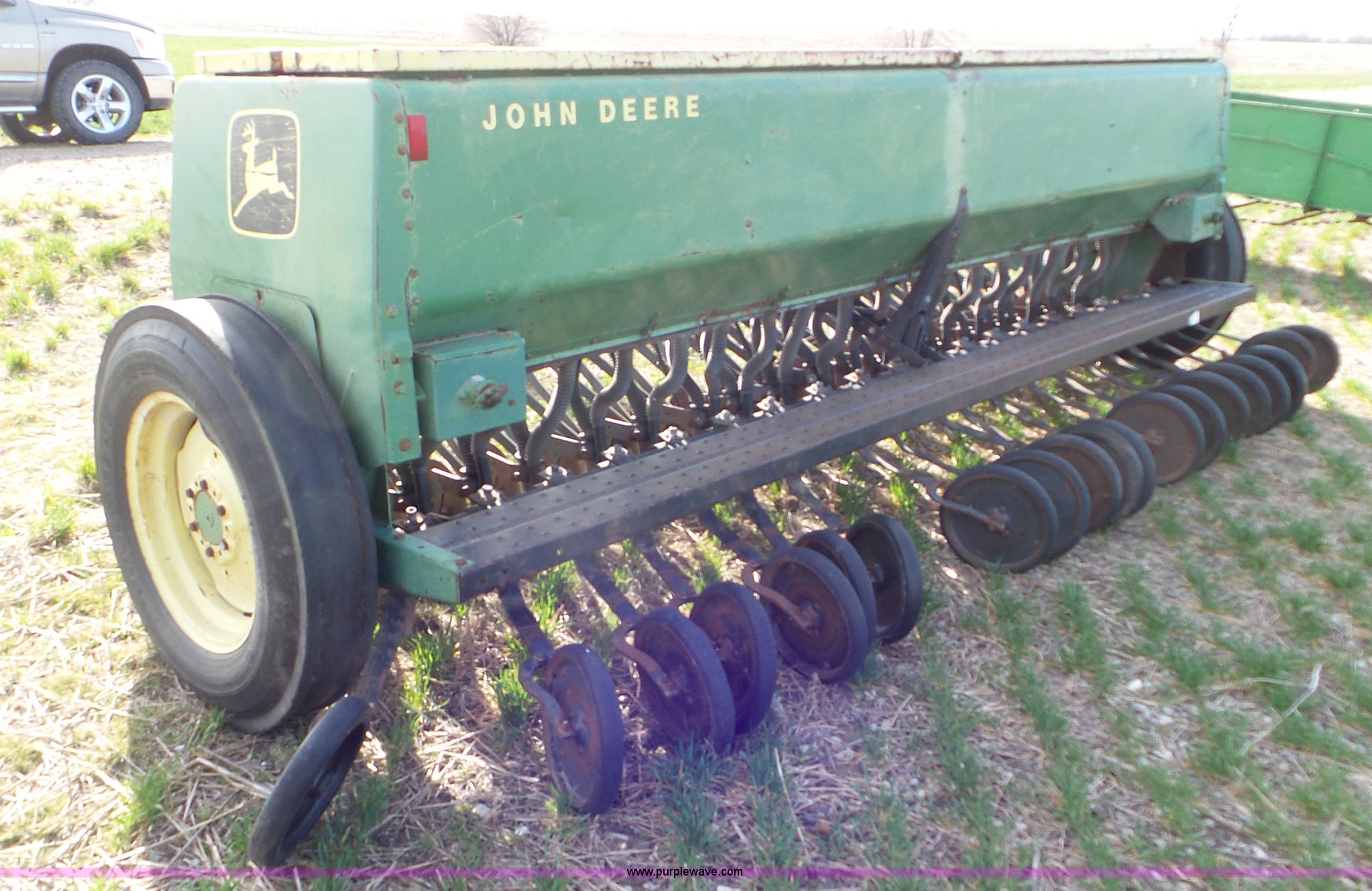 Purple Wave is selling a used Grain Drill or Seeder in Kansas. This item is a John Deere 8300 grain drill with the following: 13'W, 7" spacing, Bulk fill system, Single disk opener, Single rubber press wheel, Pin hitch, 7.50-50 tires, Serial 005331N