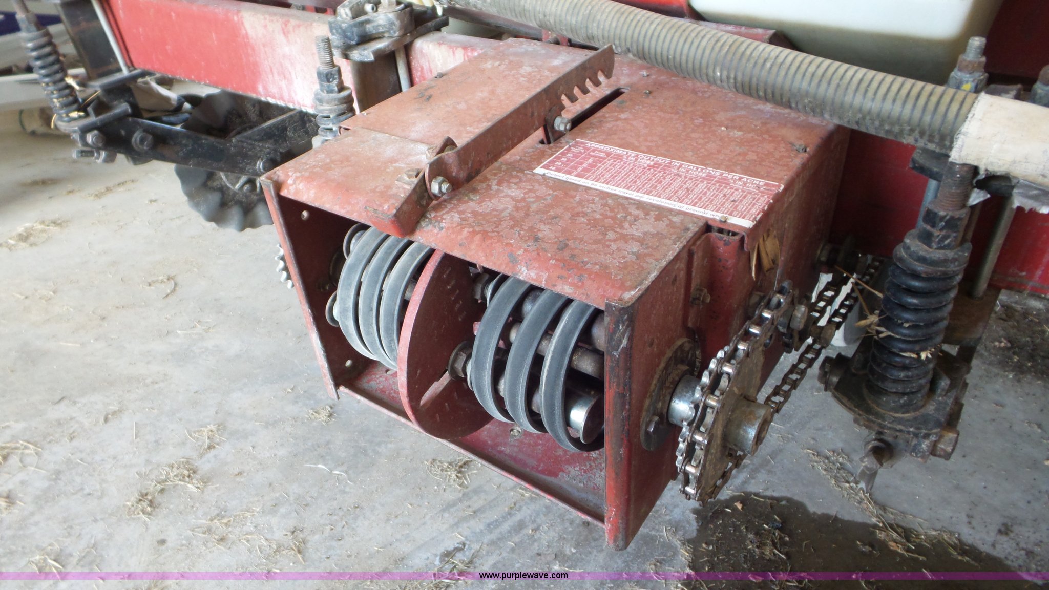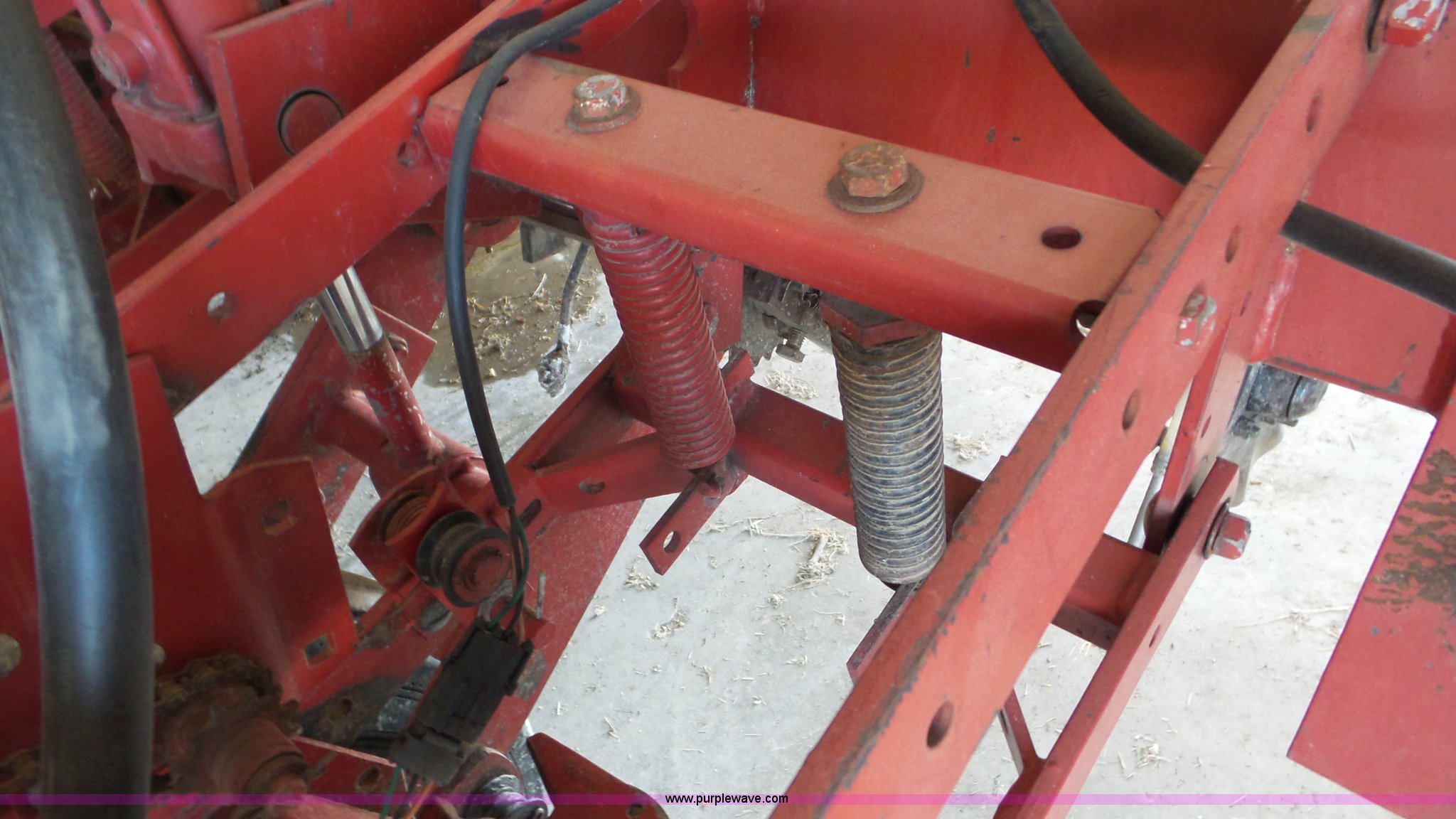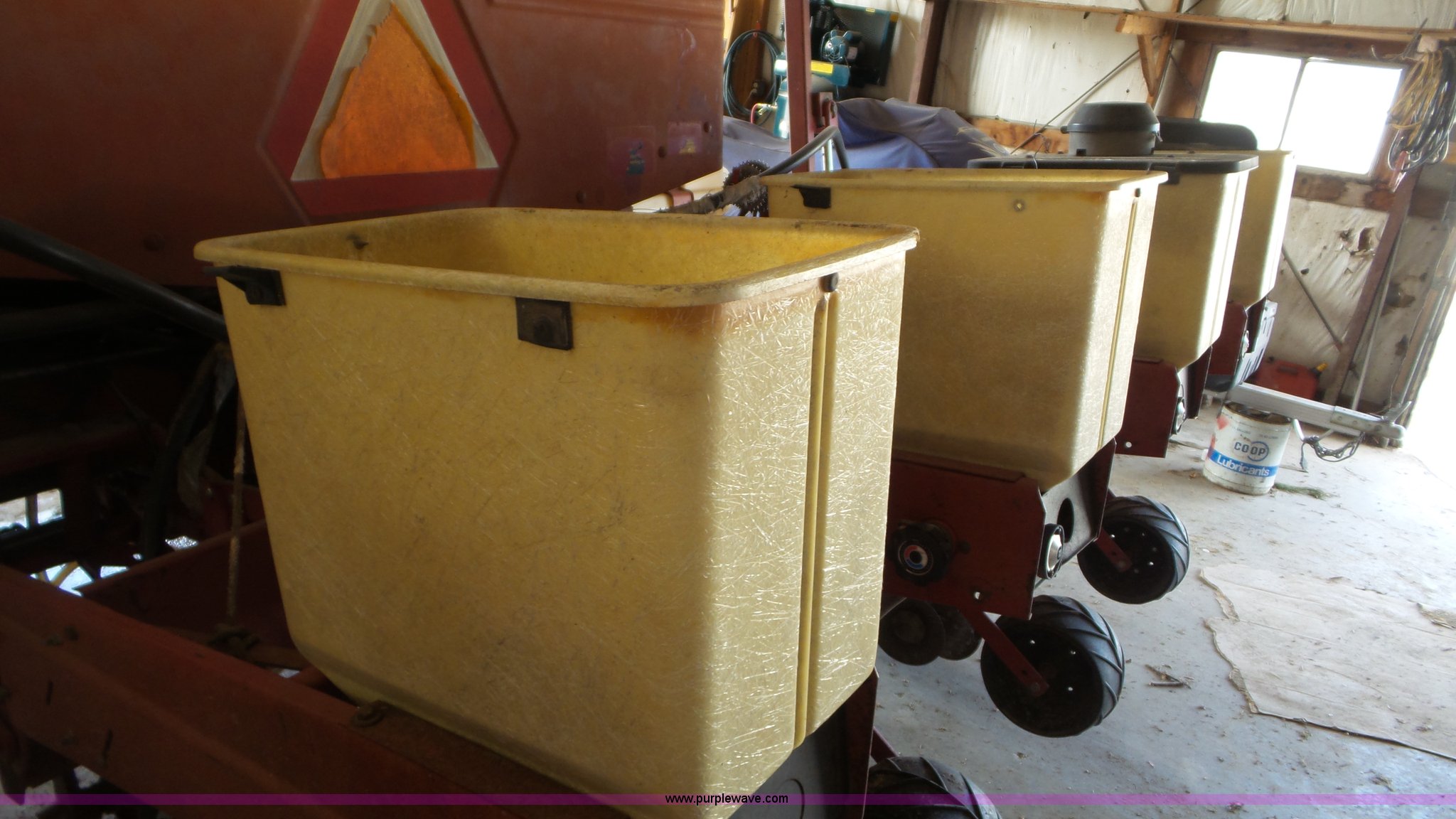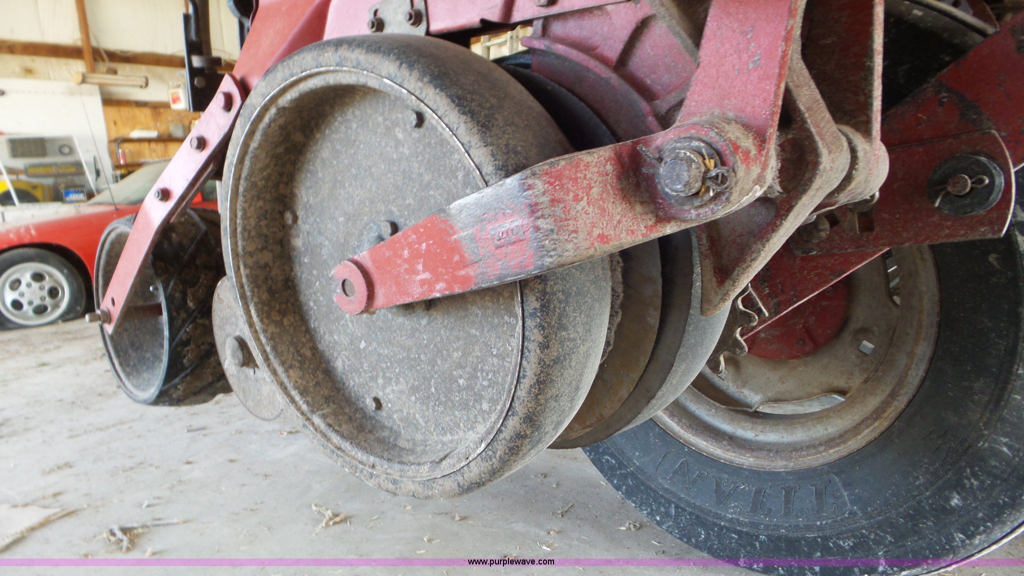 Purple Wave is selling a used Planter in Kansas. This item is a Case IH 900 Cyclo Air planter with the following: 14'W, Six rows, 30" row spacing, Hydraulic fold marker arms, Bulk fill system, Air delivery, Ground meter drive, HD spring down pressure, No-till coulters, Double disk openers, Double gauge wheels, Single rubber closing system, (2) 100 gallon liquid fertilizer tanks, Dry fertilizer individual row hopper, (4) 7.60-15 transport tires, Corn, Milo, and Soybean drums, Serial JJC0023379